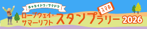 2026 04/30 ロープウェイ・サマーリフト スマホスタンプラリー2026 参画について 令和8年4月24日(金)より夏期営業が再開し、北海道内も行楽シーズンが到来いたしました。 そこで、道内のロープウェイや夏期運行を行うリフトを巡ってスタンプをゲットすることで豪華賞品がもらえる『ロープウェイ・サマーリフト スマホスタンプラリー2026』が今年もスタート! 期間は令和7年4月29日~10月25日。 ぜひ皆さま豪華賞品を狙って参加してみてくださいね! 詳細はコチラ↓