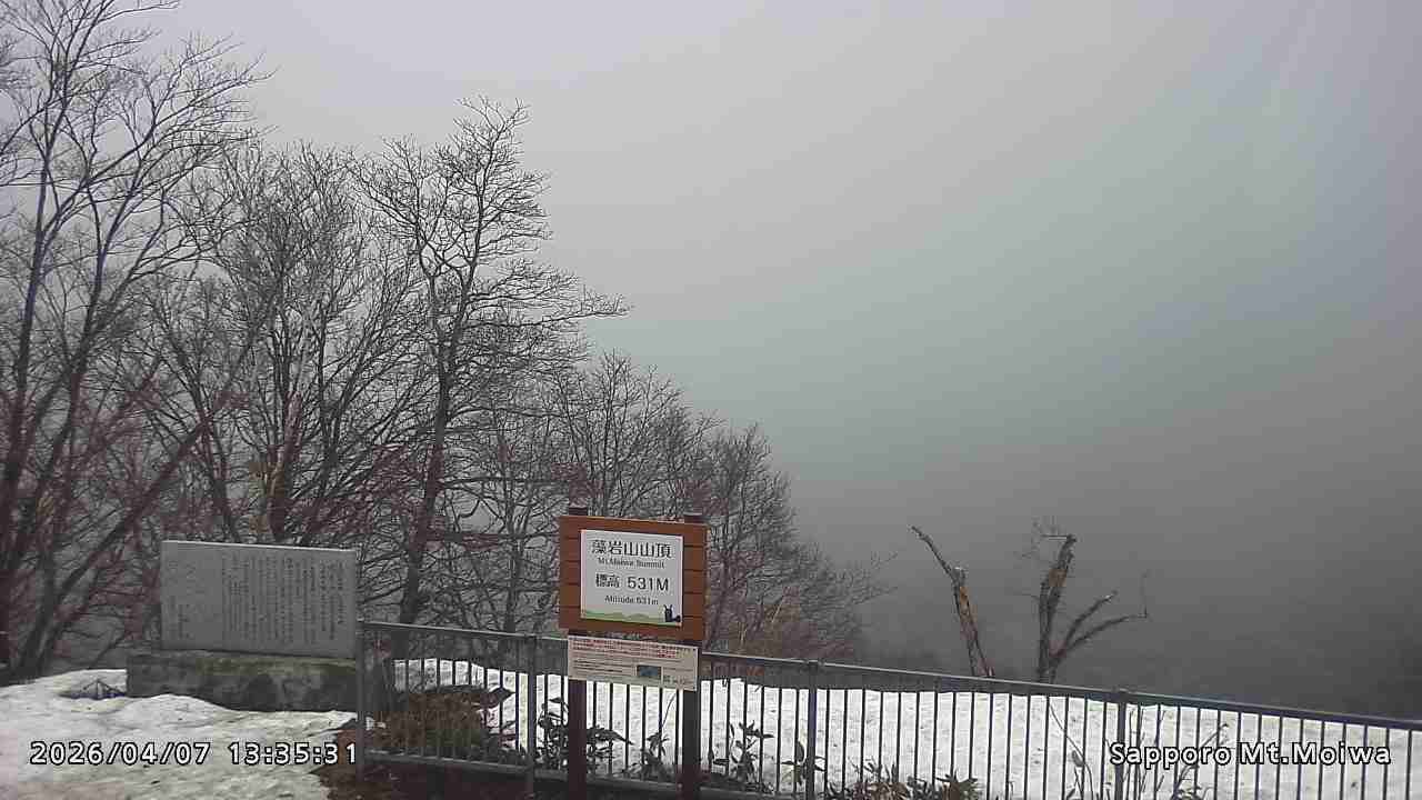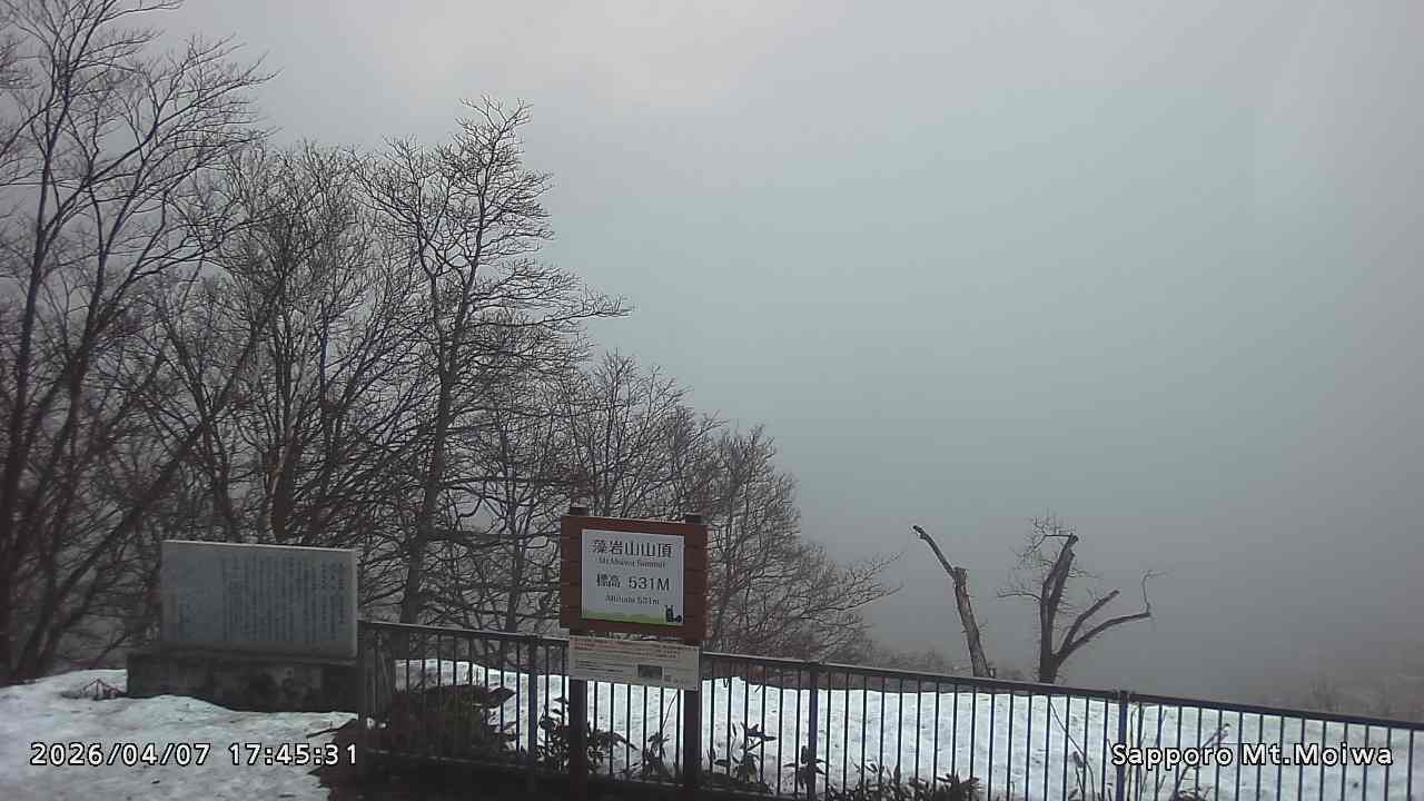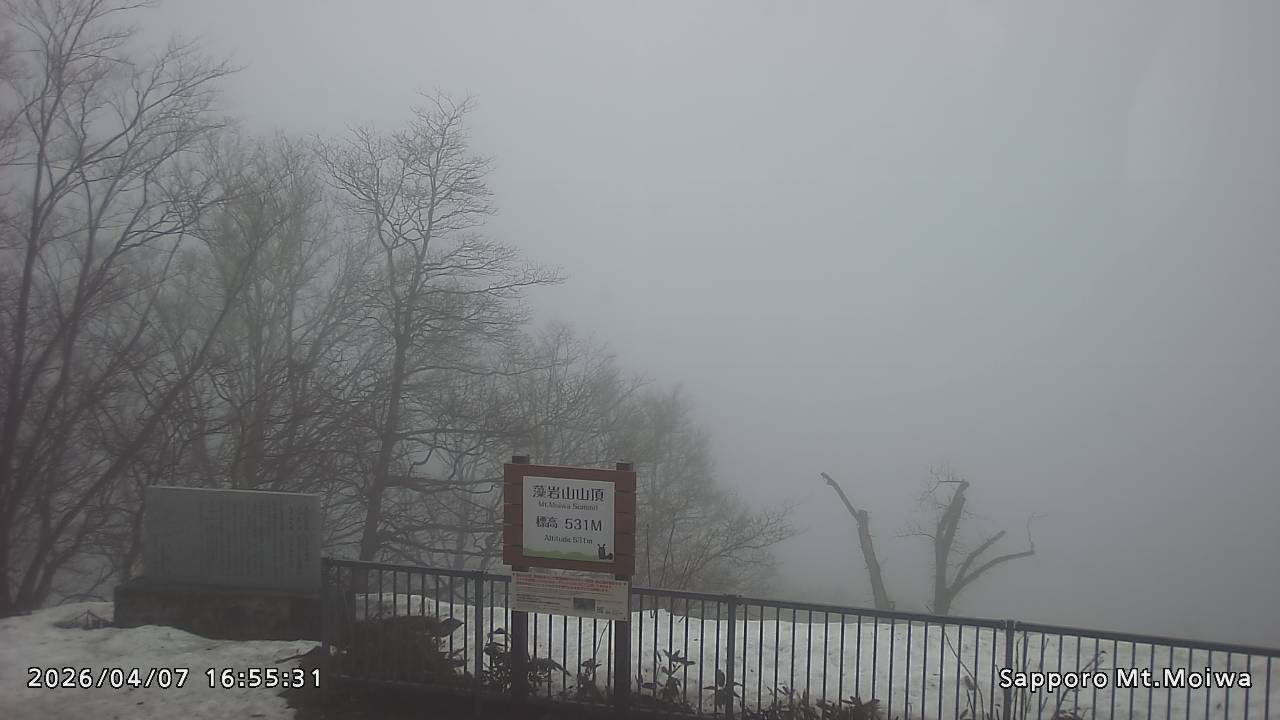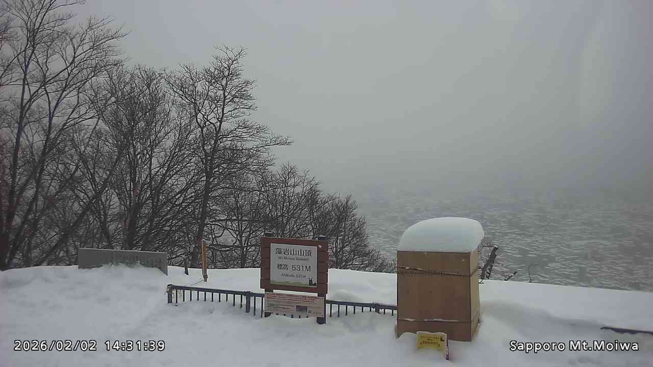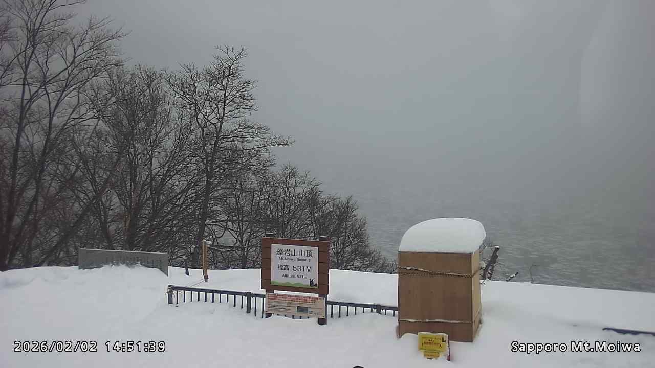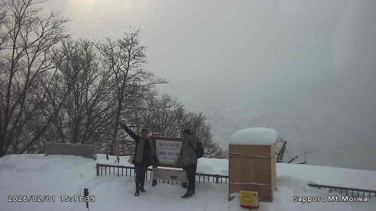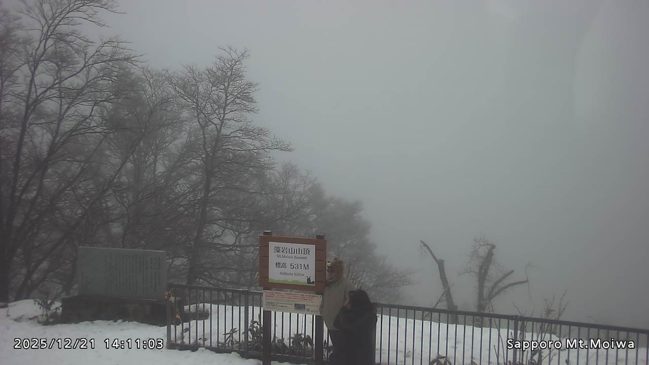 もいわ山山頂の標高看板前にカメラを設置しています。