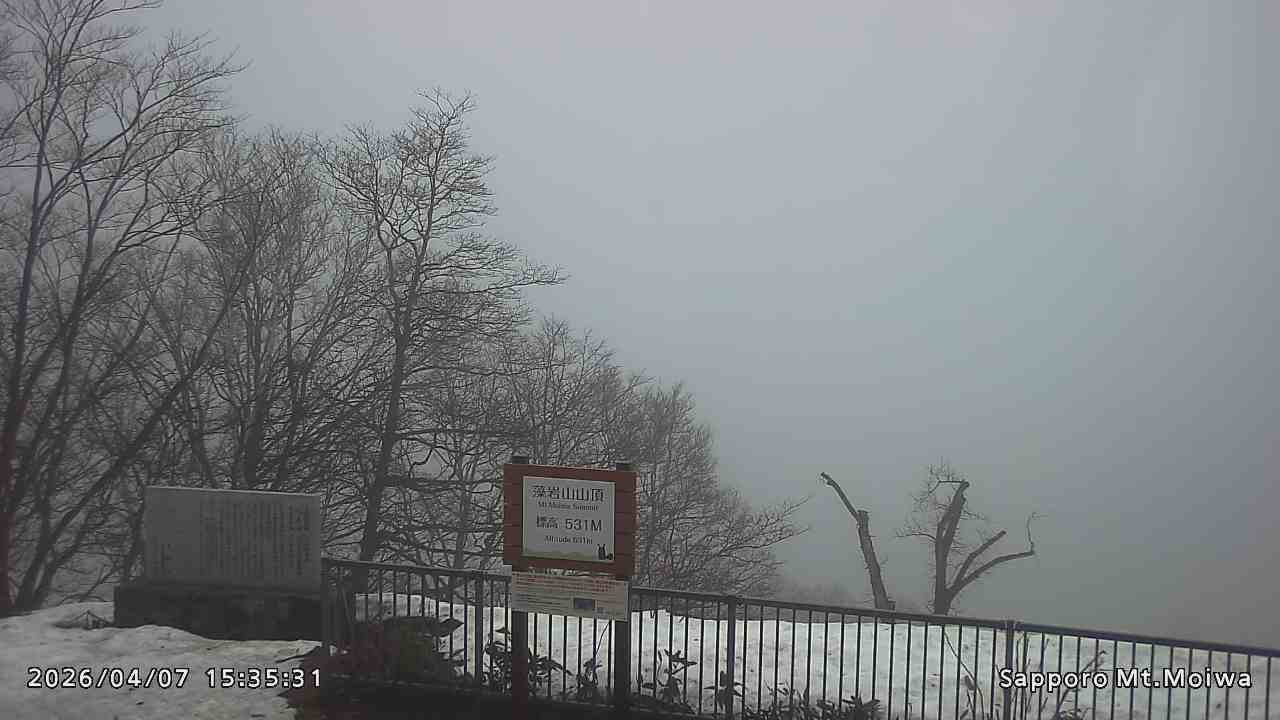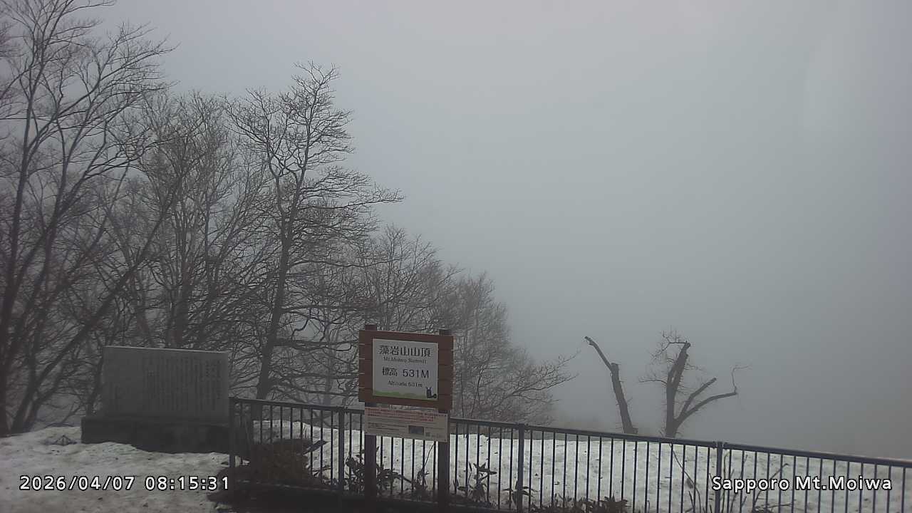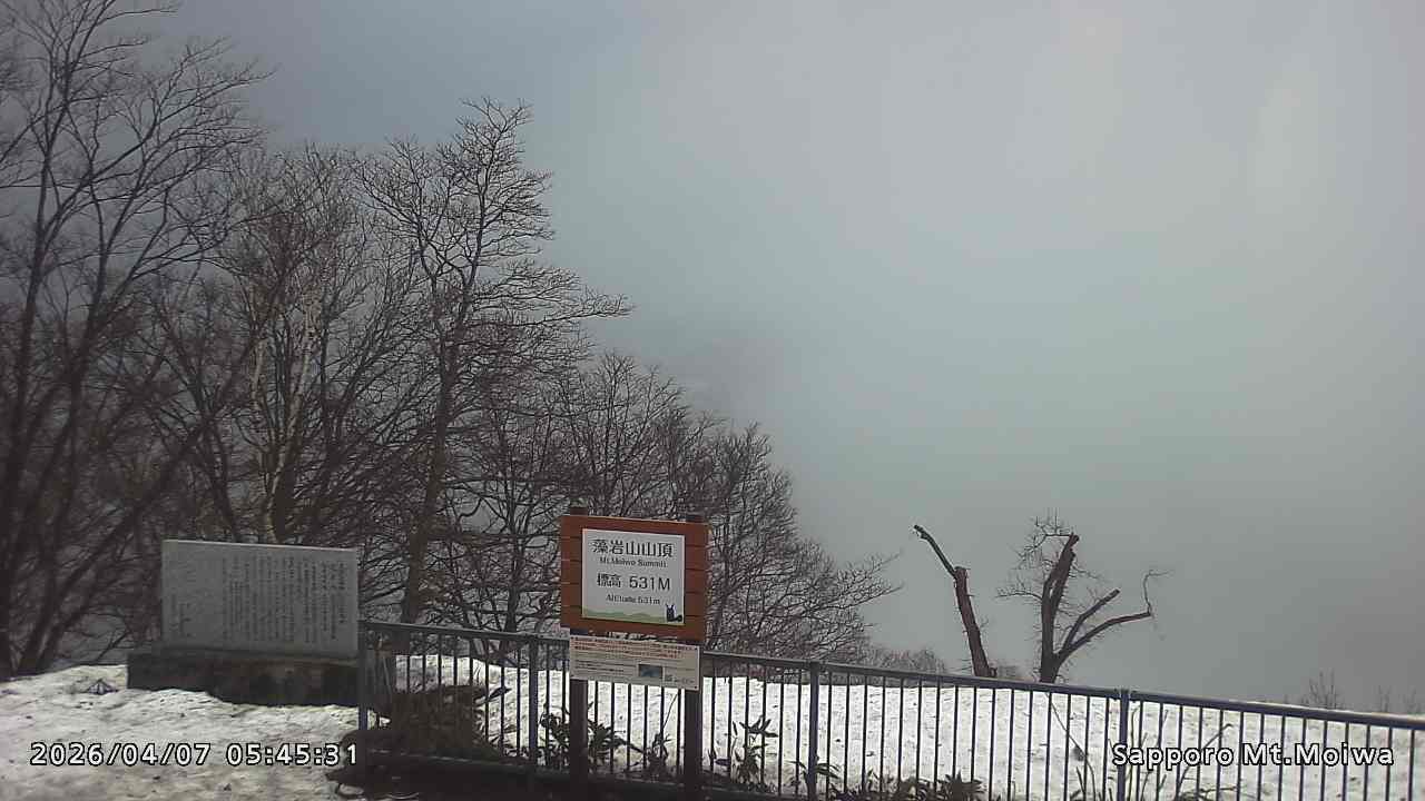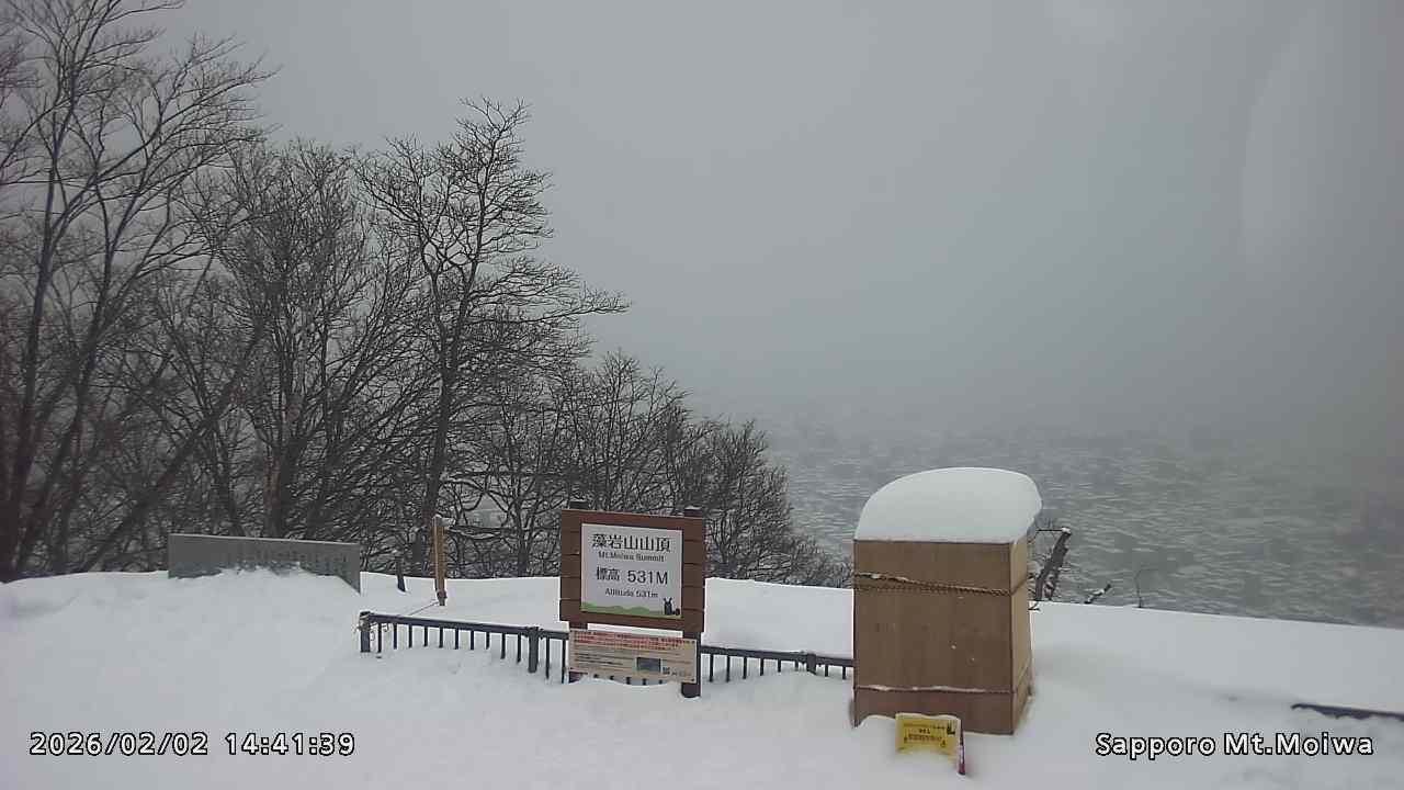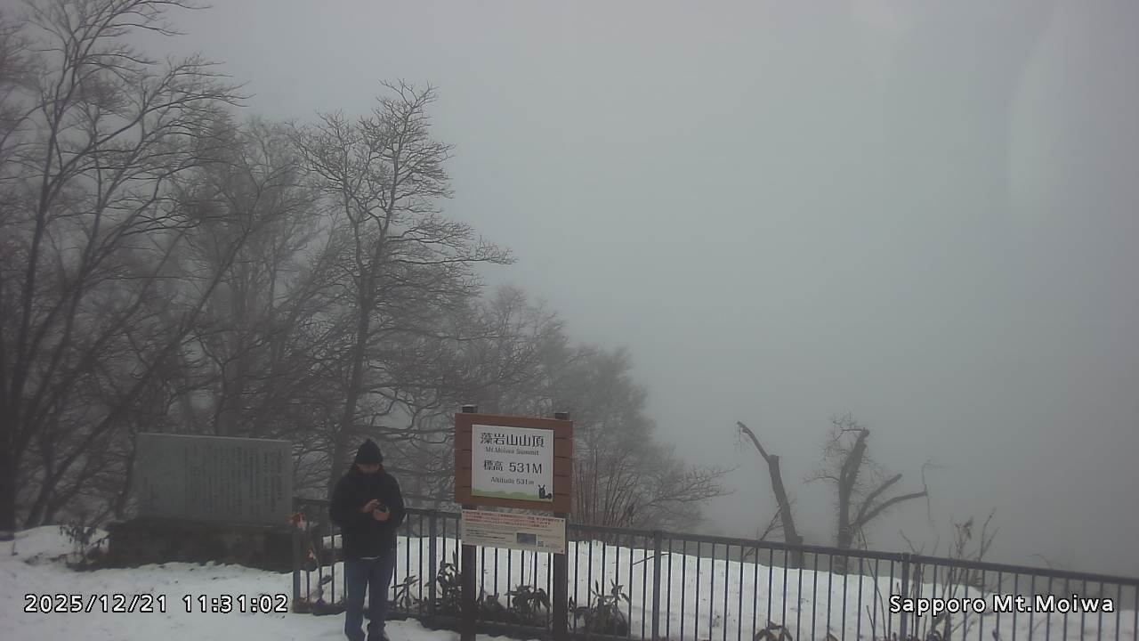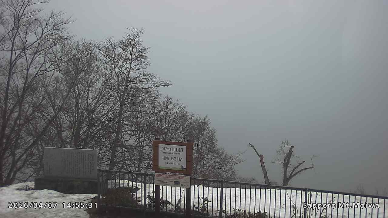 もいわ山山頂の標高看板前にカメラを設置しています。