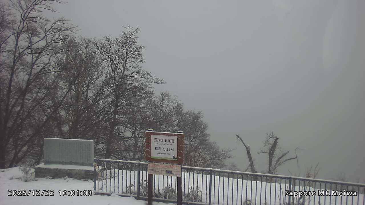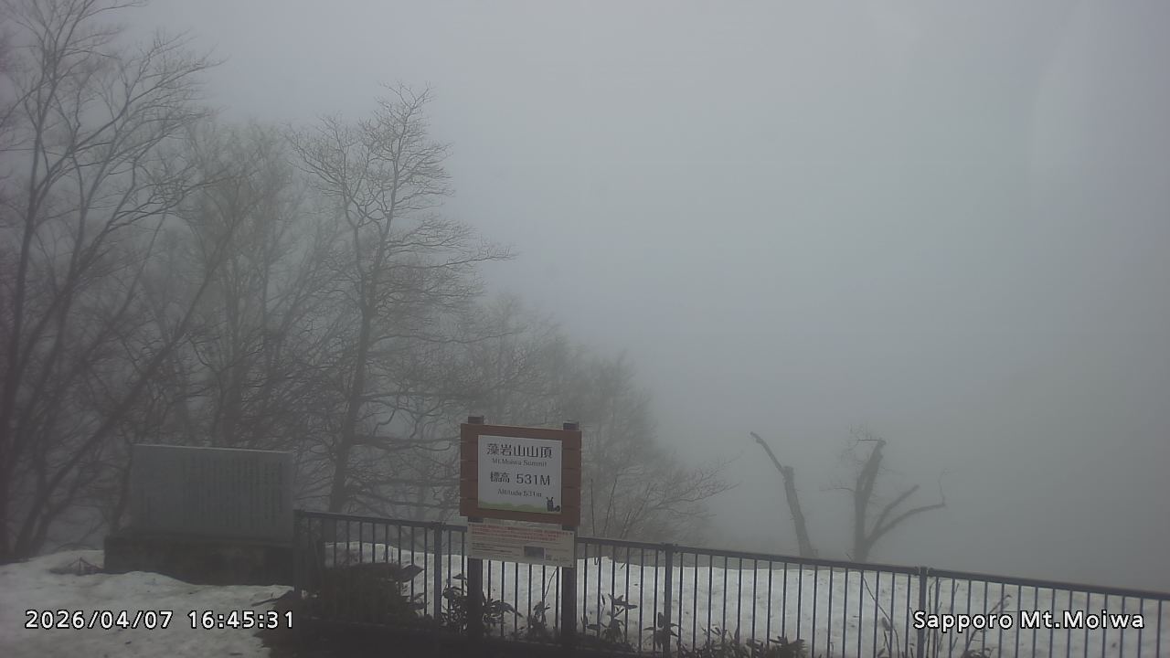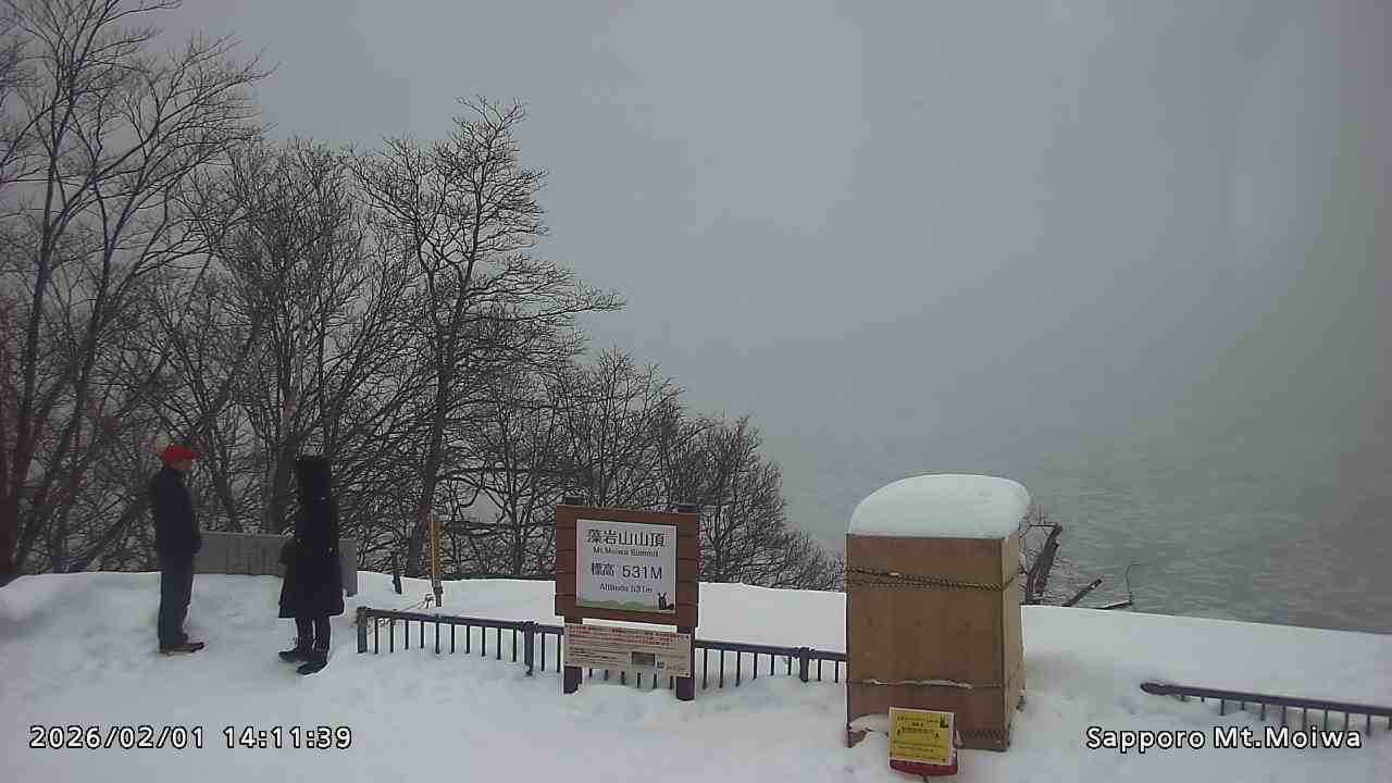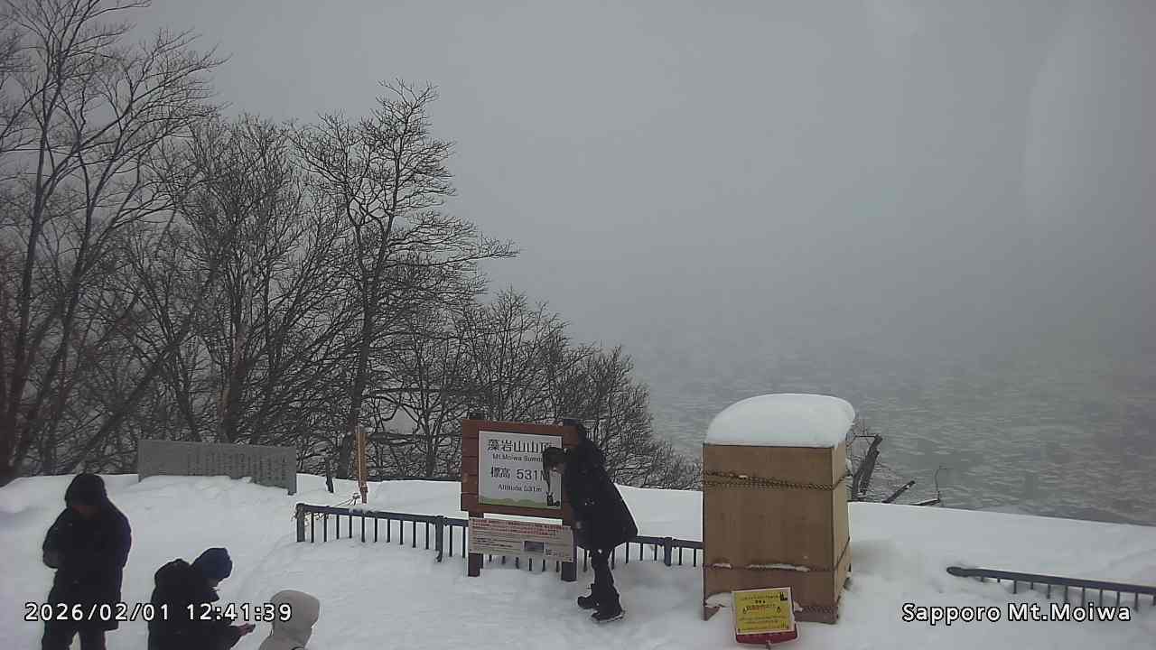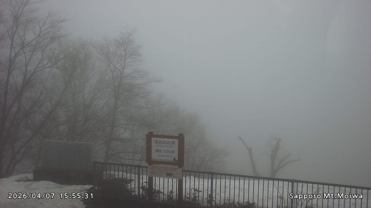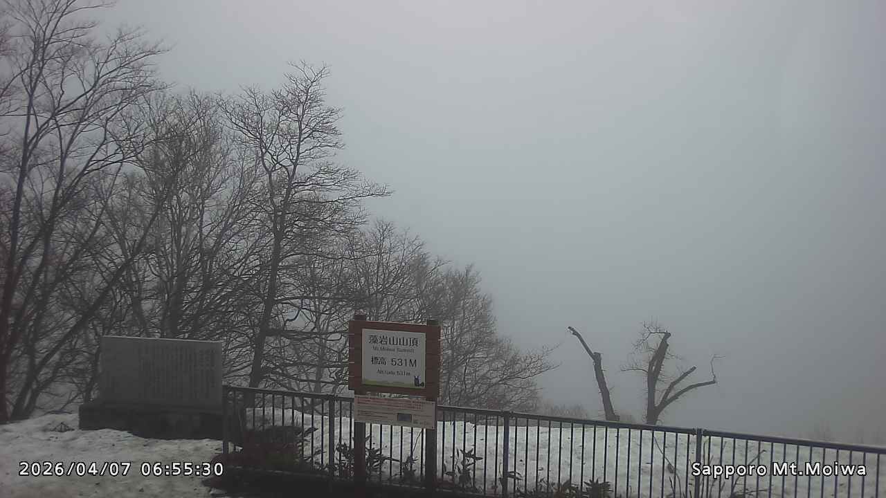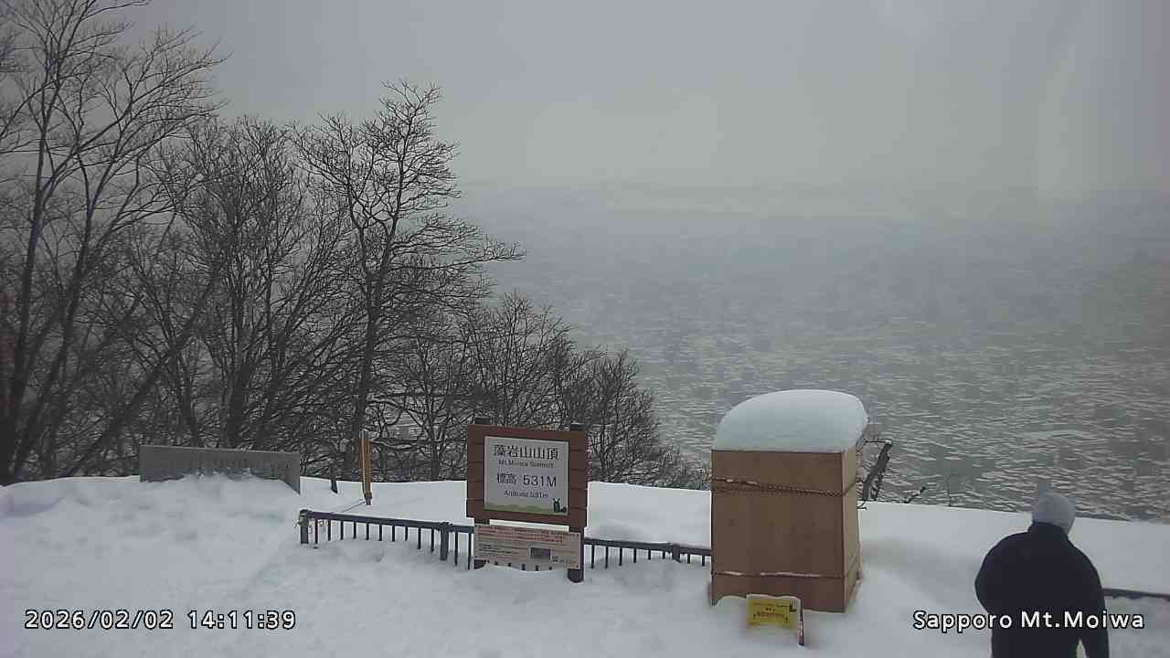 もいわ山山頂の標高看板前にカメラを設置しています。
