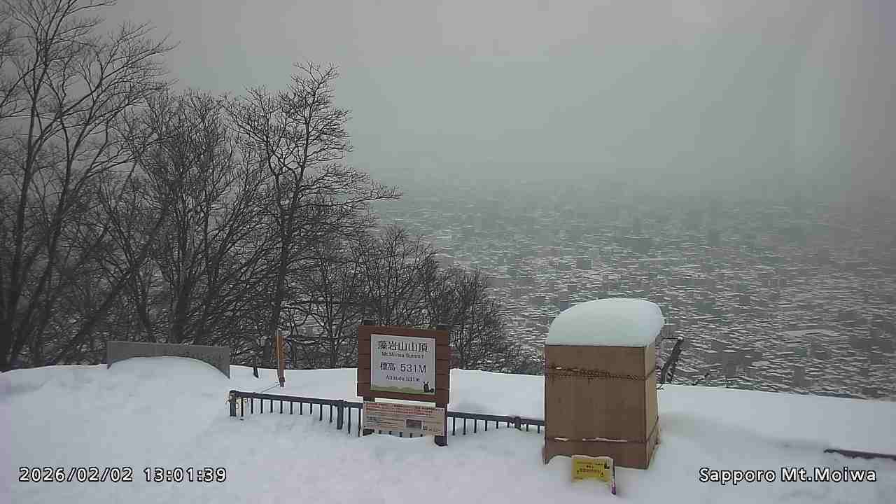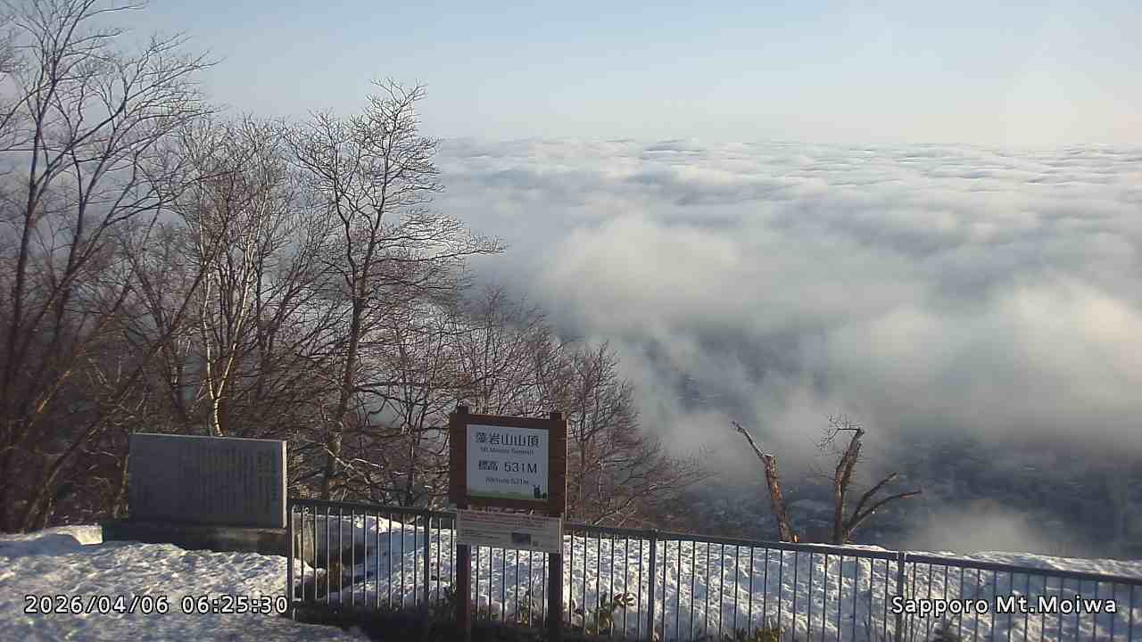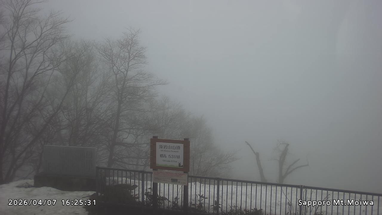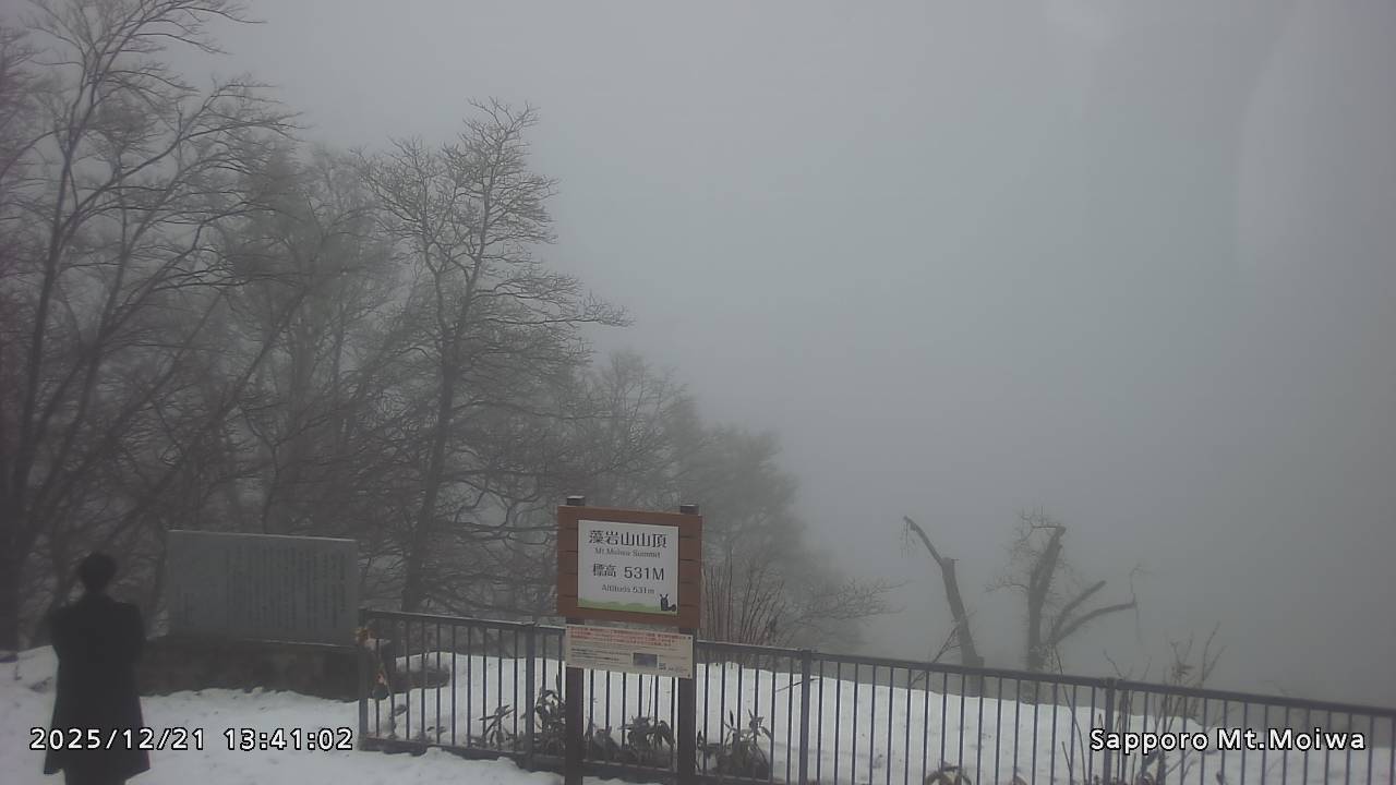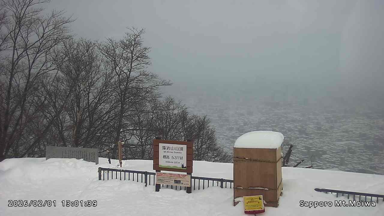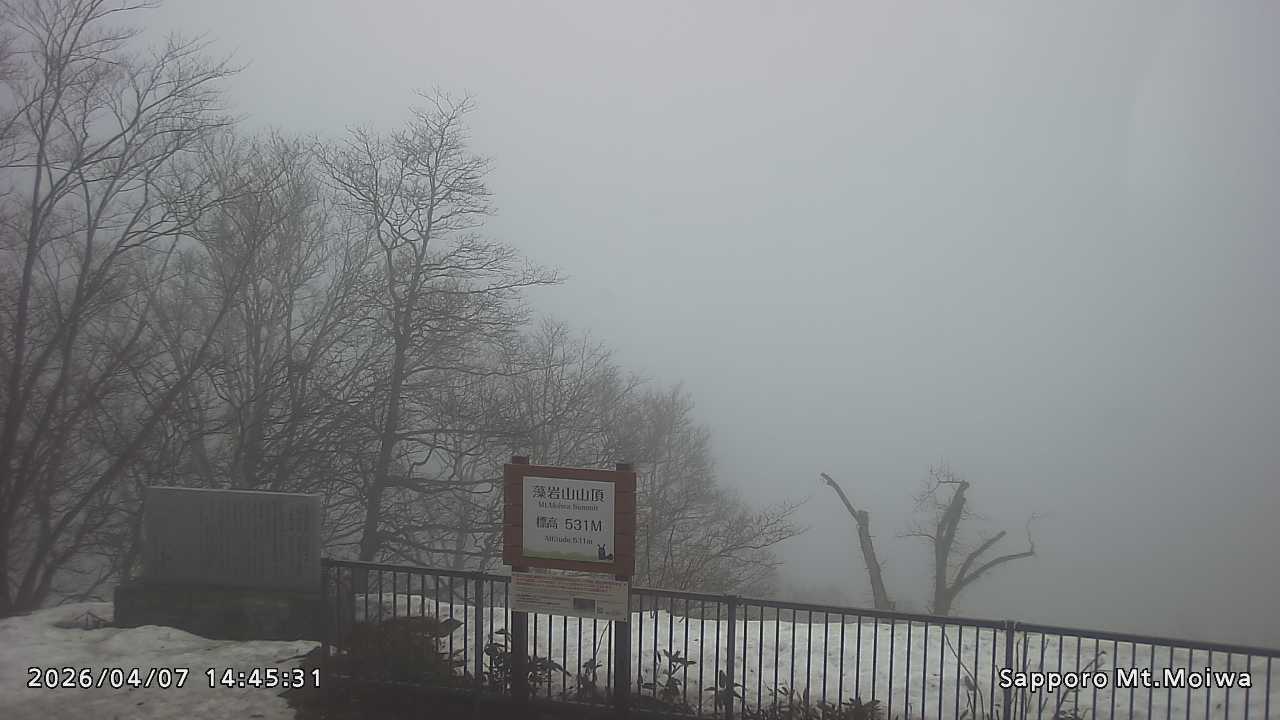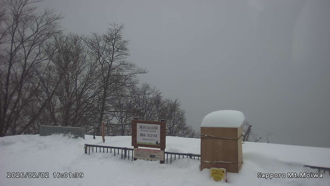 もいわ山山頂の標高看板前にカメラを設置しています。