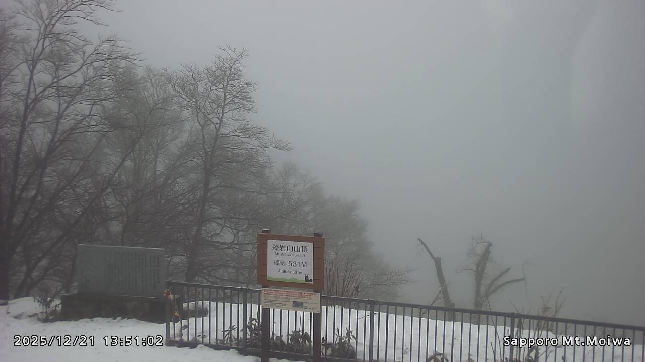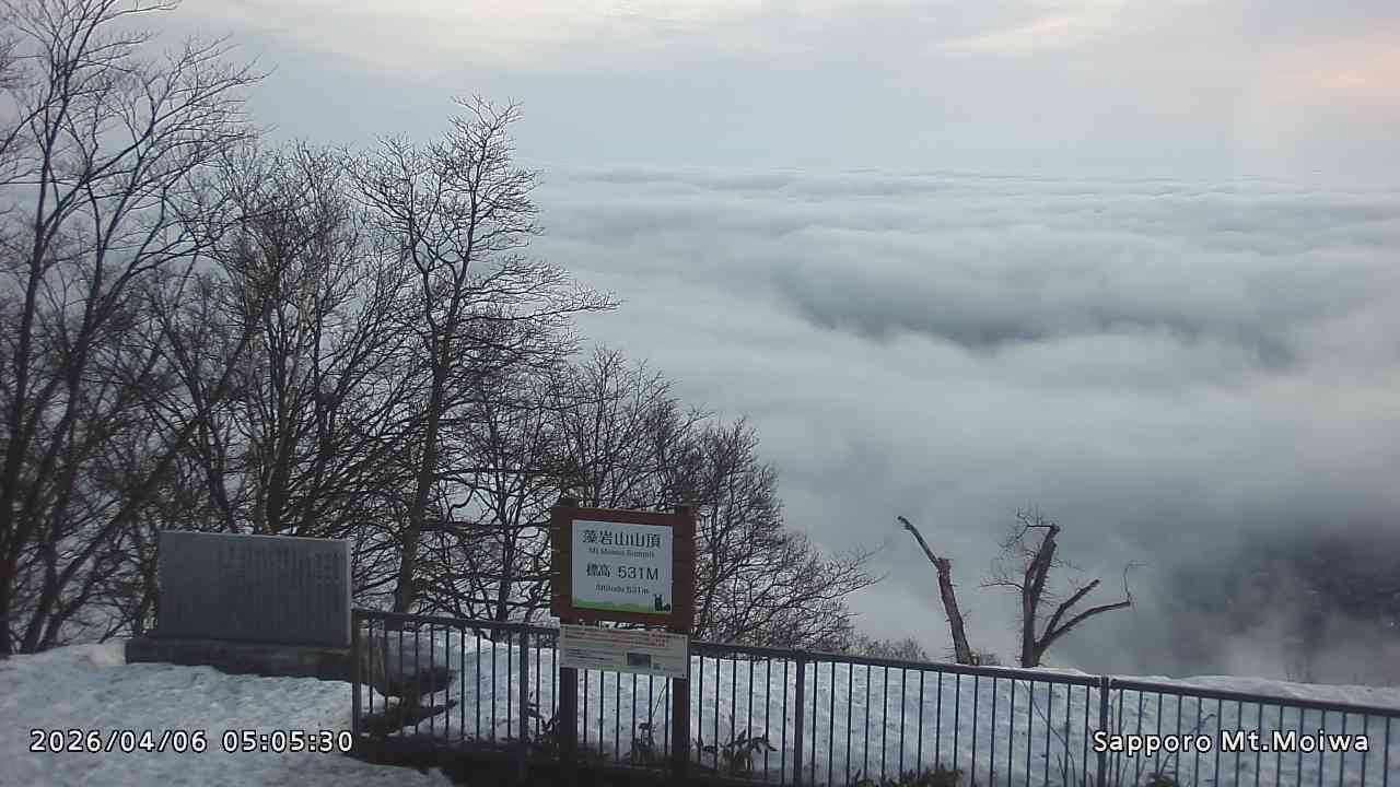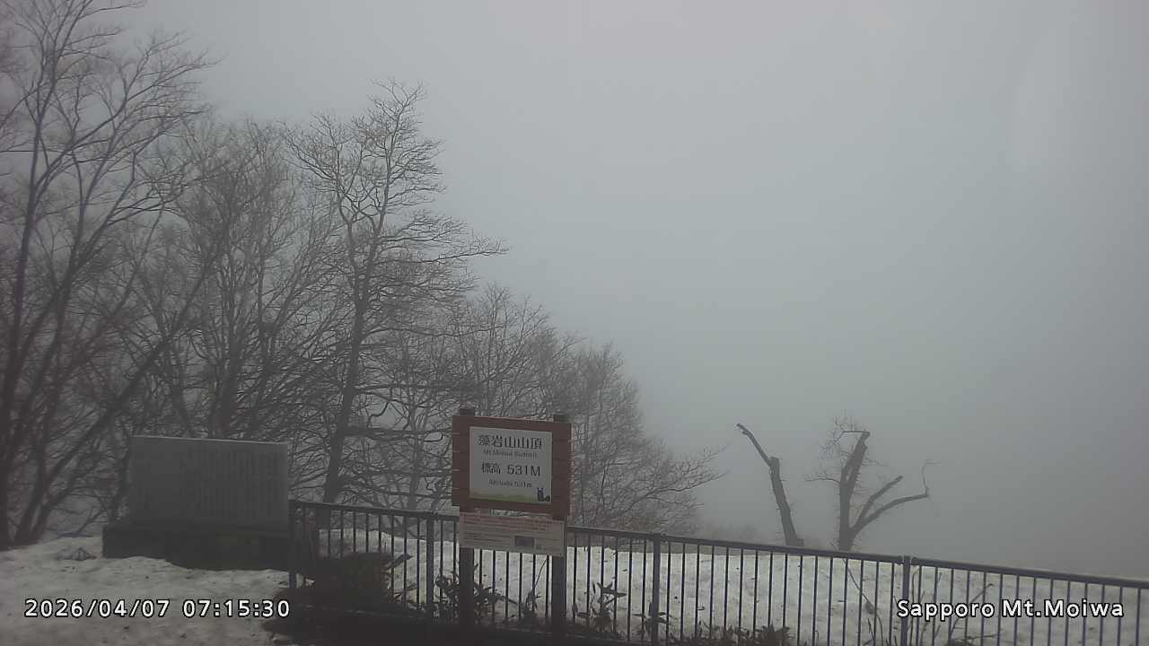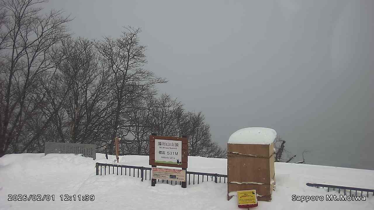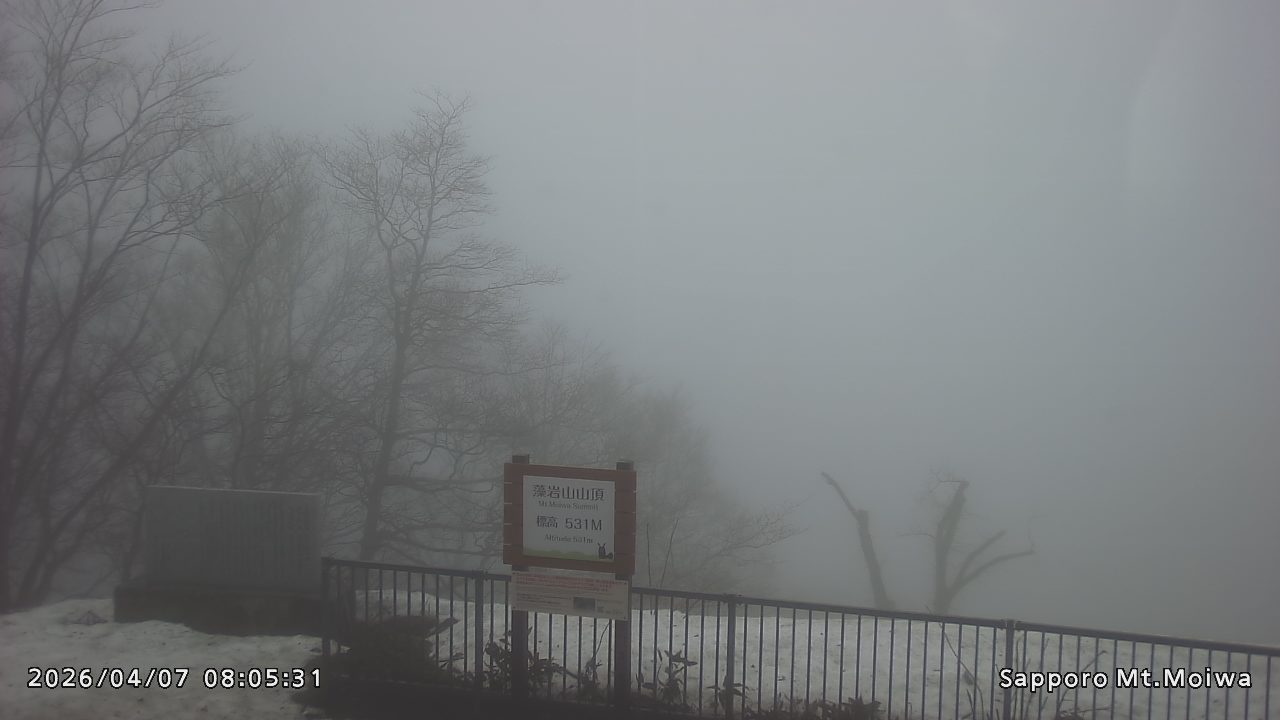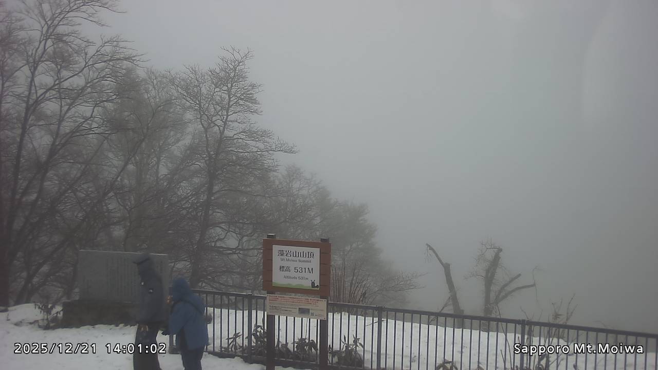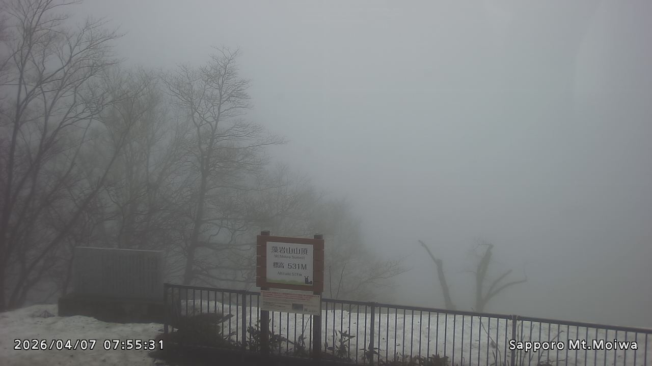 もいわ山山頂の標高看板前にカメラを設置しています。
