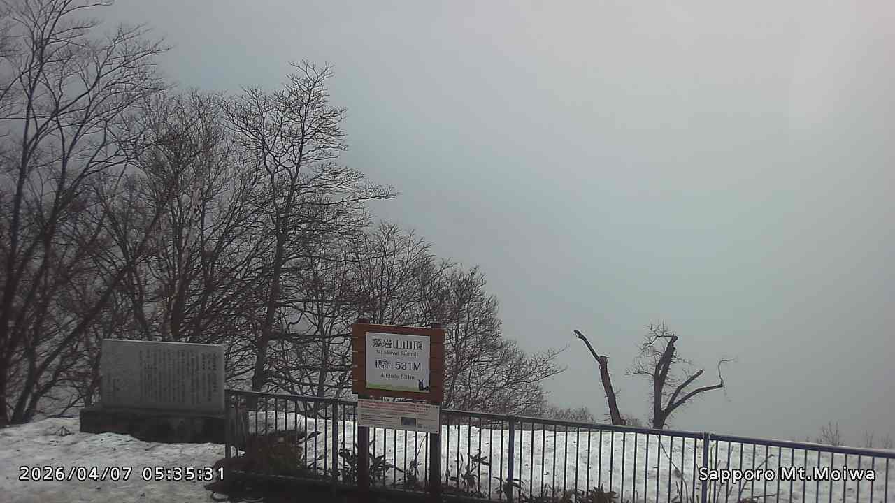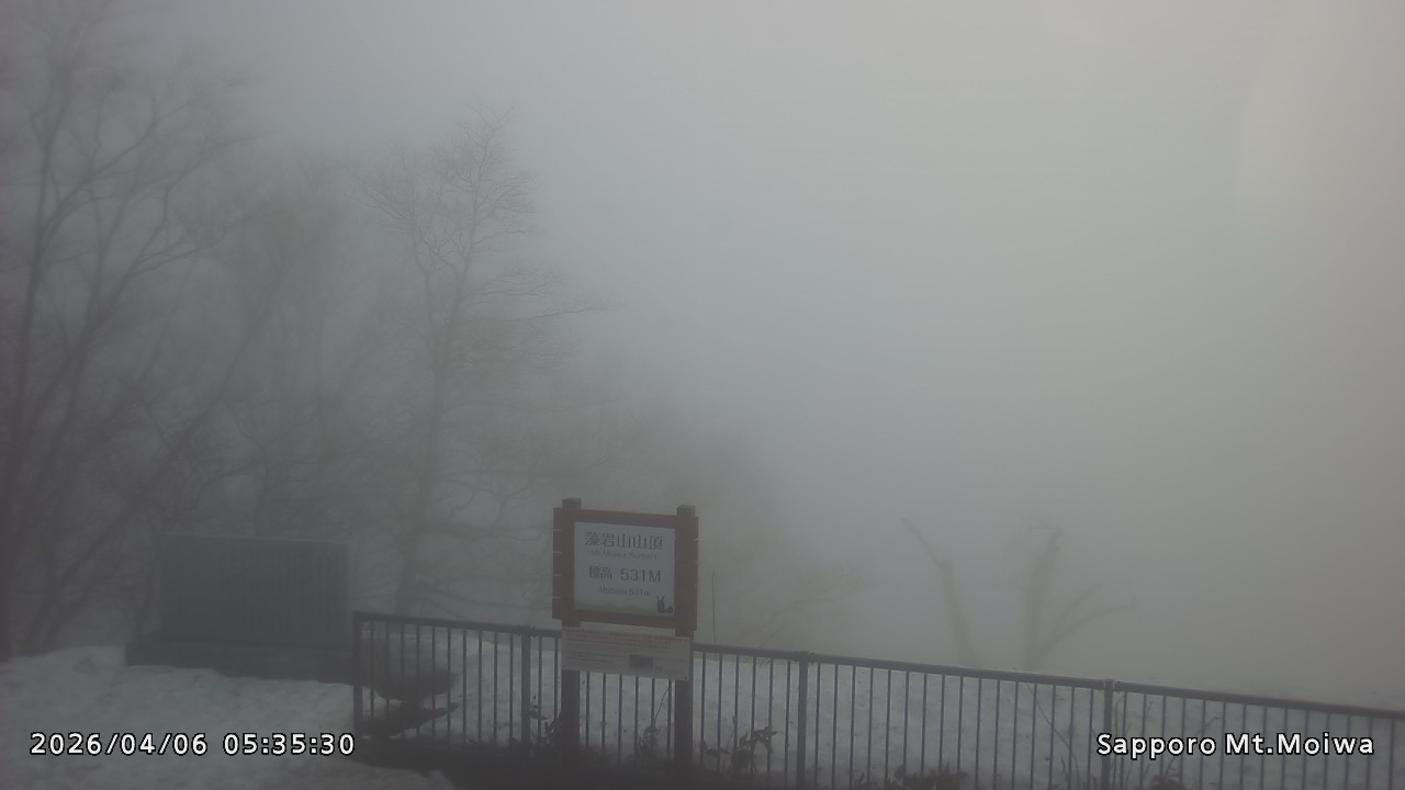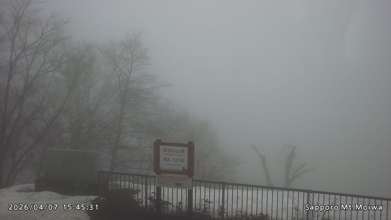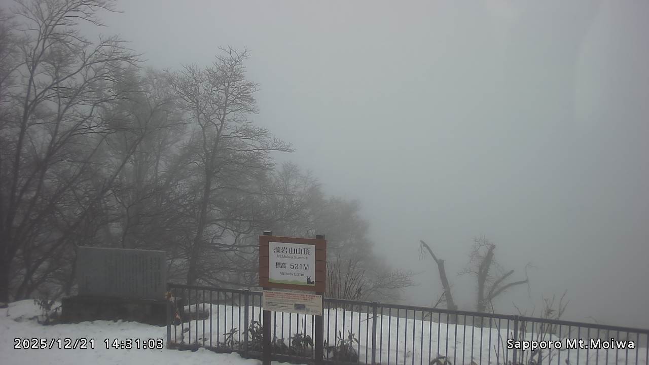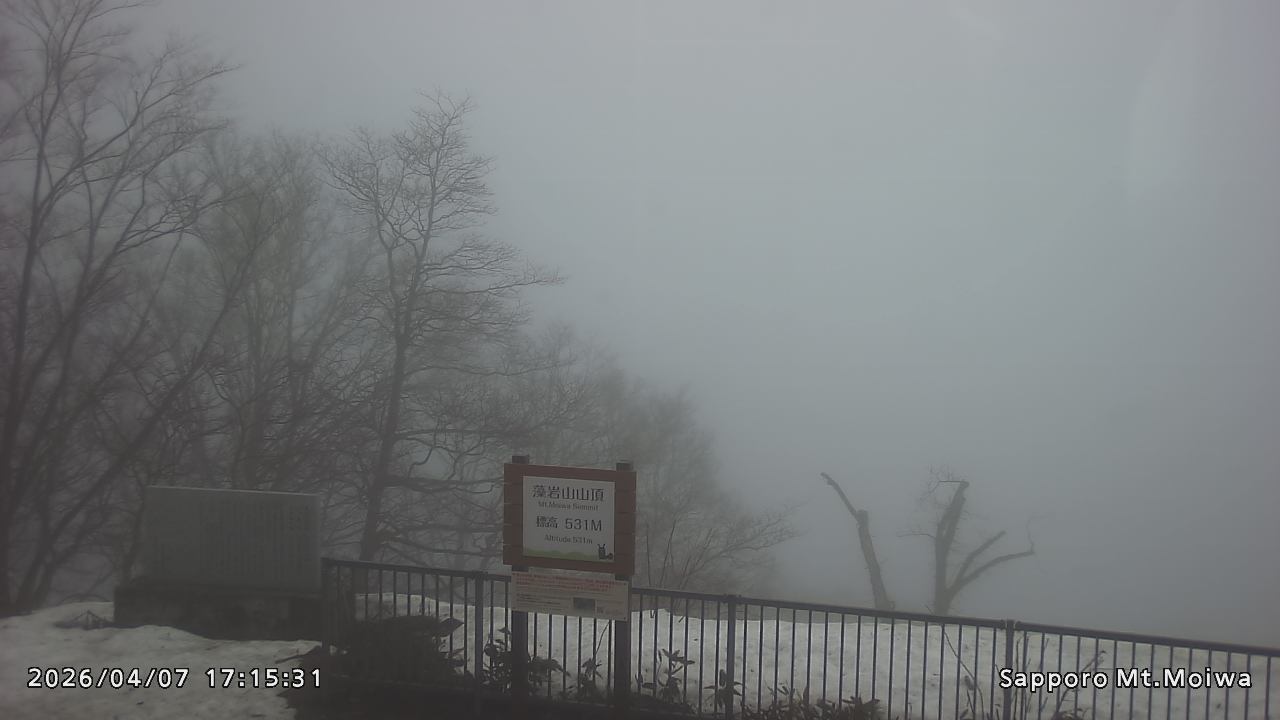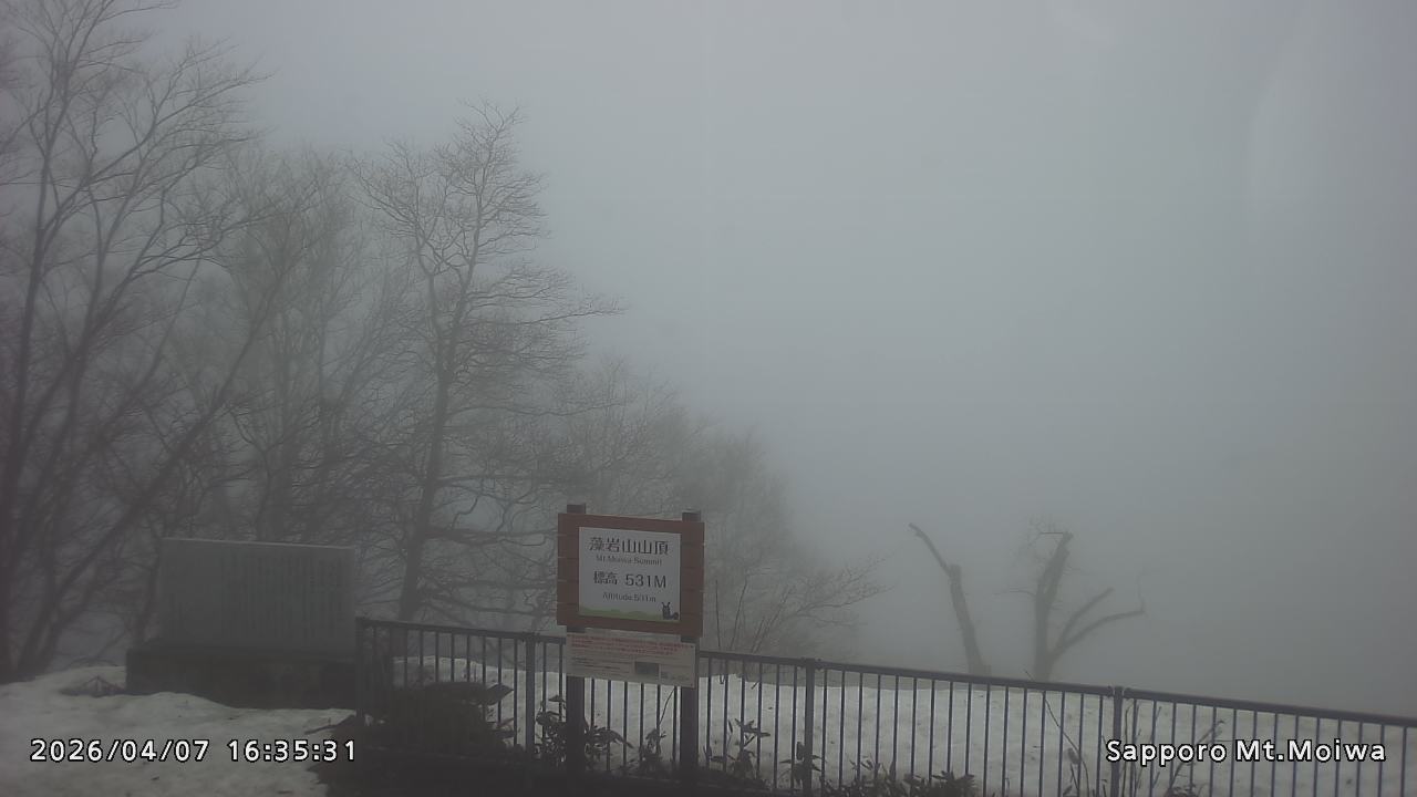もいわ山山頂の標高看板前にカメラを設置しています。