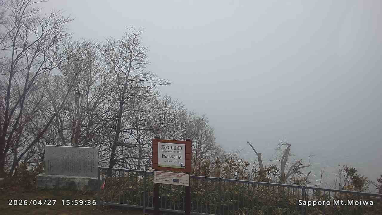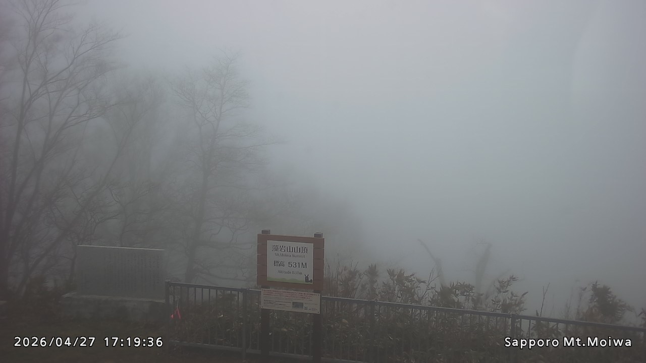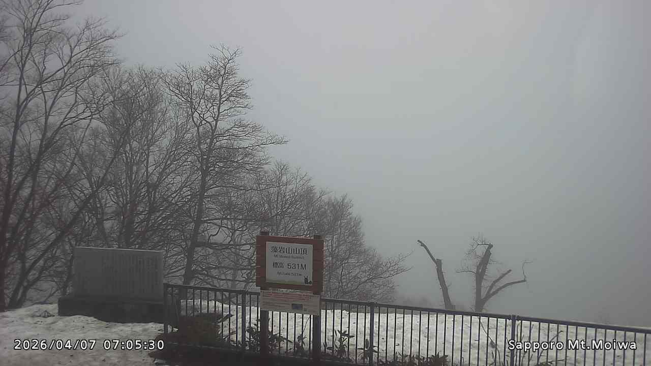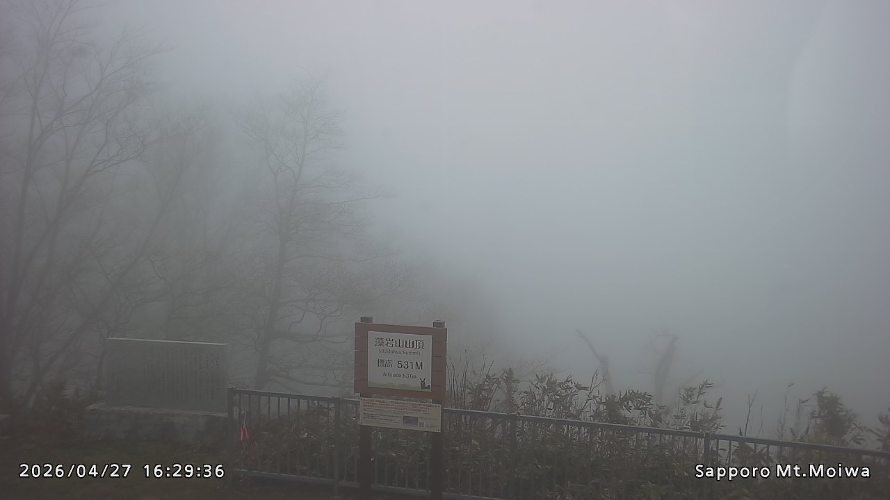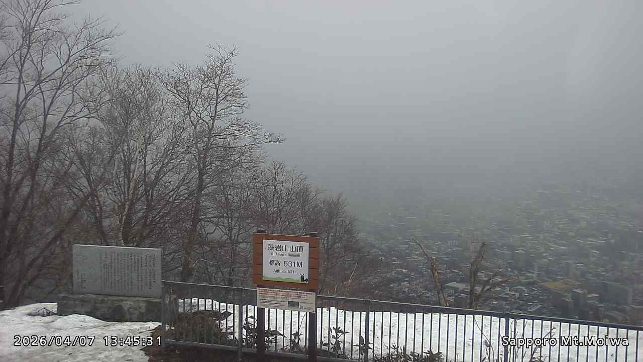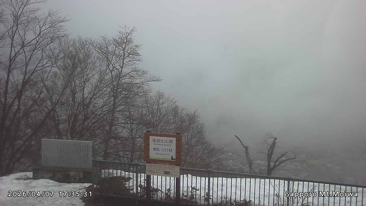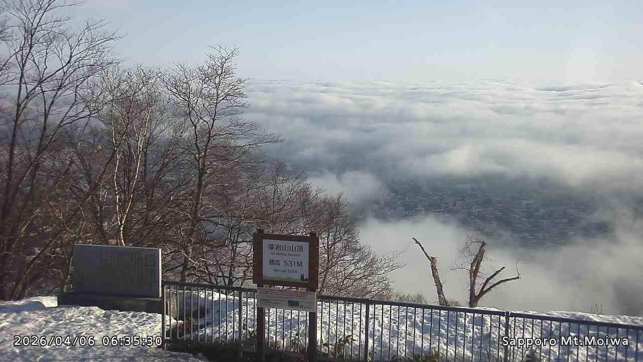 もいわ山山頂の標高看板前にカメラを設置しています。