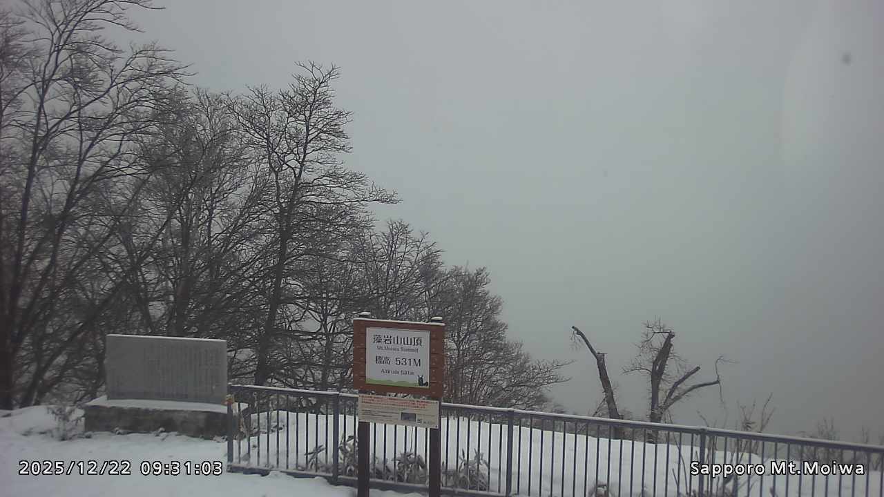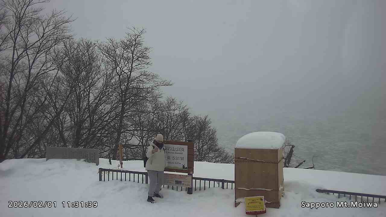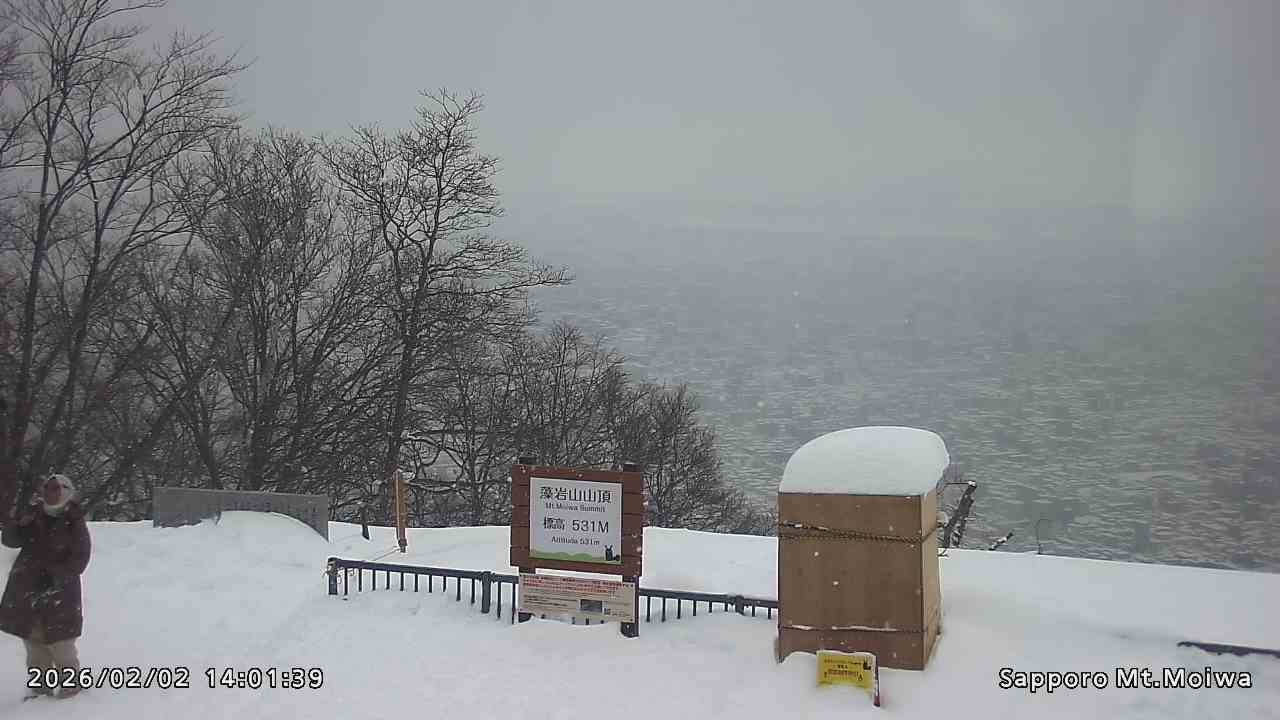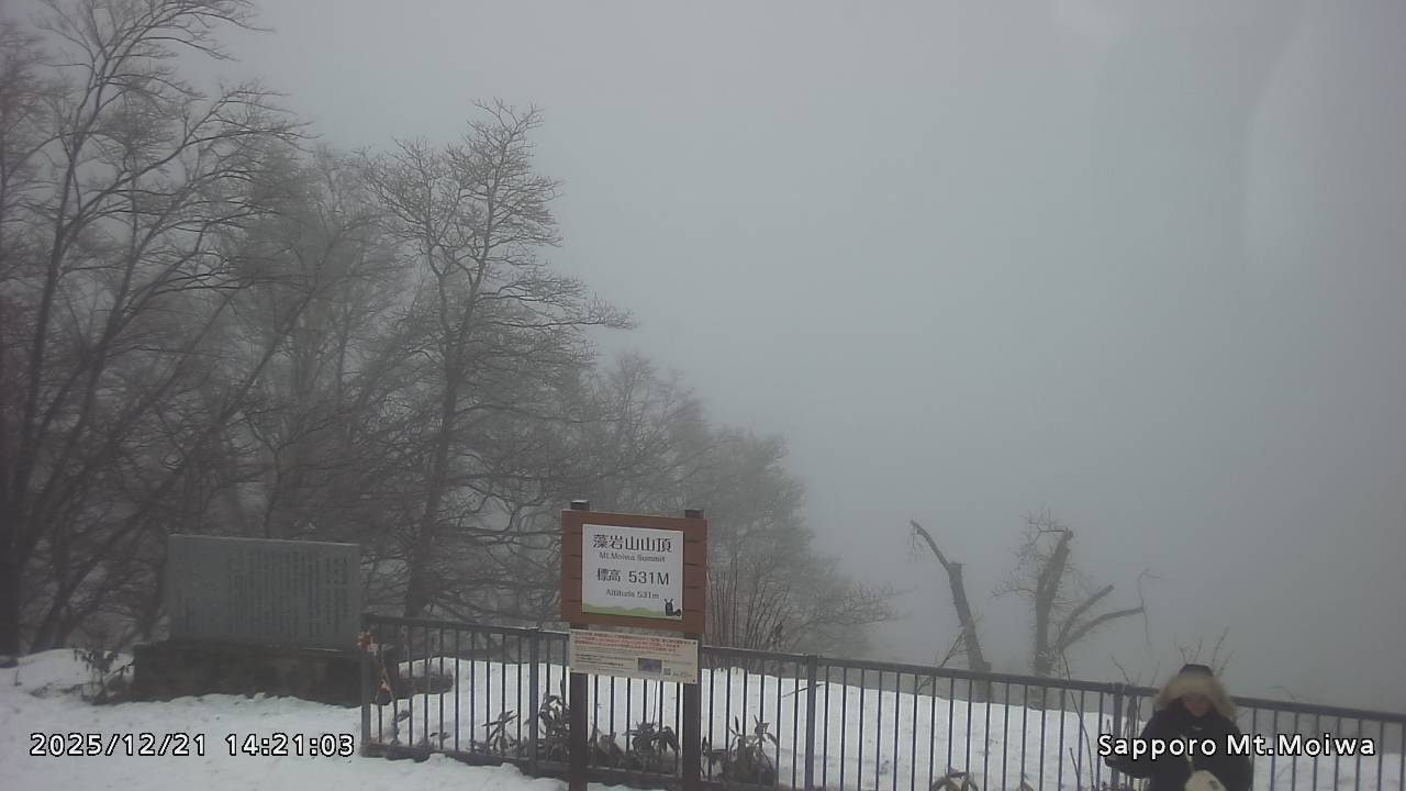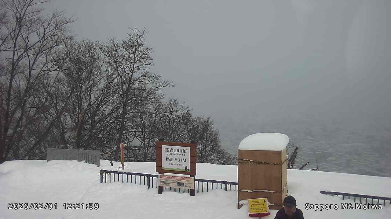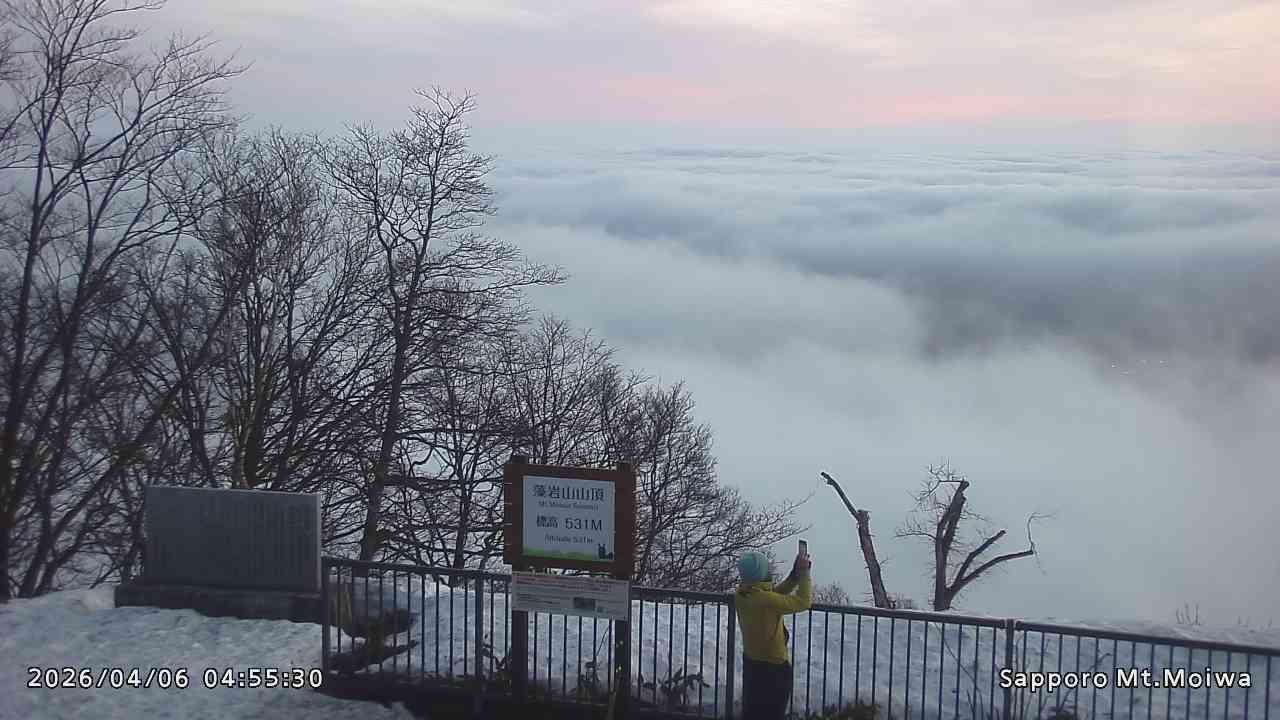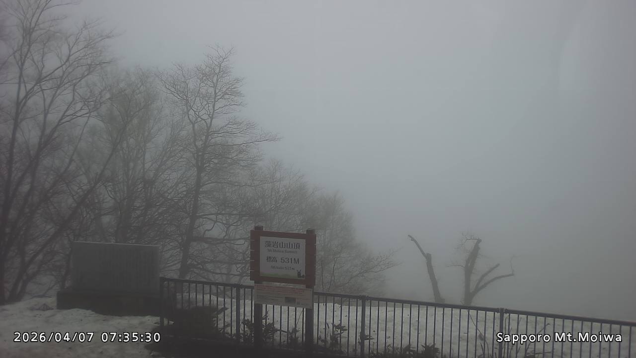もいわ山山頂の標高看板前にカメラを設置しています。