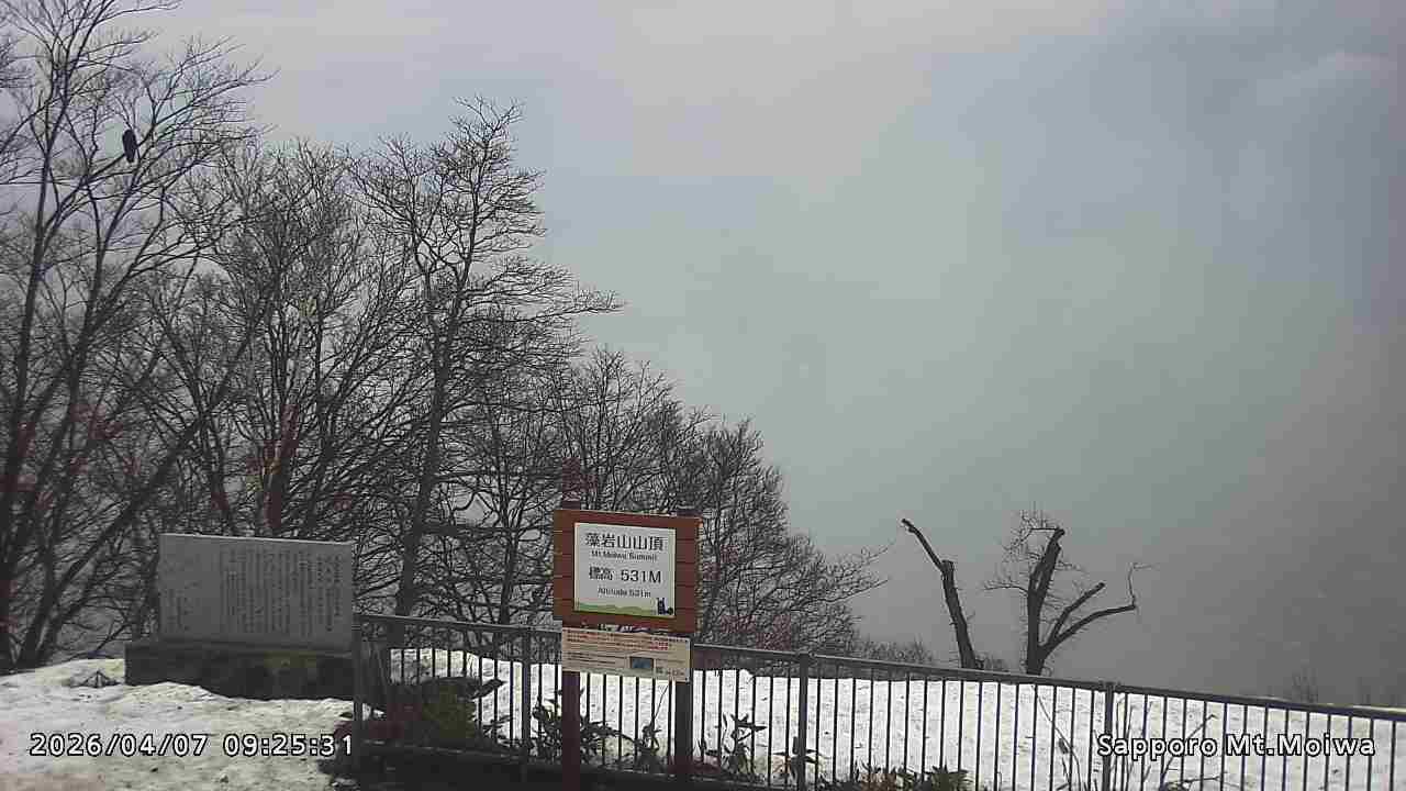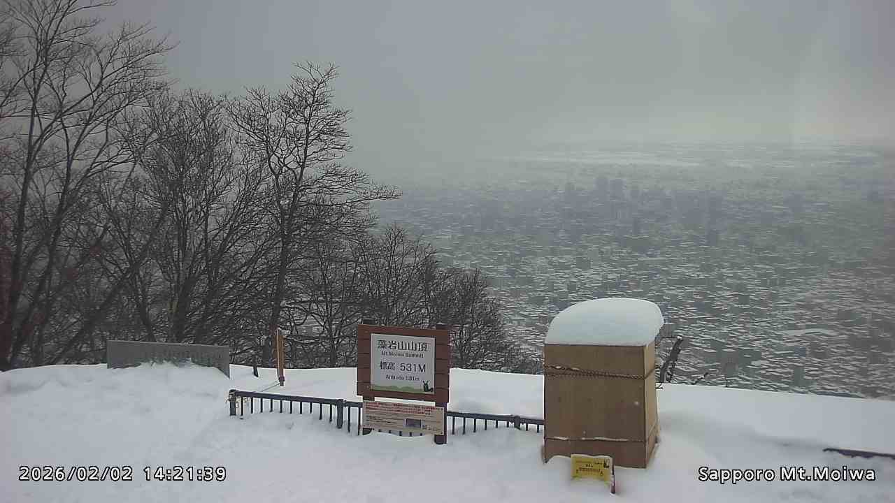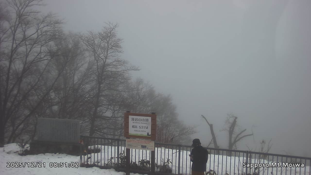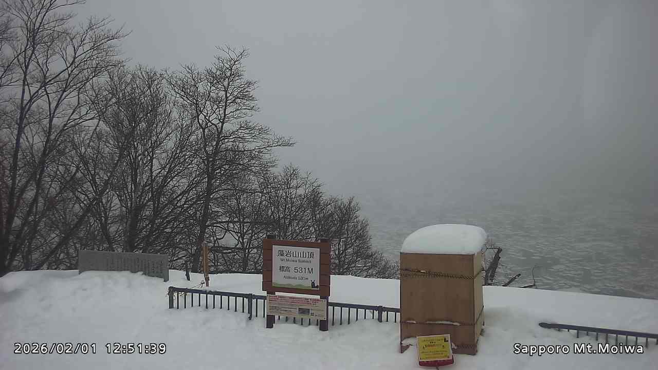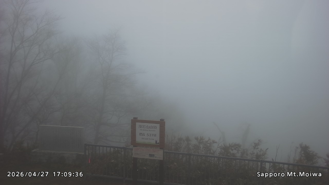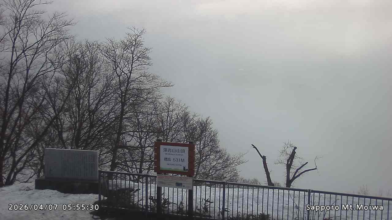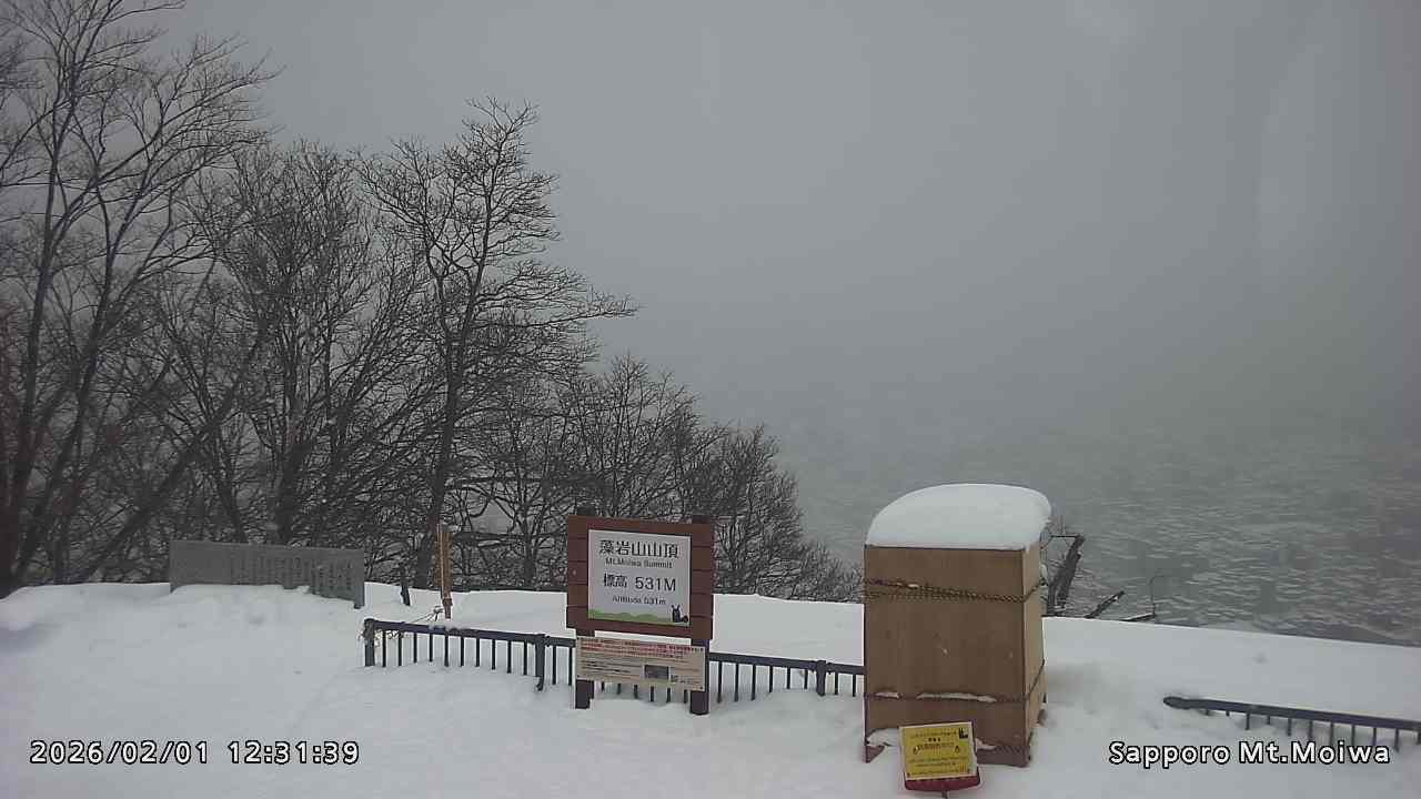 もいわ山山頂の標高看板前にカメラを設置しています。