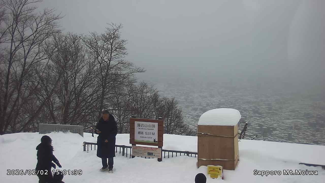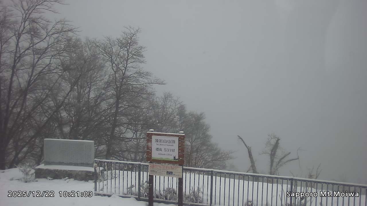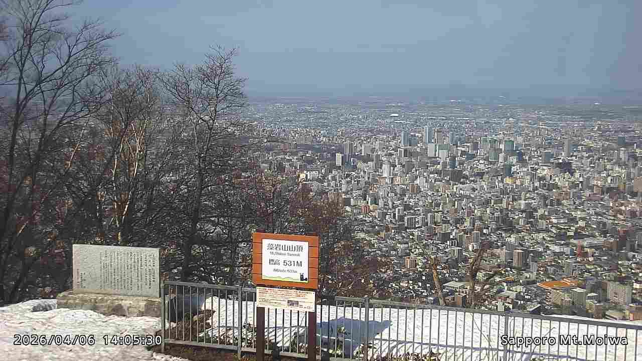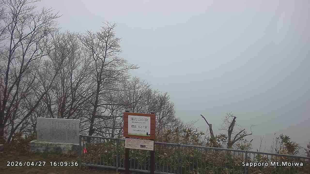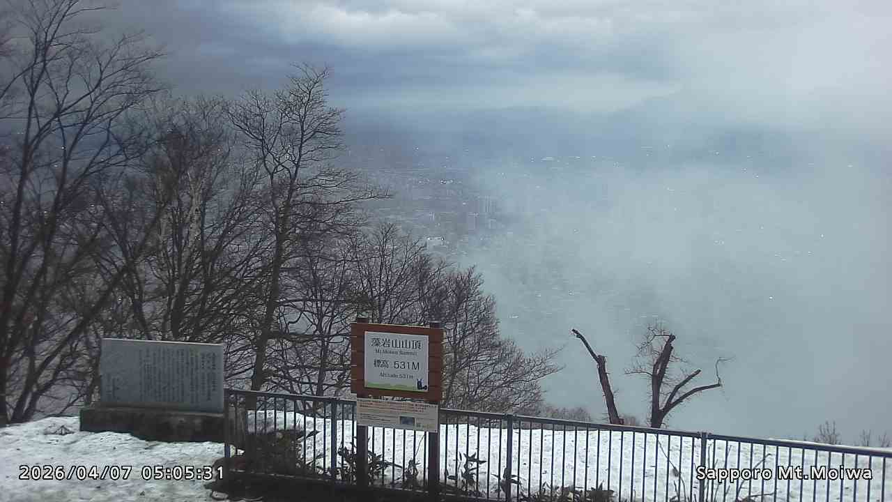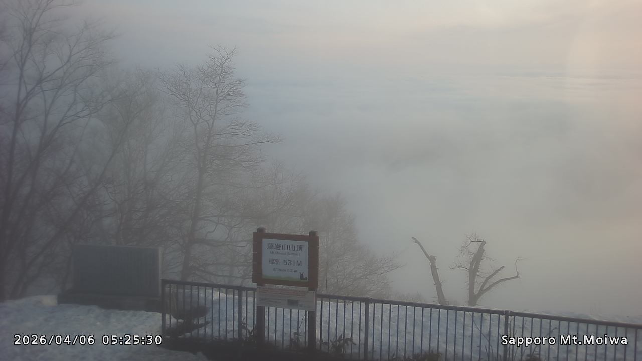 もいわ山山頂の標高看板前にカメラを設置しています。