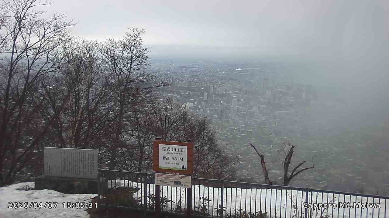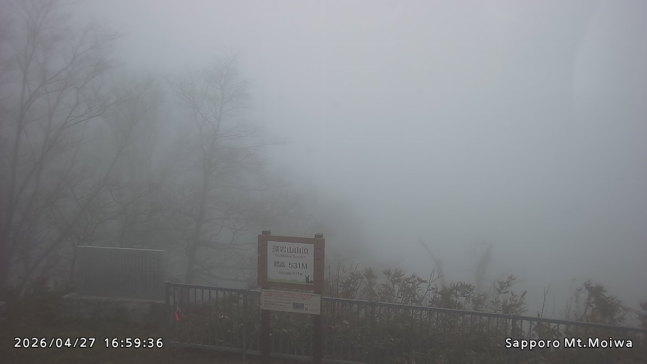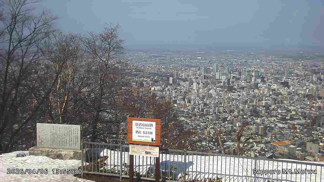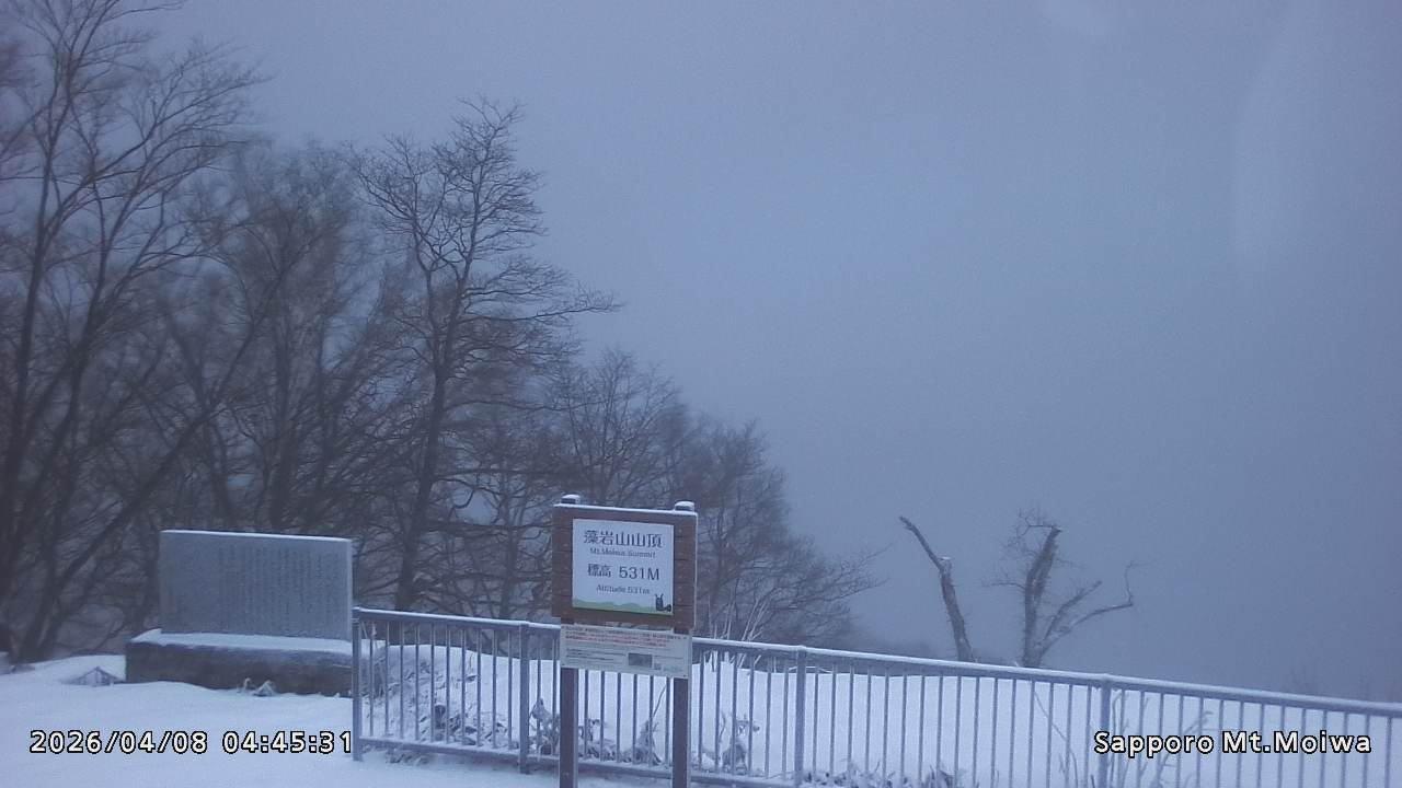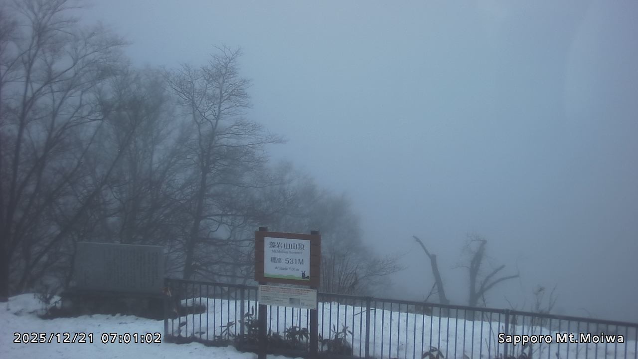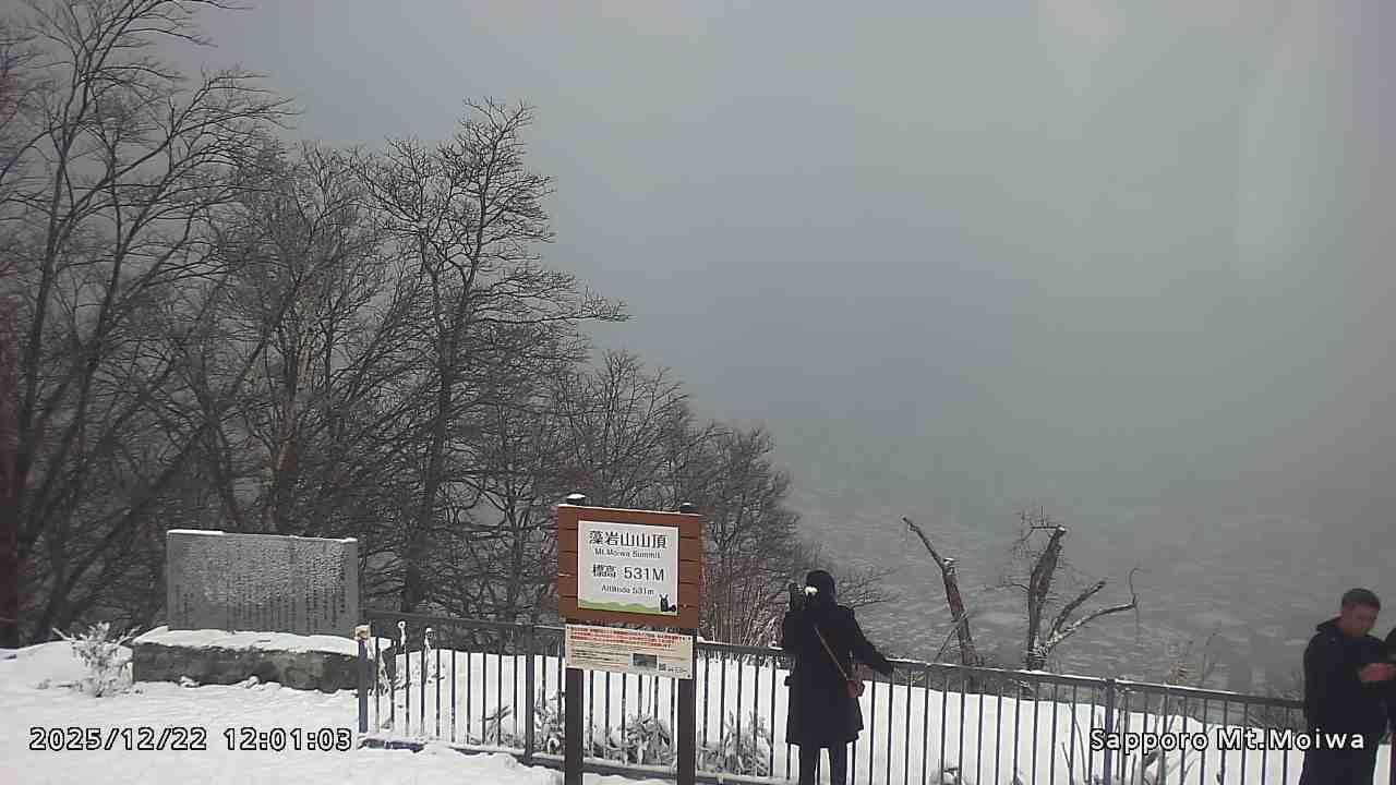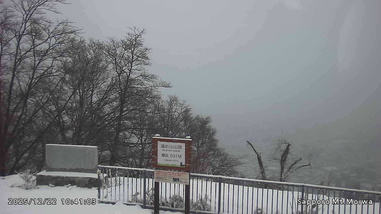 もいわ山山頂の標高看板前にカメラを設置しています。