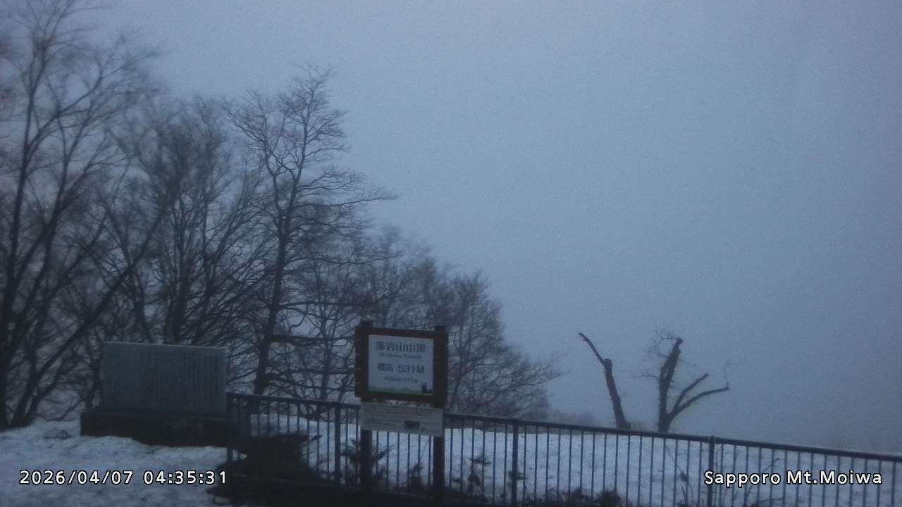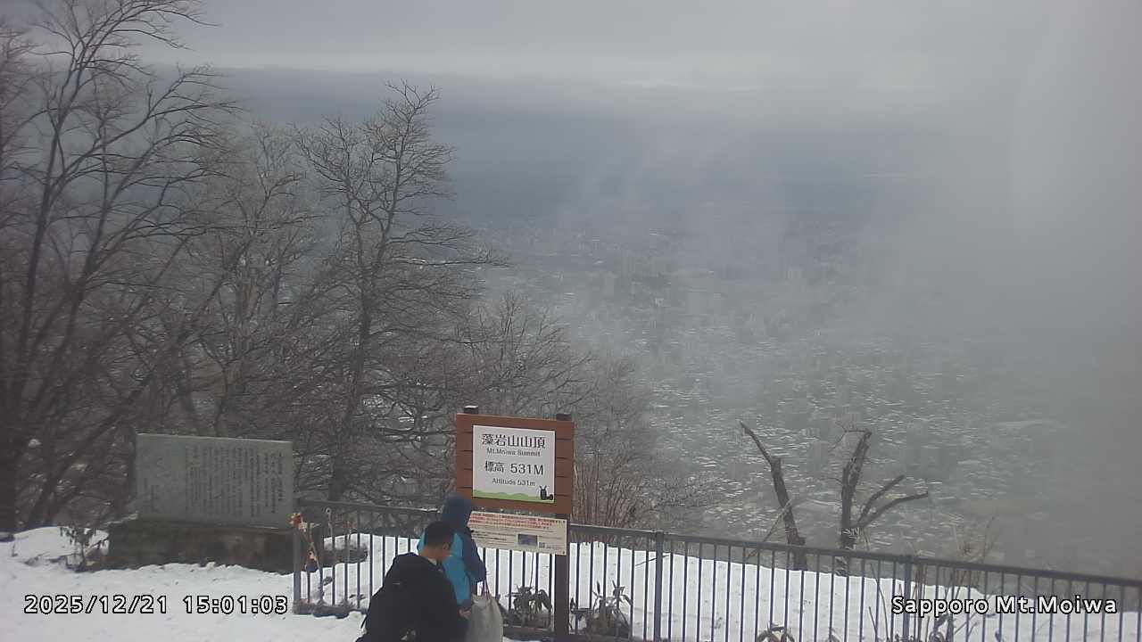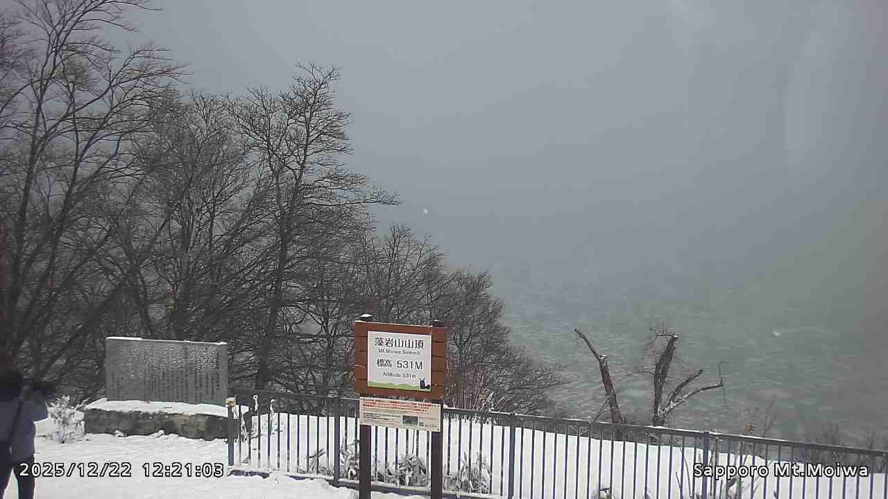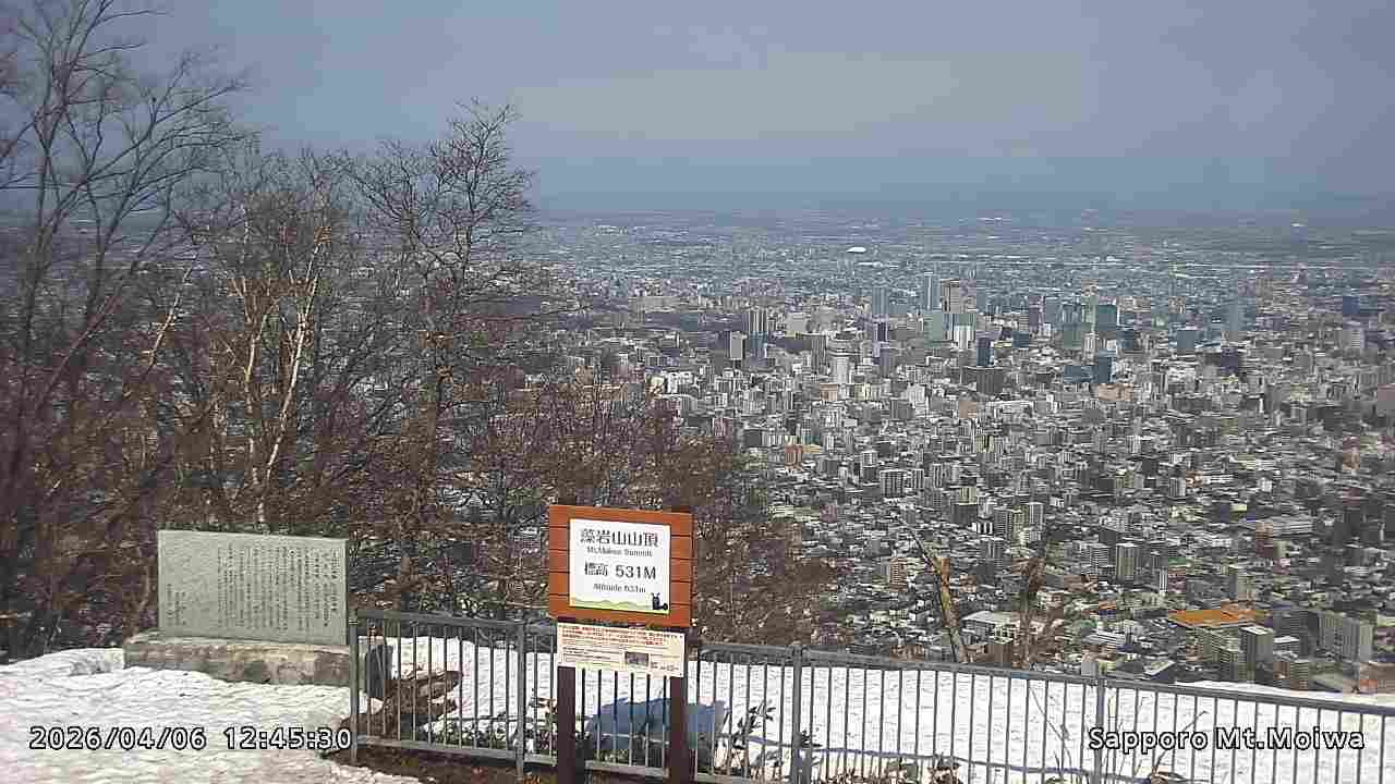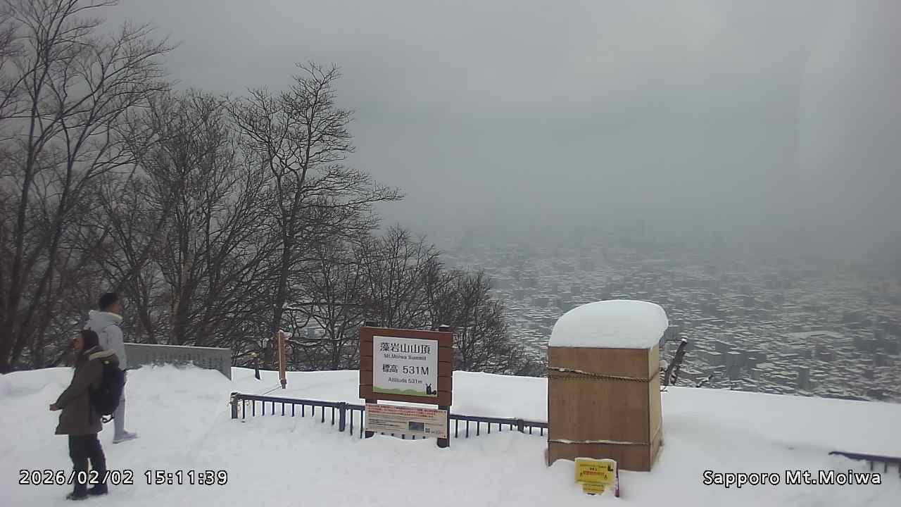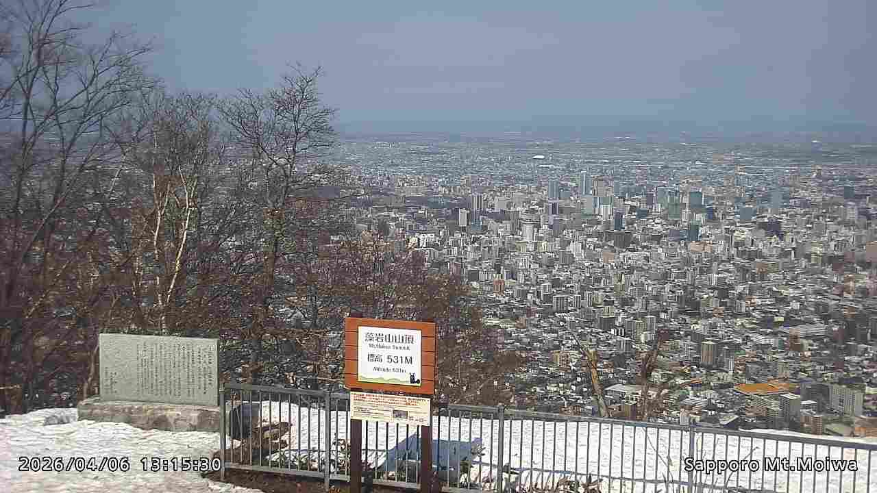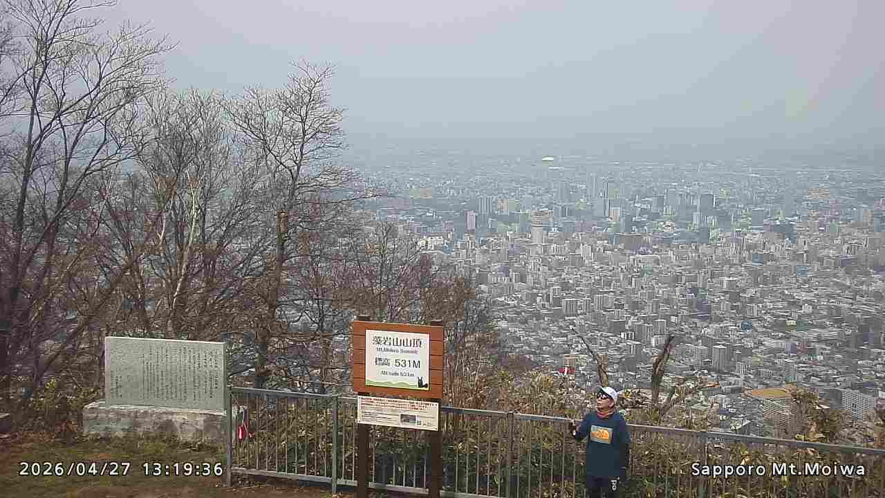 もいわ山山頂の標高看板前にカメラを設置しています。