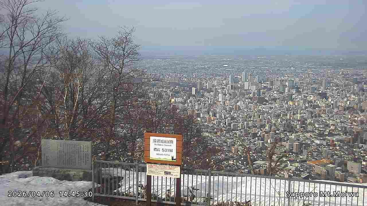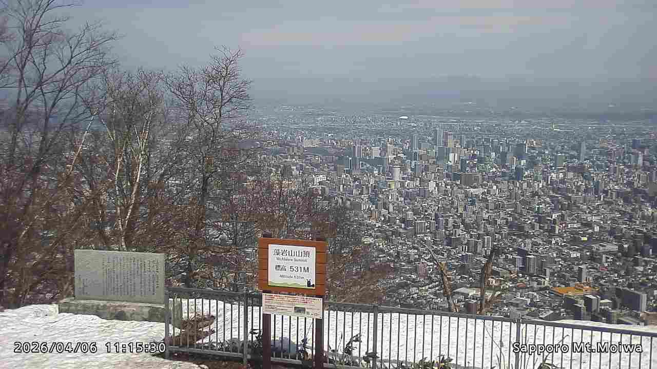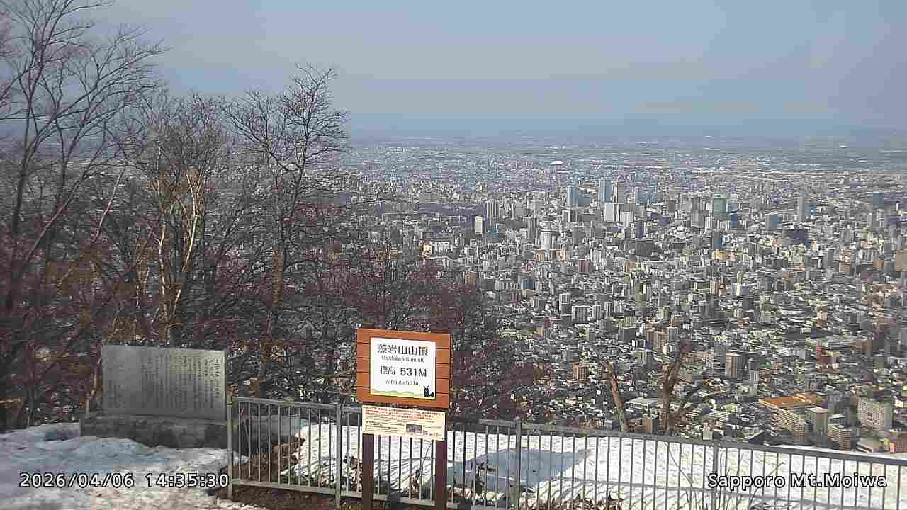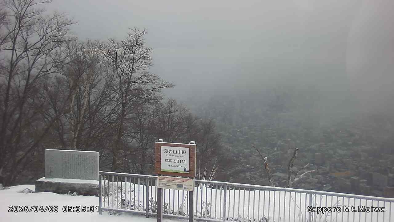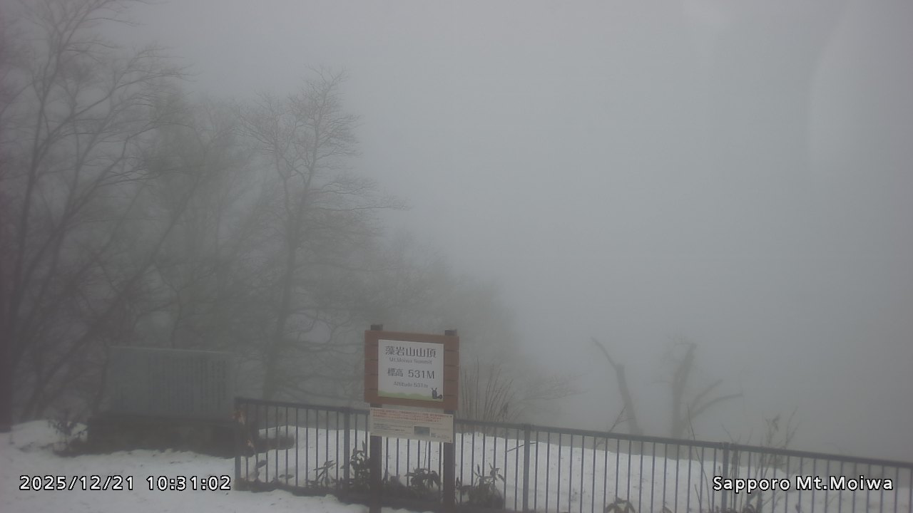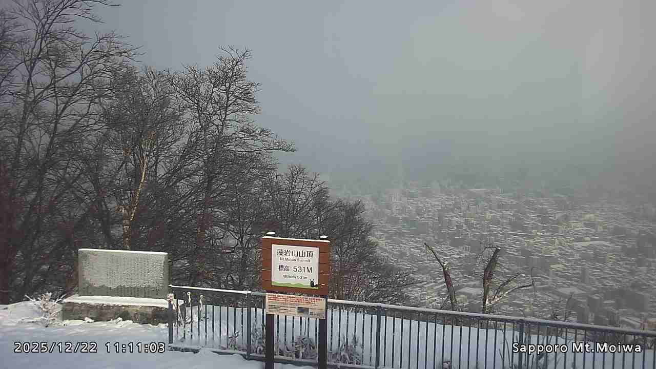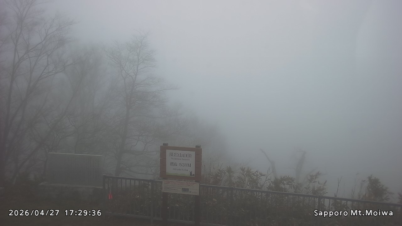 もいわ山山頂の標高看板前にカメラを設置しています。