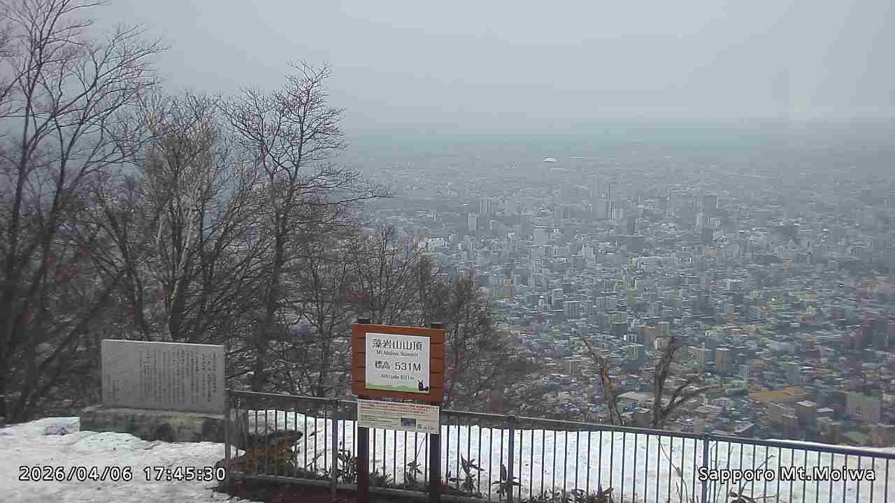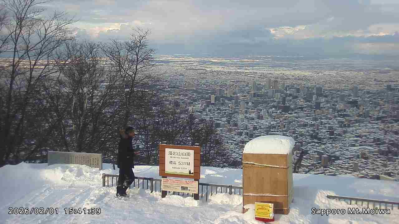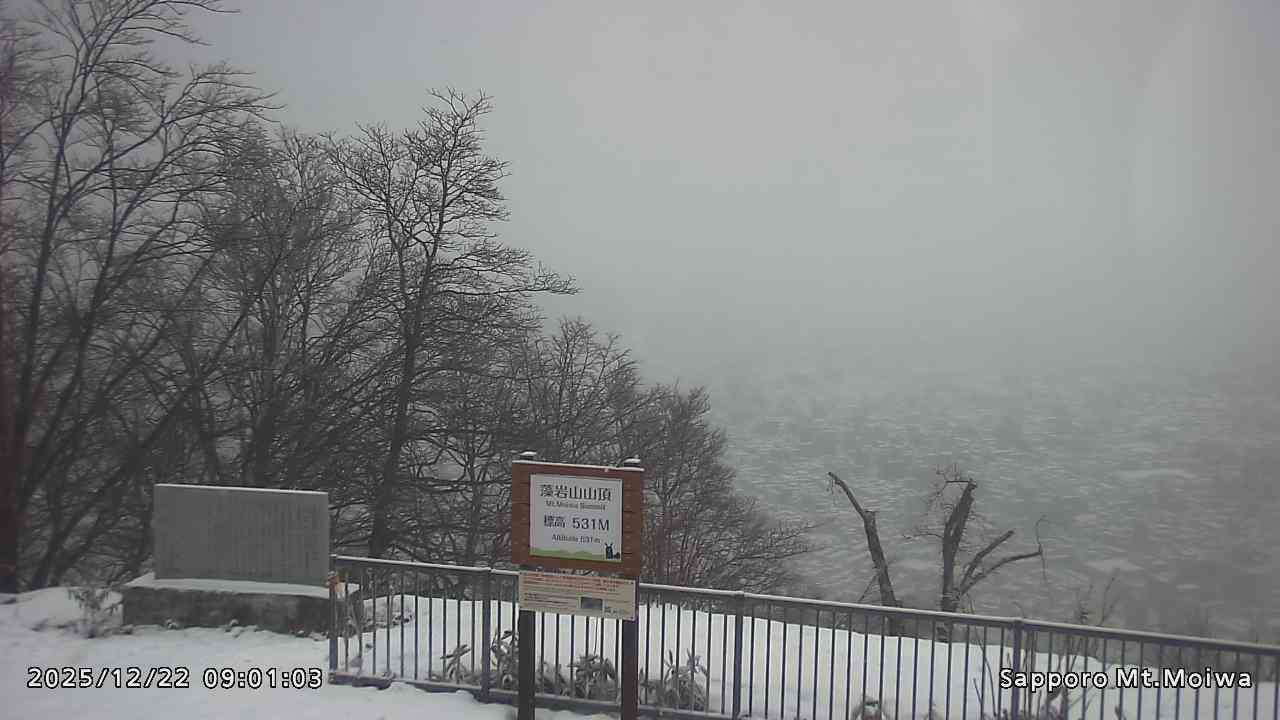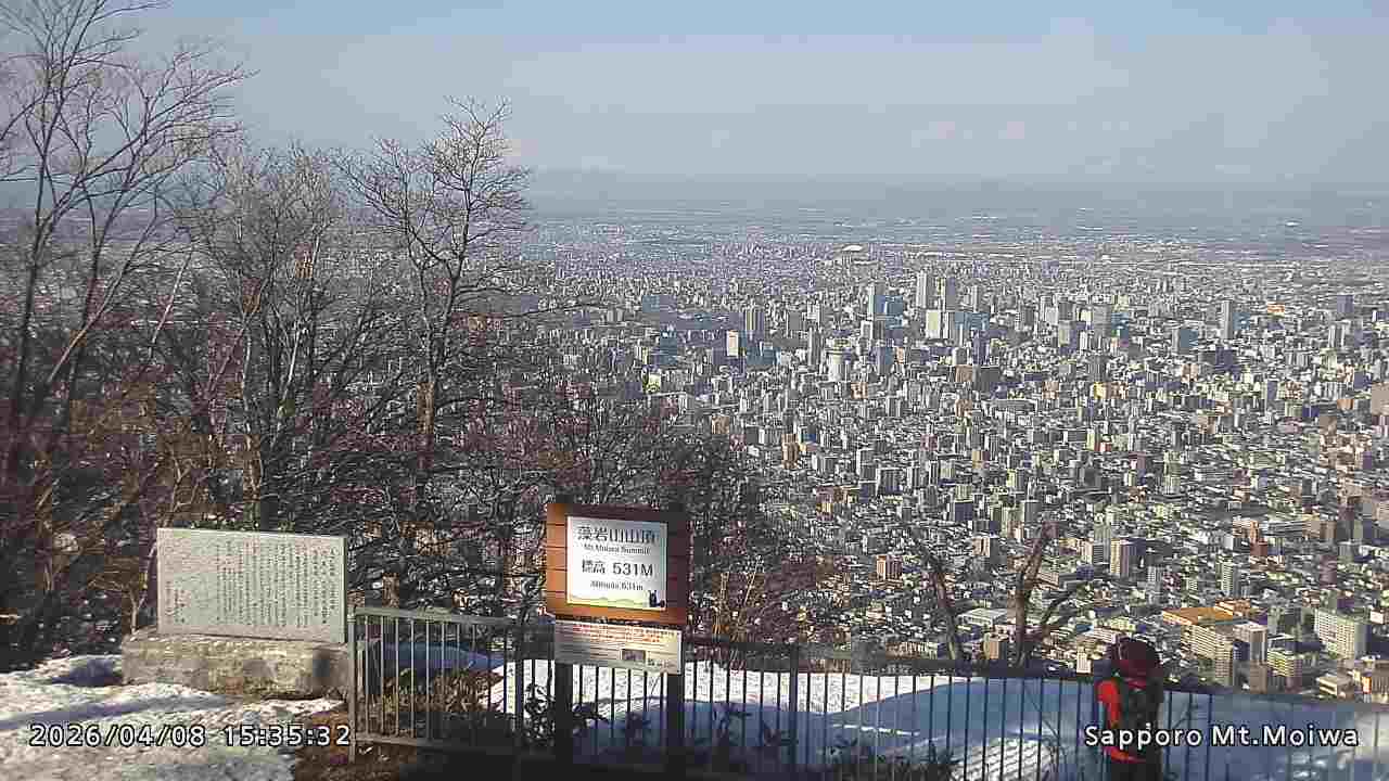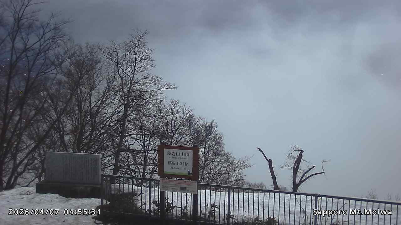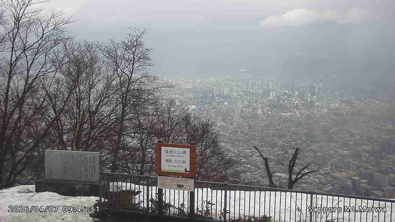 もいわ山山頂の標高看板前にカメラを設置しています。
