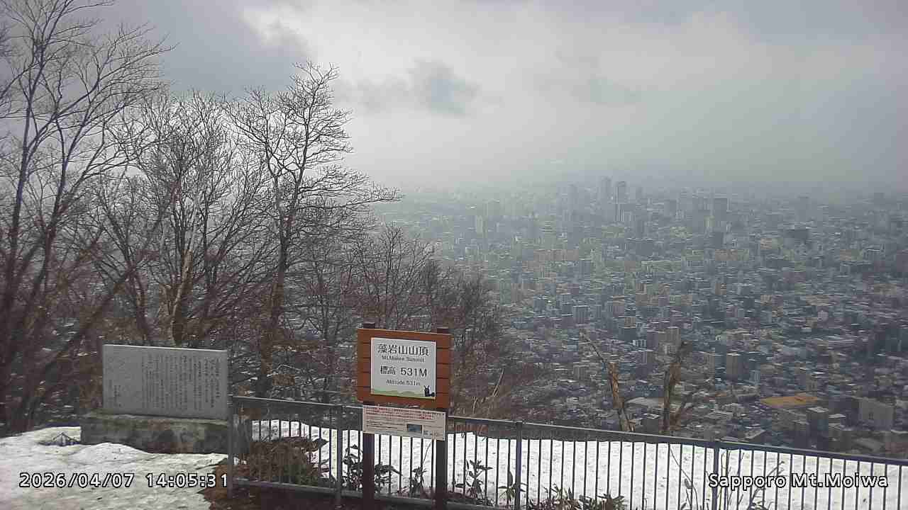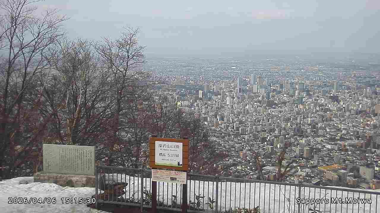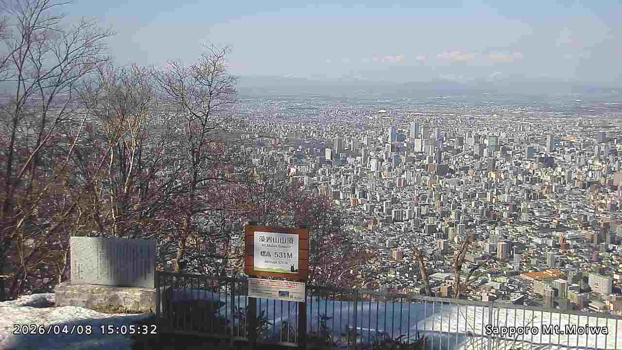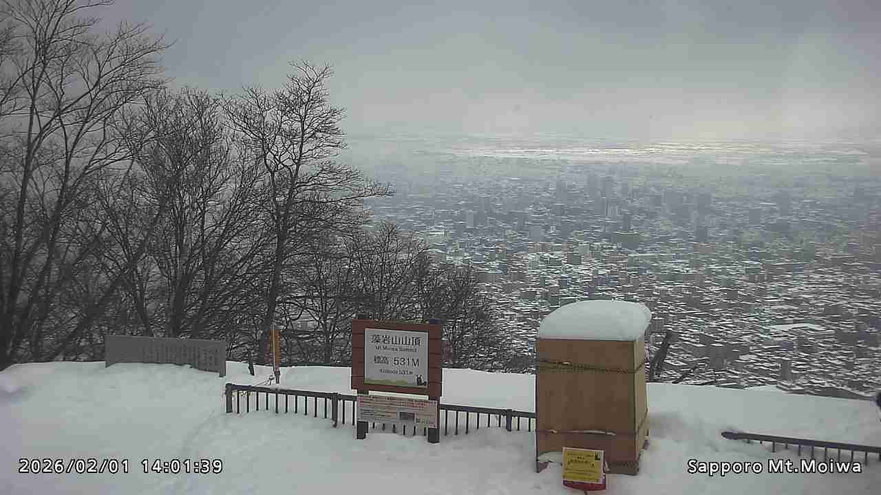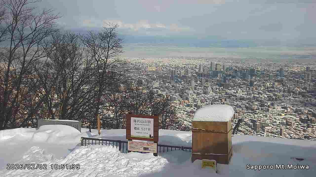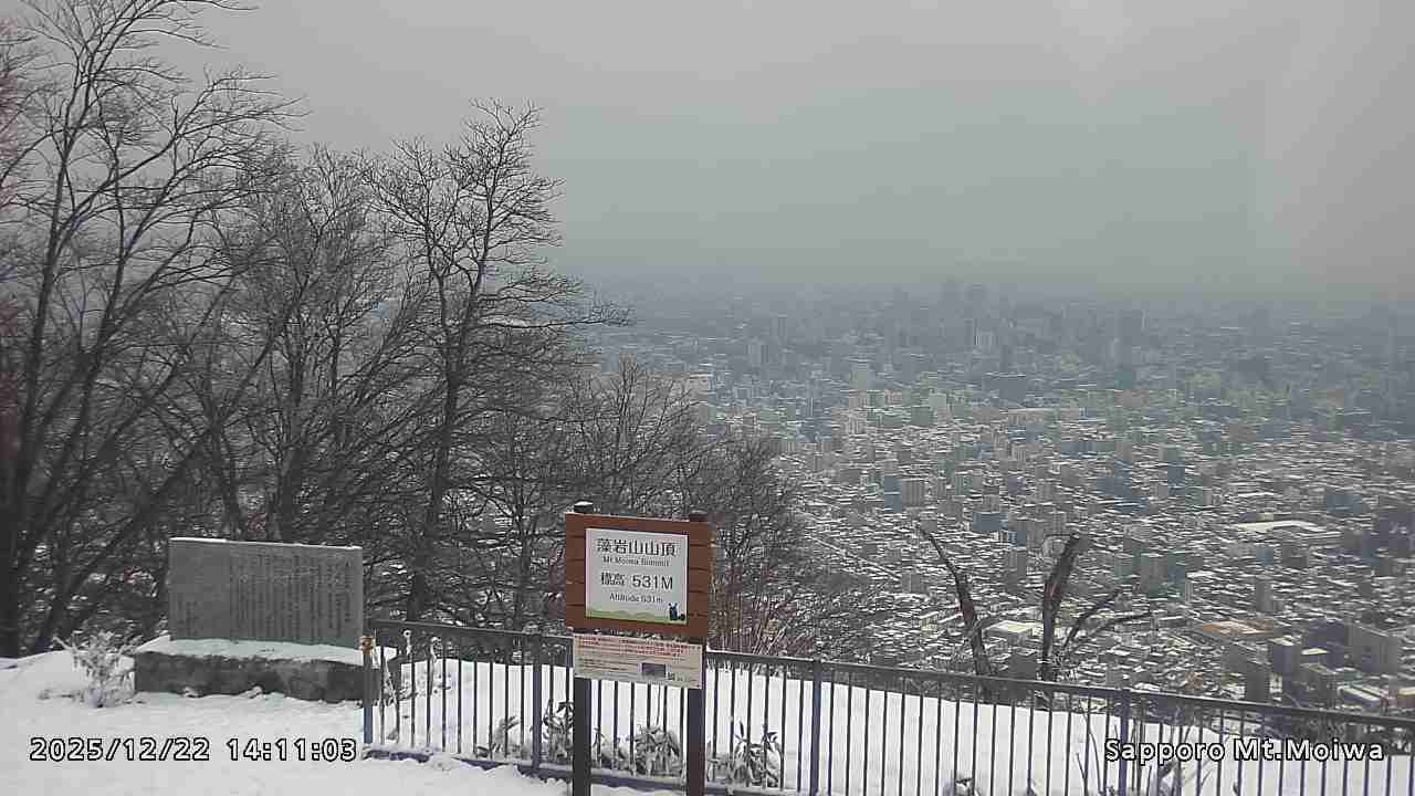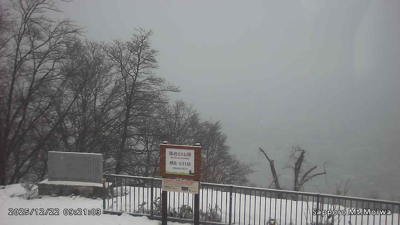 もいわ山山頂の標高看板前にカメラを設置しています。