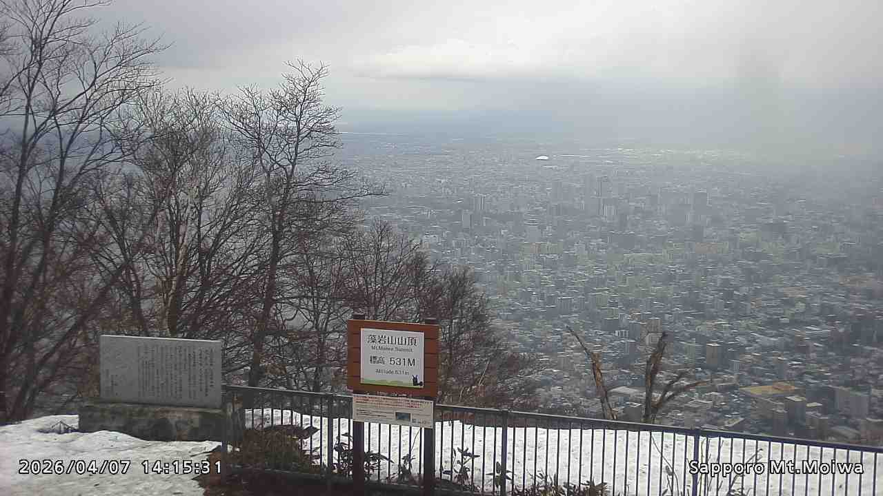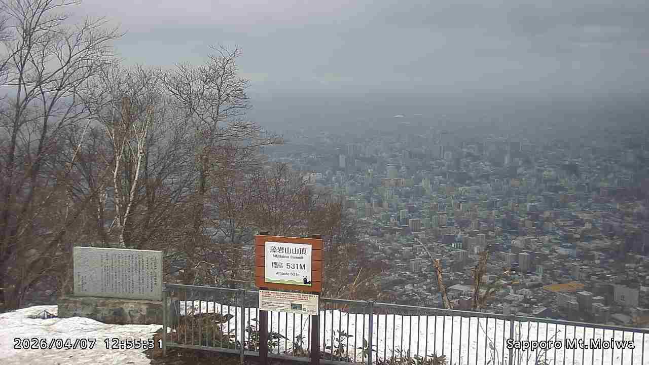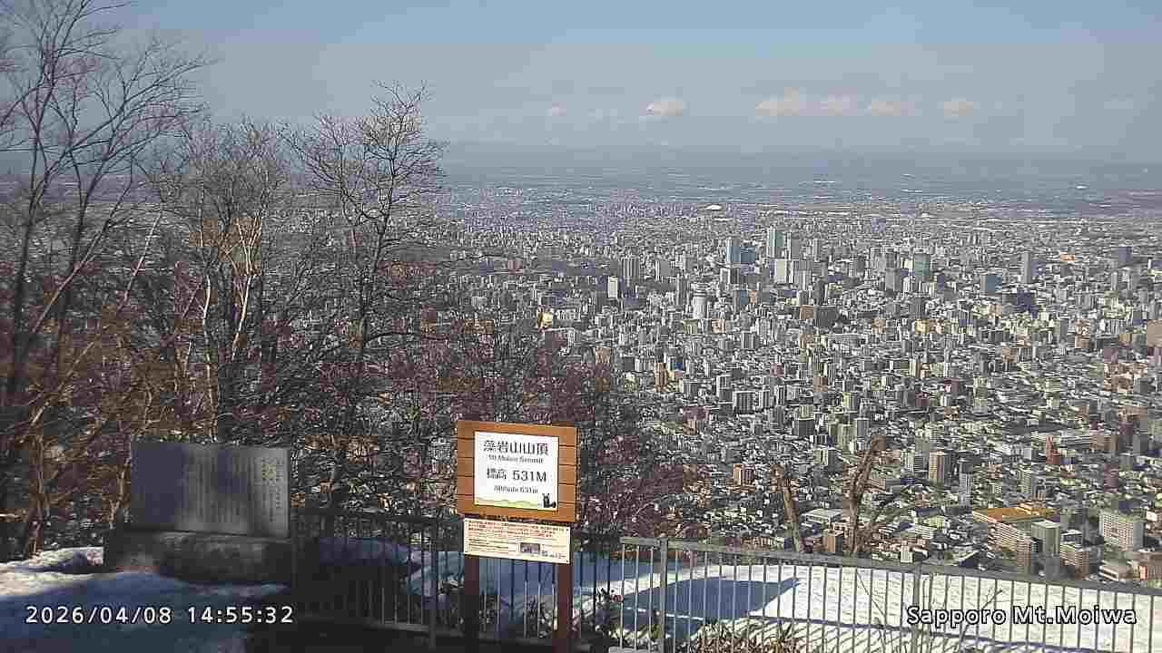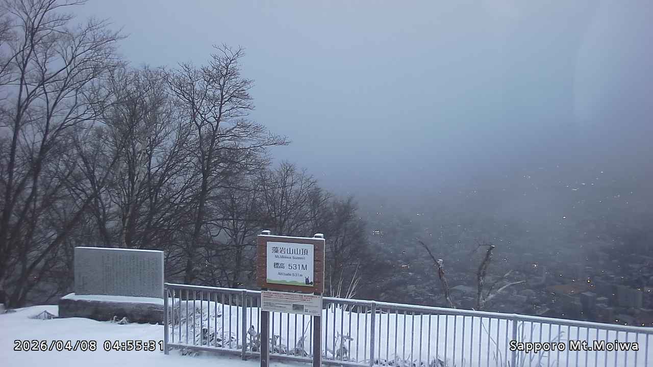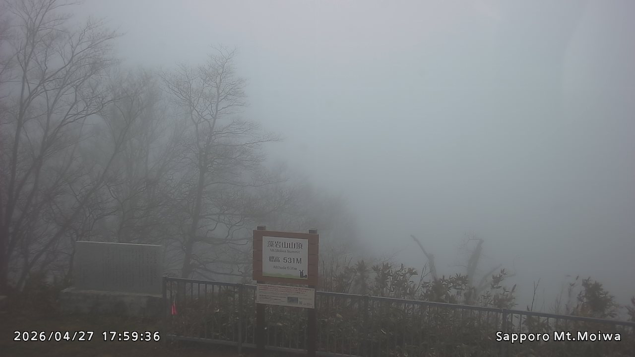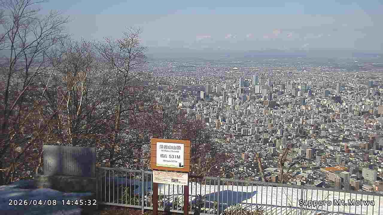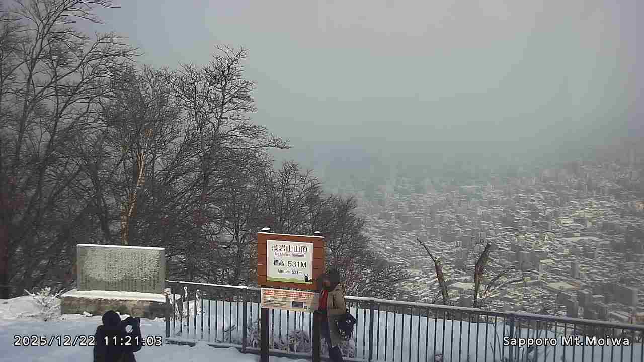もいわ山山頂の標高看板前にカメラを設置しています。