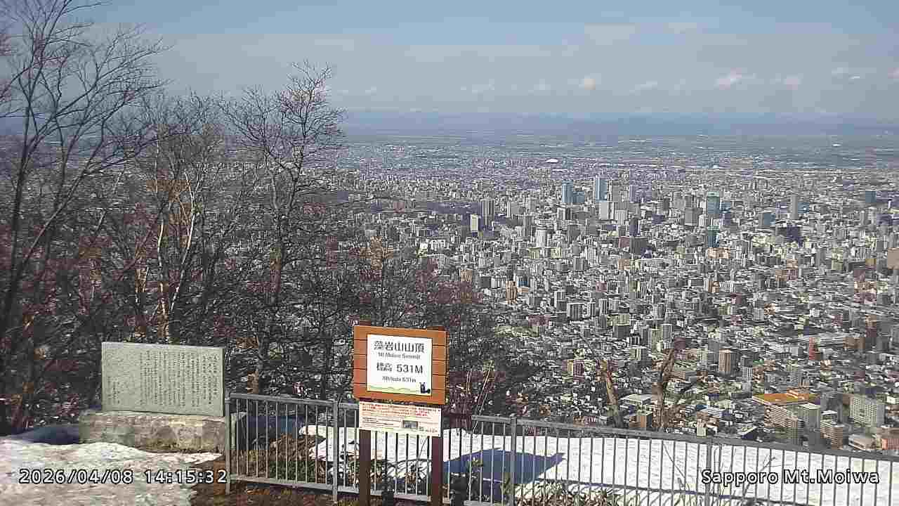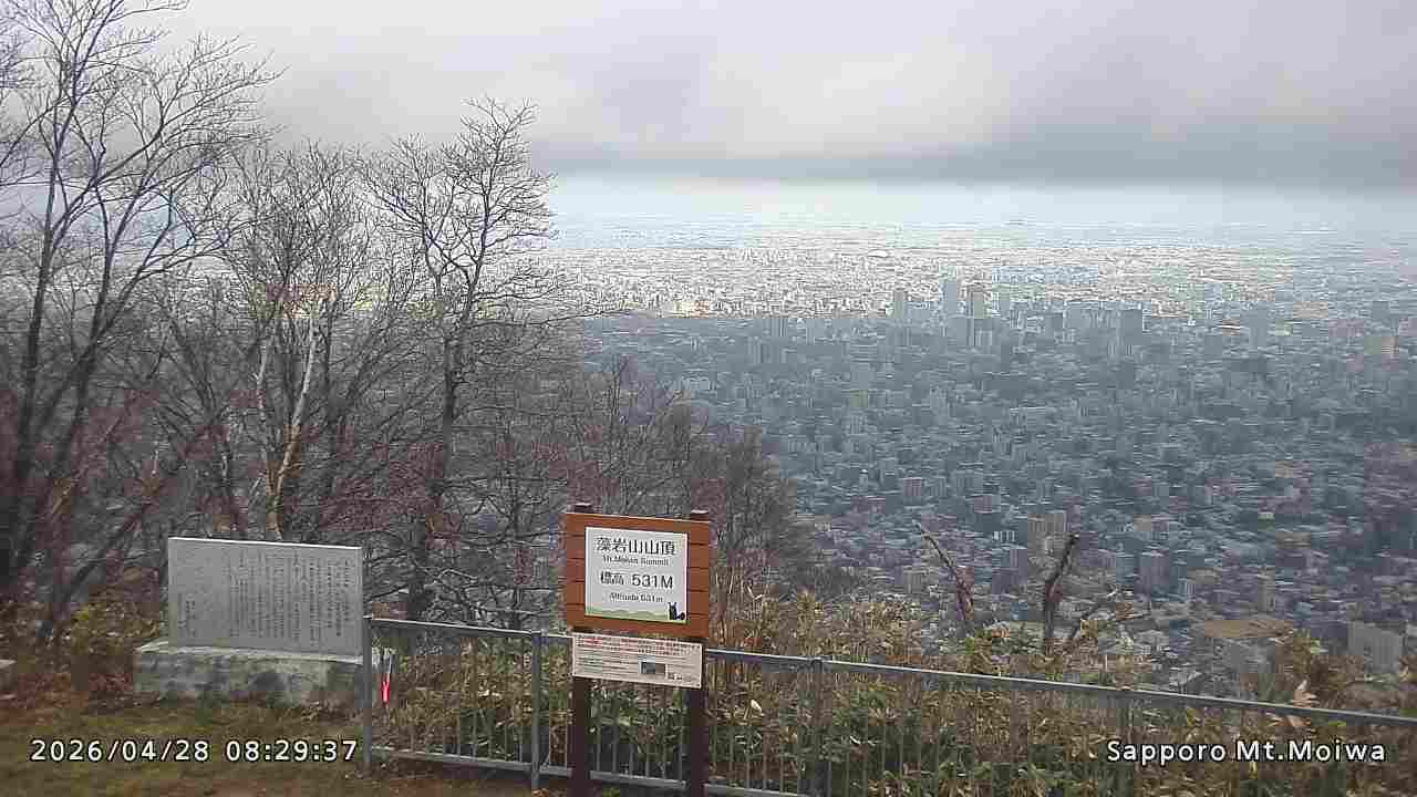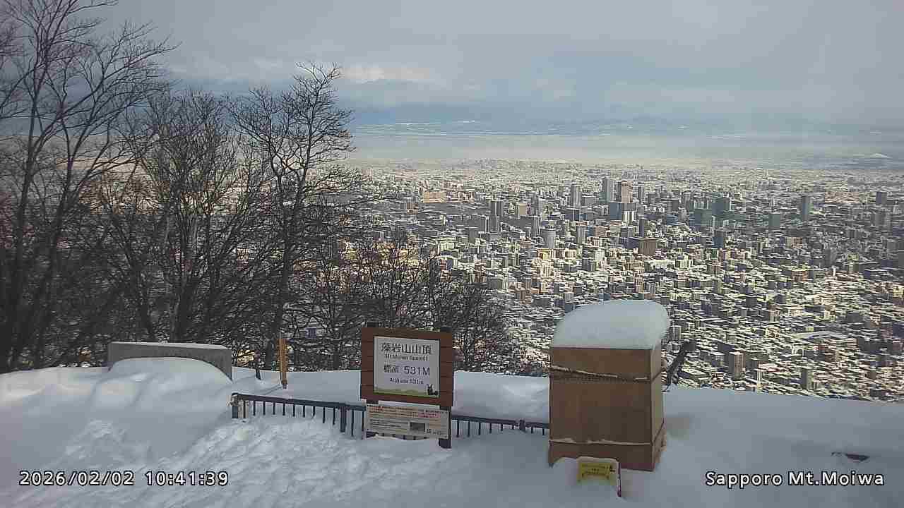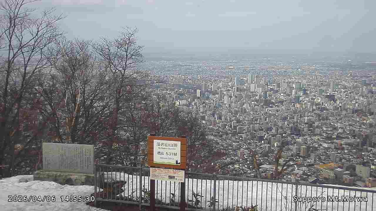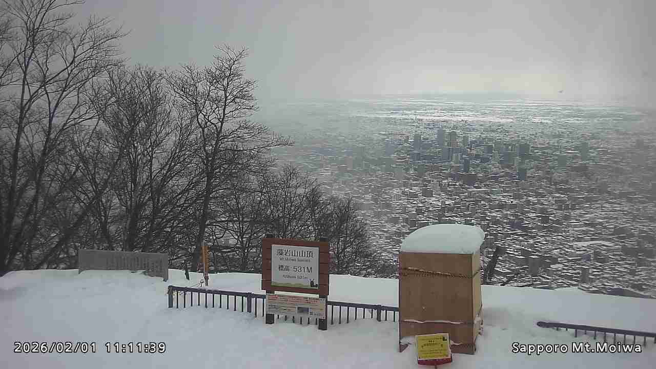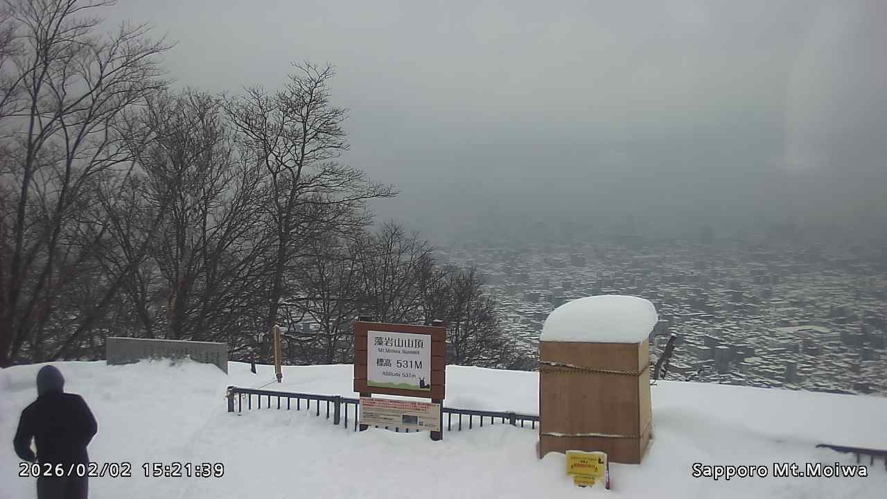 もいわ山山頂の標高看板前にカメラを設置しています。