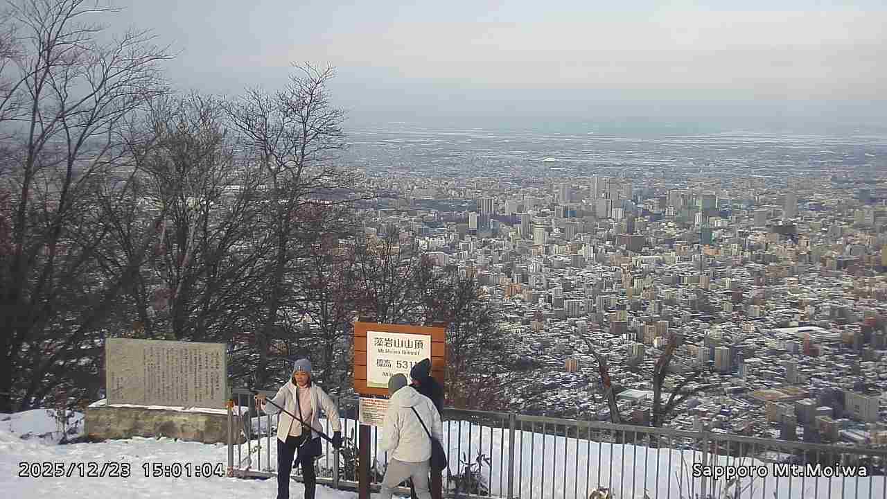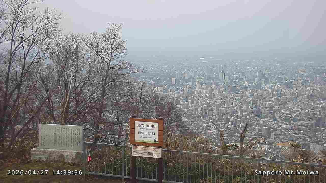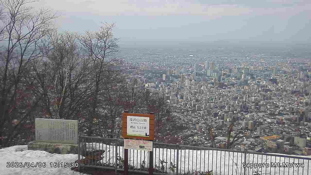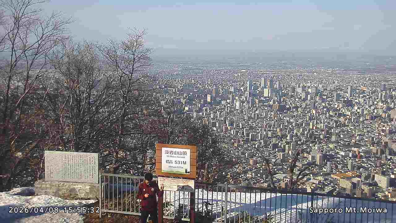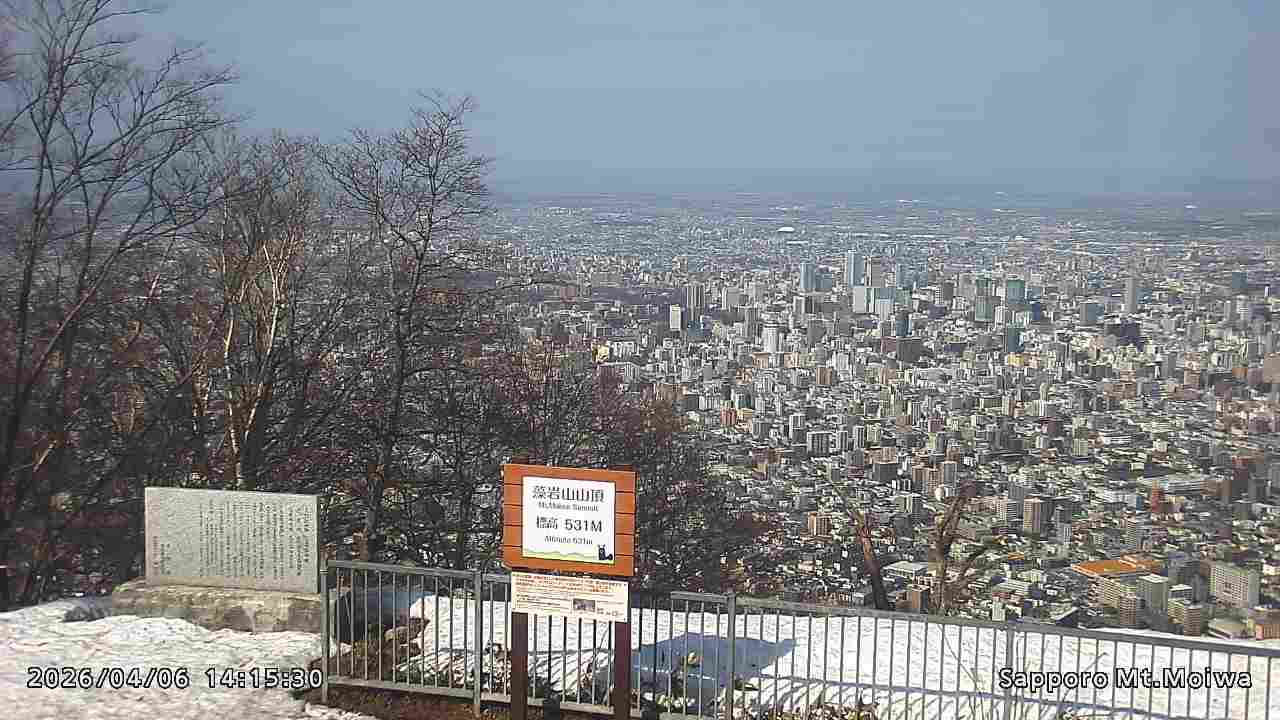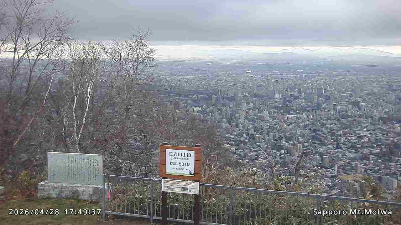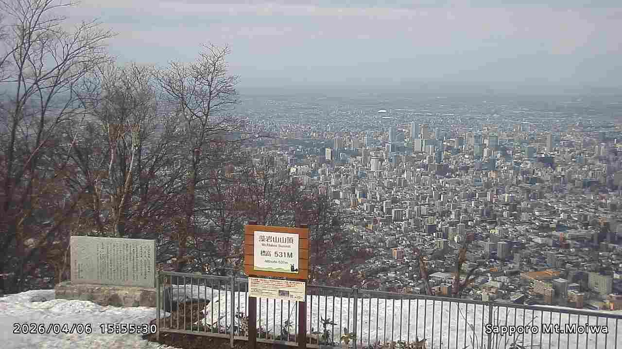 もいわ山山頂の標高看板前にカメラを設置しています。