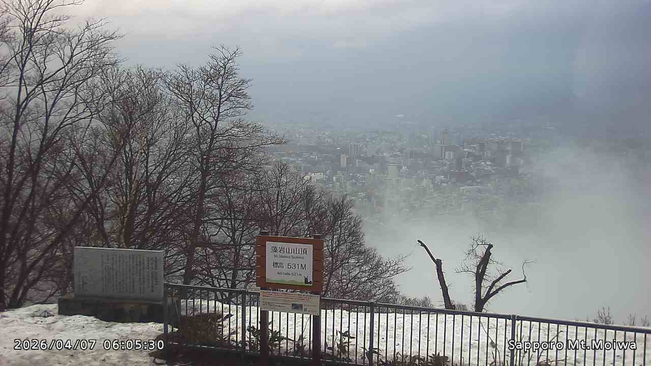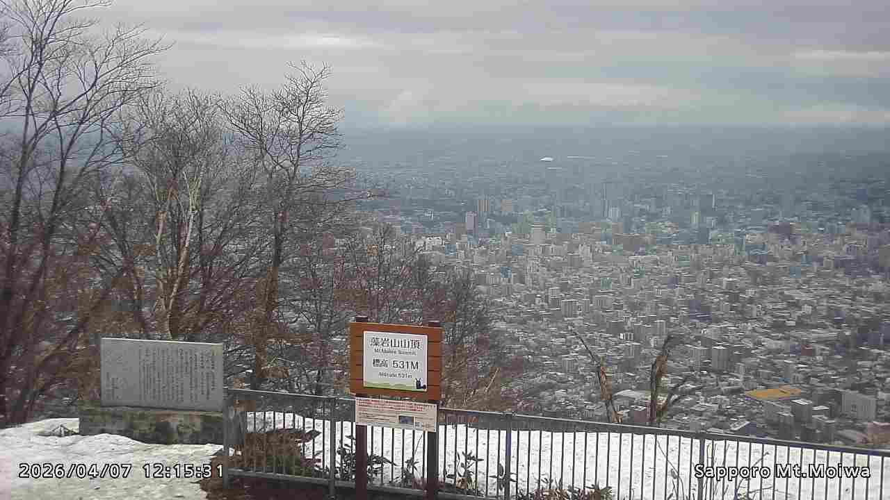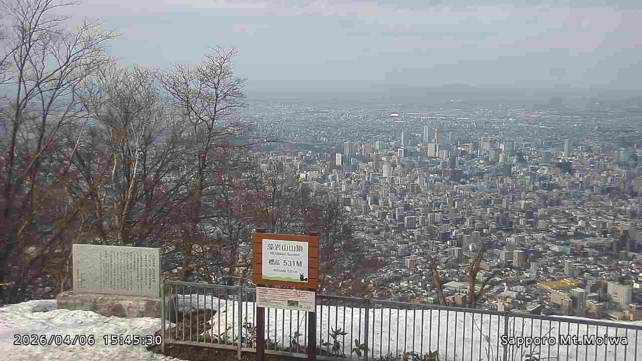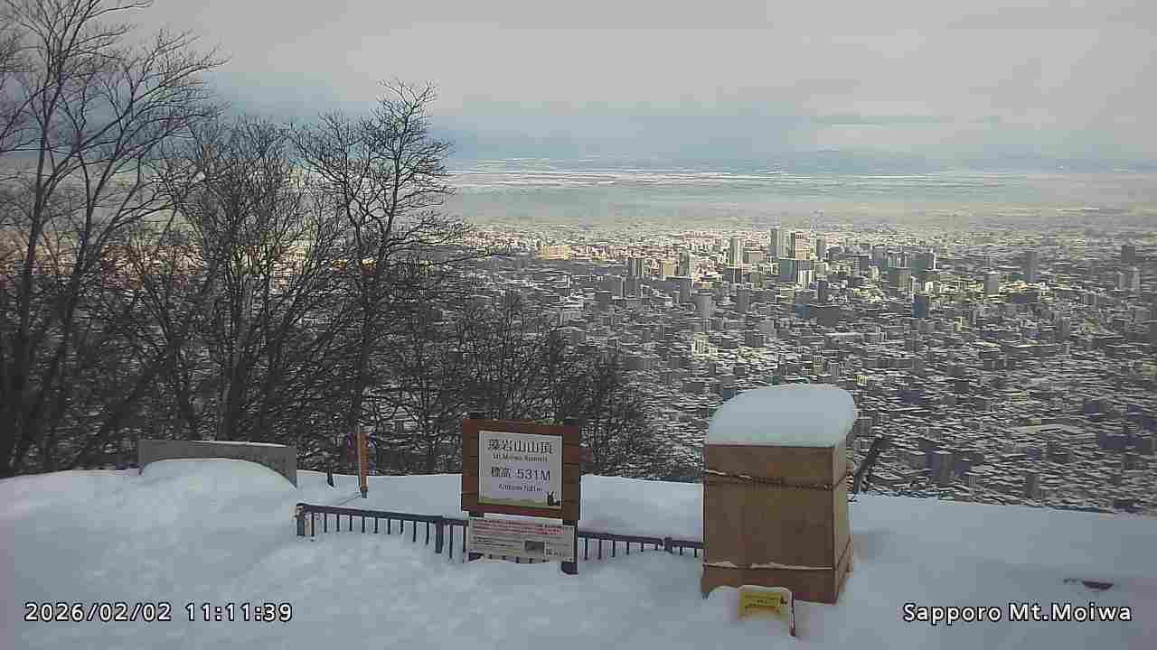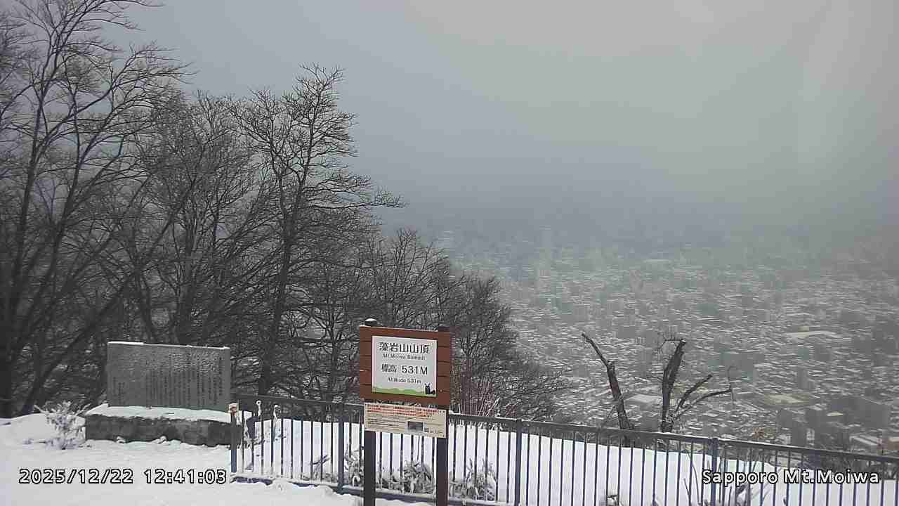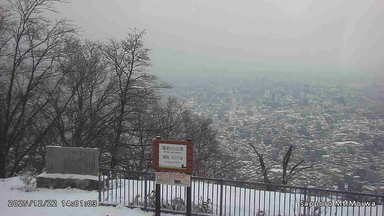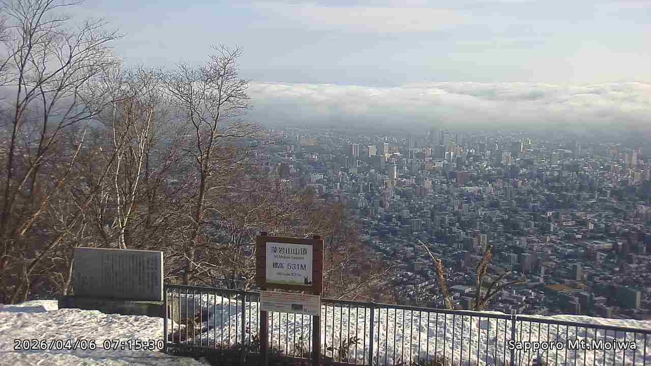 もいわ山山頂の標高看板前にカメラを設置しています。
