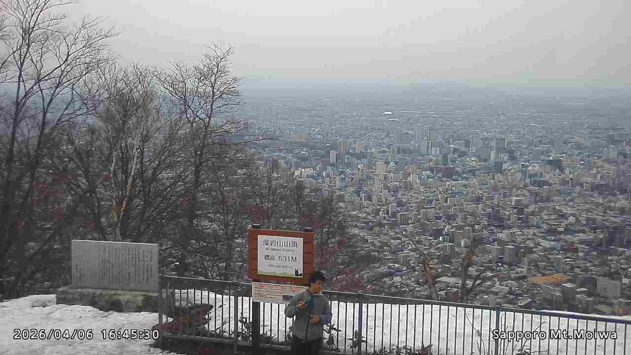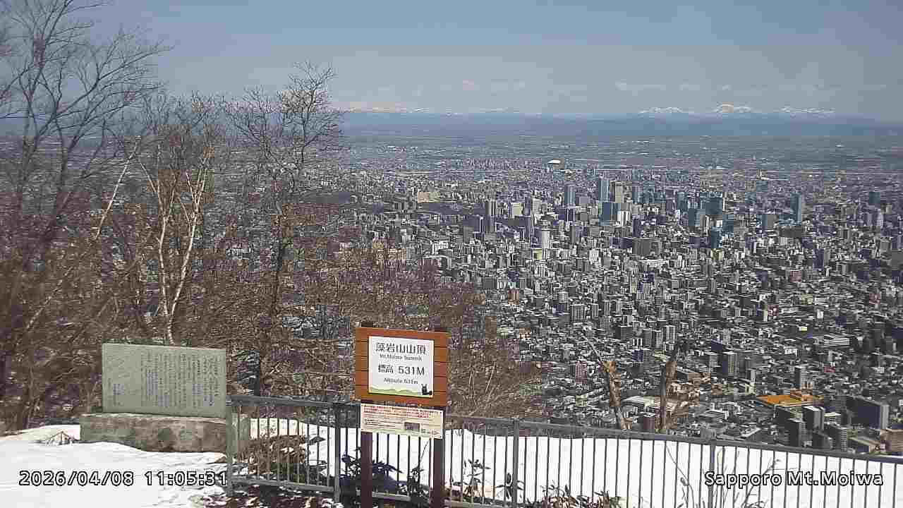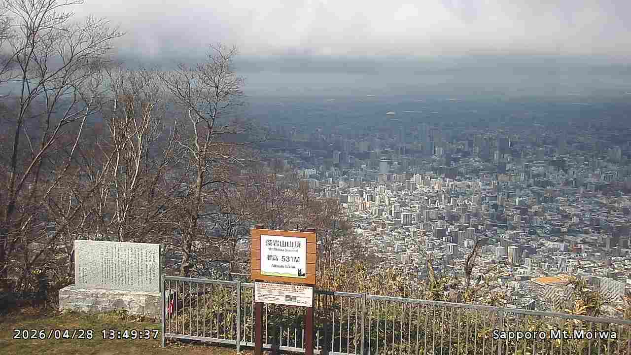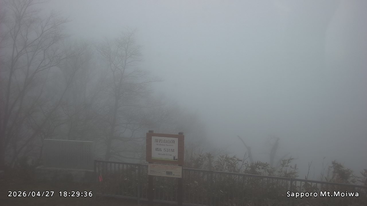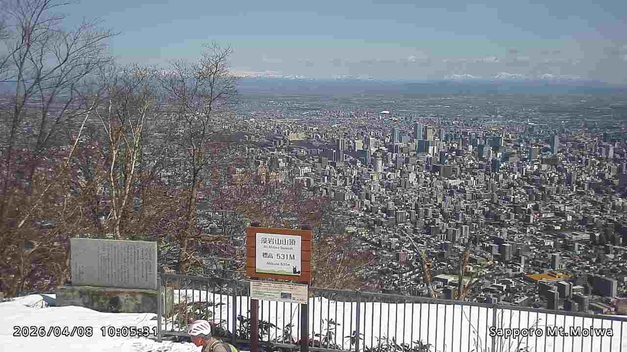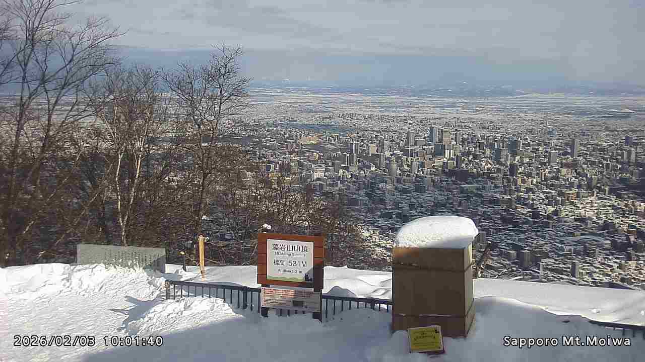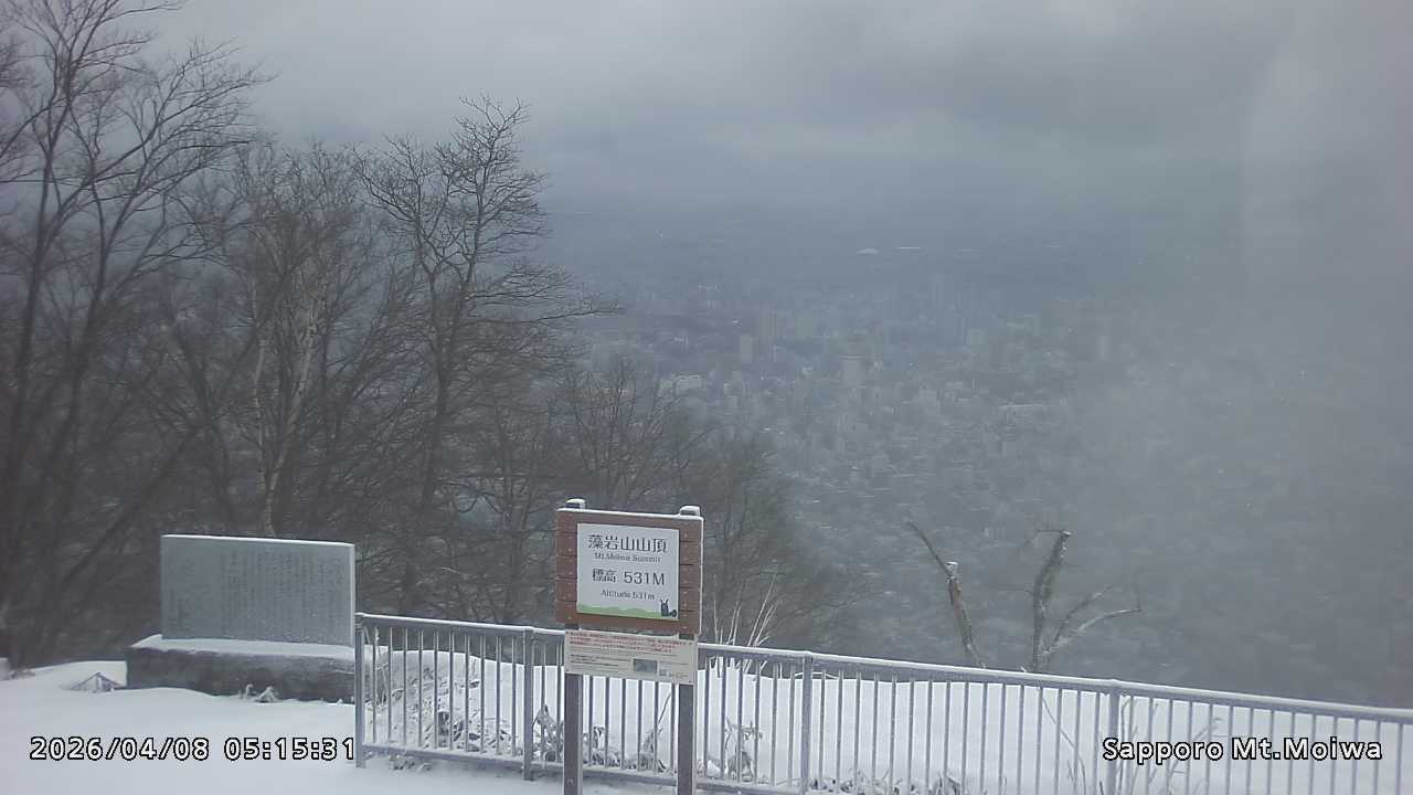 もいわ山山頂の標高看板前にカメラを設置しています。