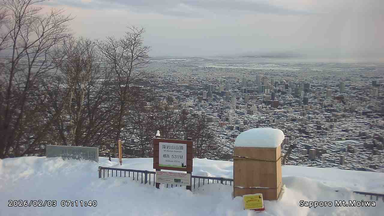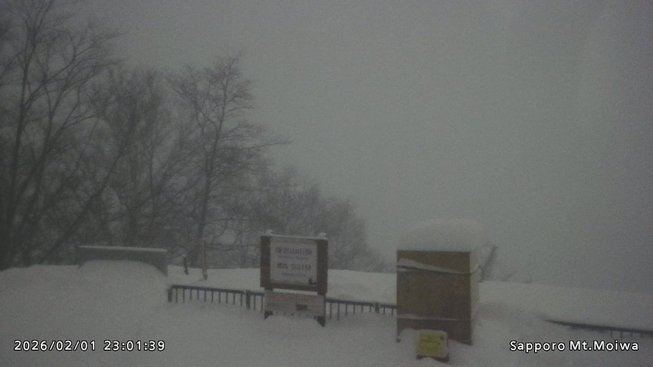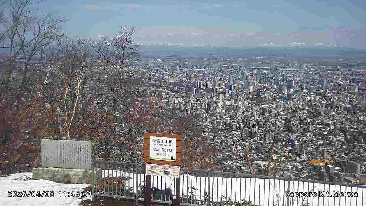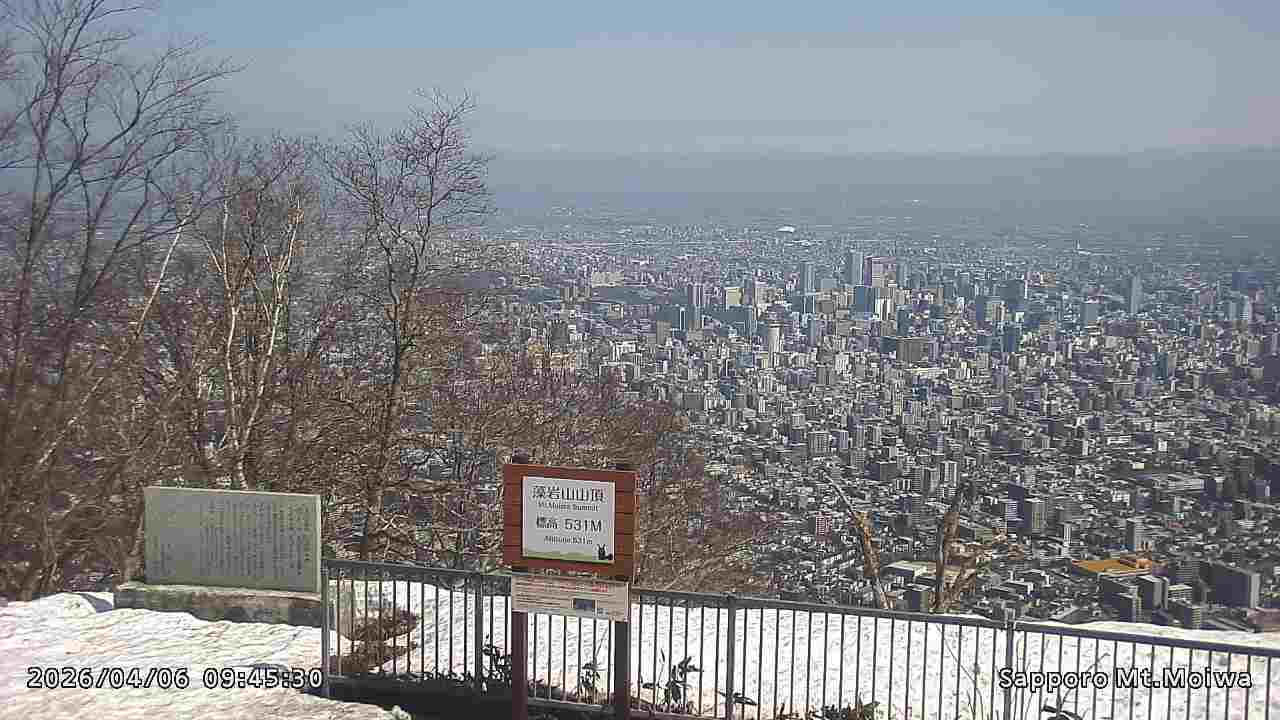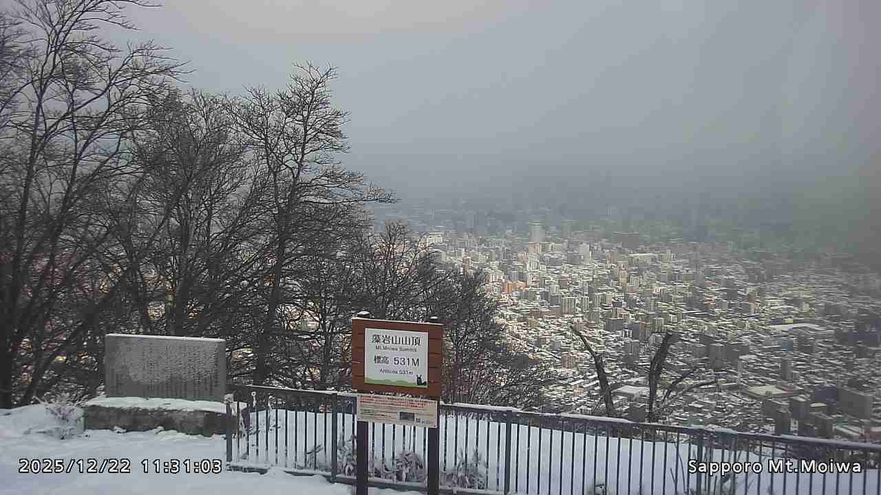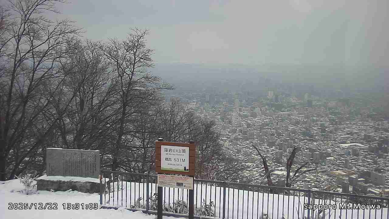 もいわ山山頂の標高看板前にカメラを設置しています。