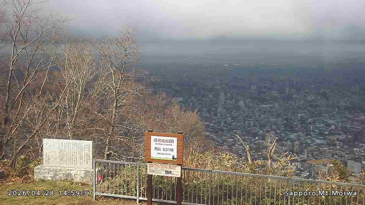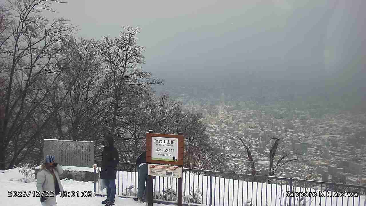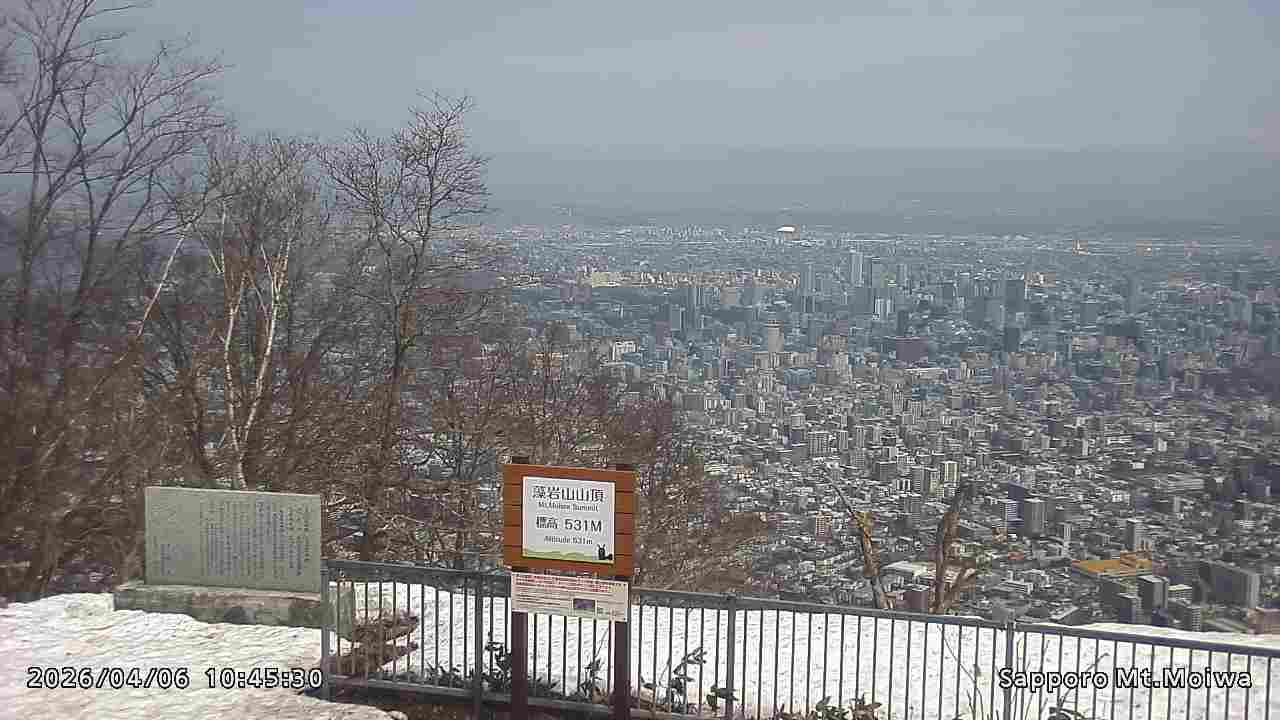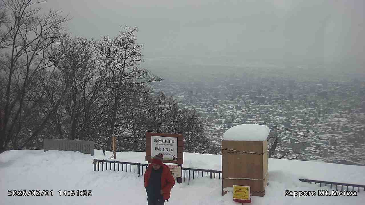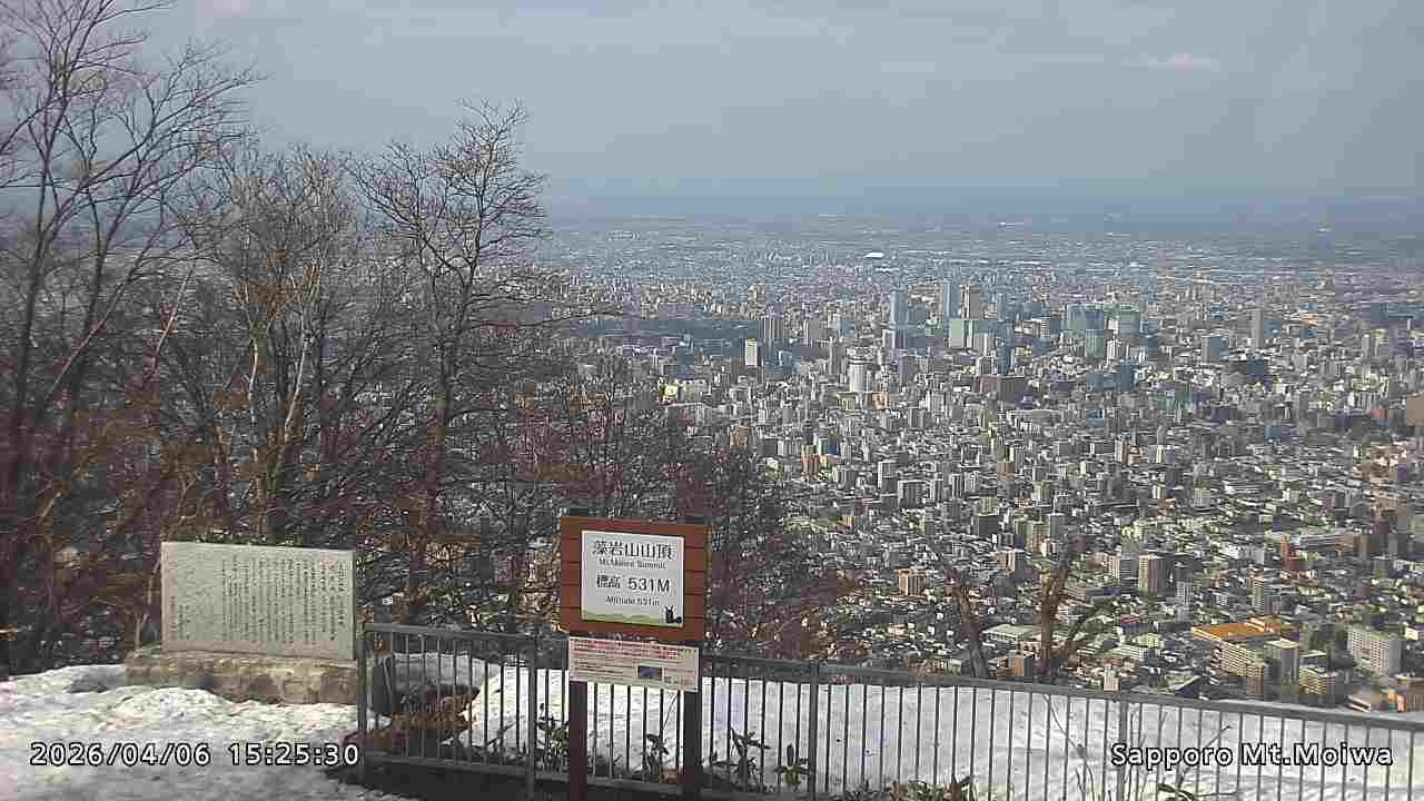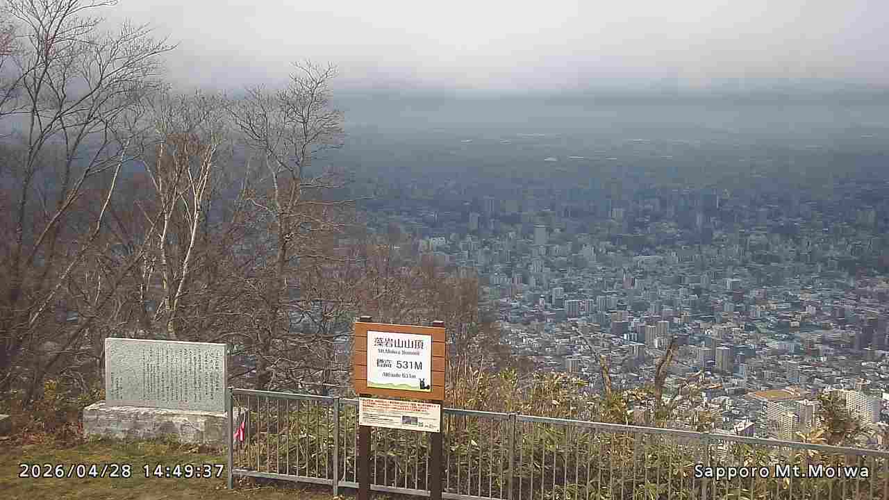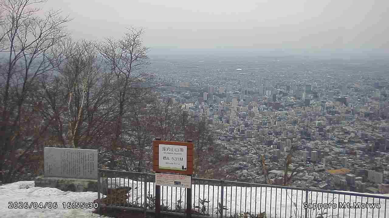 もいわ山山頂の標高看板前にカメラを設置しています。