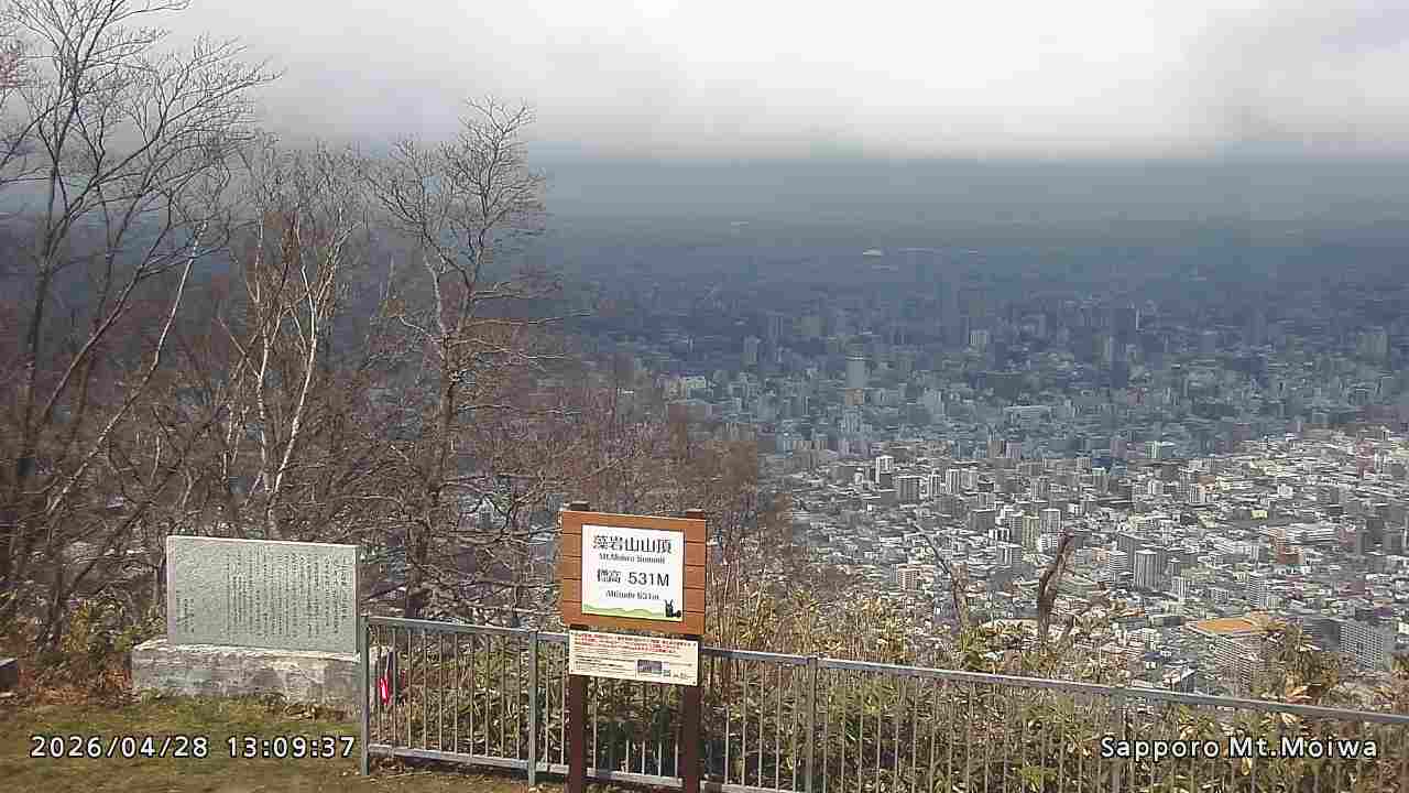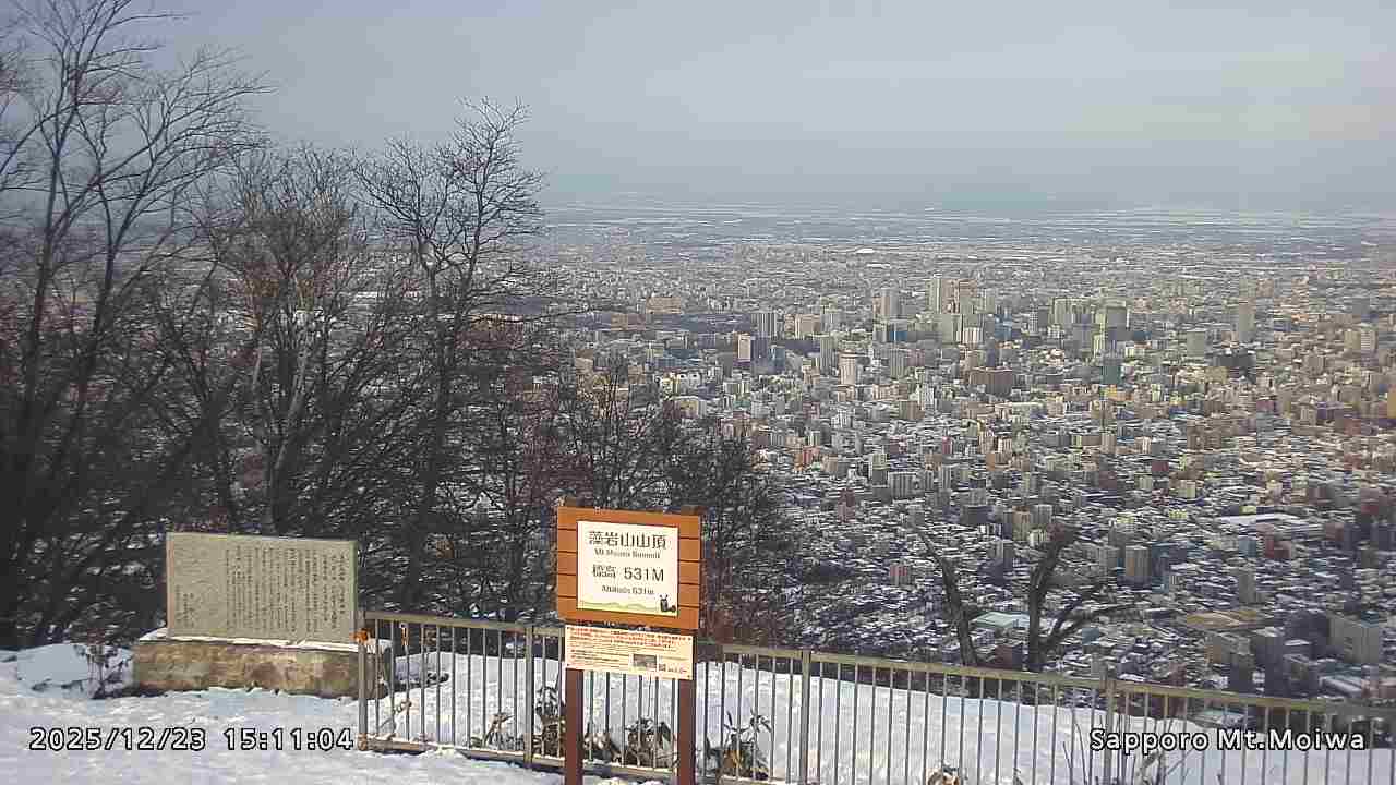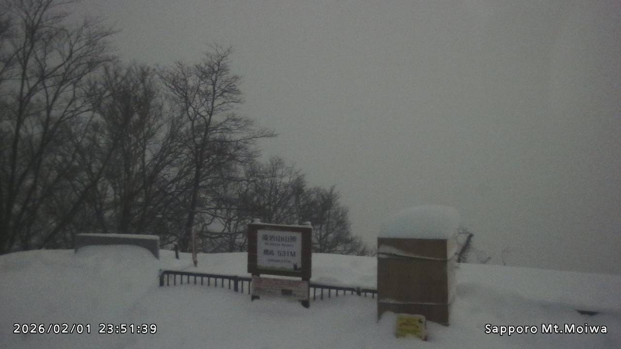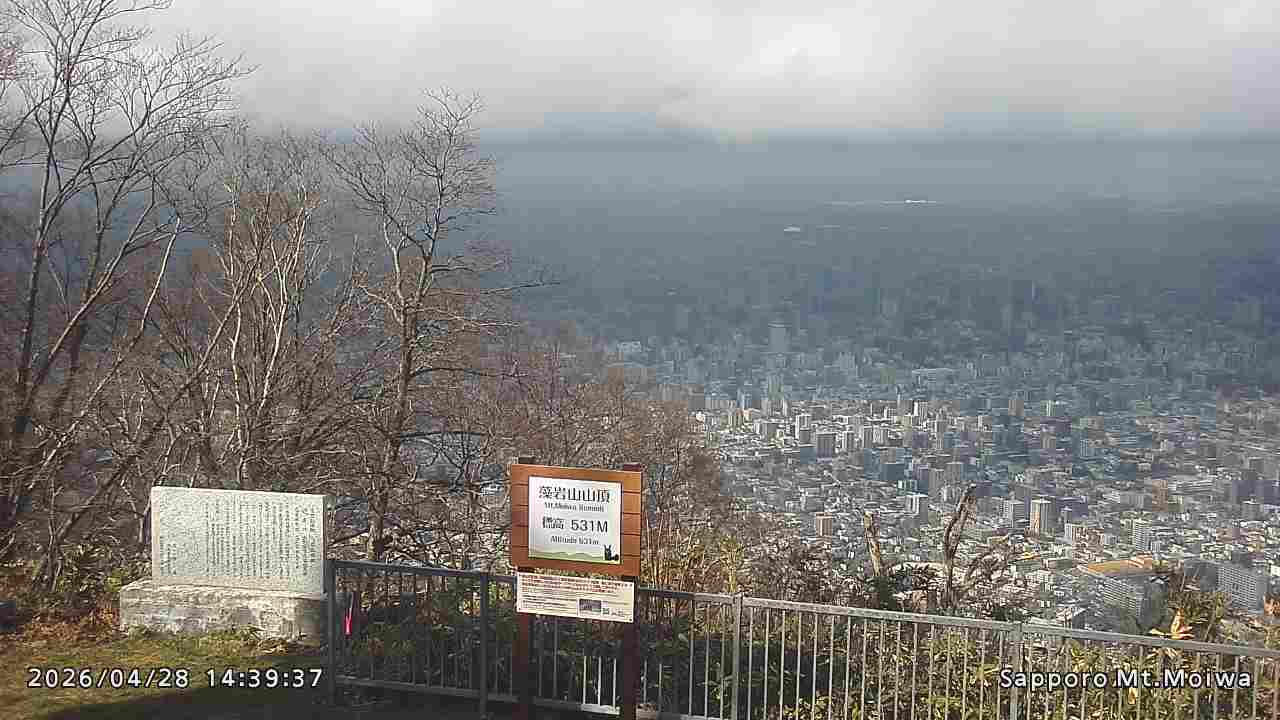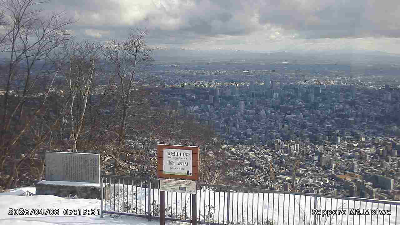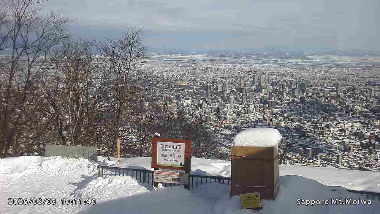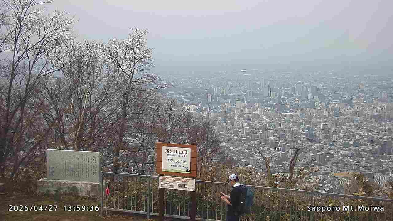 もいわ山山頂の標高看板前にカメラを設置しています。