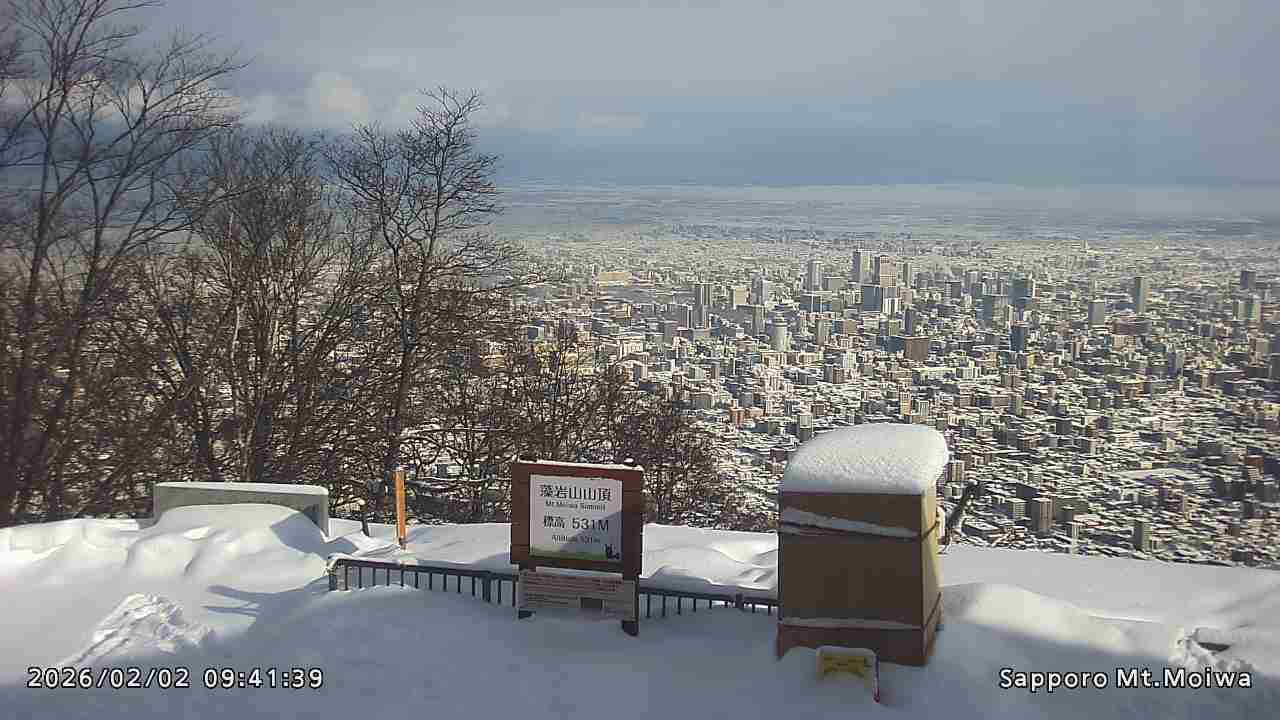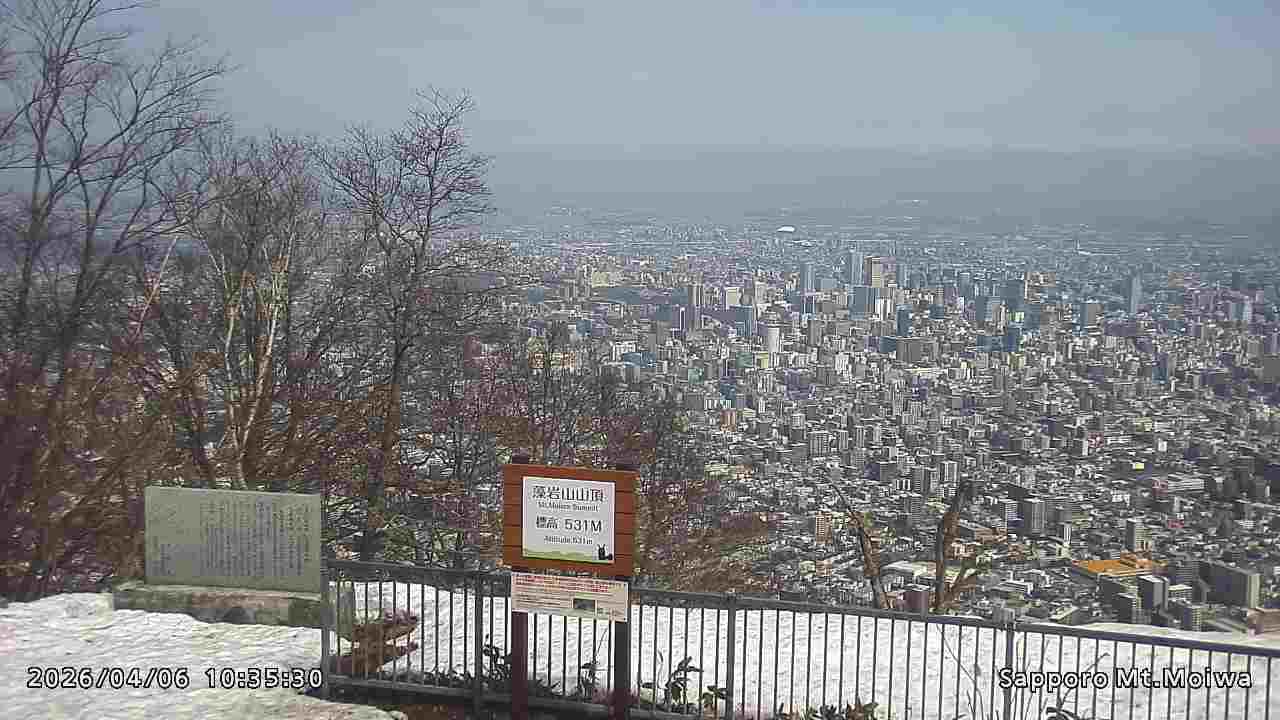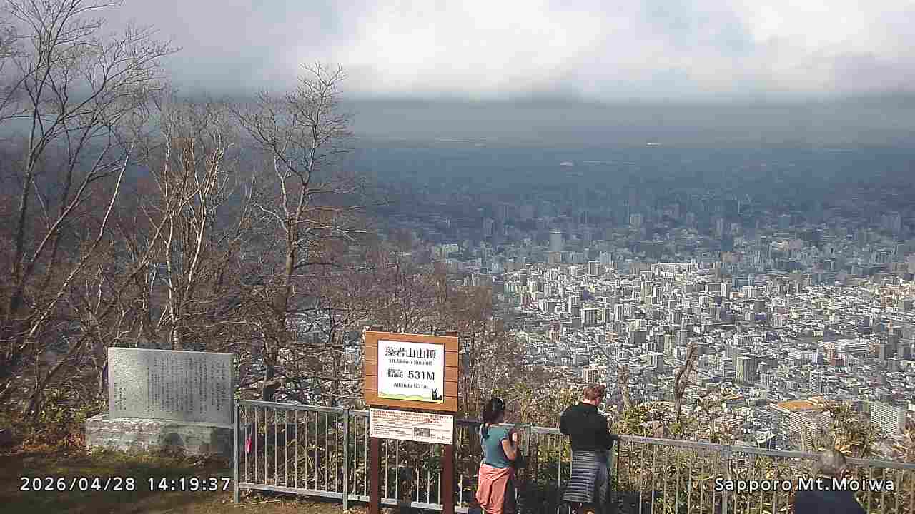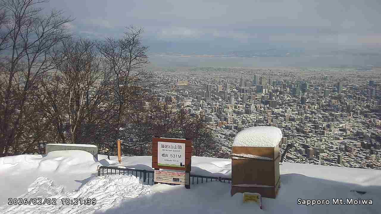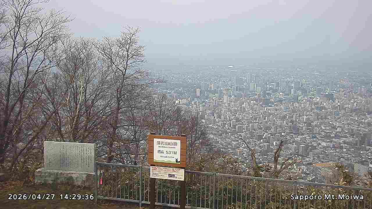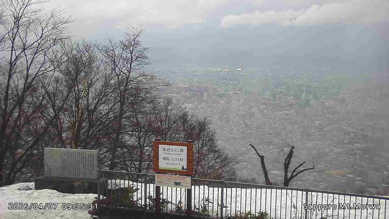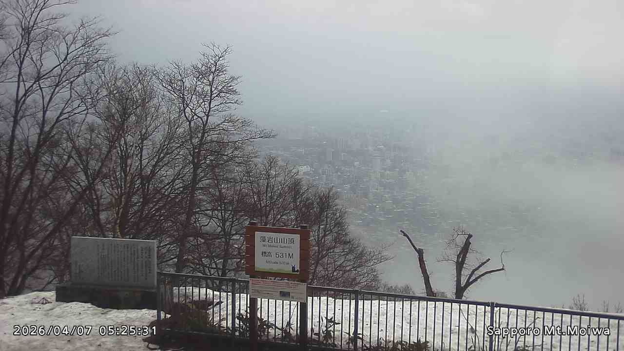 もいわ山山頂の標高看板前にカメラを設置しています。