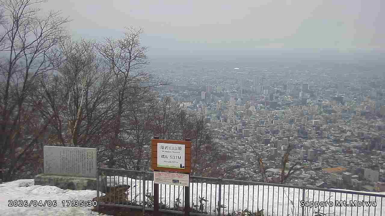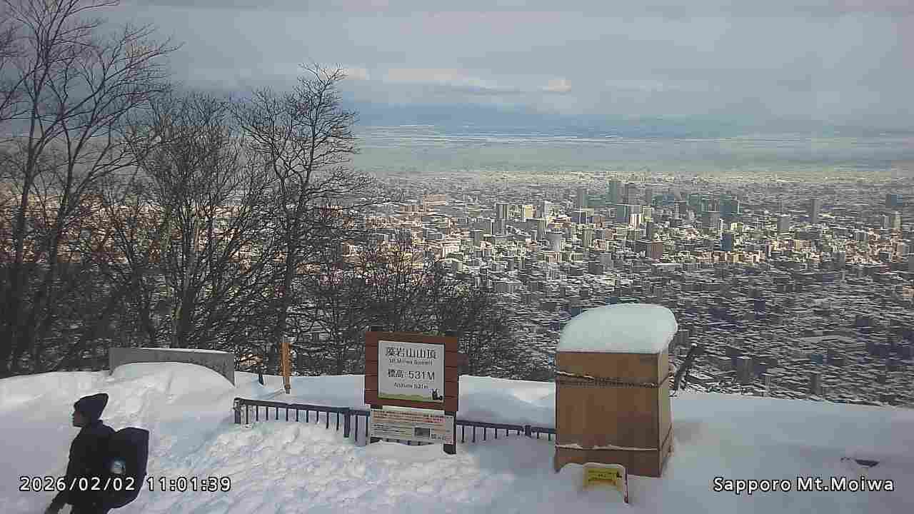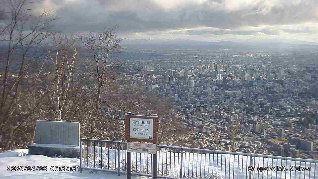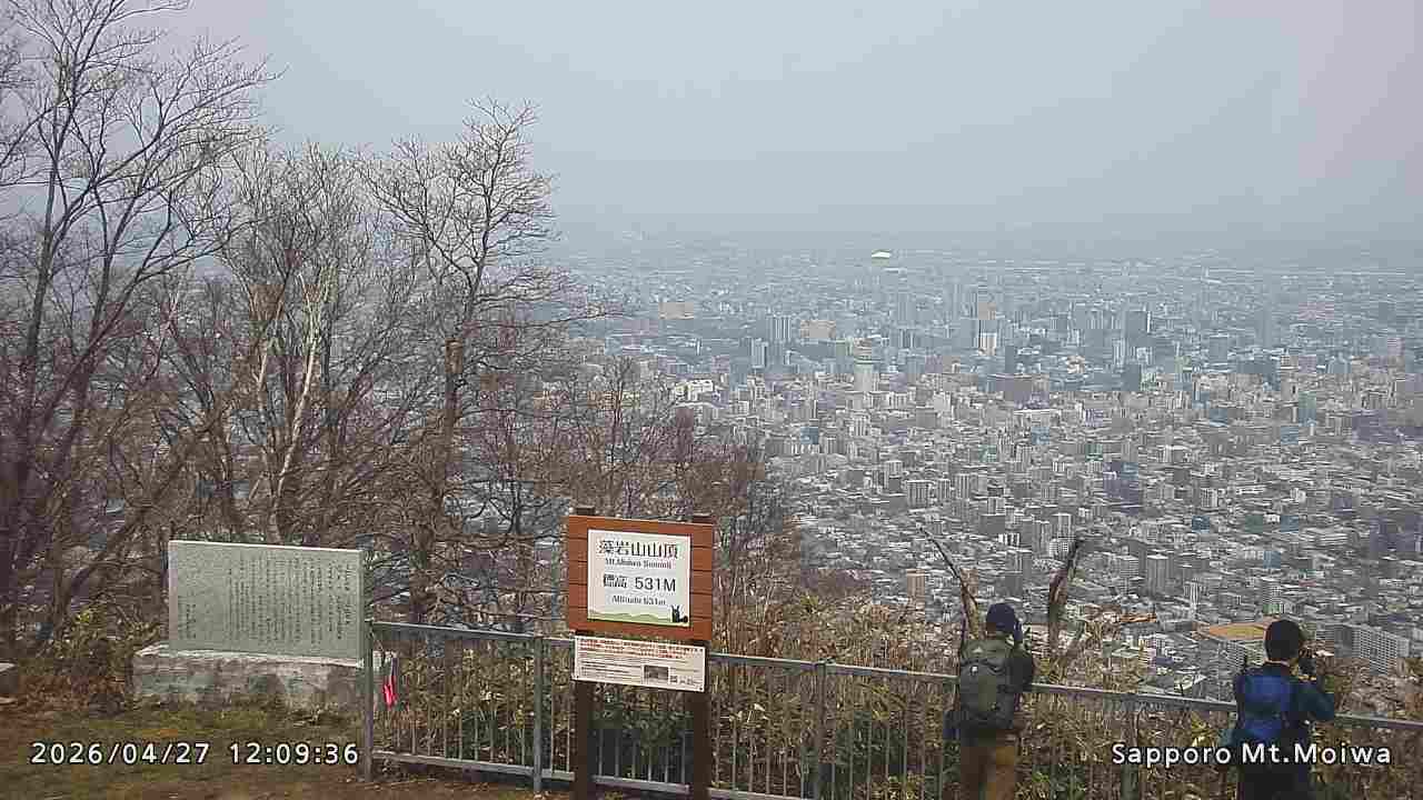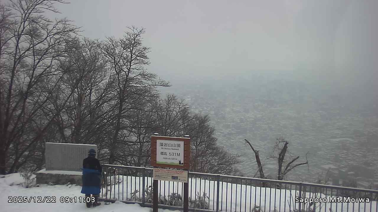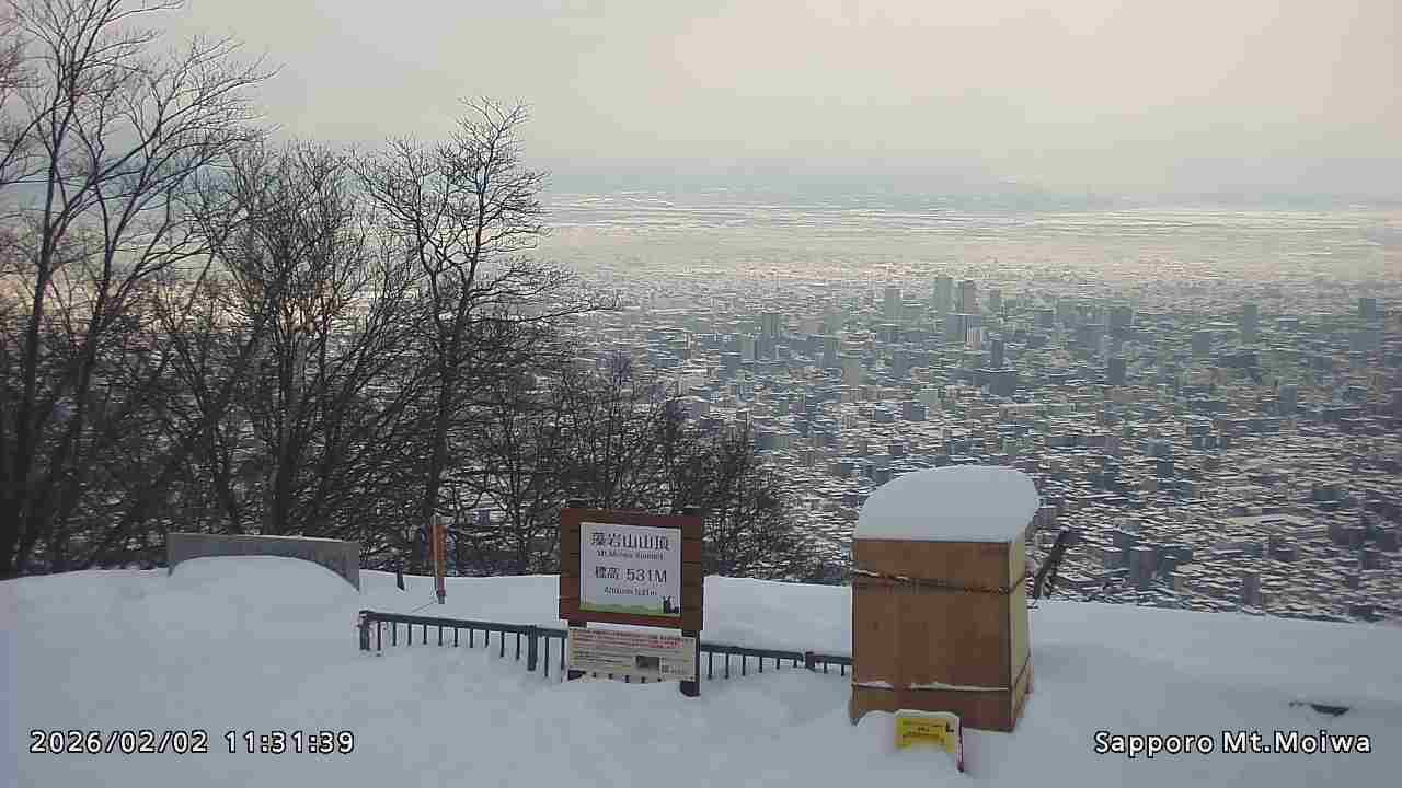 もいわ山山頂の標高看板前にカメラを設置しています。