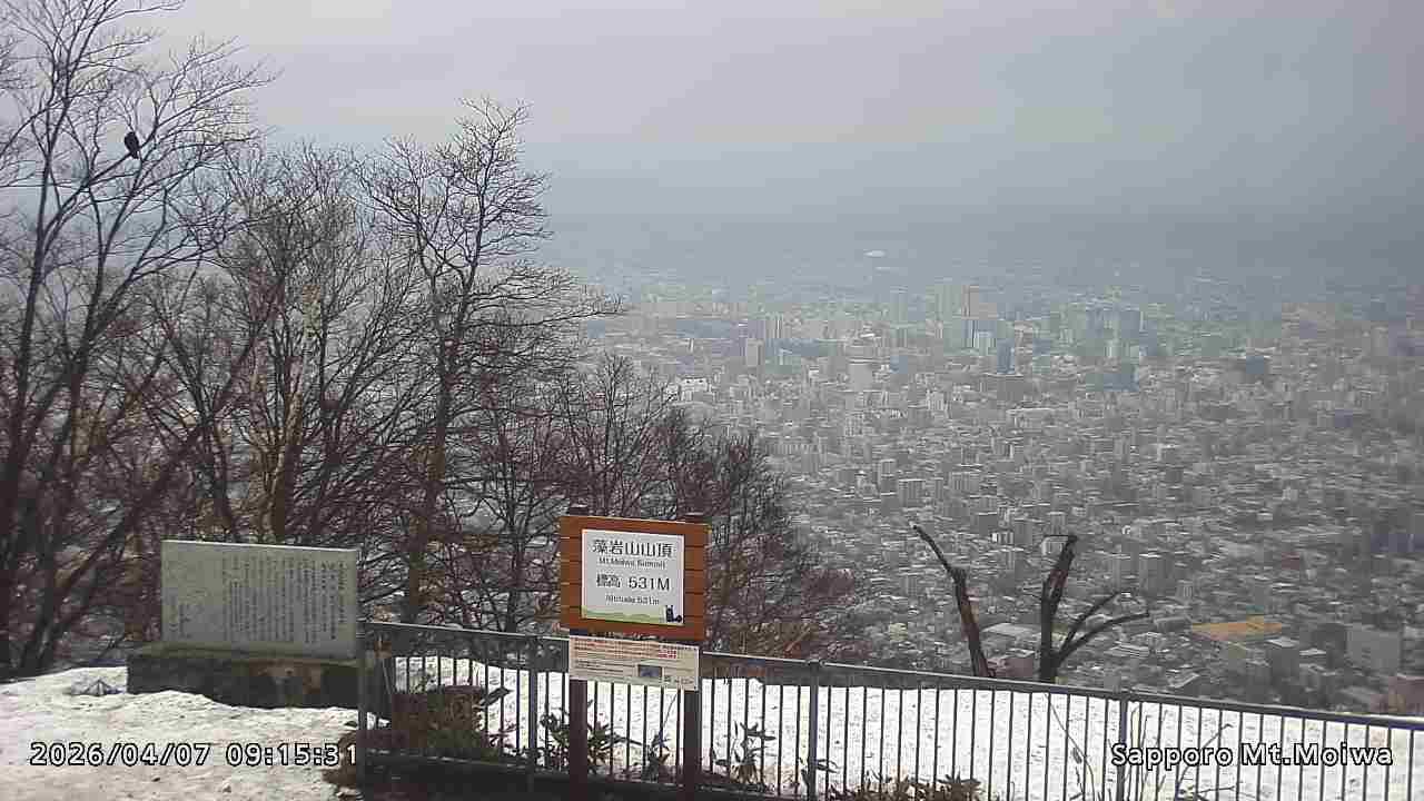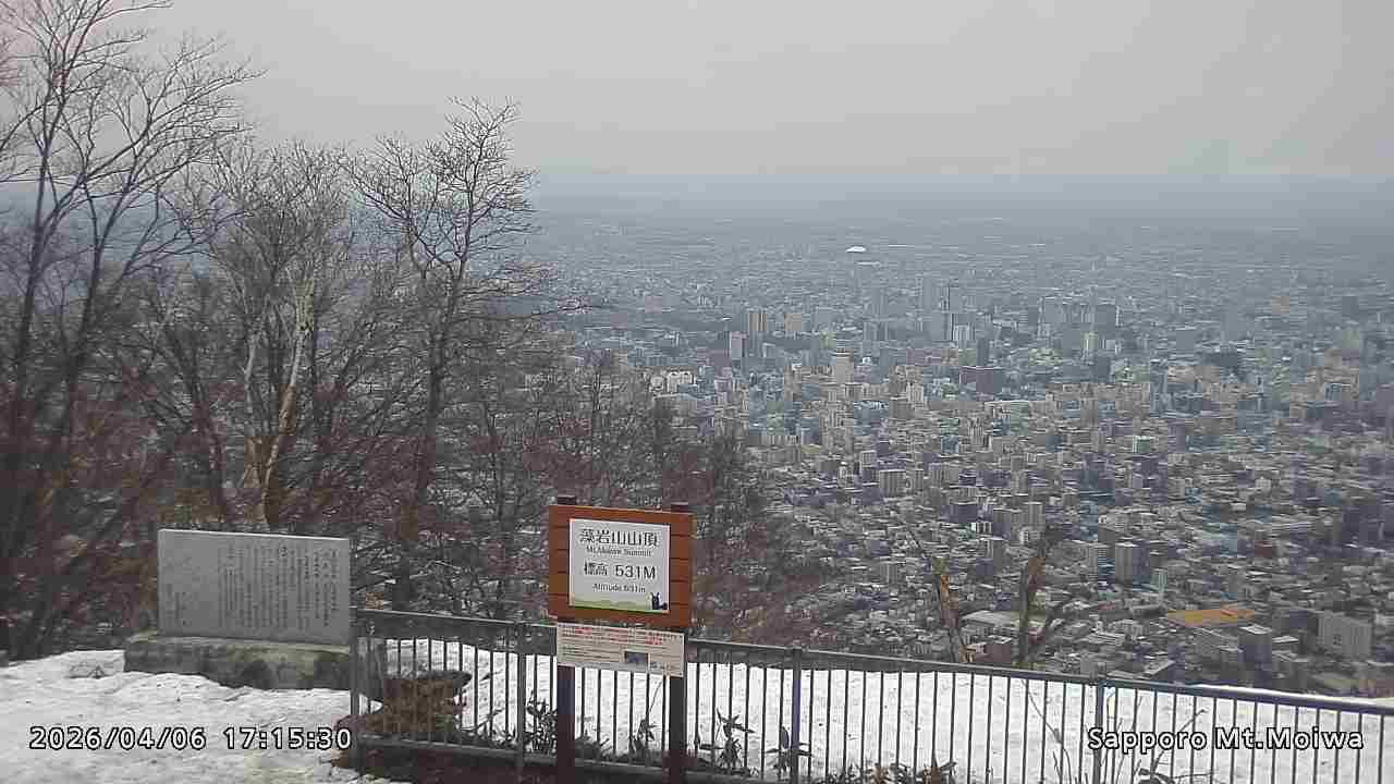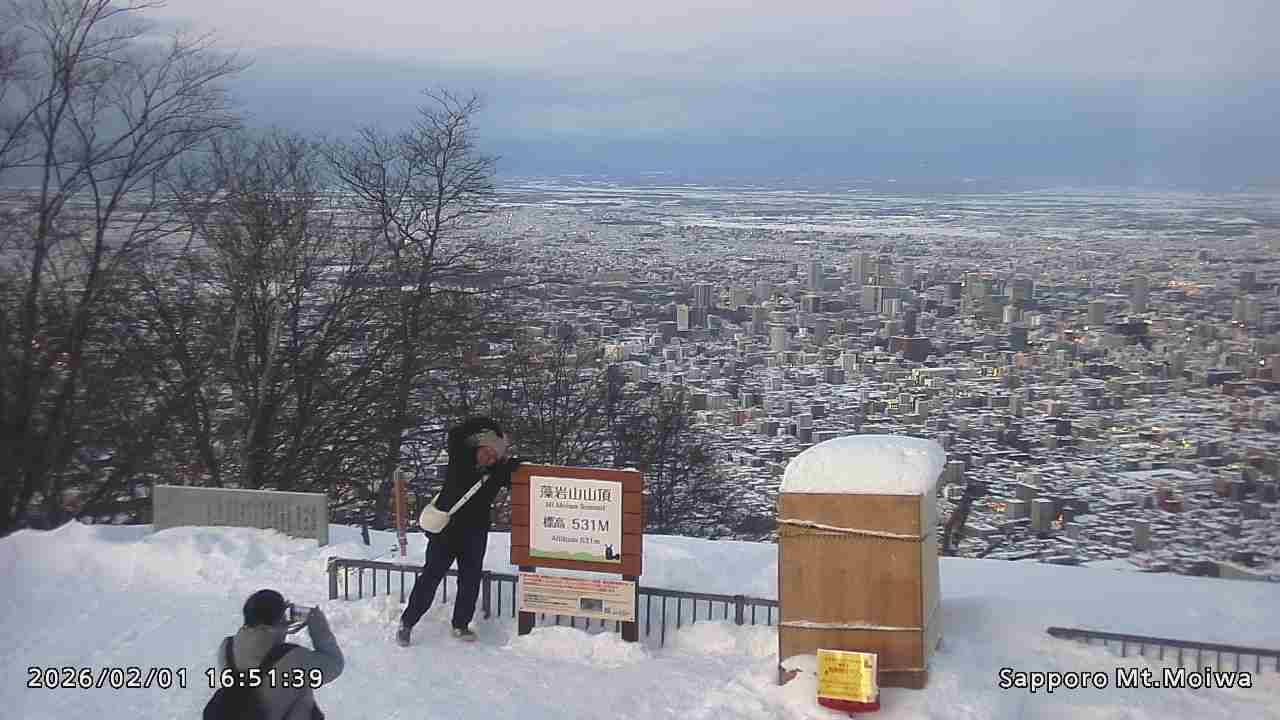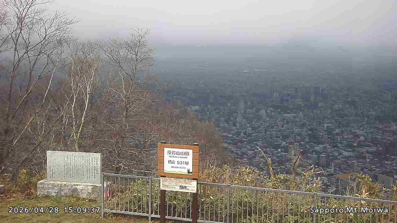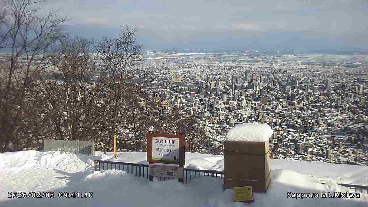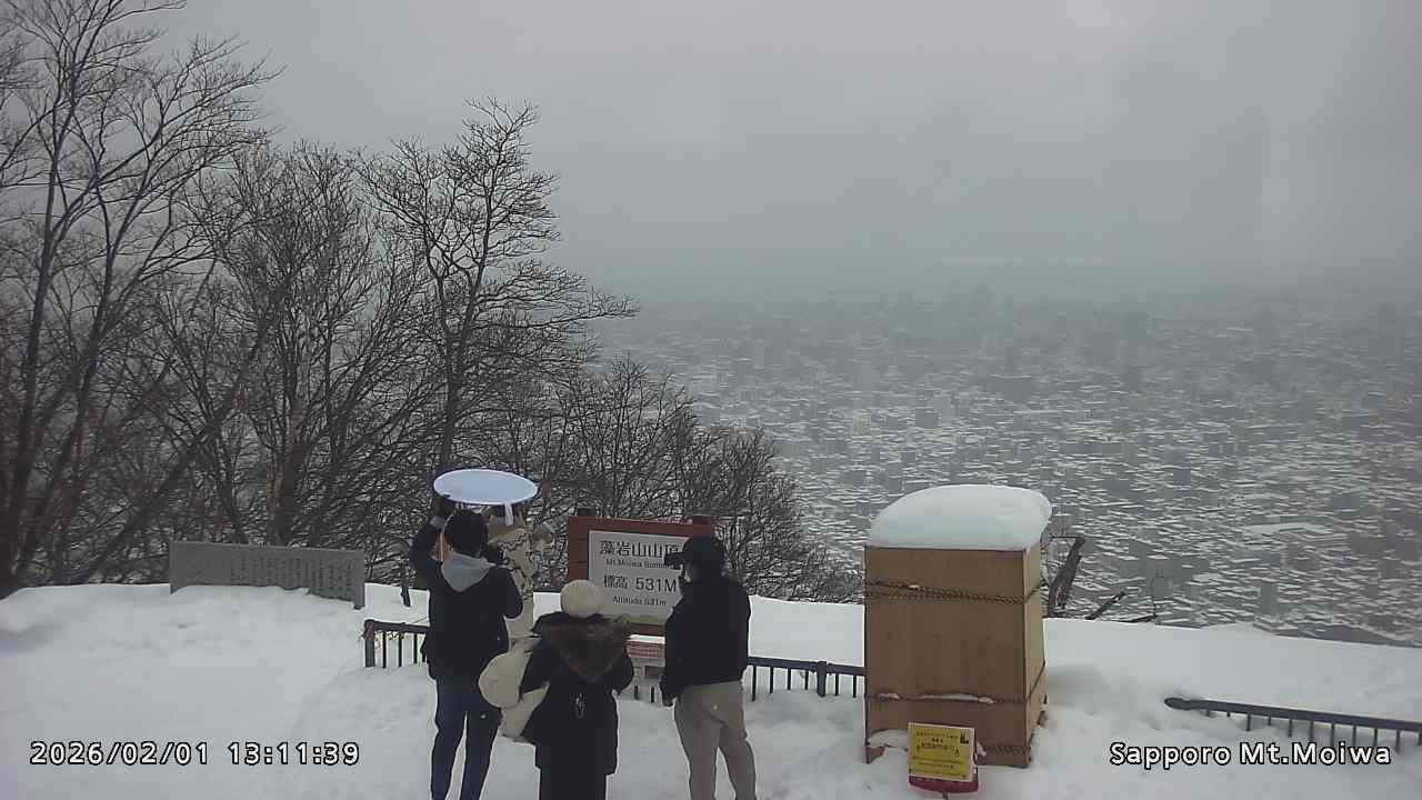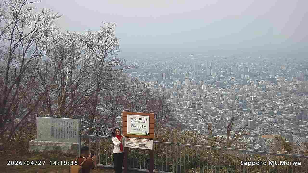 もいわ山山頂の標高看板前にカメラを設置しています。