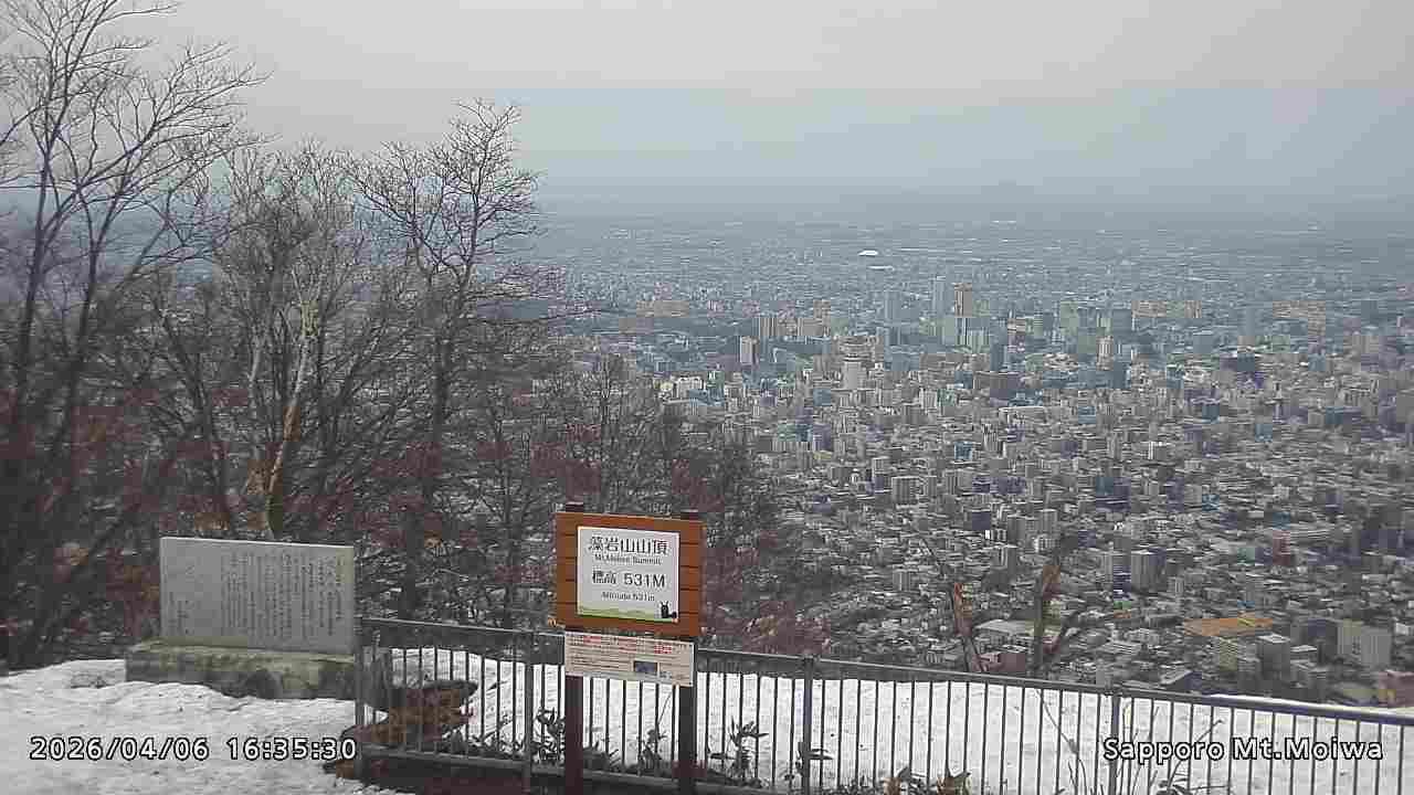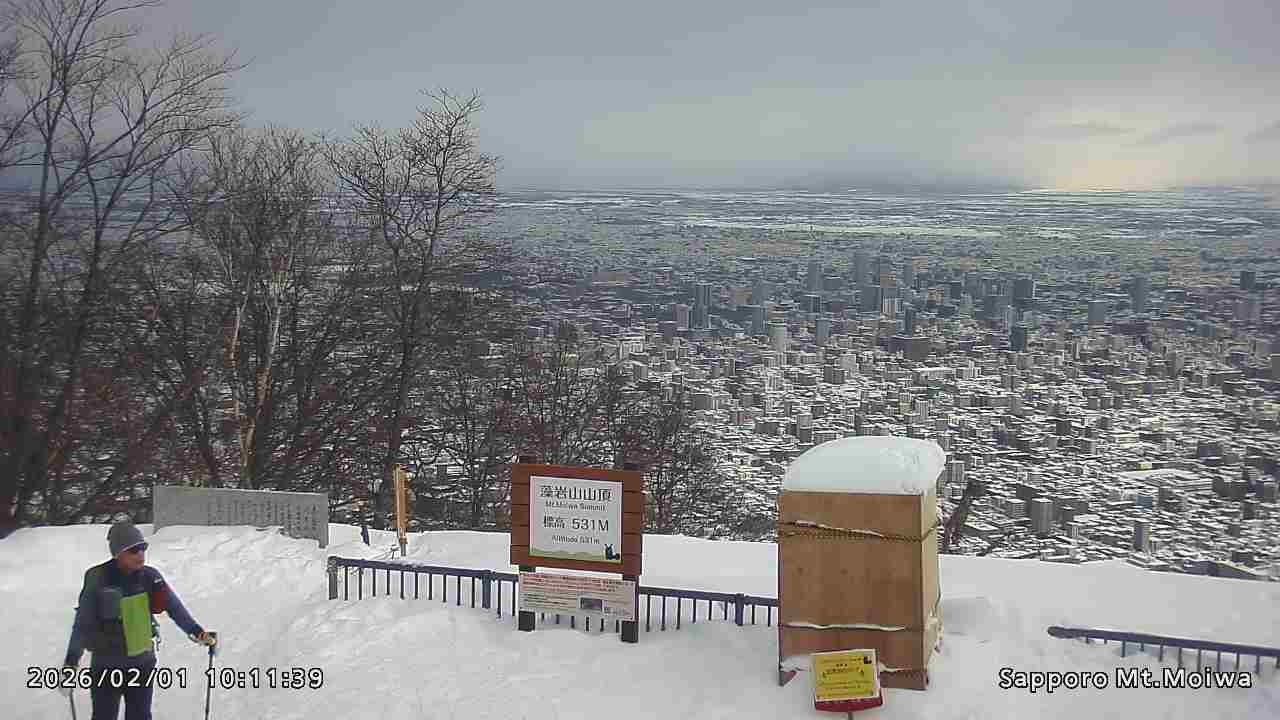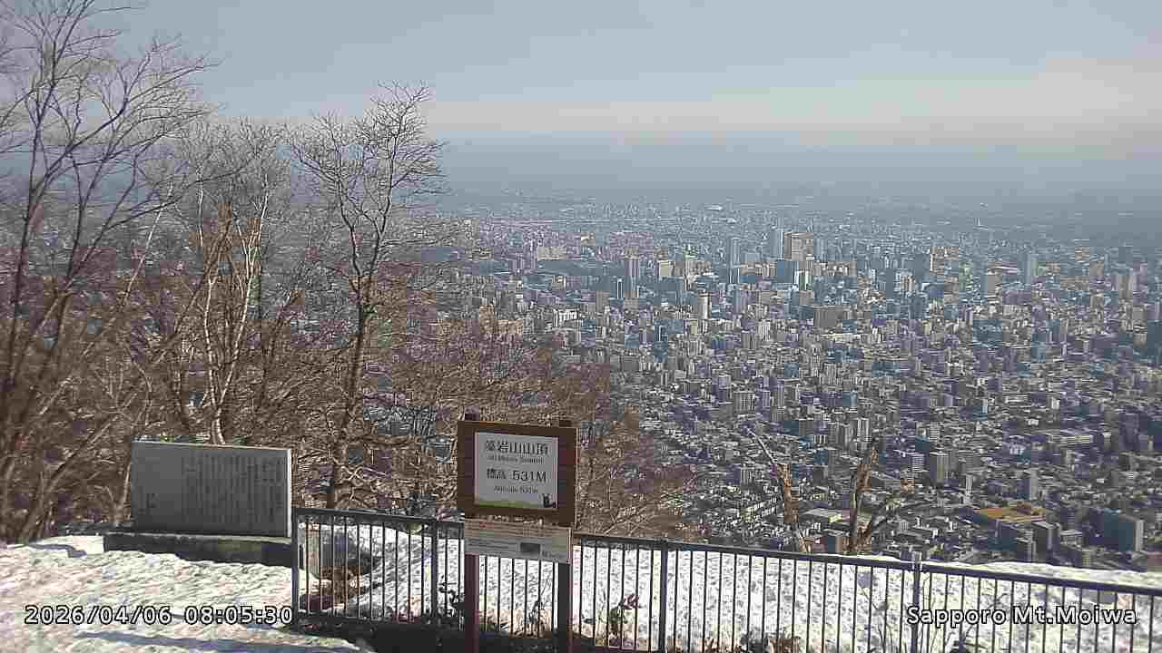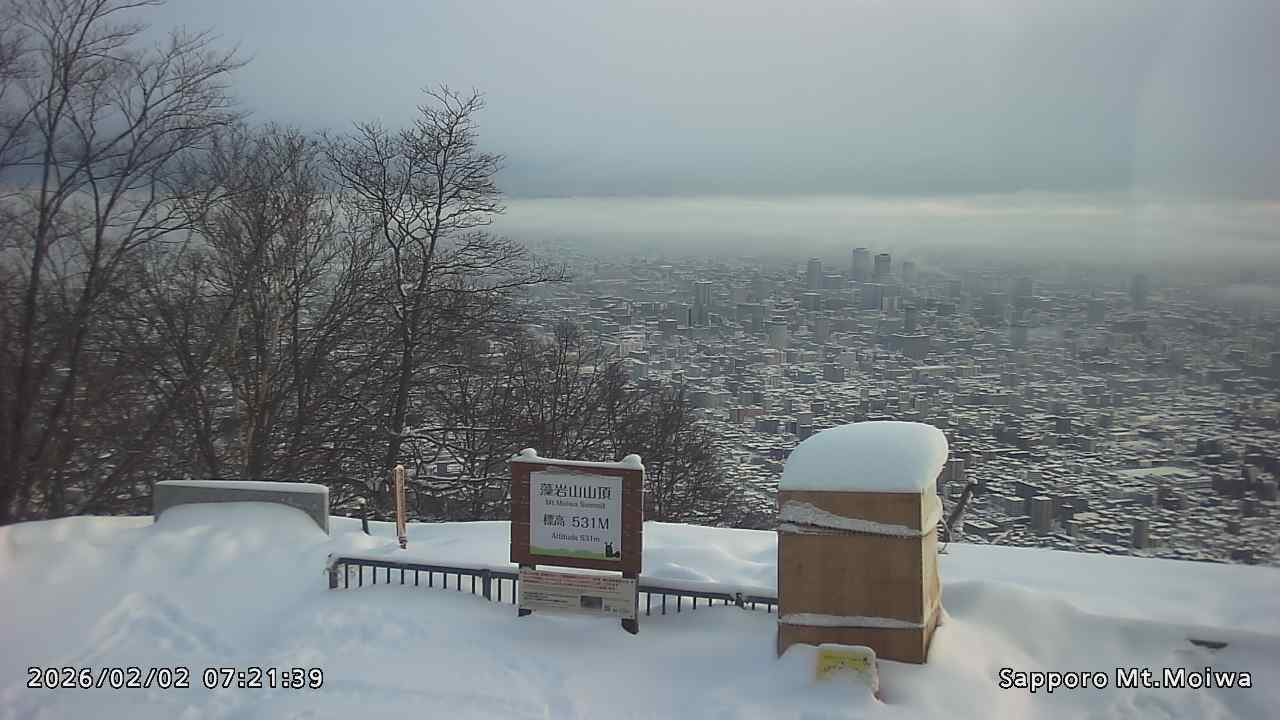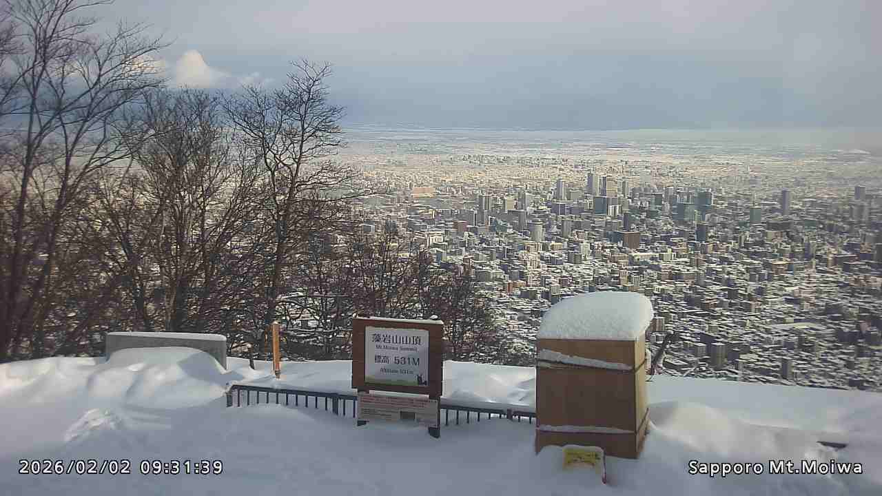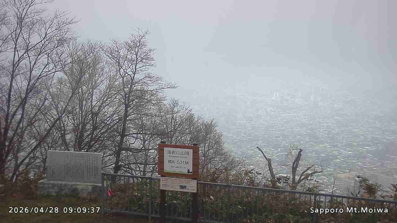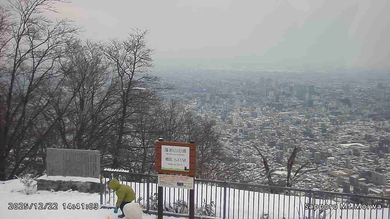もいわ山山頂の標高看板前にカメラを設置しています。