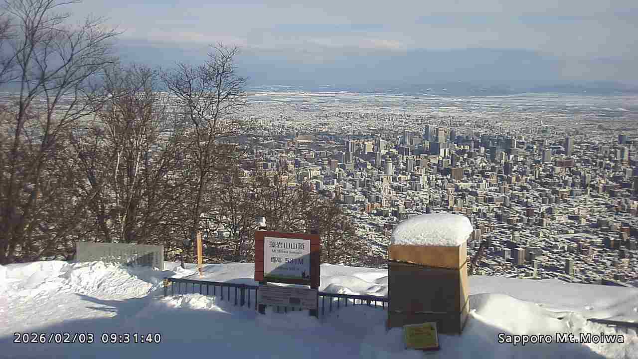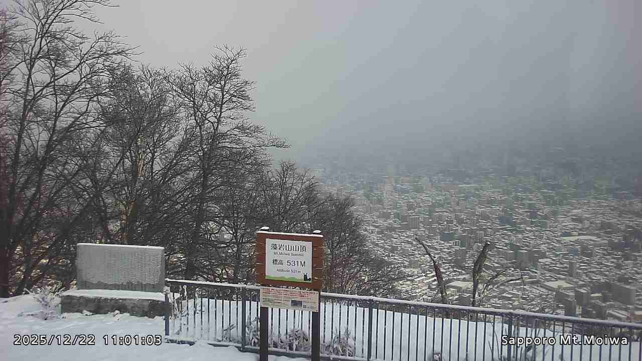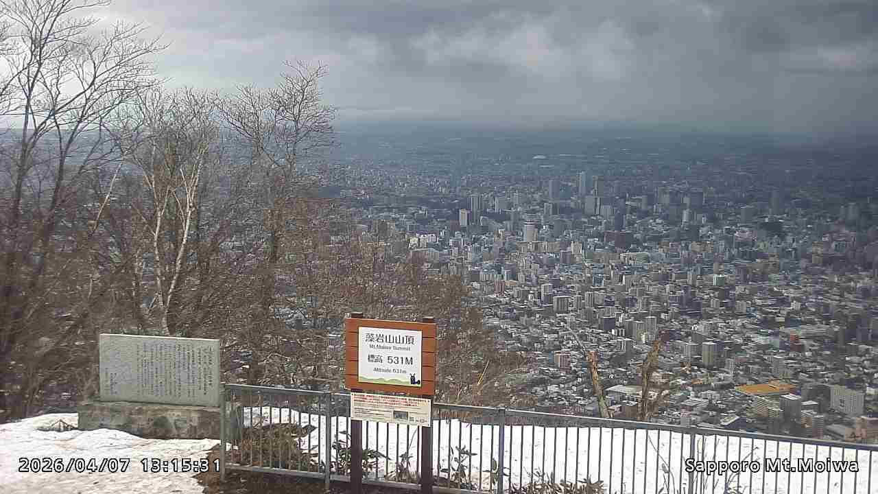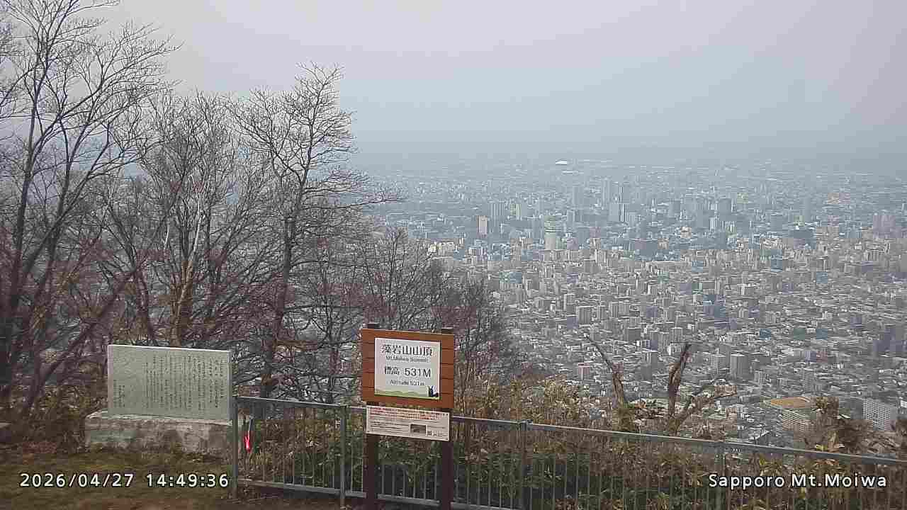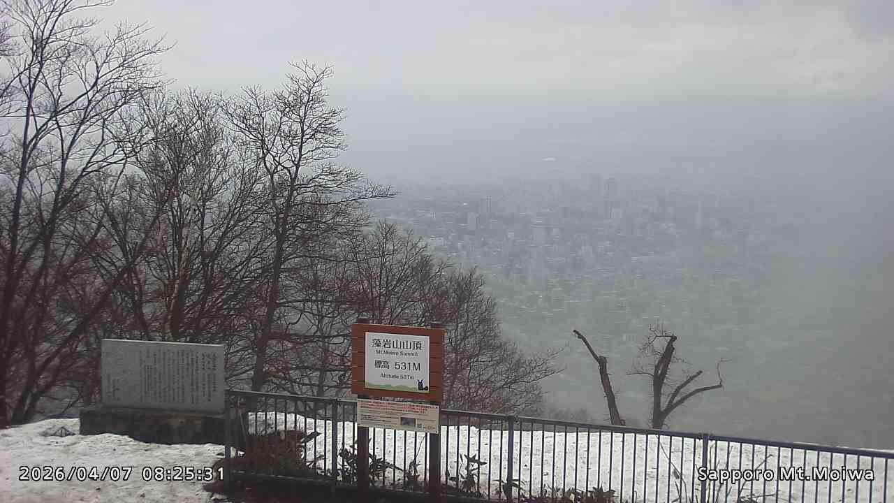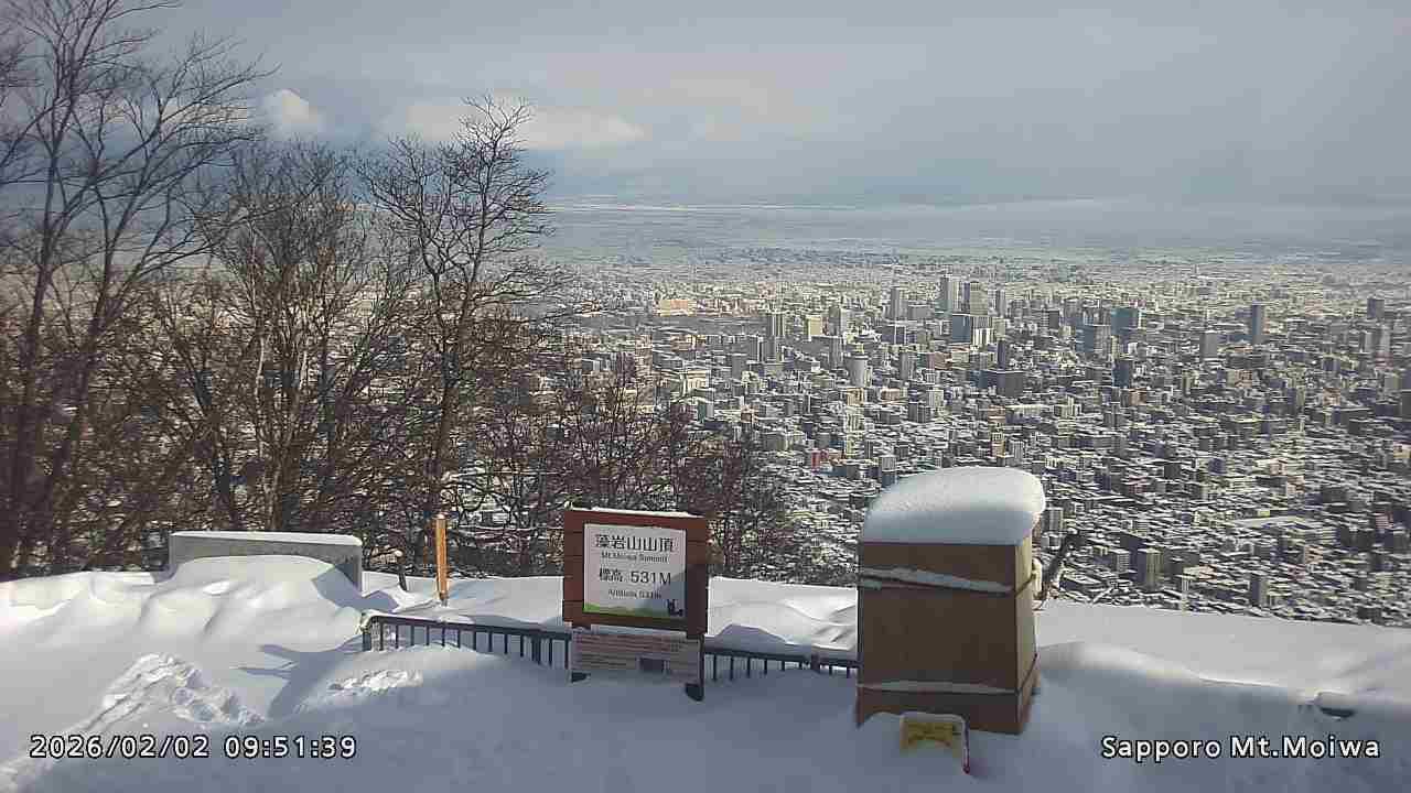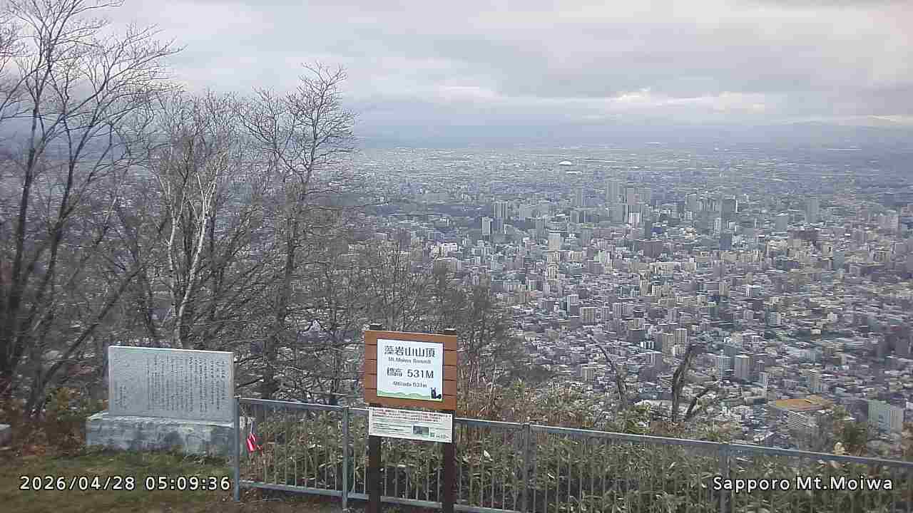 もいわ山山頂の標高看板前にカメラを設置しています。