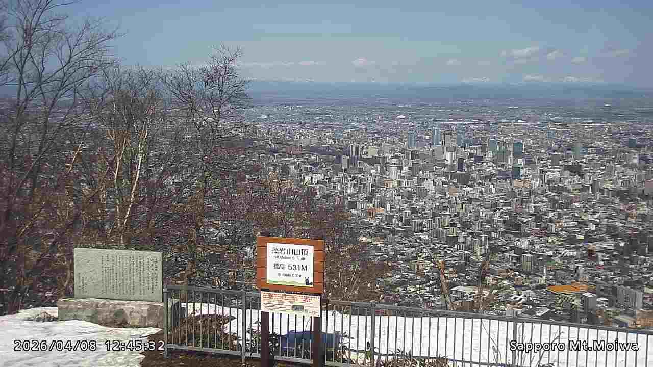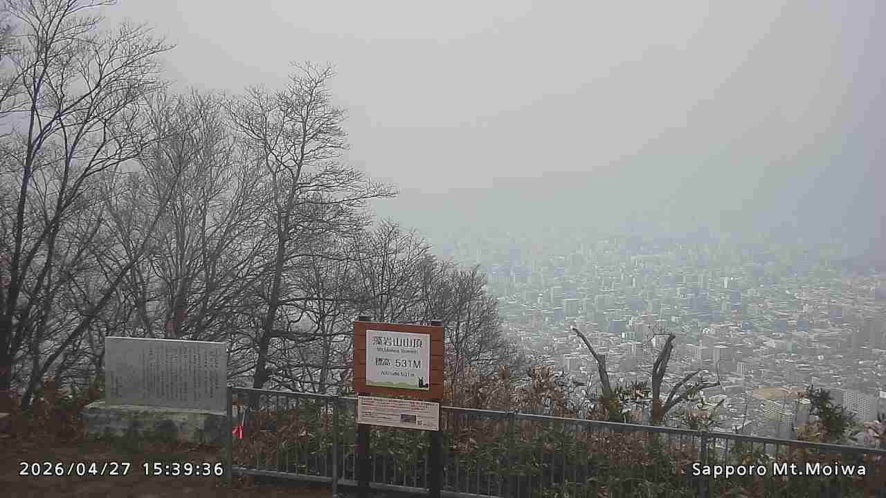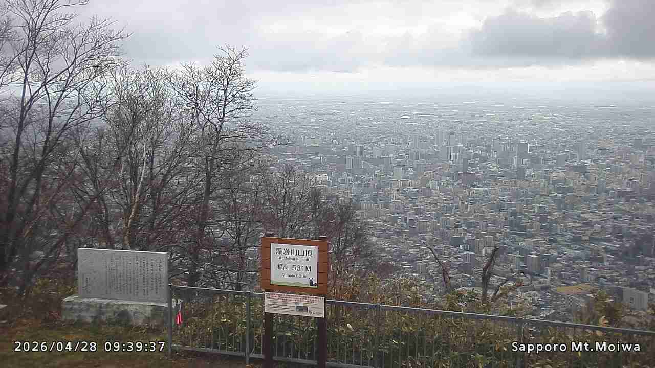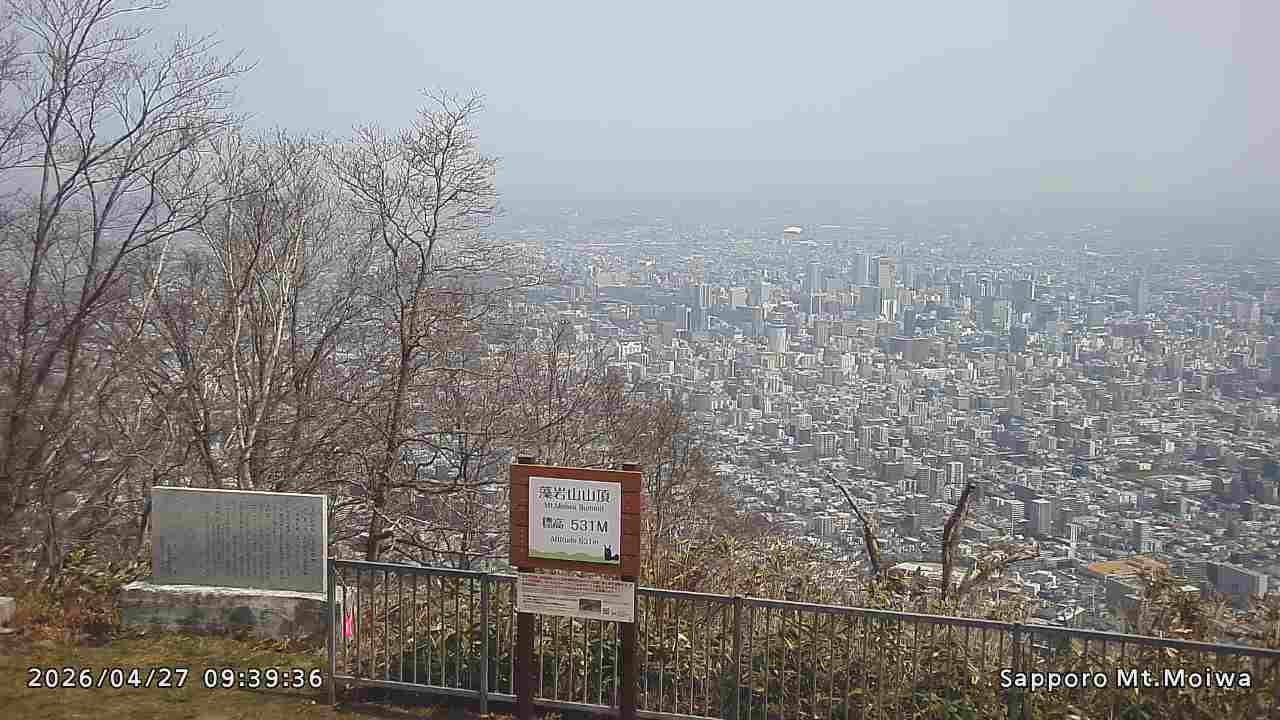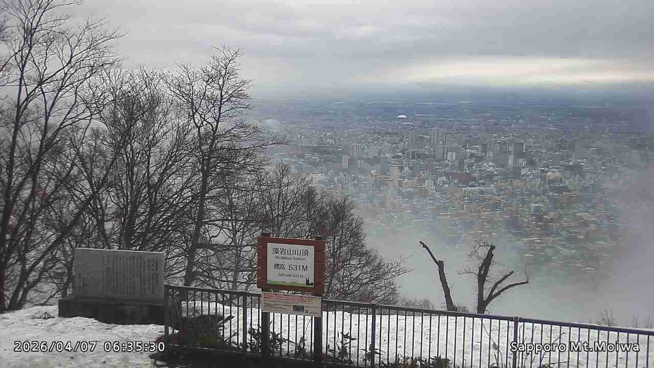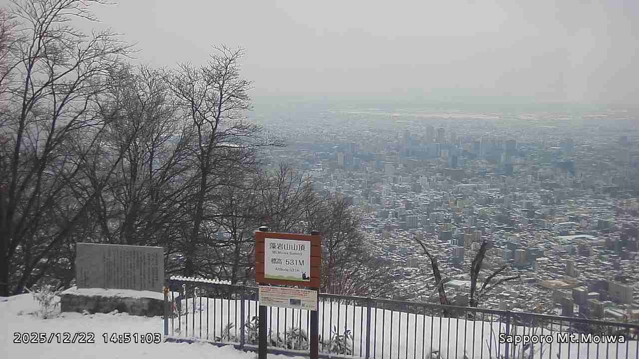 もいわ山山頂の標高看板前にカメラを設置しています。