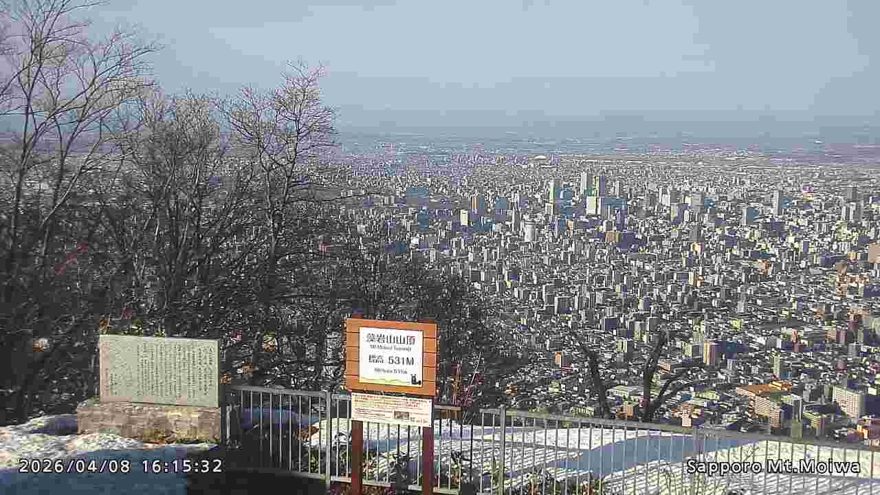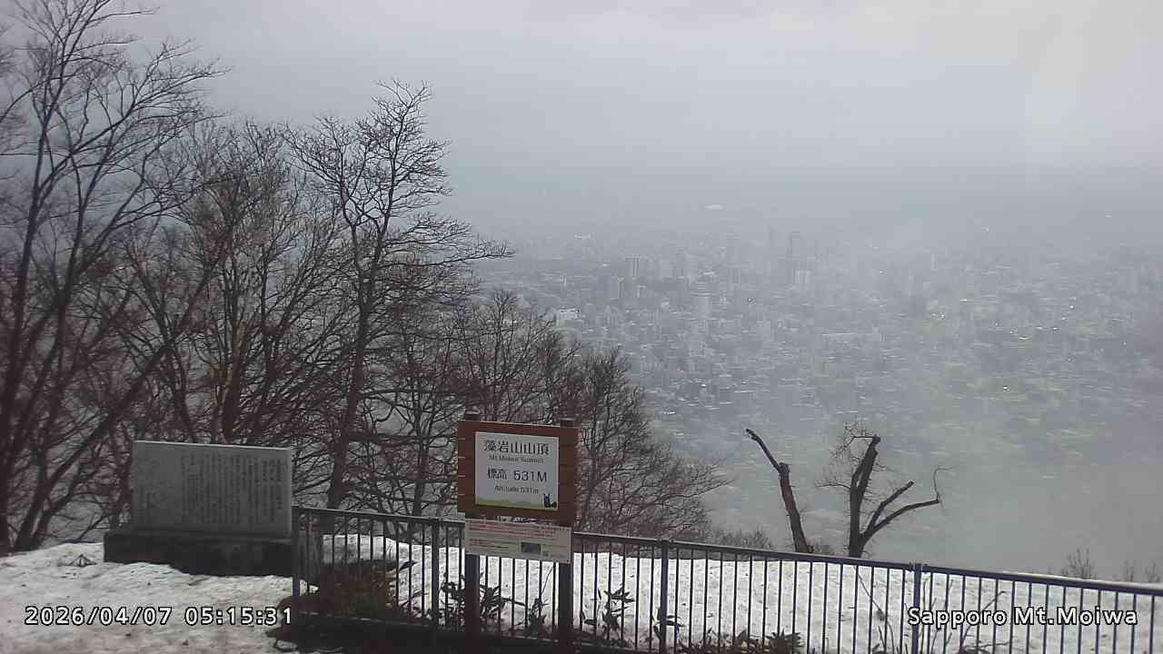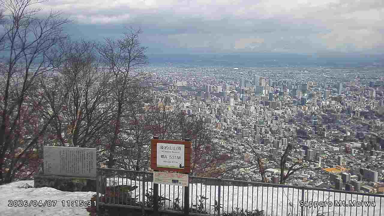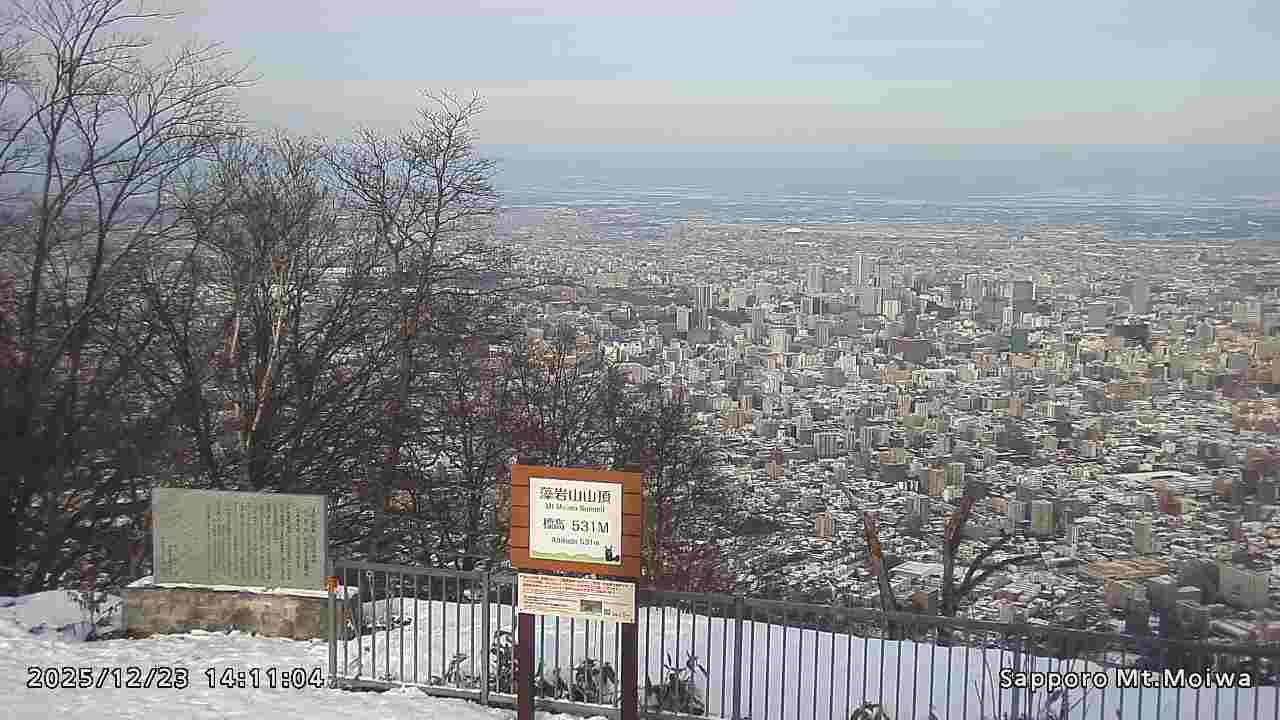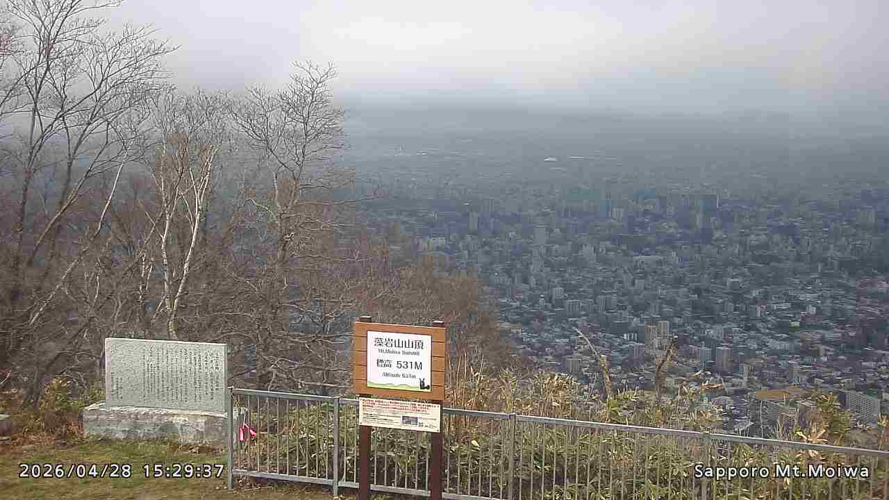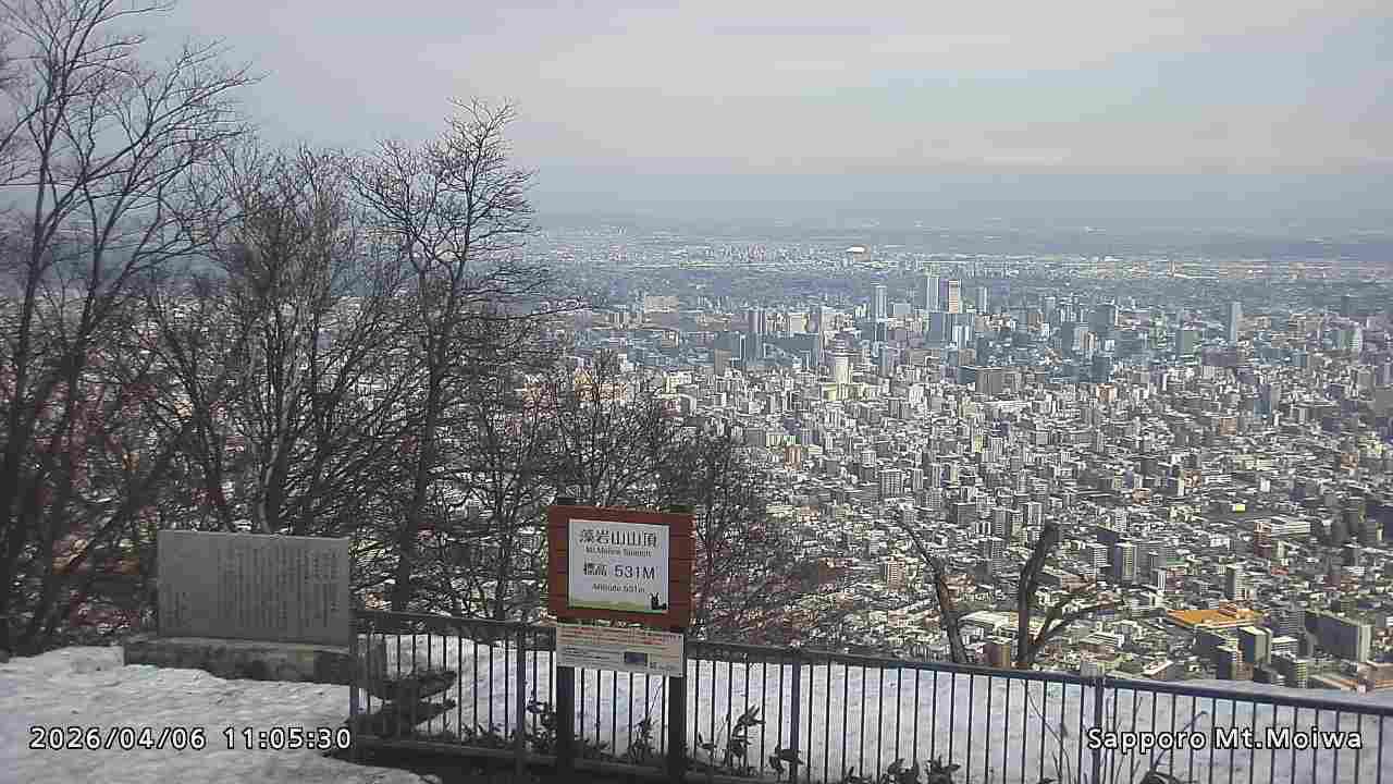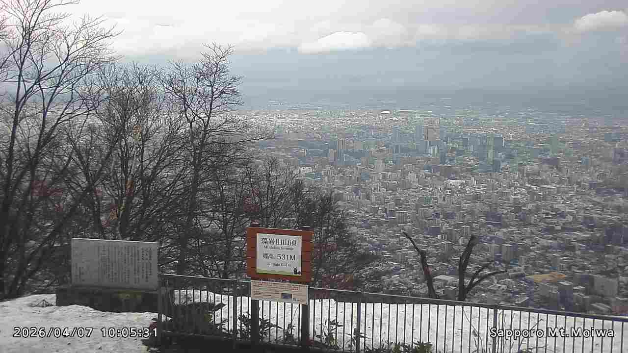 もいわ山山頂の標高看板前にカメラを設置しています。