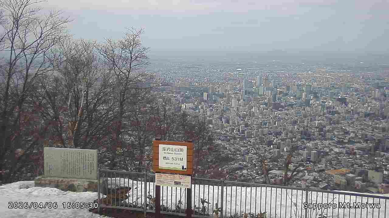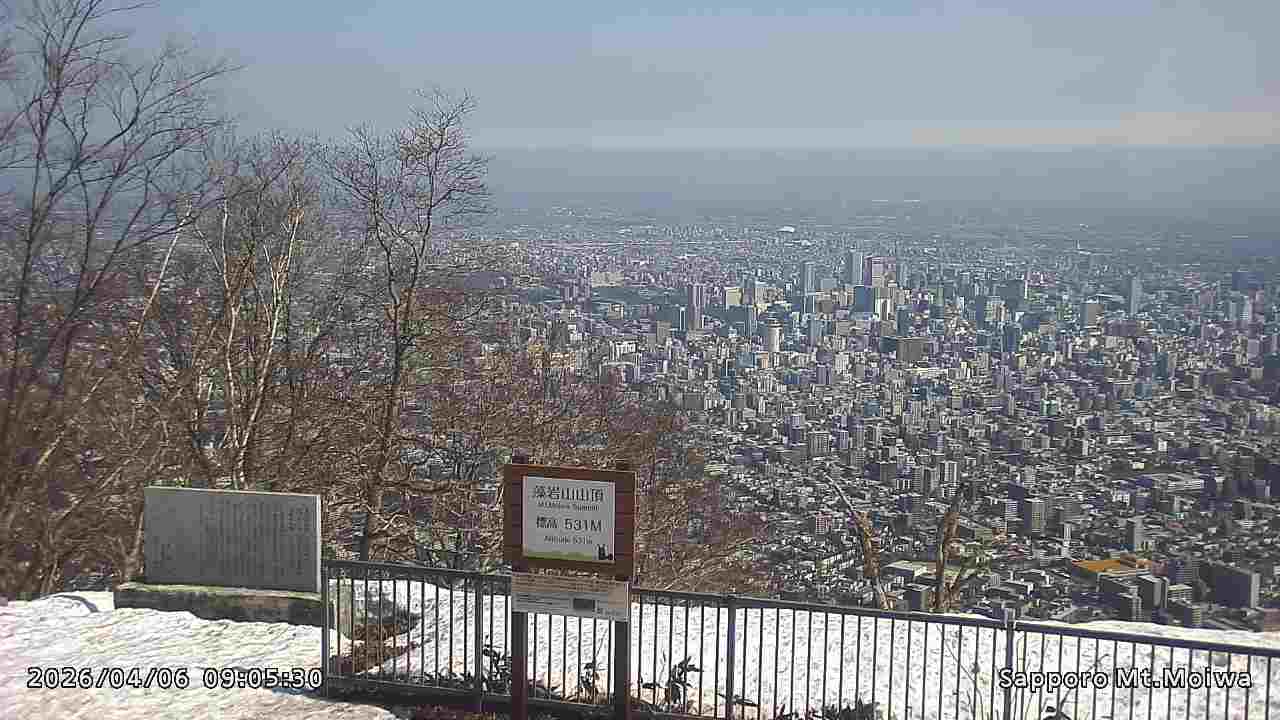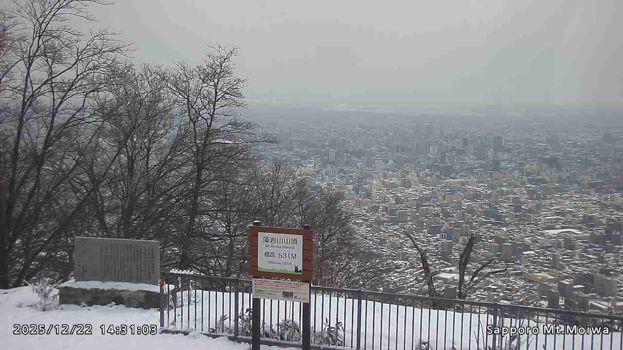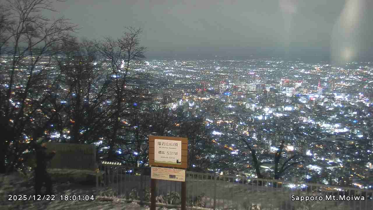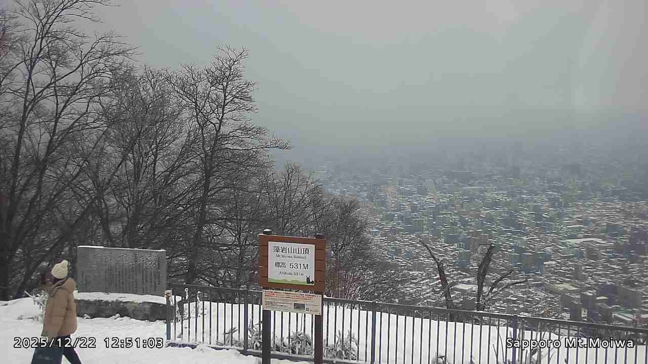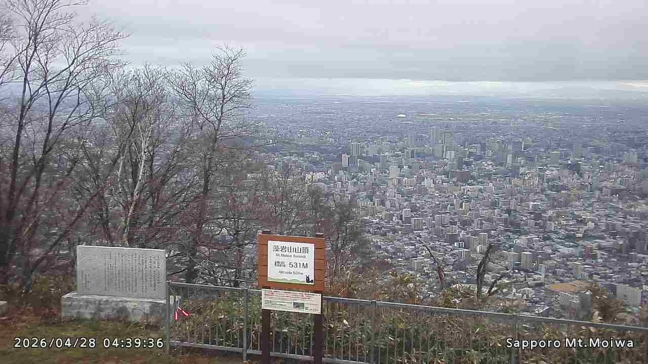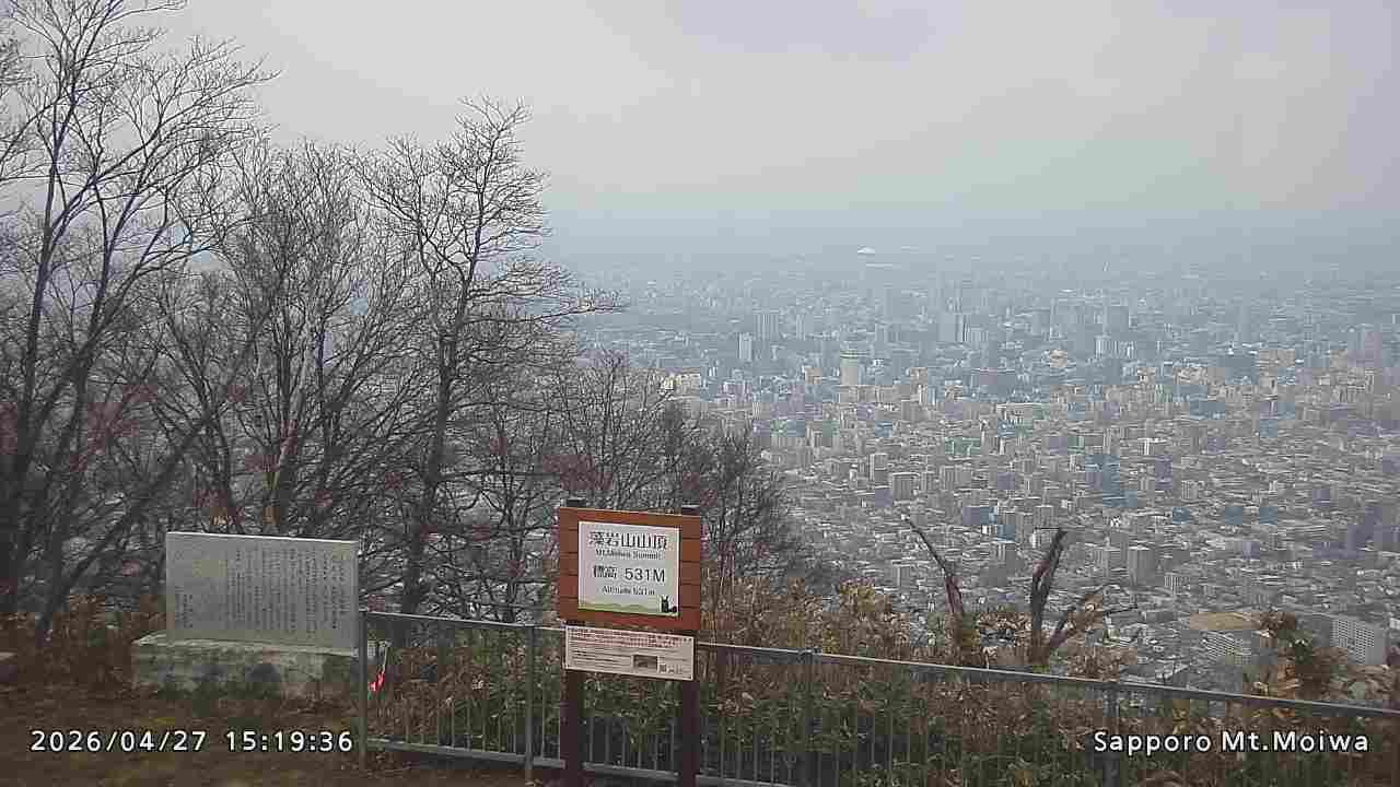 もいわ山山頂の標高看板前にカメラを設置しています。