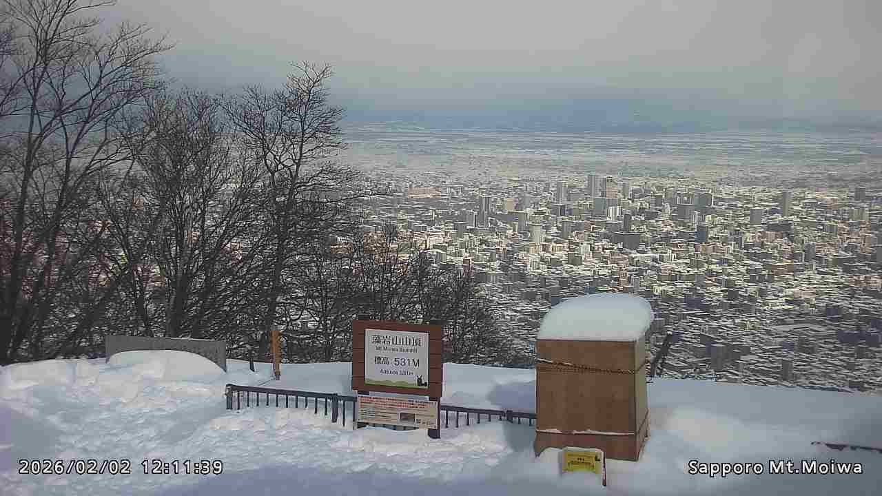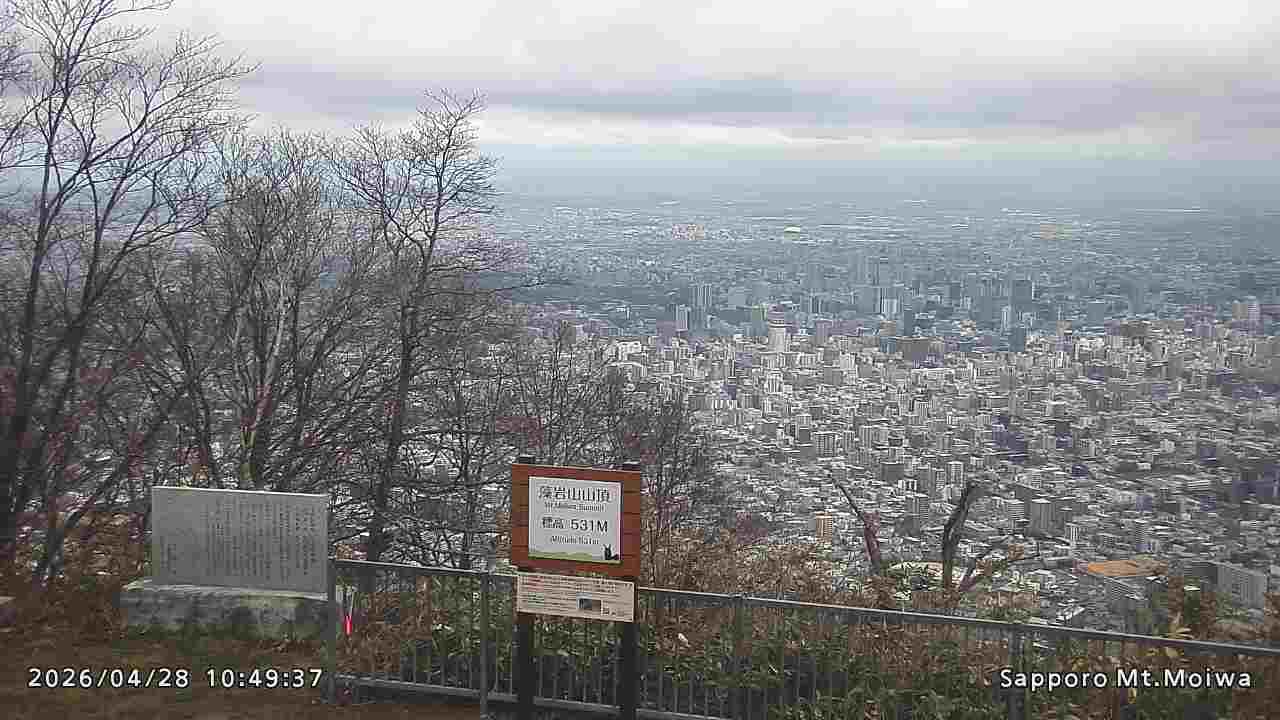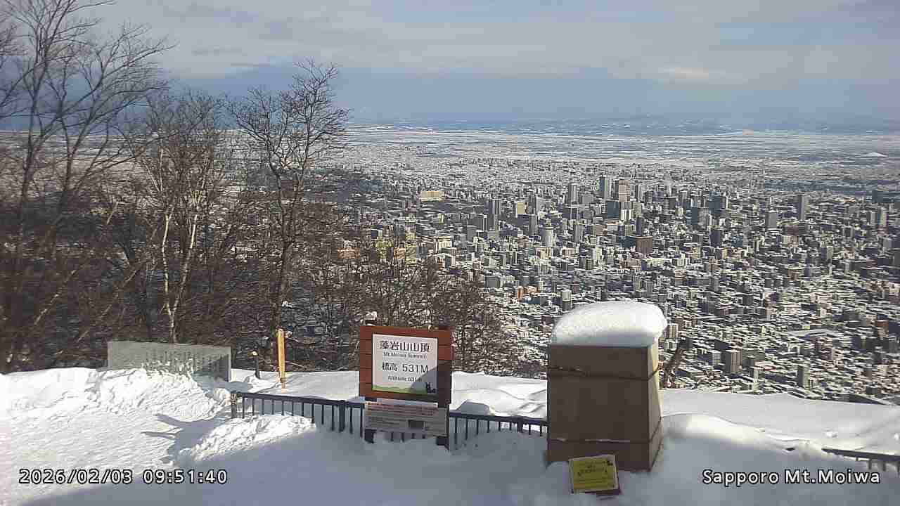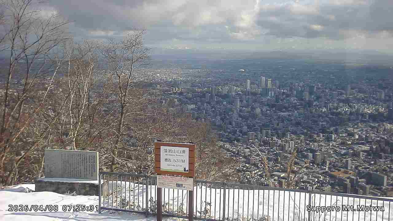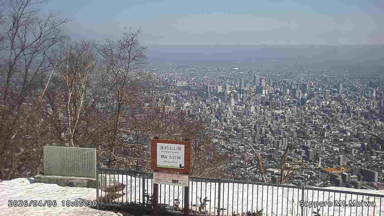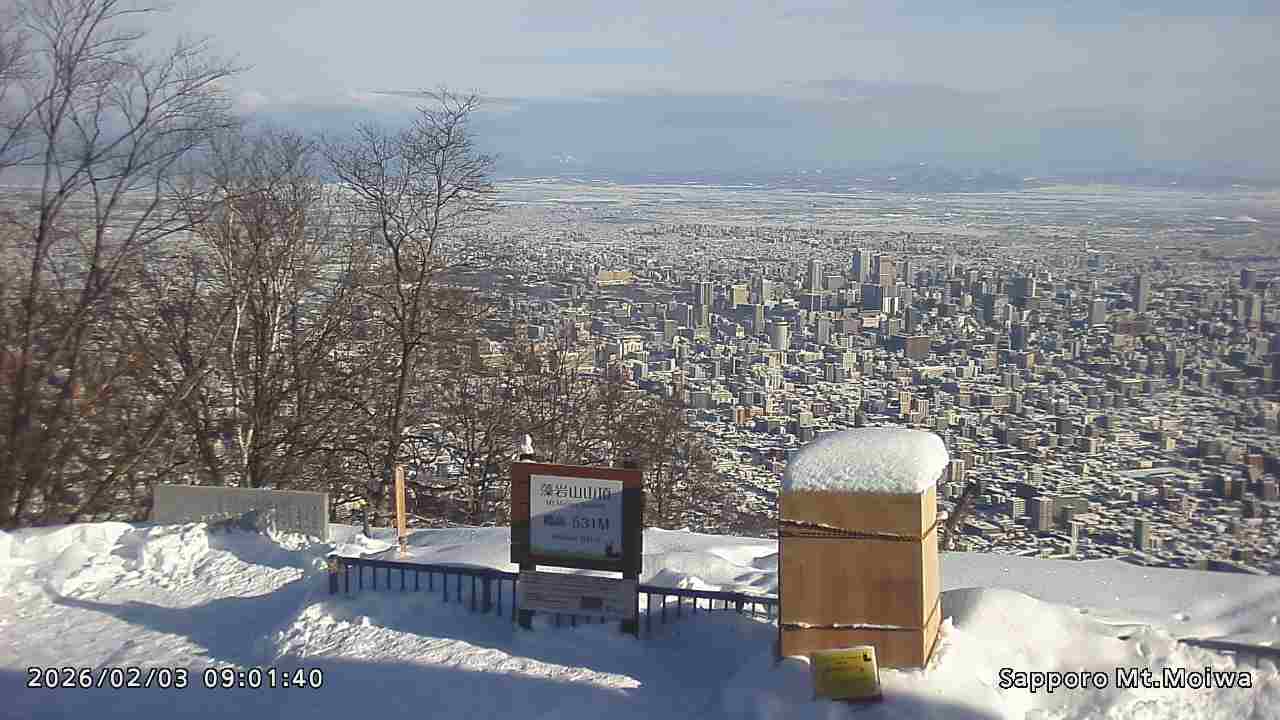 もいわ山山頂の標高看板前にカメラを設置しています。