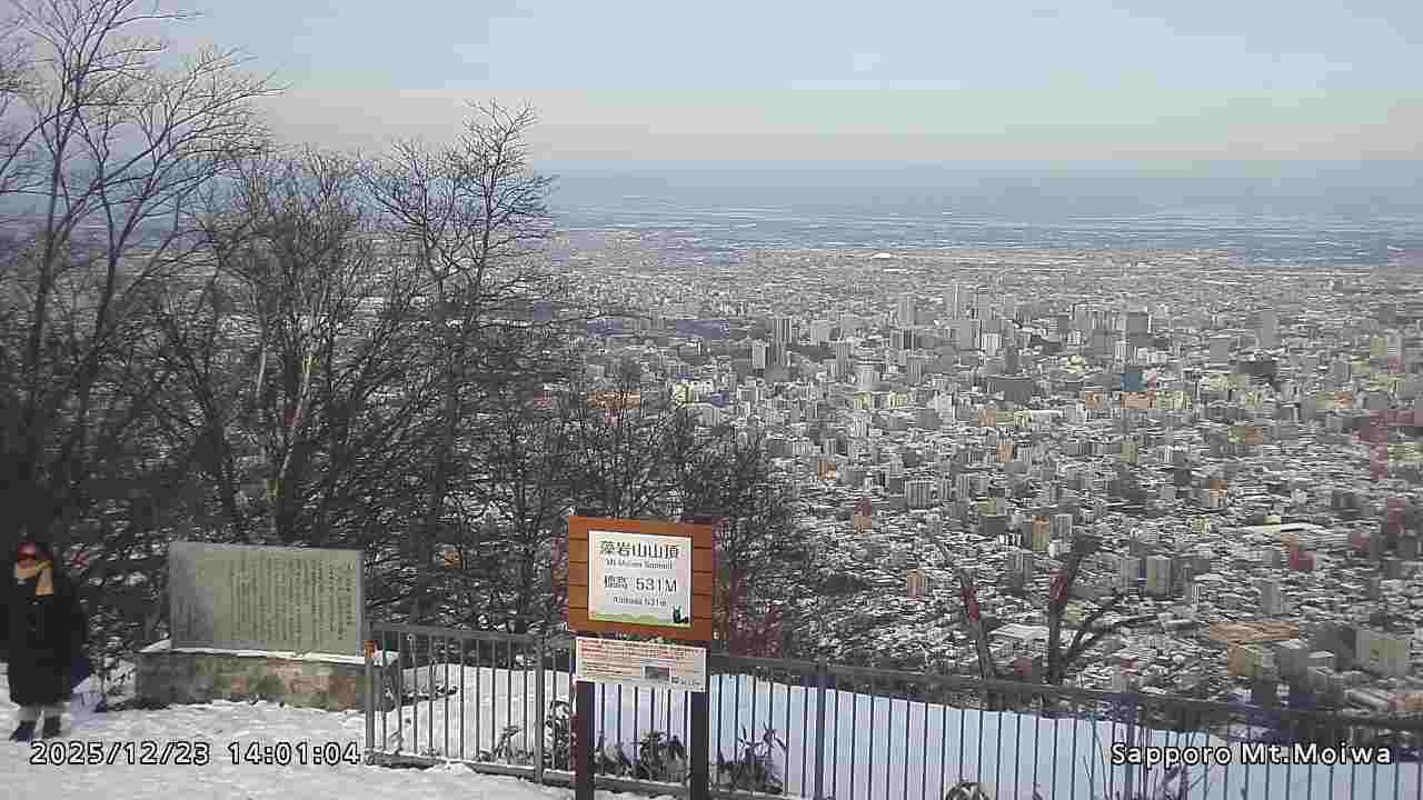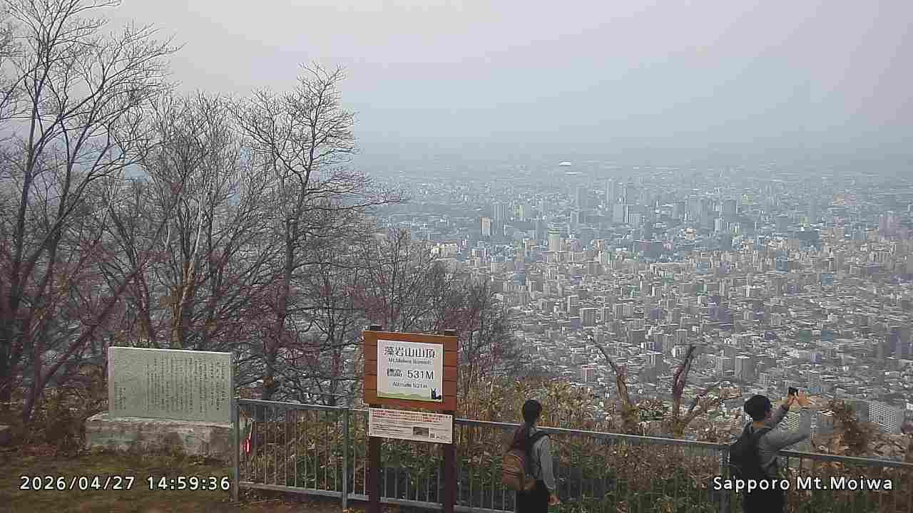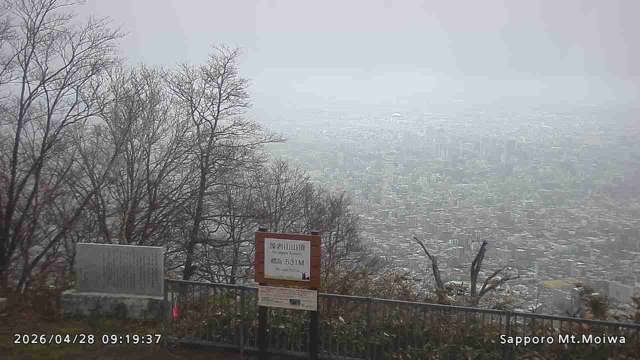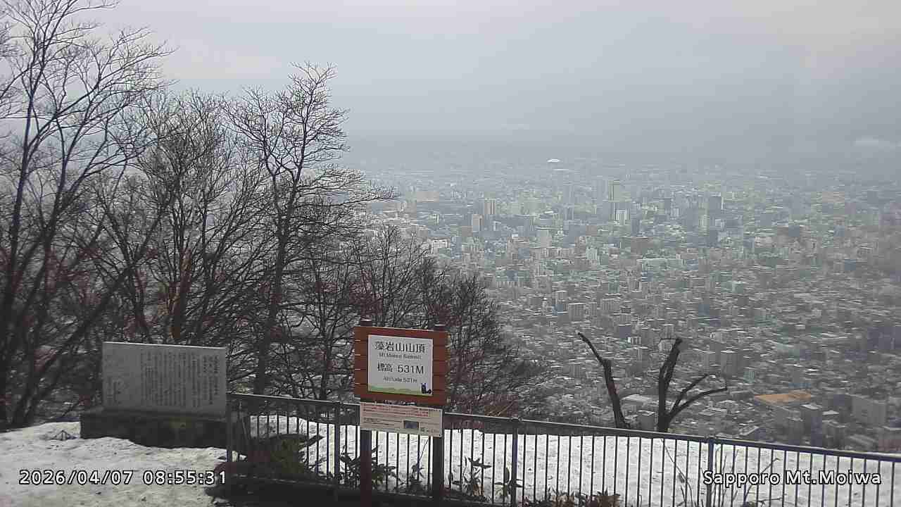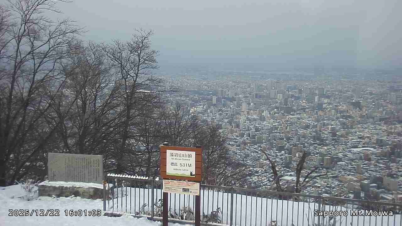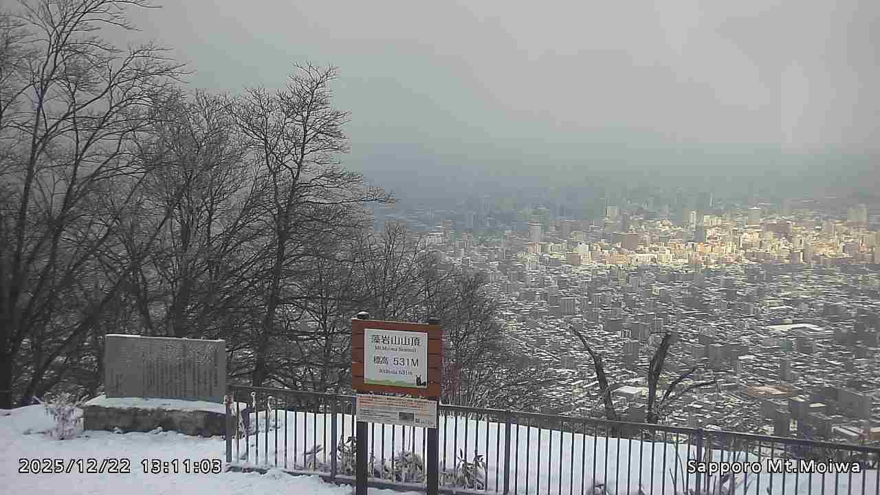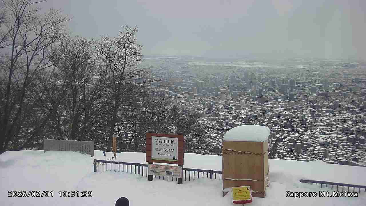 もいわ山山頂の標高看板前にカメラを設置しています。