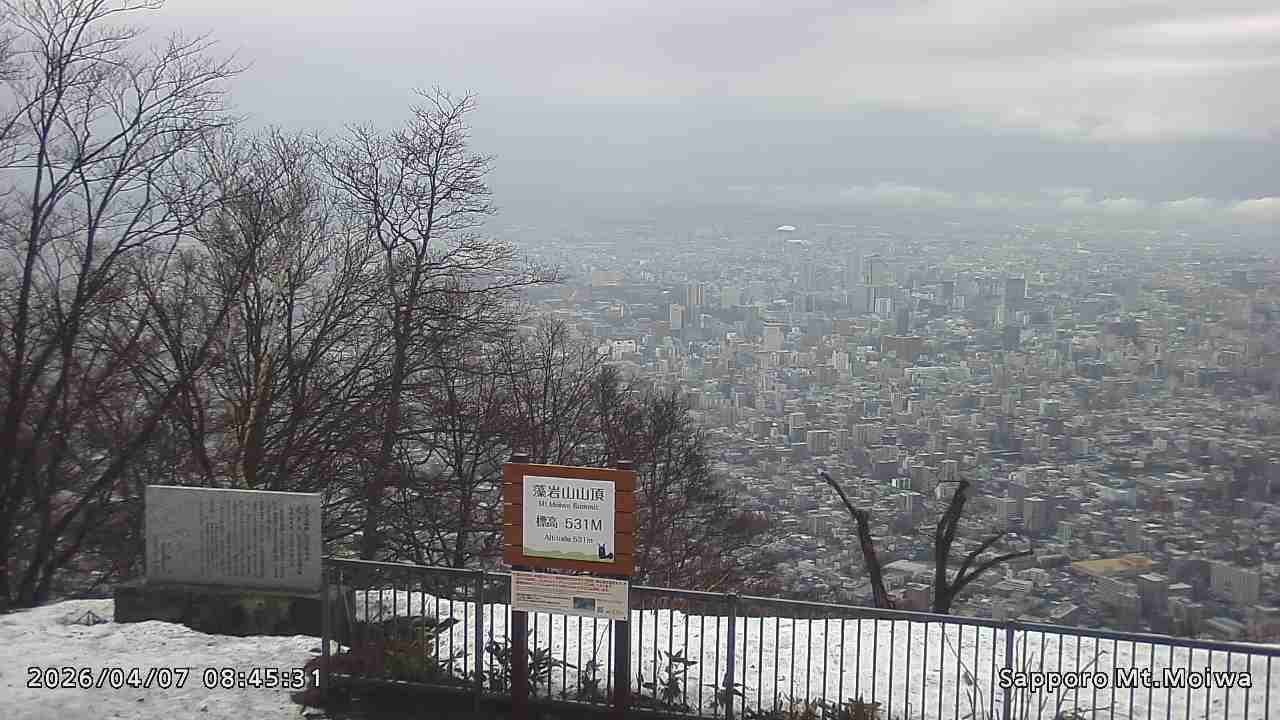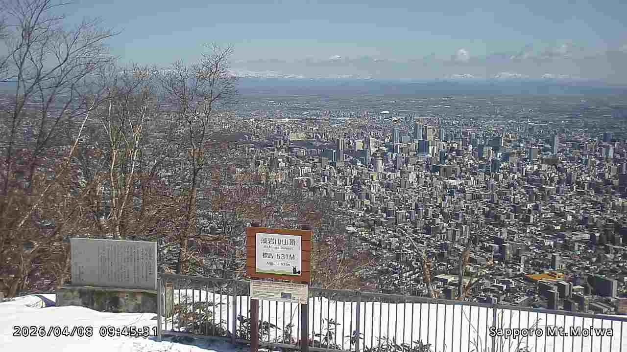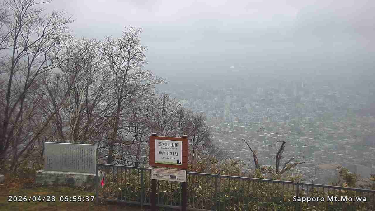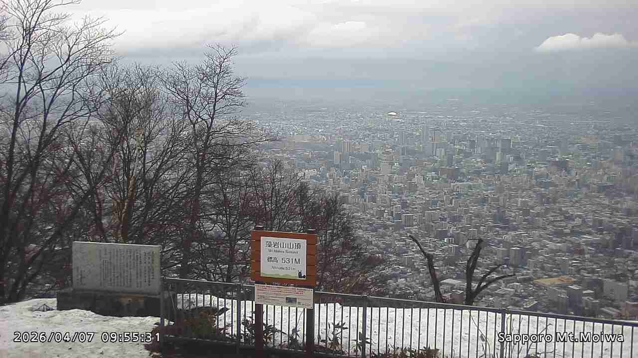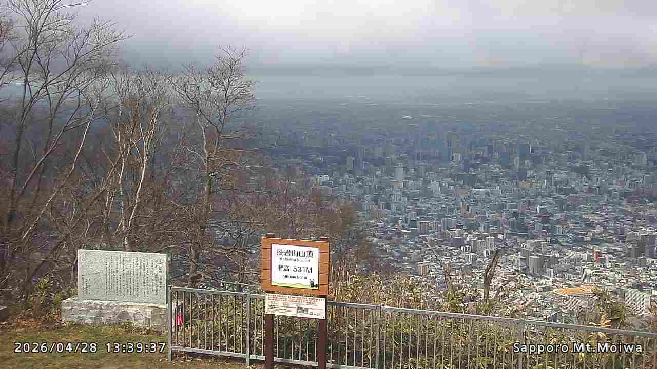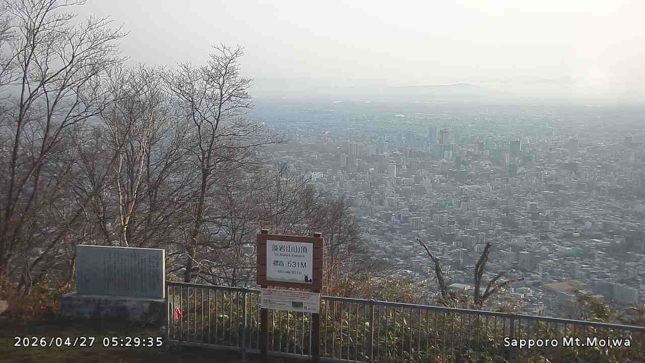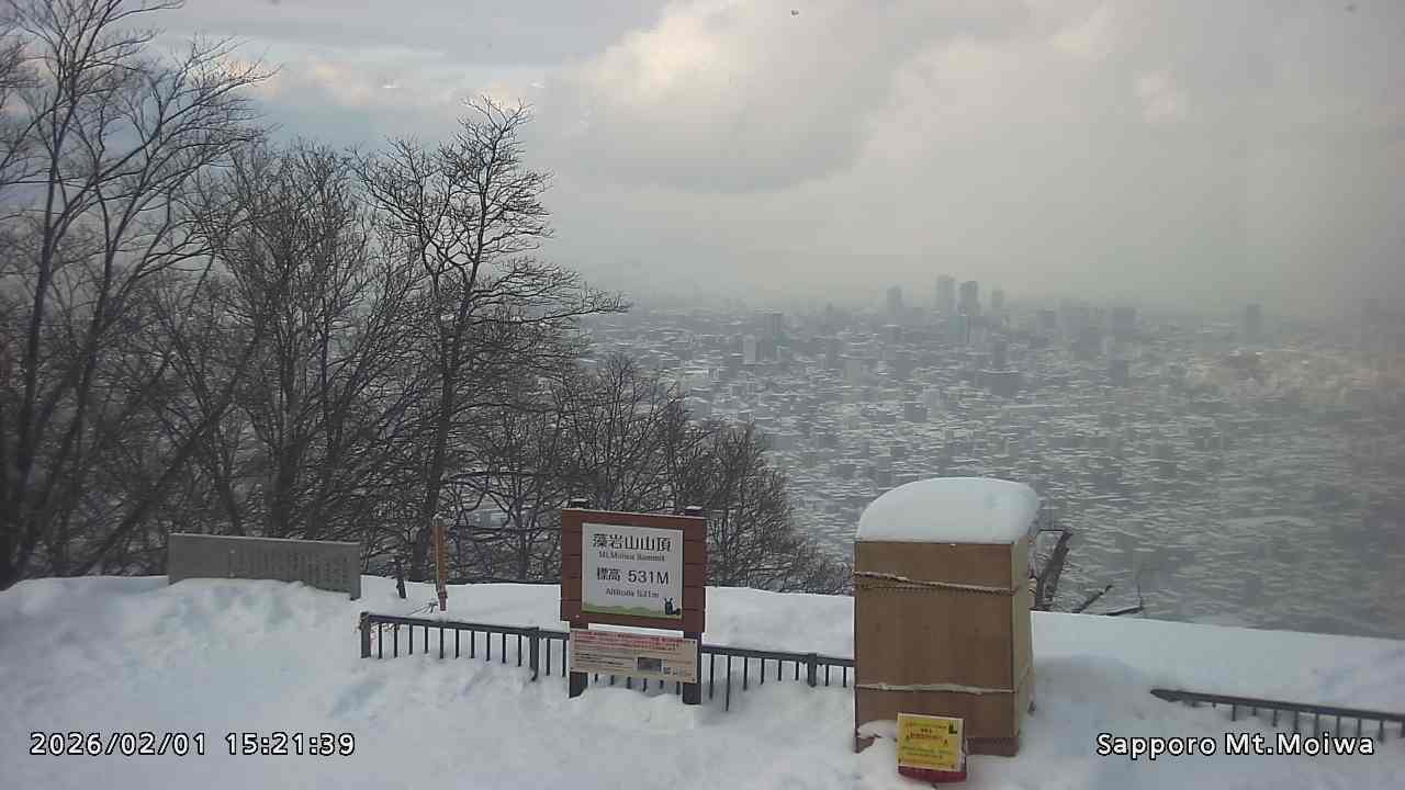 もいわ山山頂の標高看板前にカメラを設置しています。