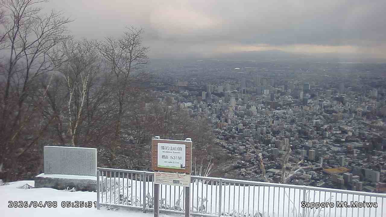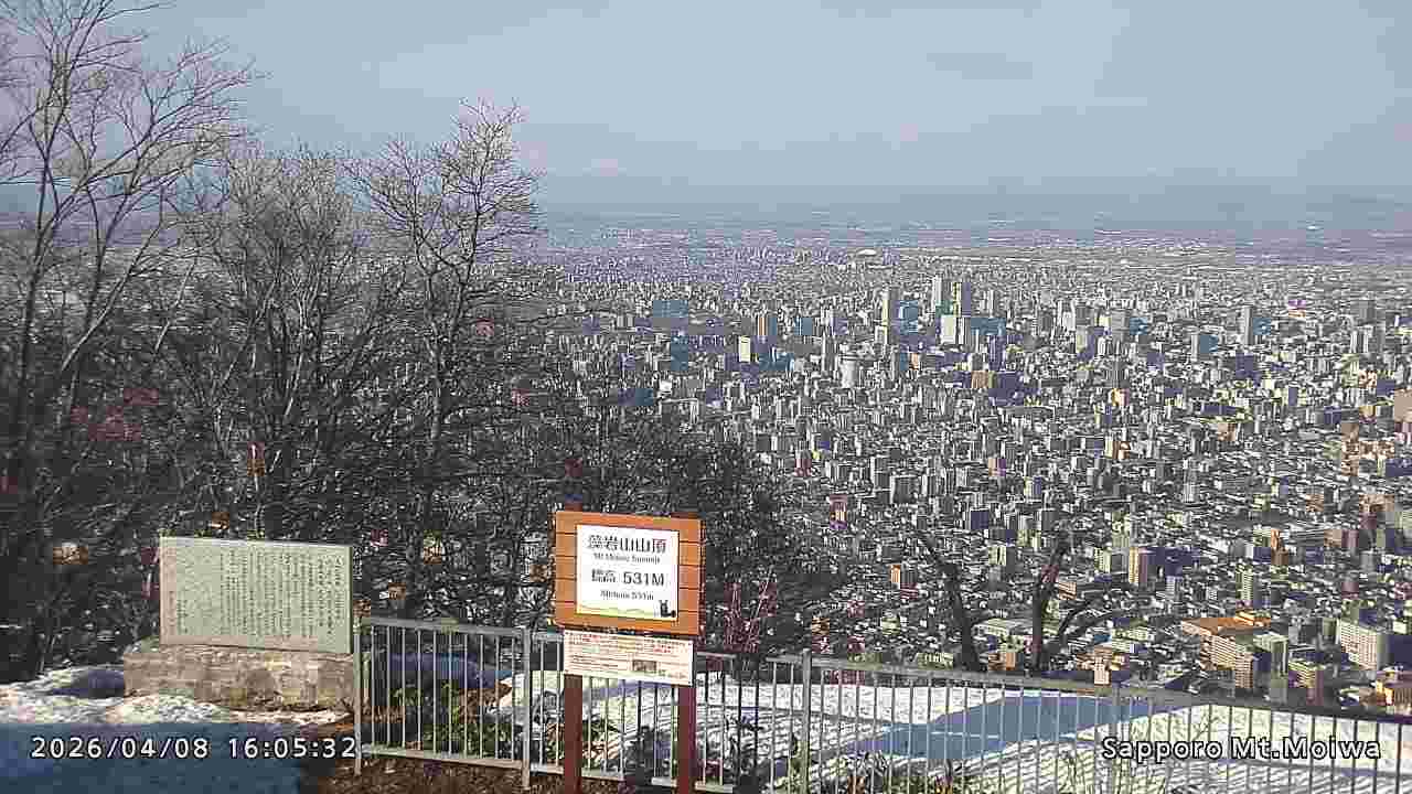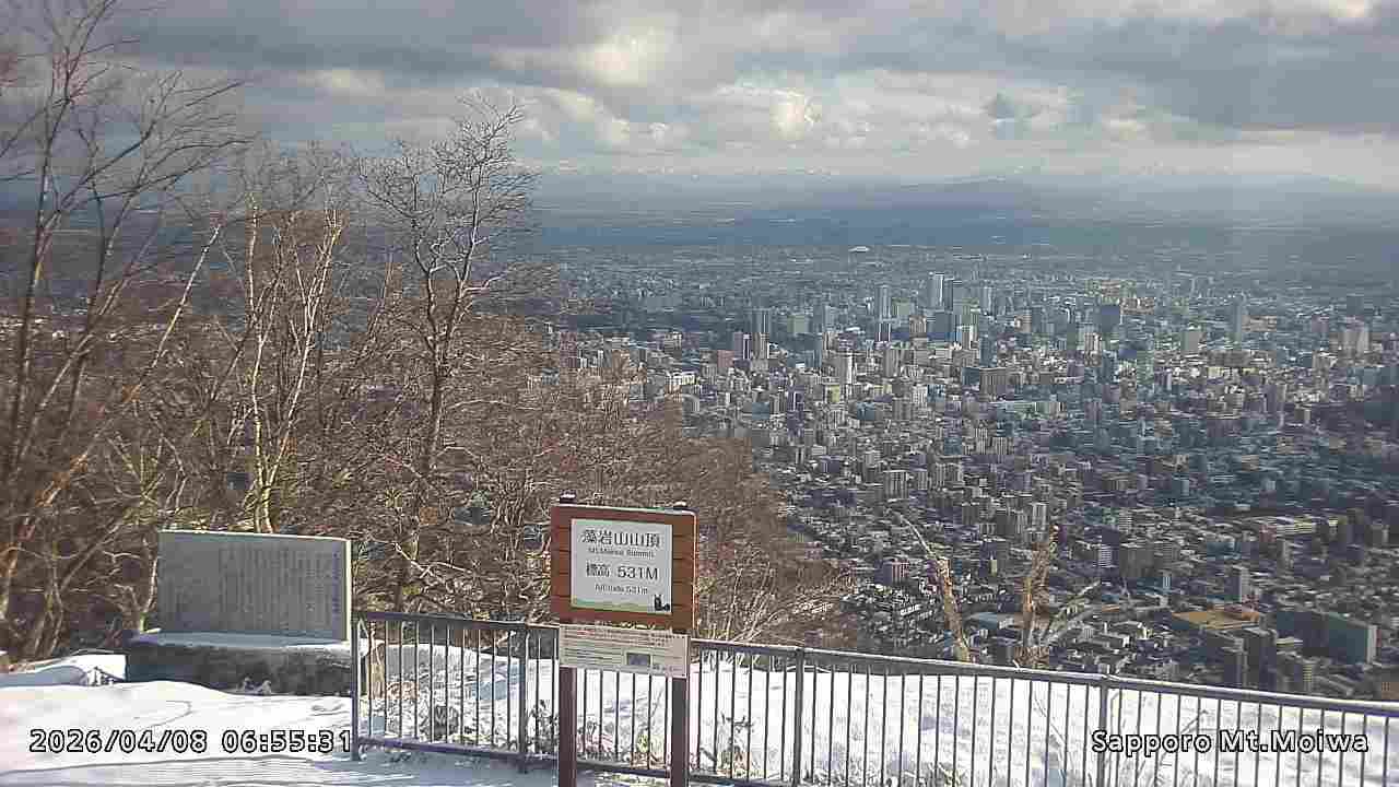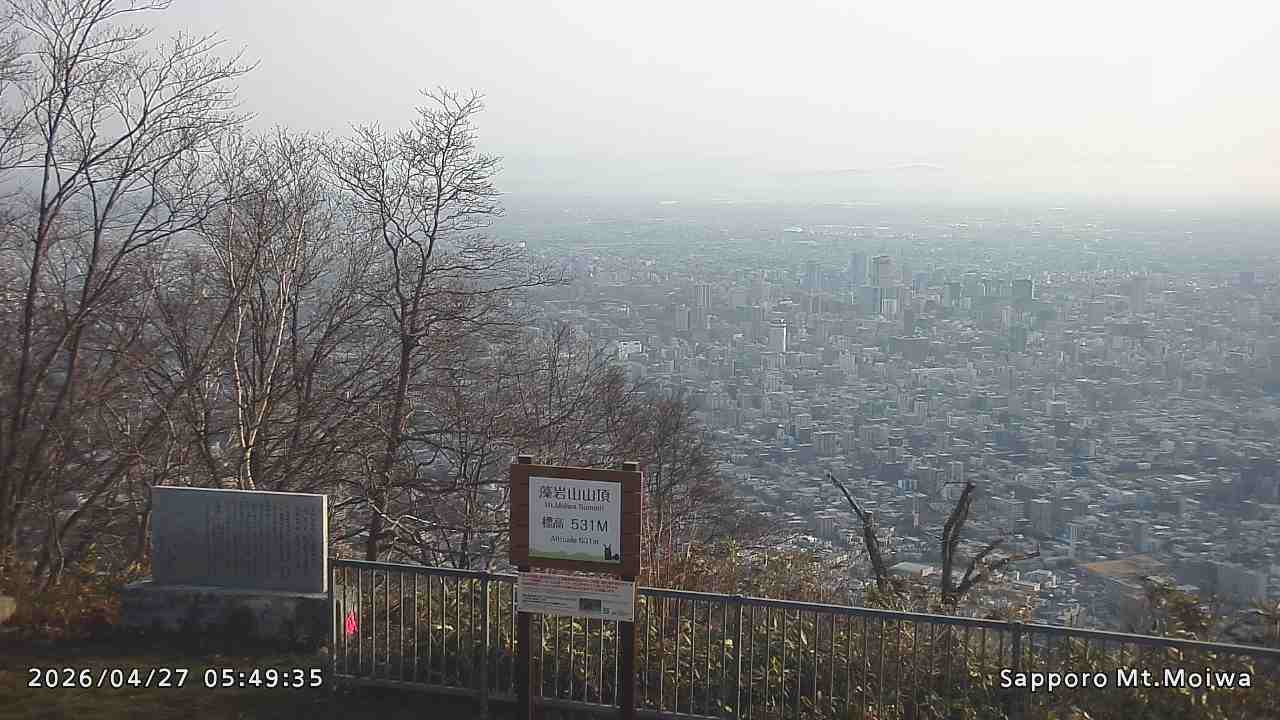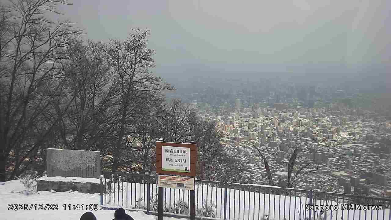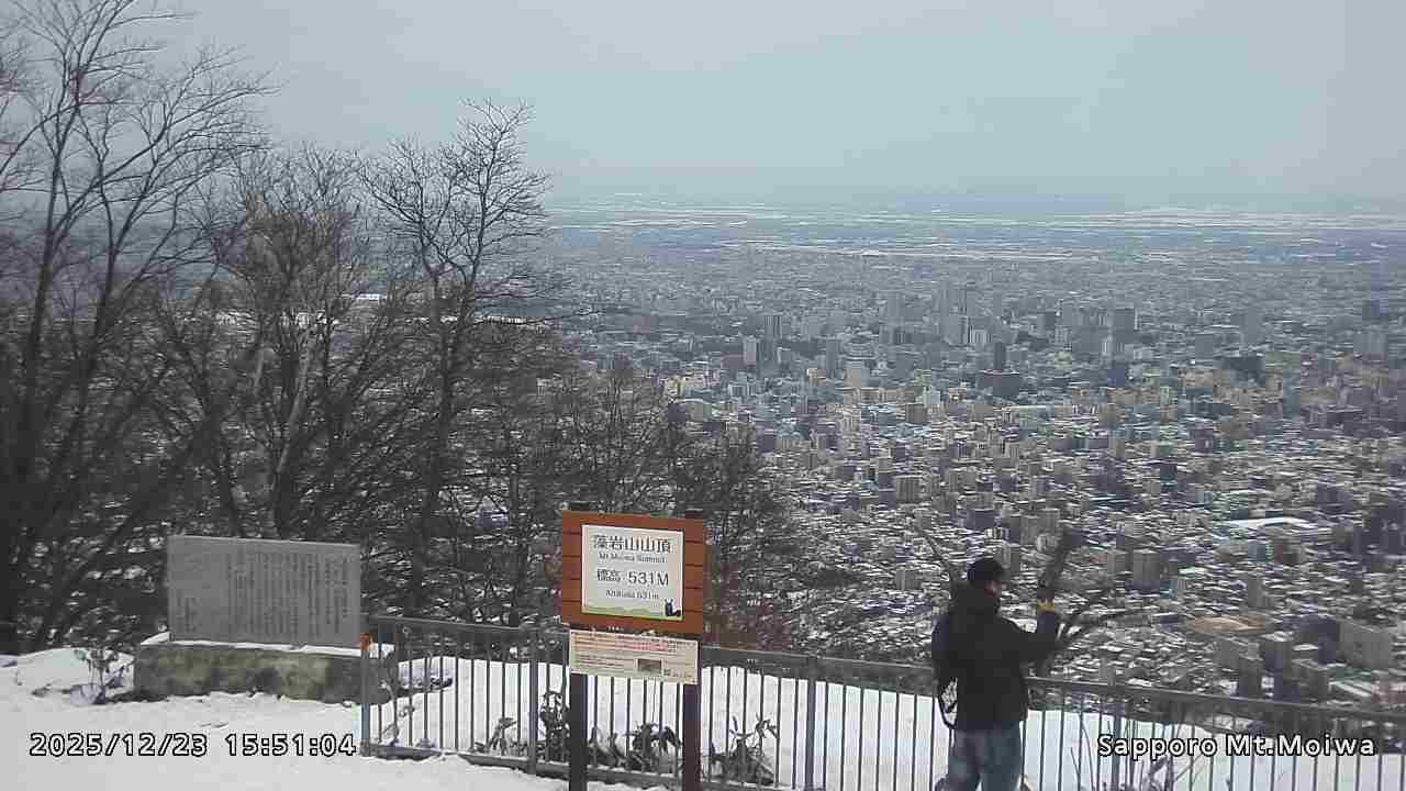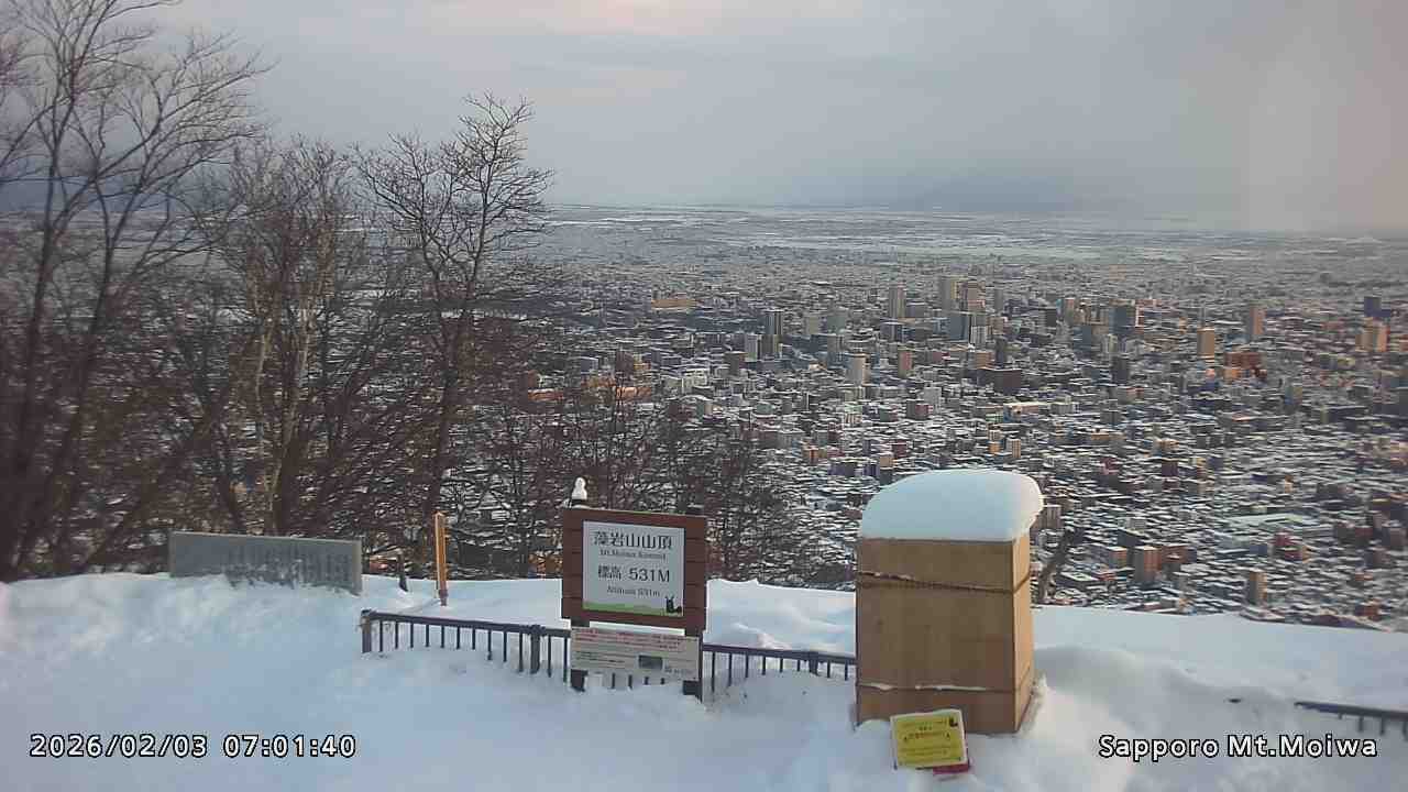 もいわ山山頂の標高看板前にカメラを設置しています。
