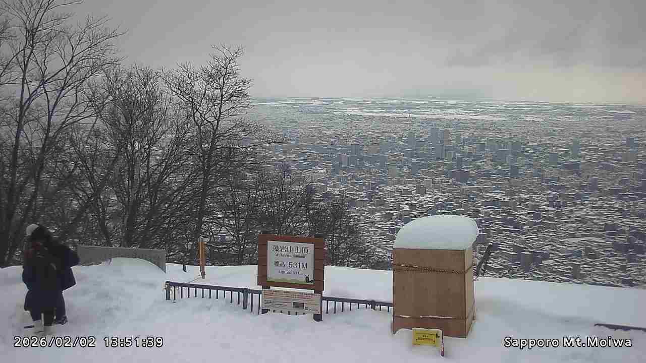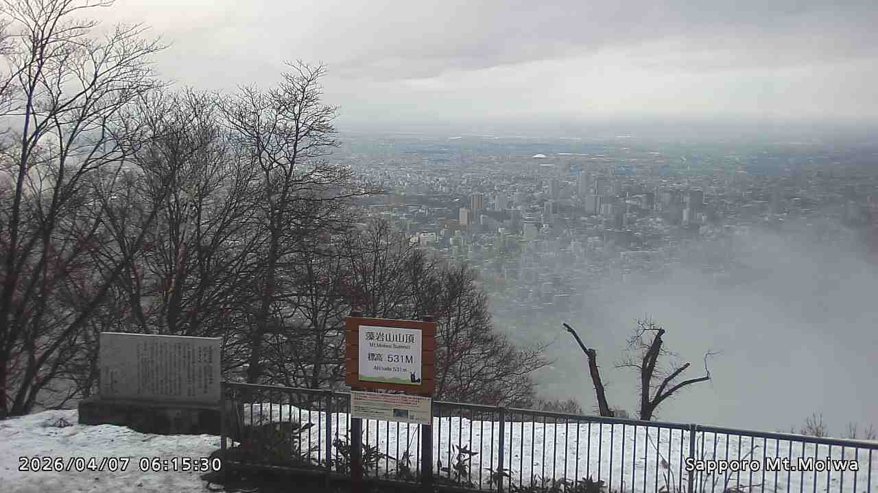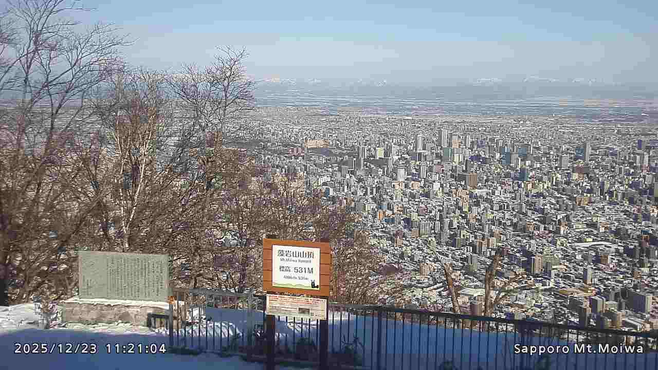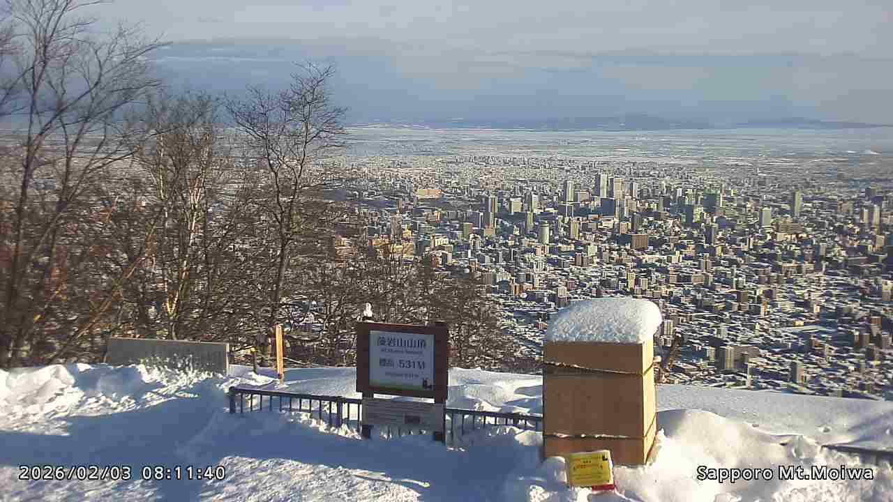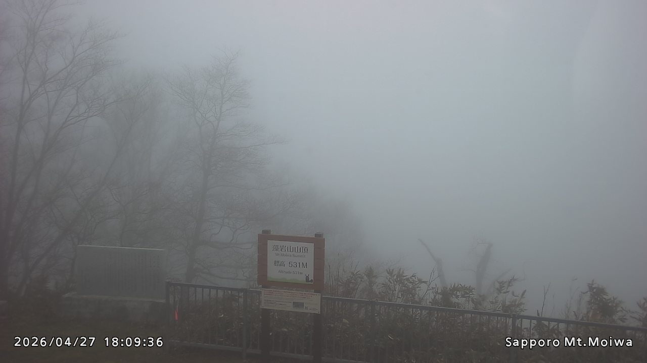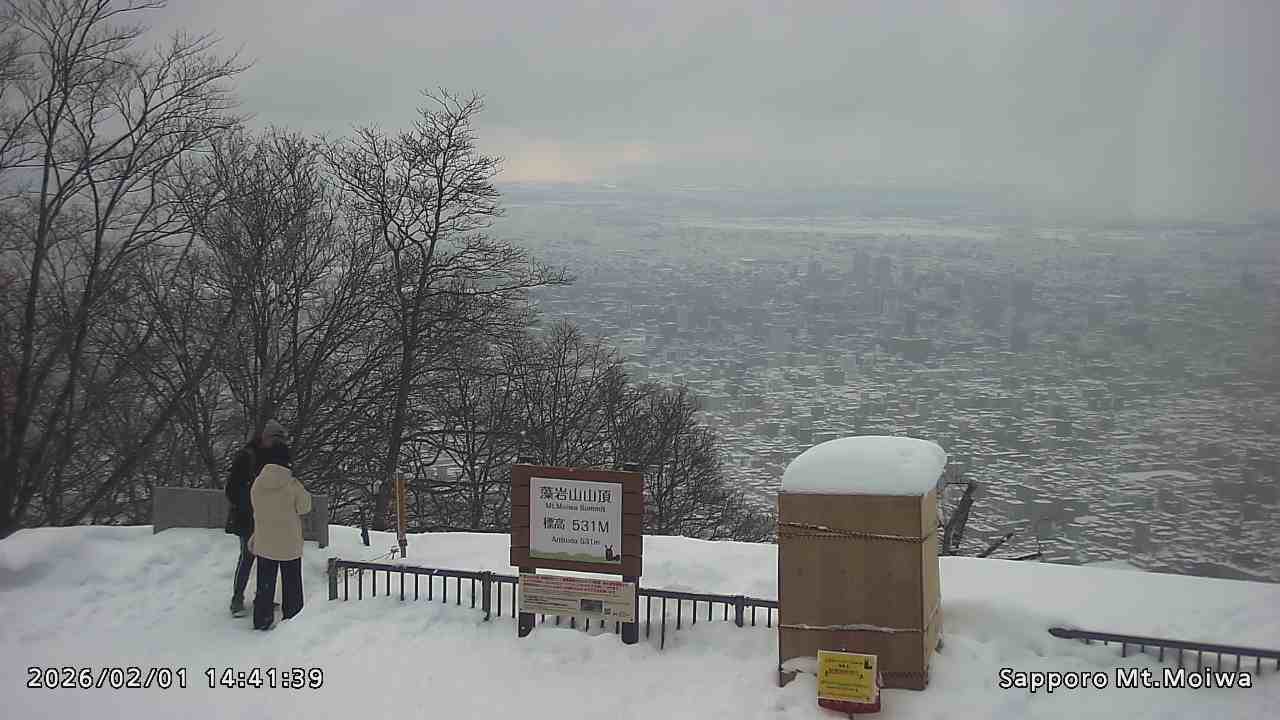 もいわ山山頂の標高看板前にカメラを設置しています。