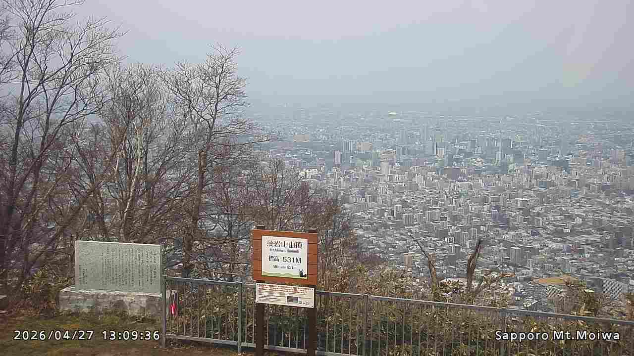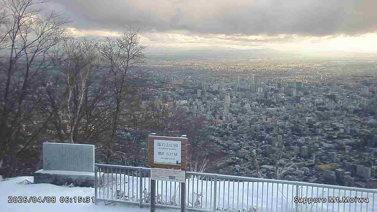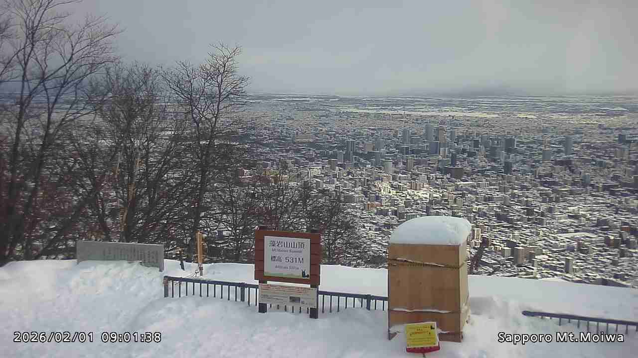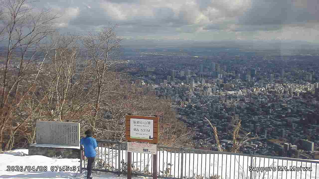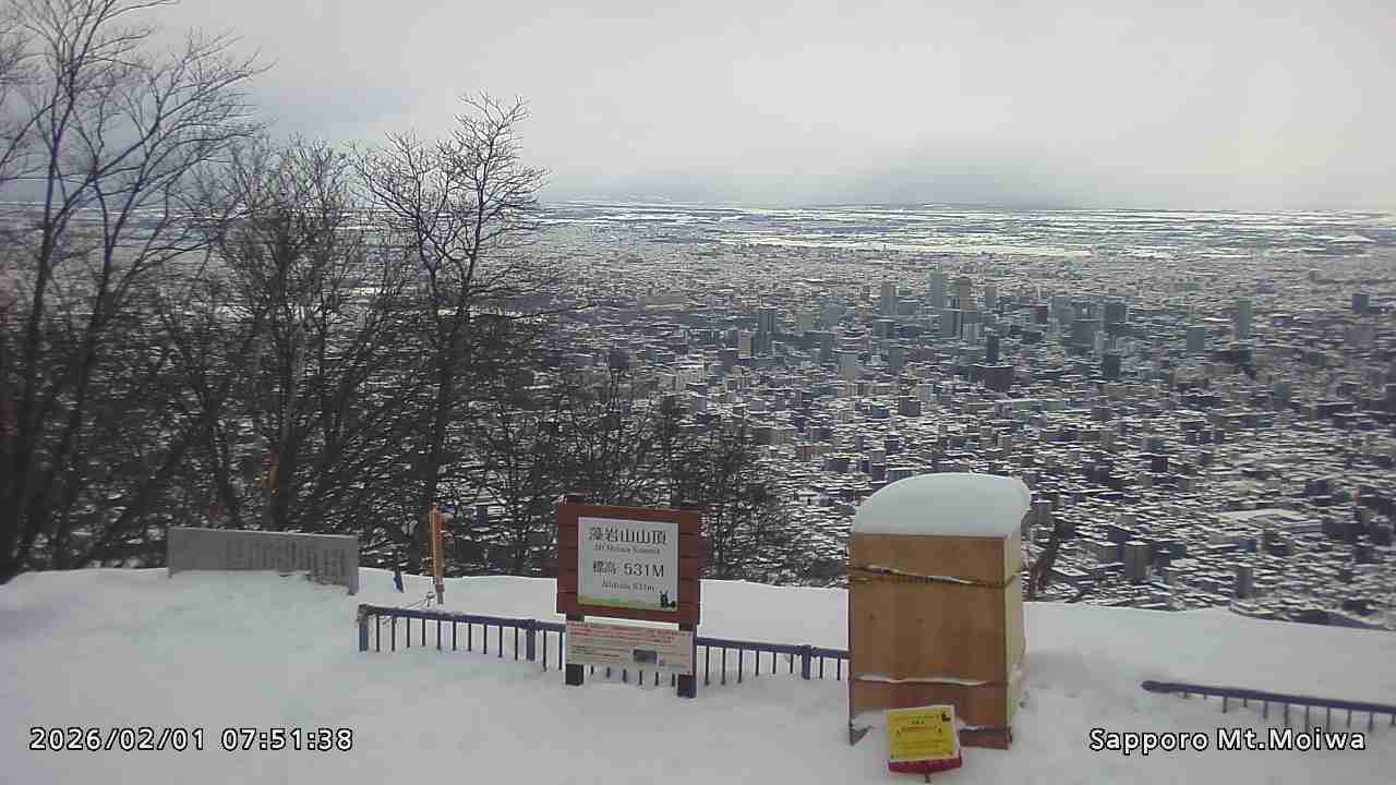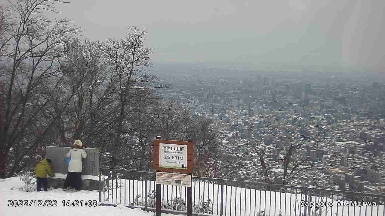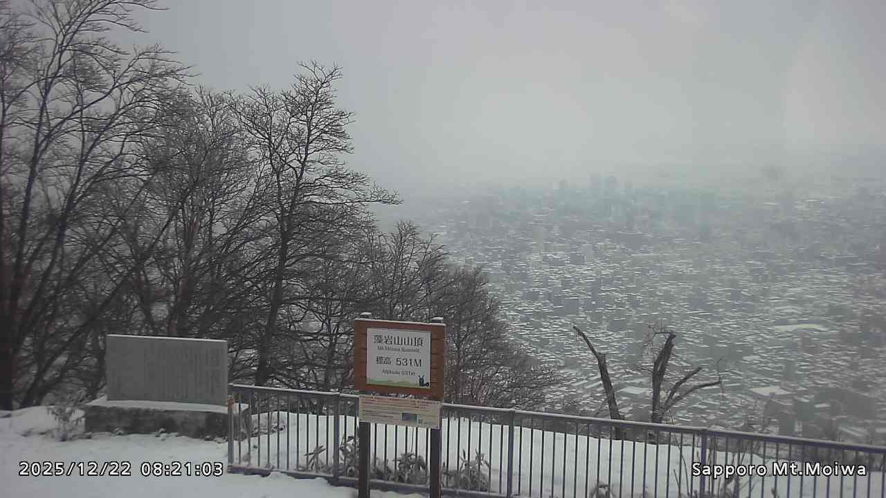 もいわ山山頂の標高看板前にカメラを設置しています。