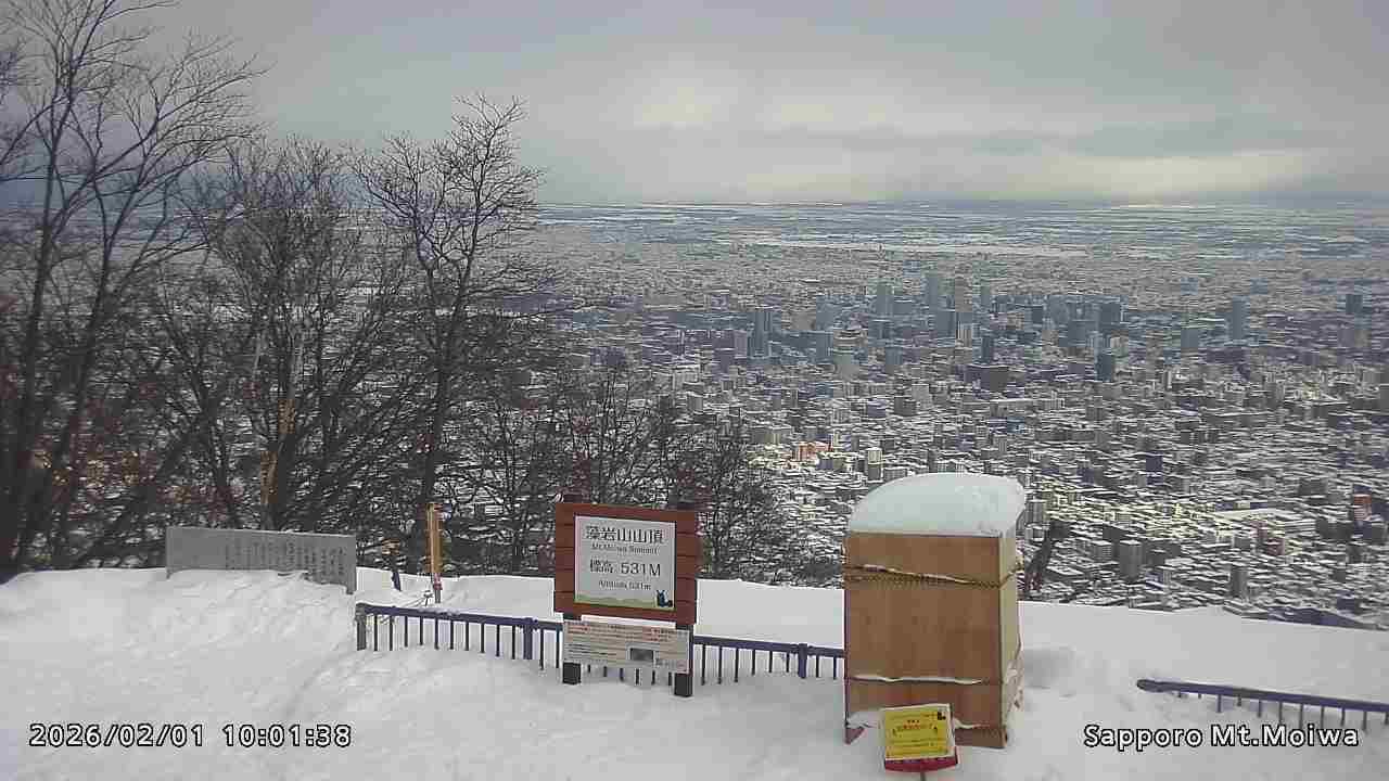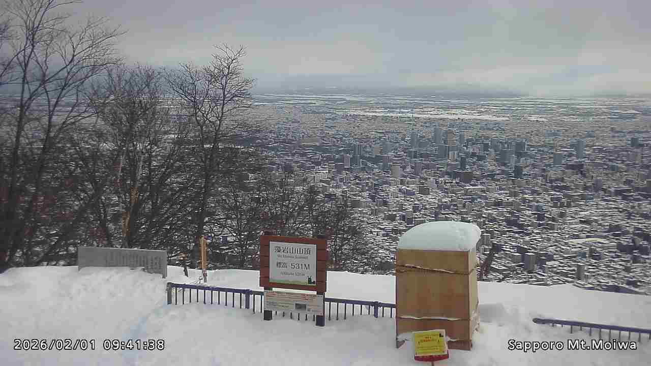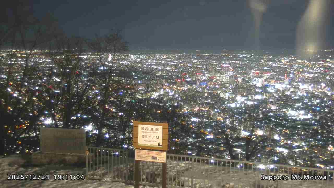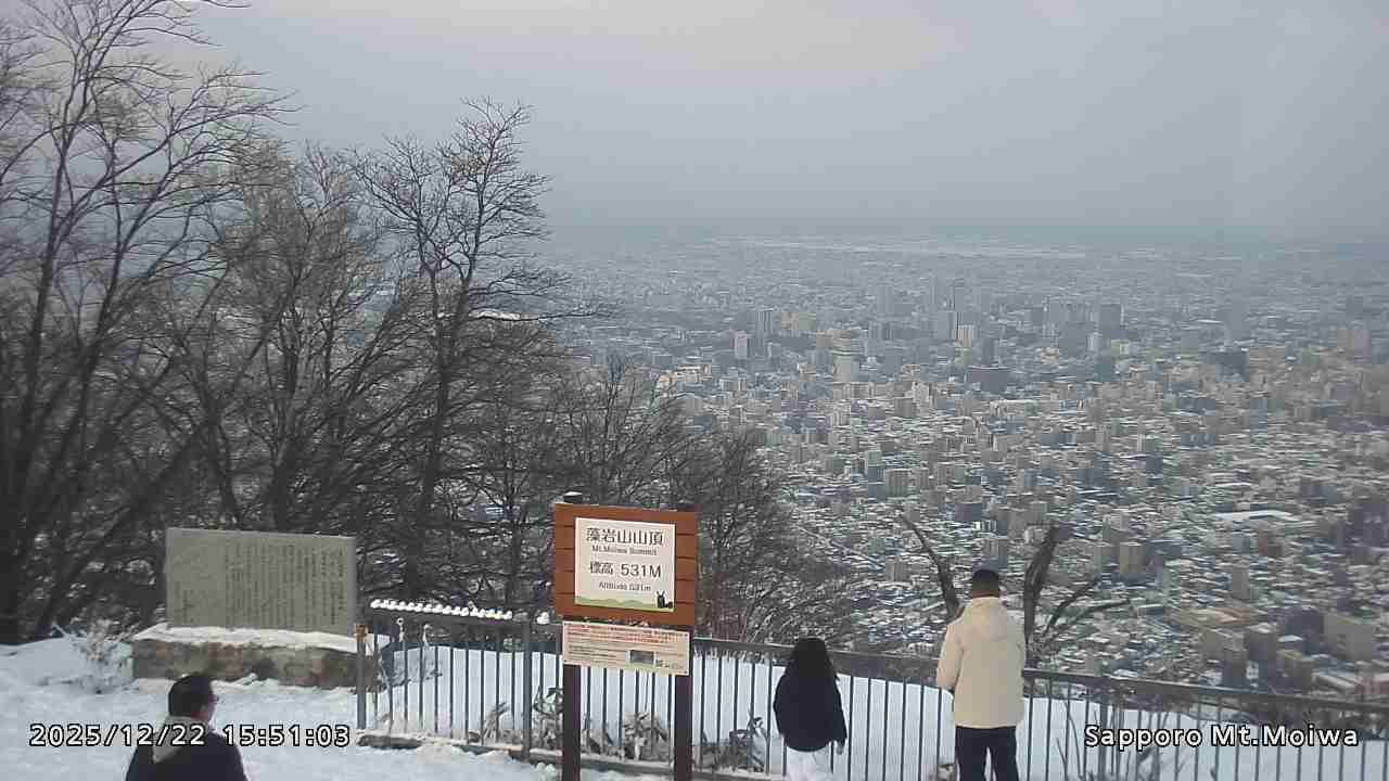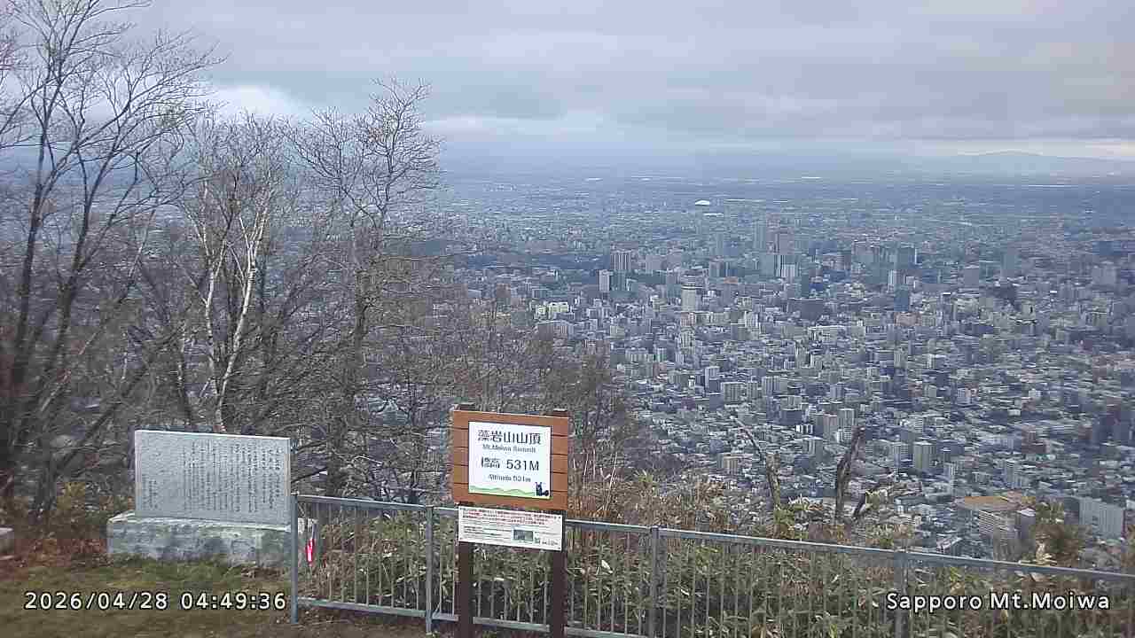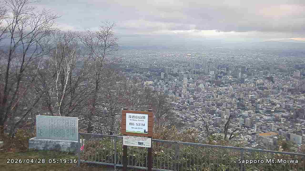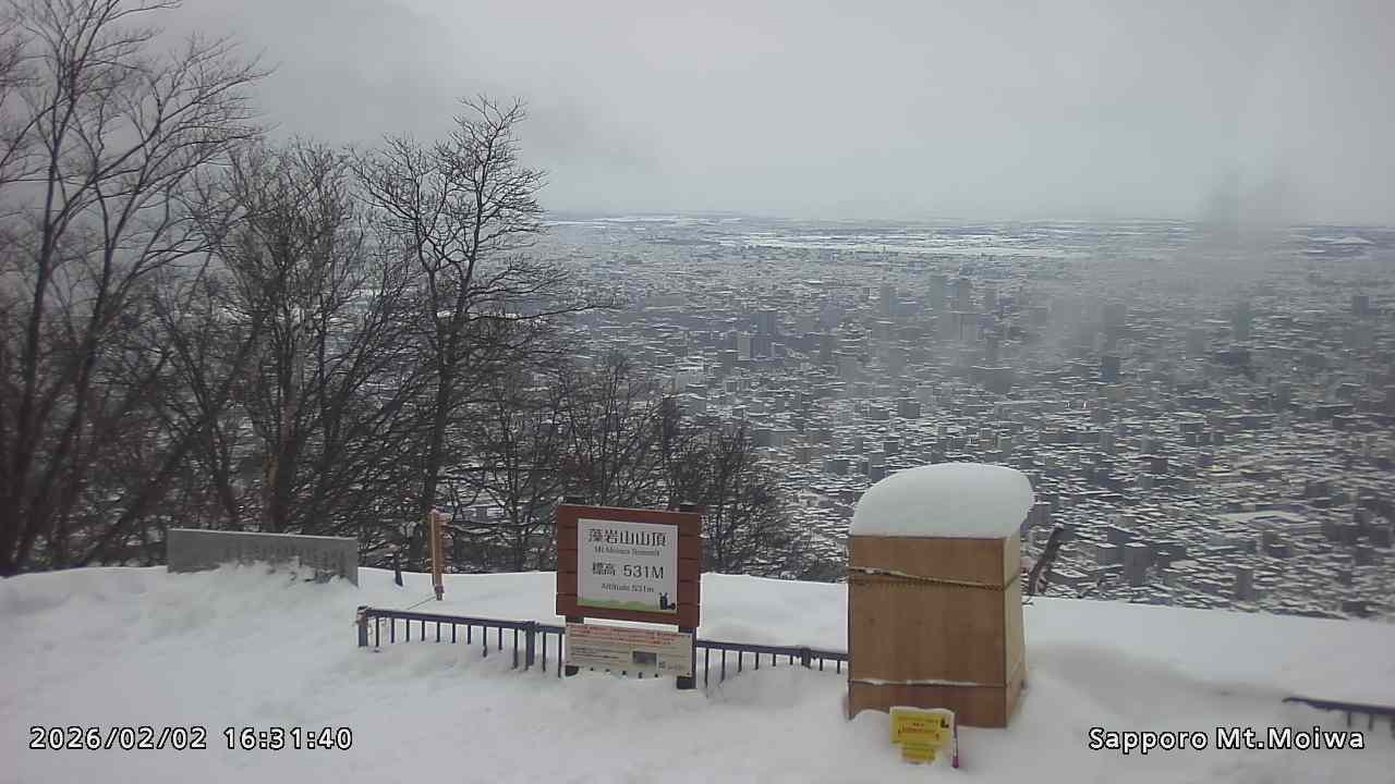 もいわ山山頂の標高看板前にカメラを設置しています。