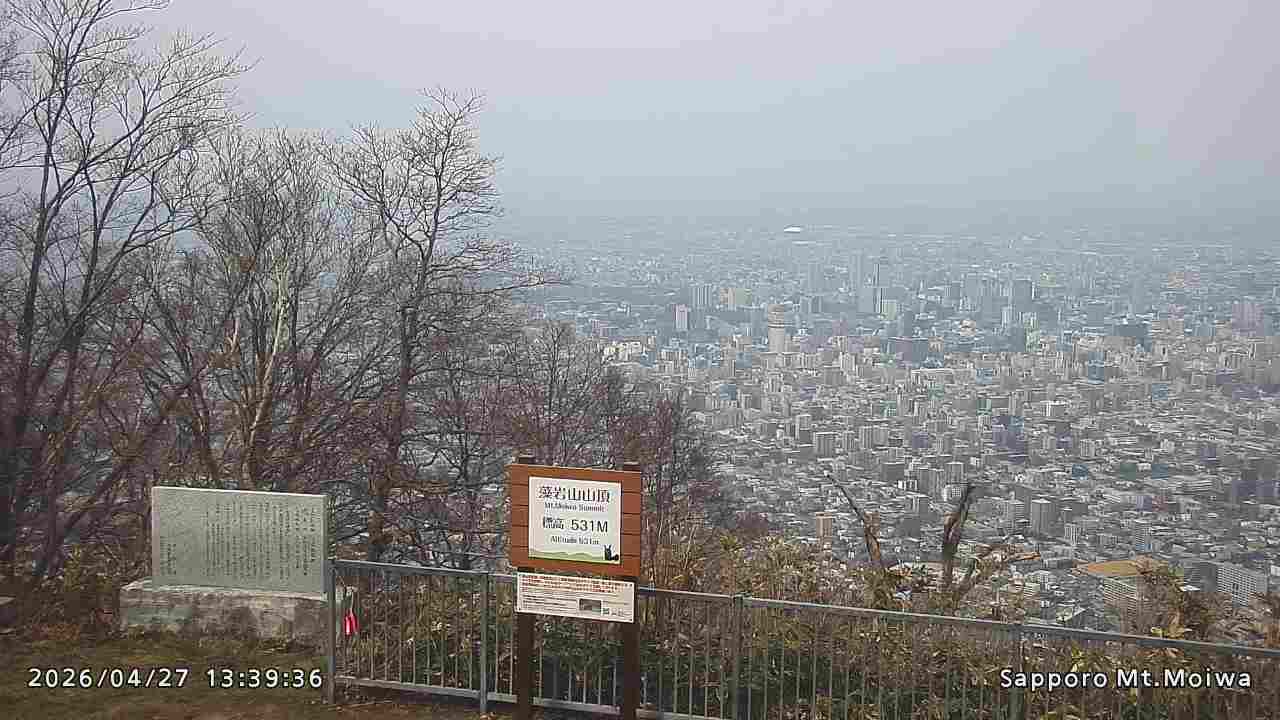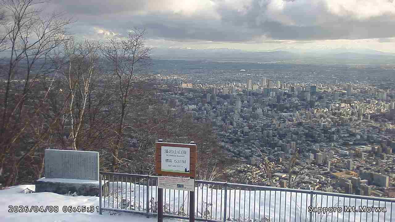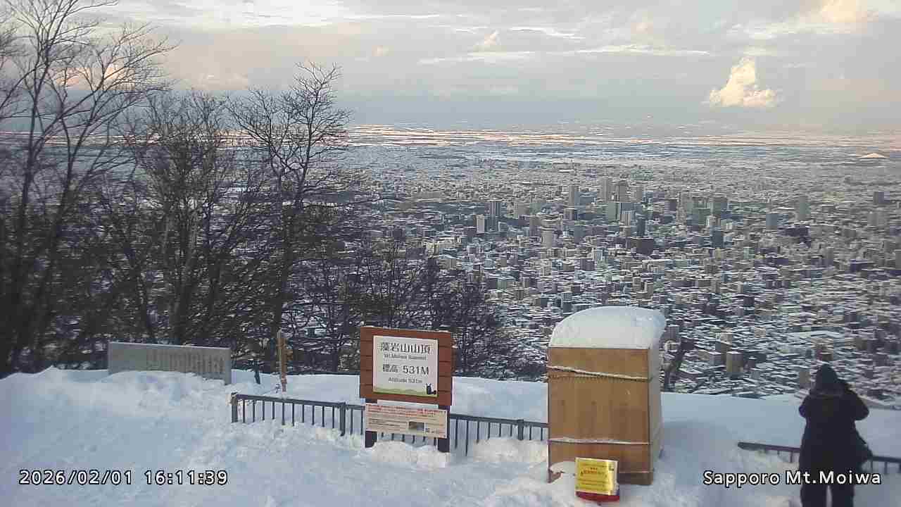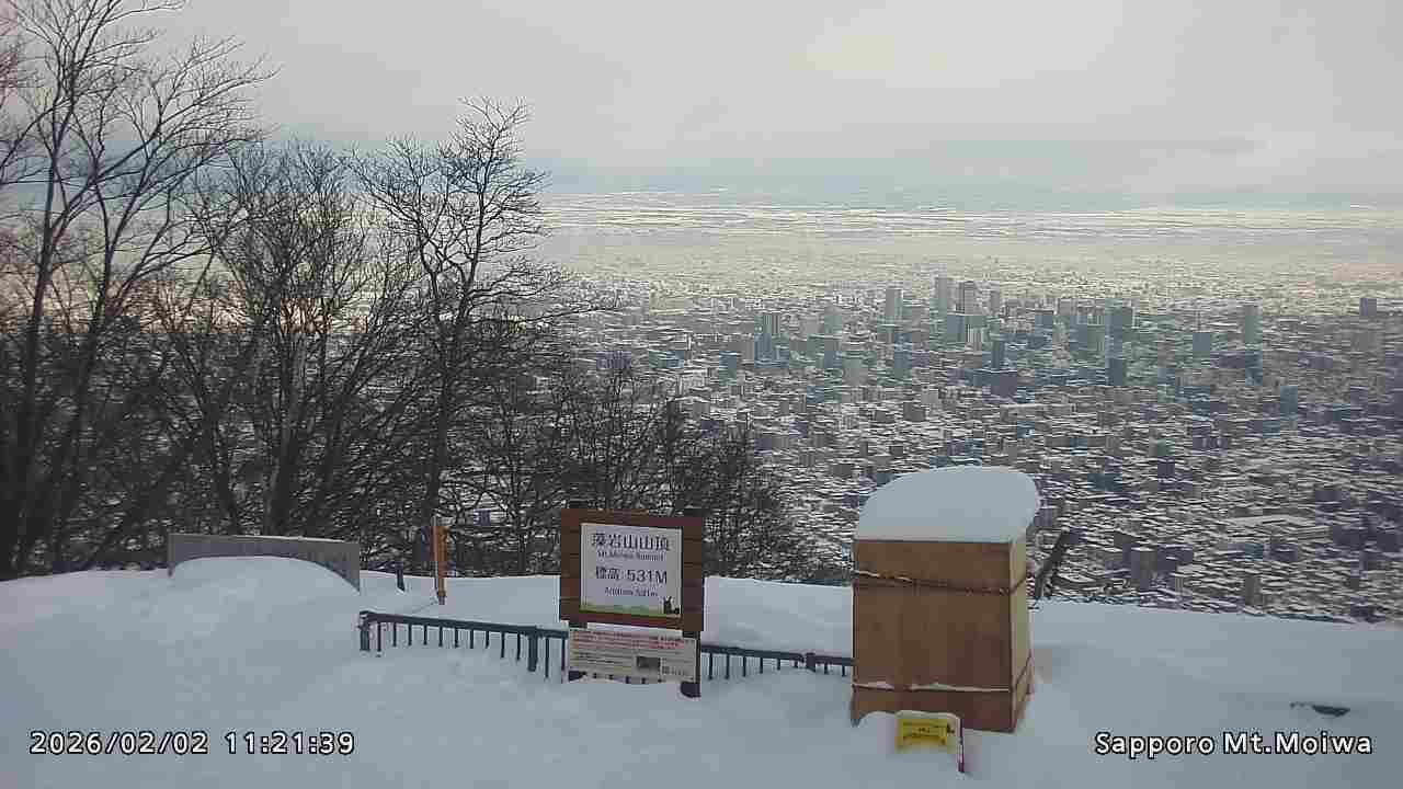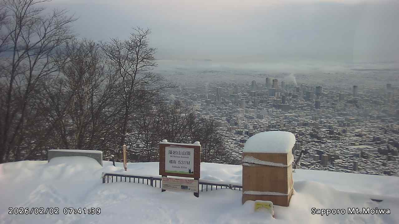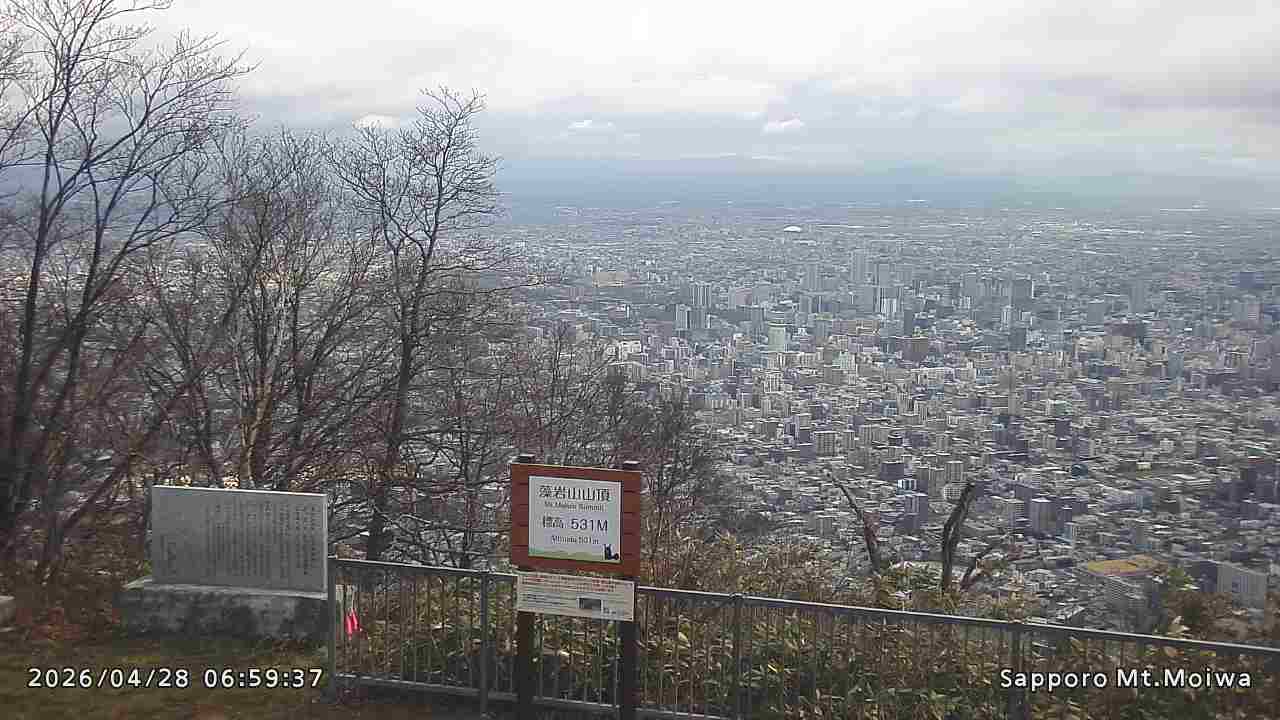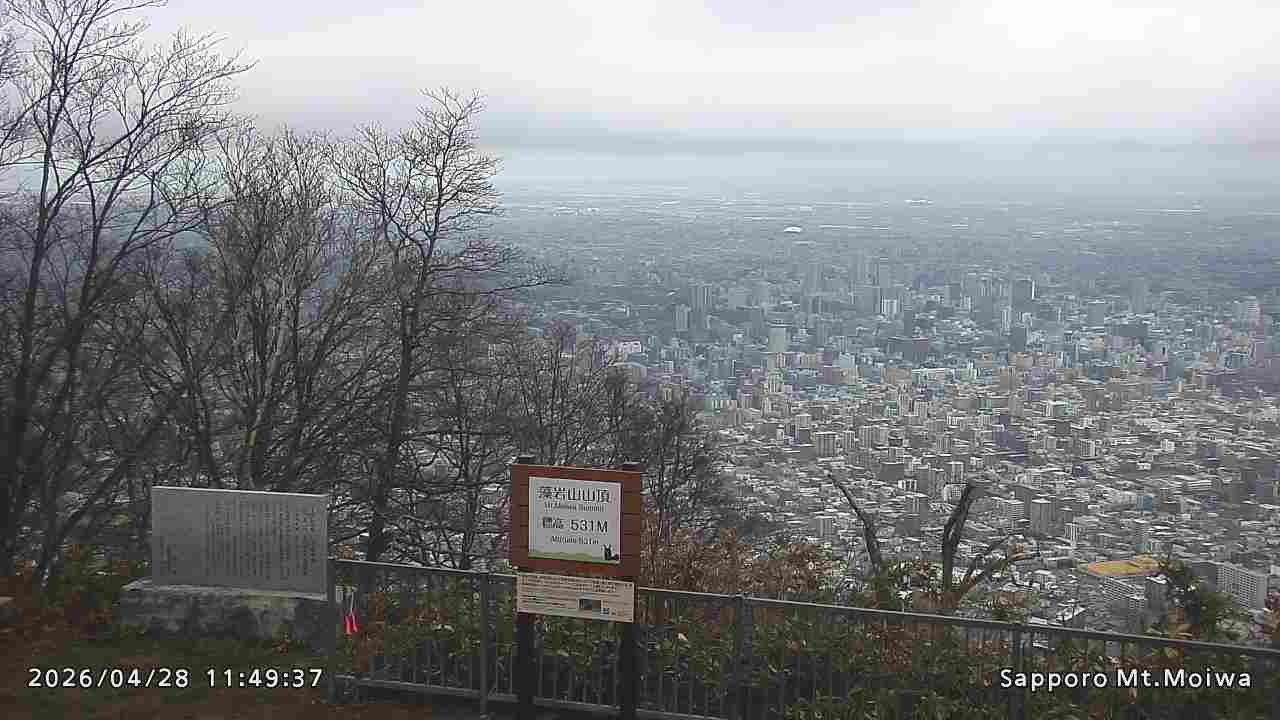 もいわ山山頂の標高看板前にカメラを設置しています。