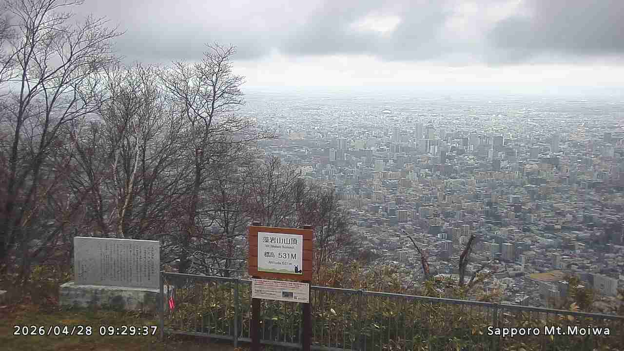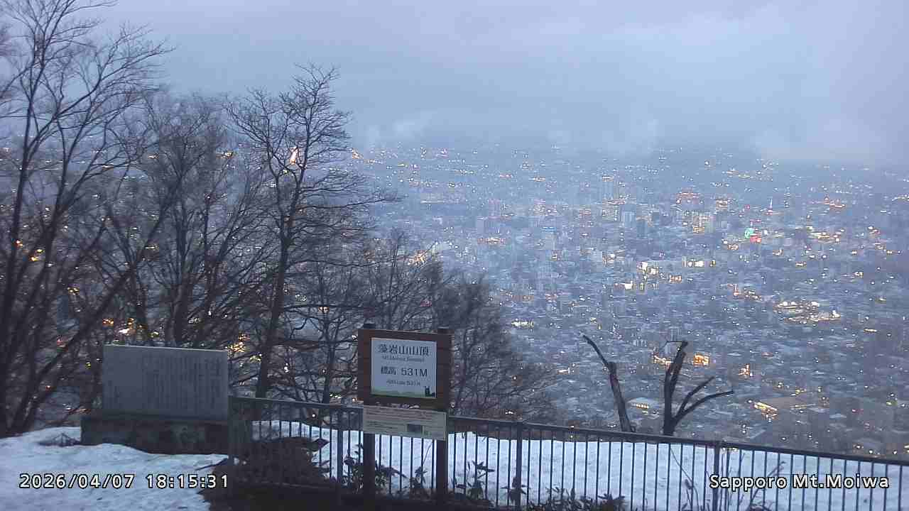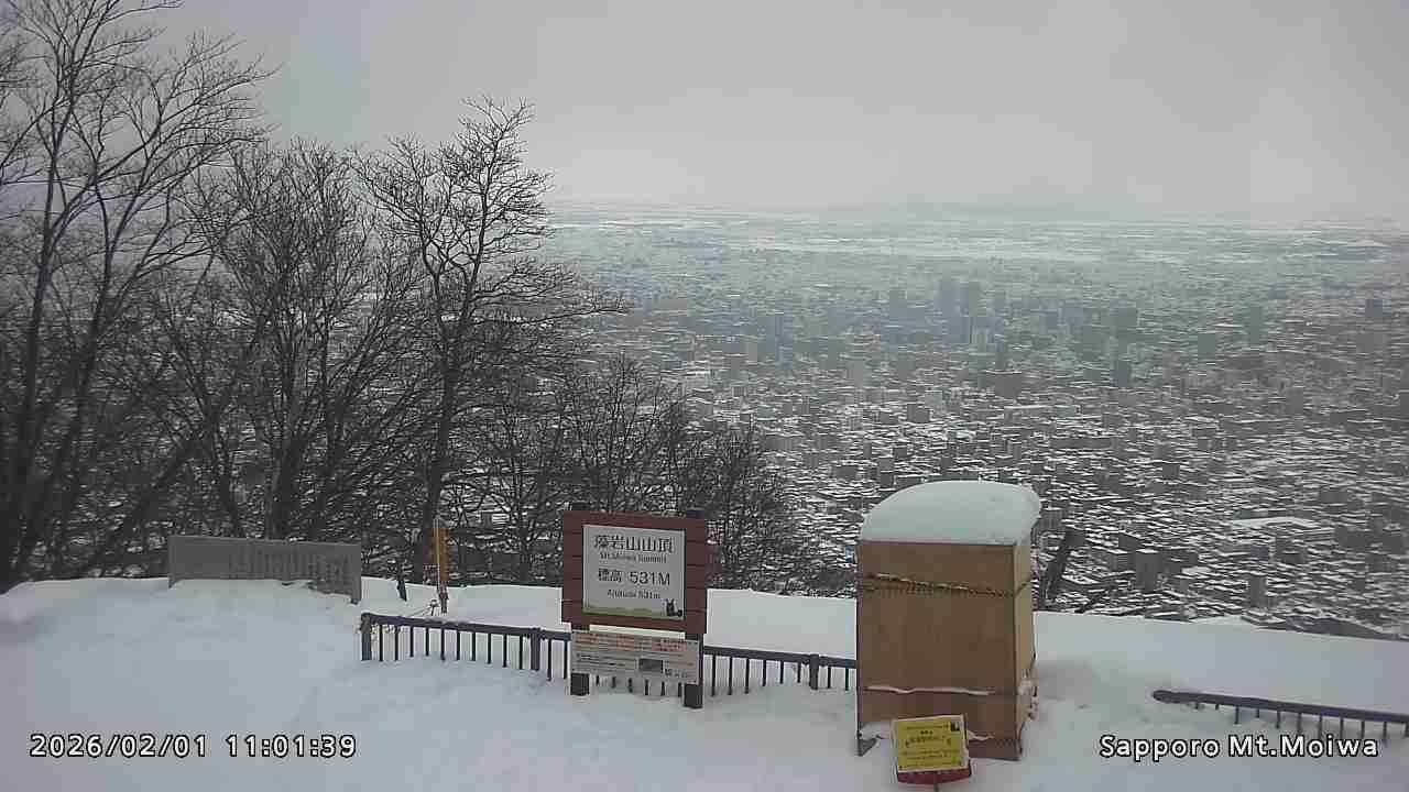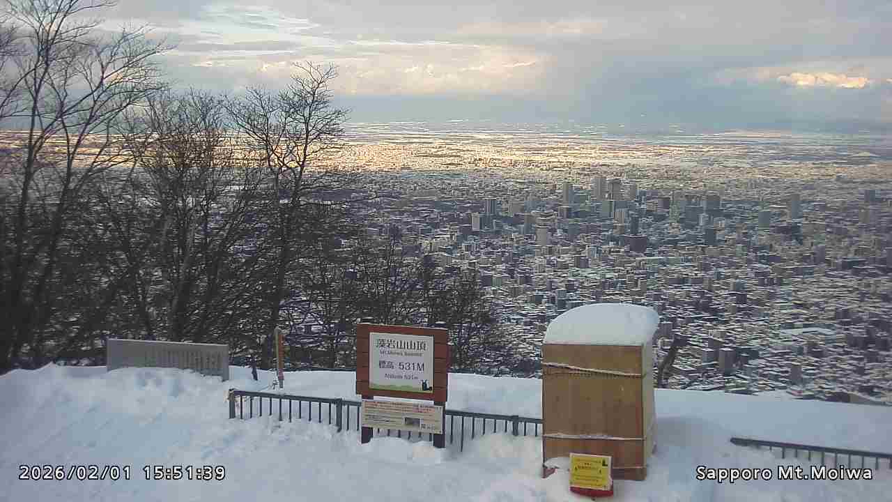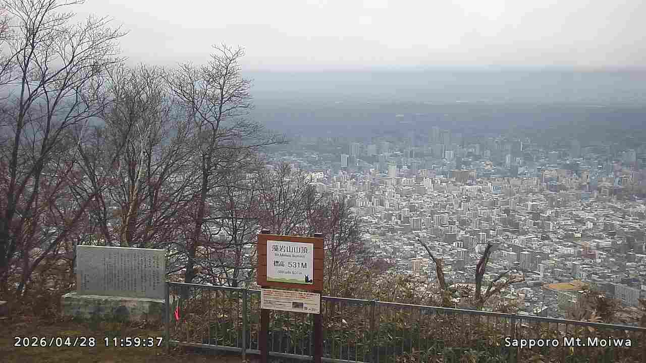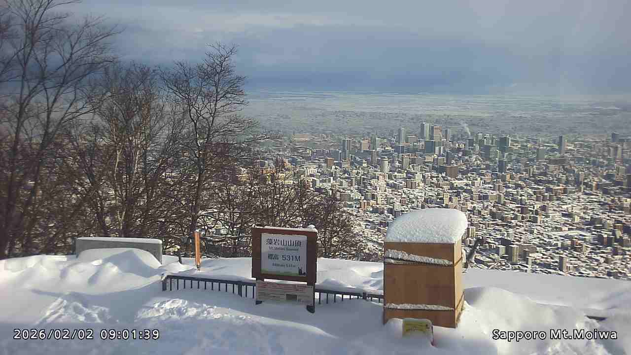 もいわ山山頂の標高看板前にカメラを設置しています。