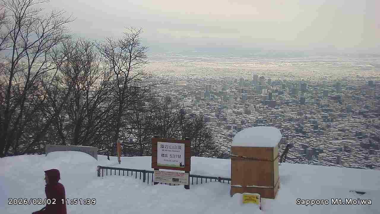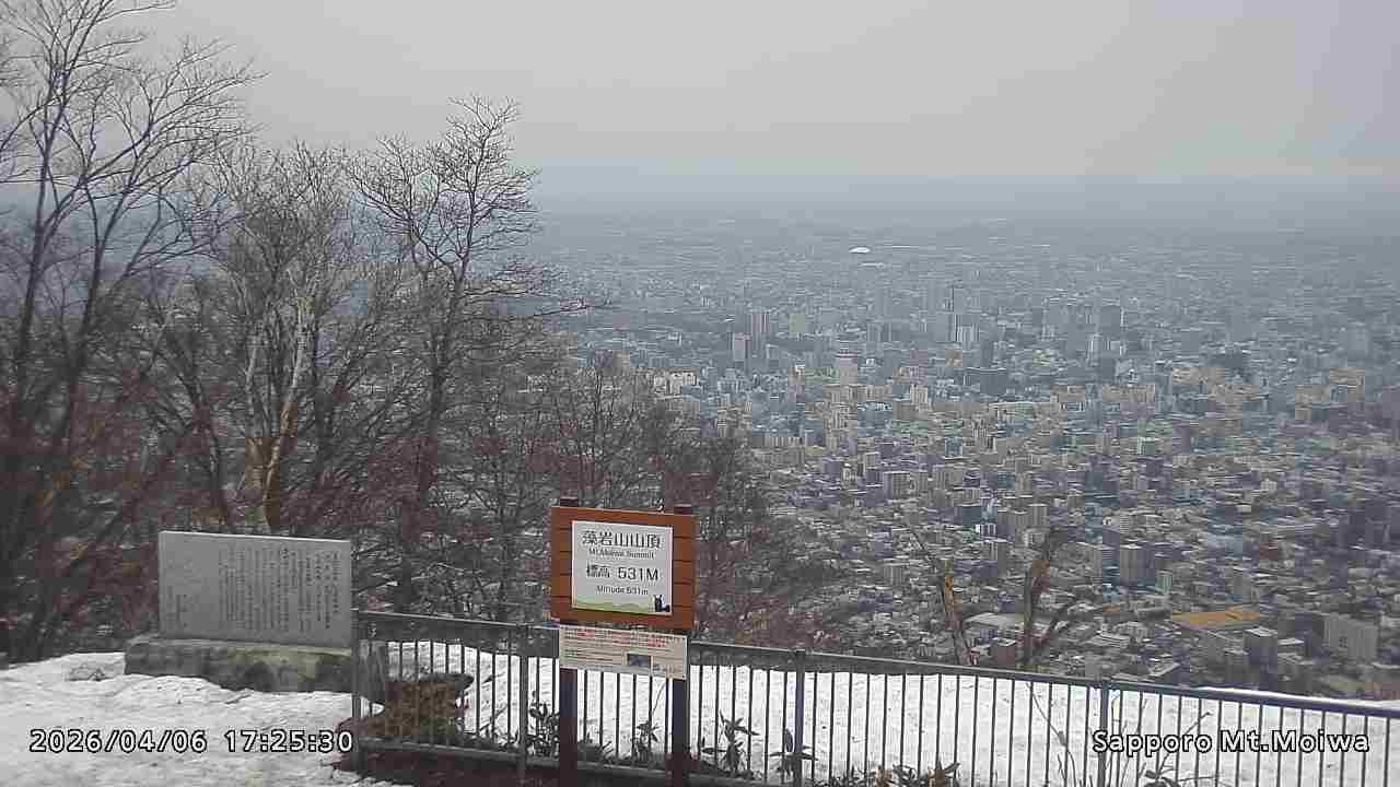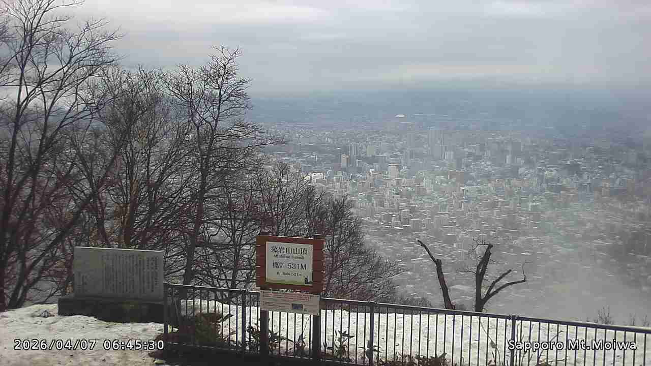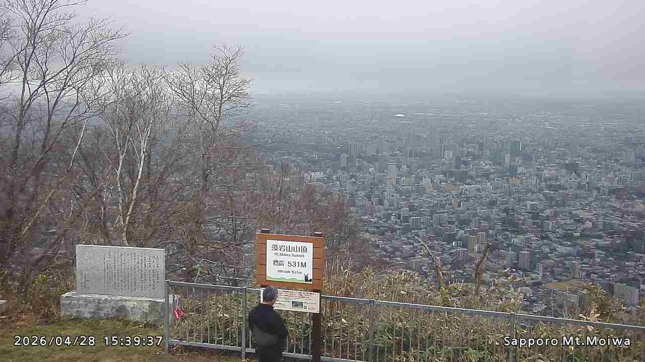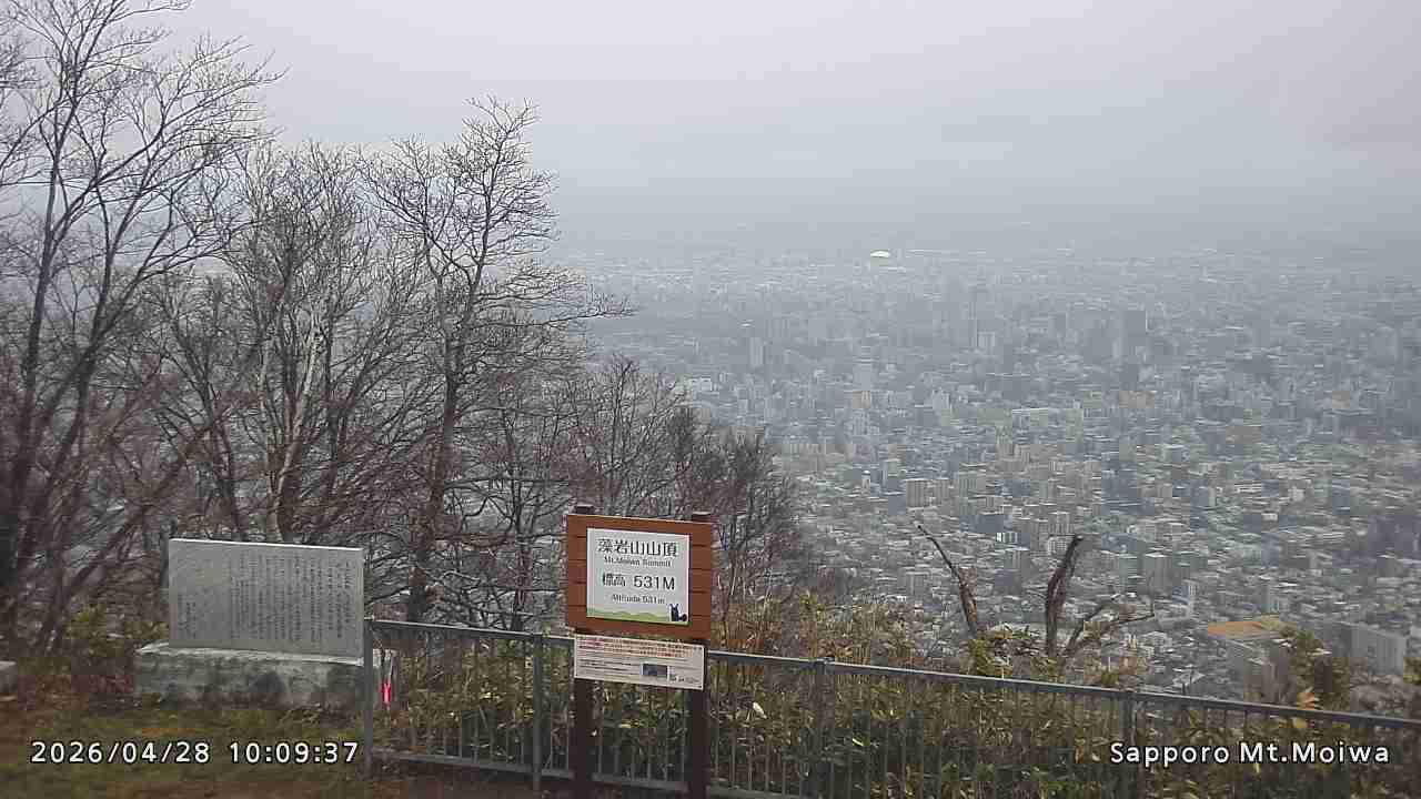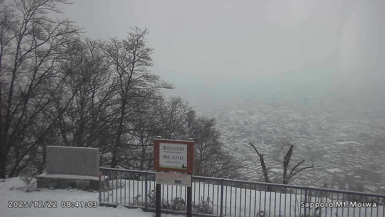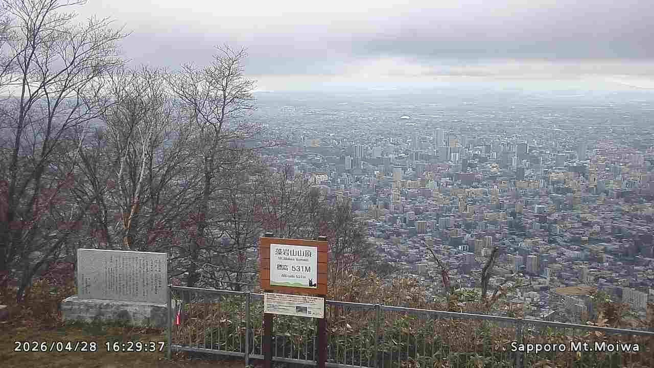 もいわ山山頂の標高看板前にカメラを設置しています。