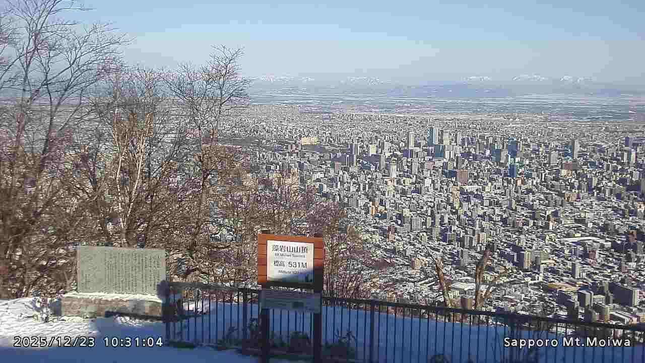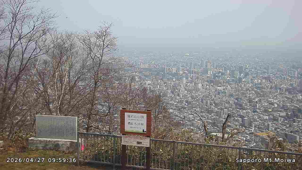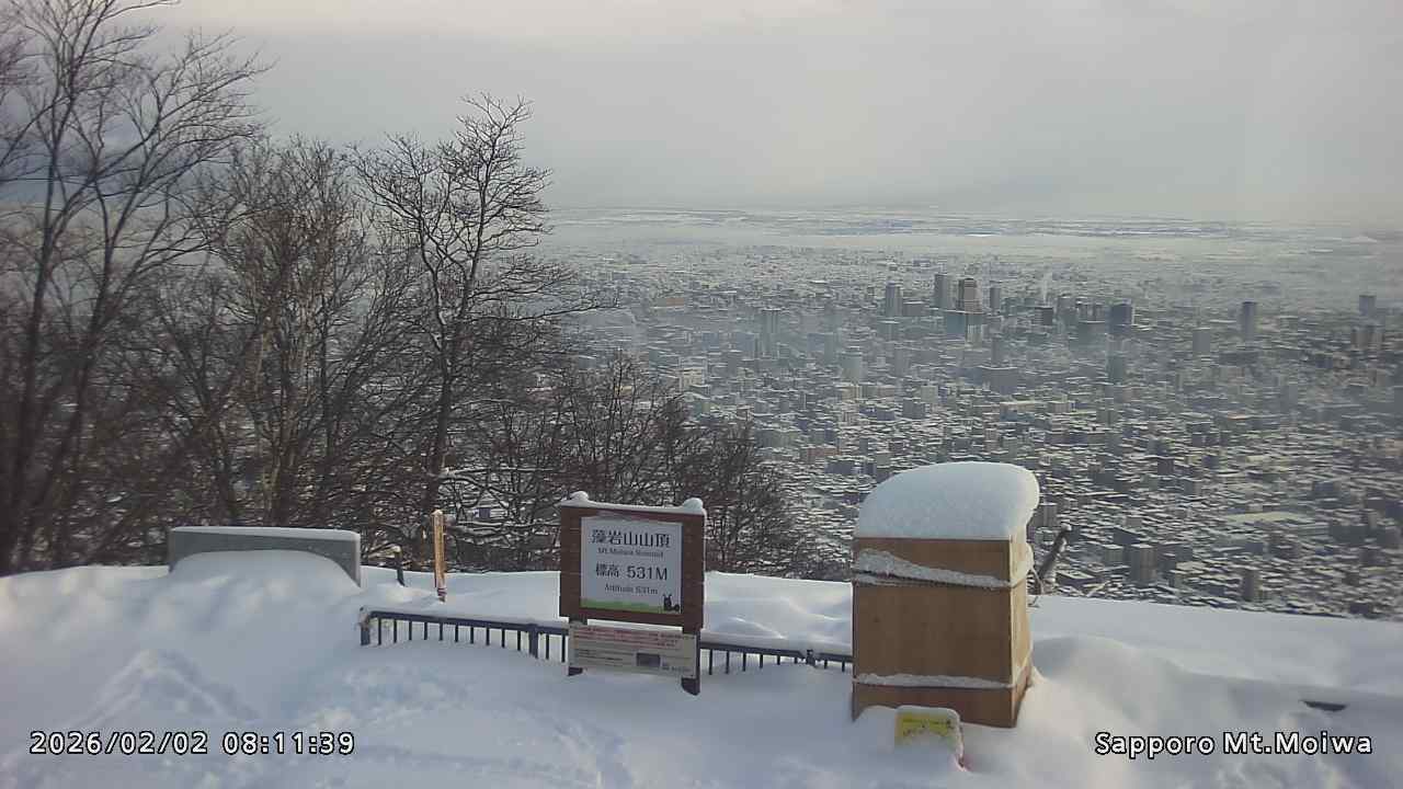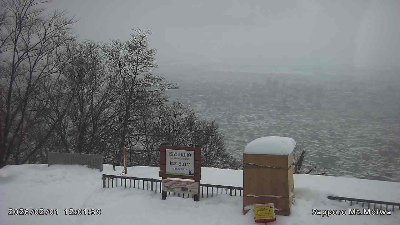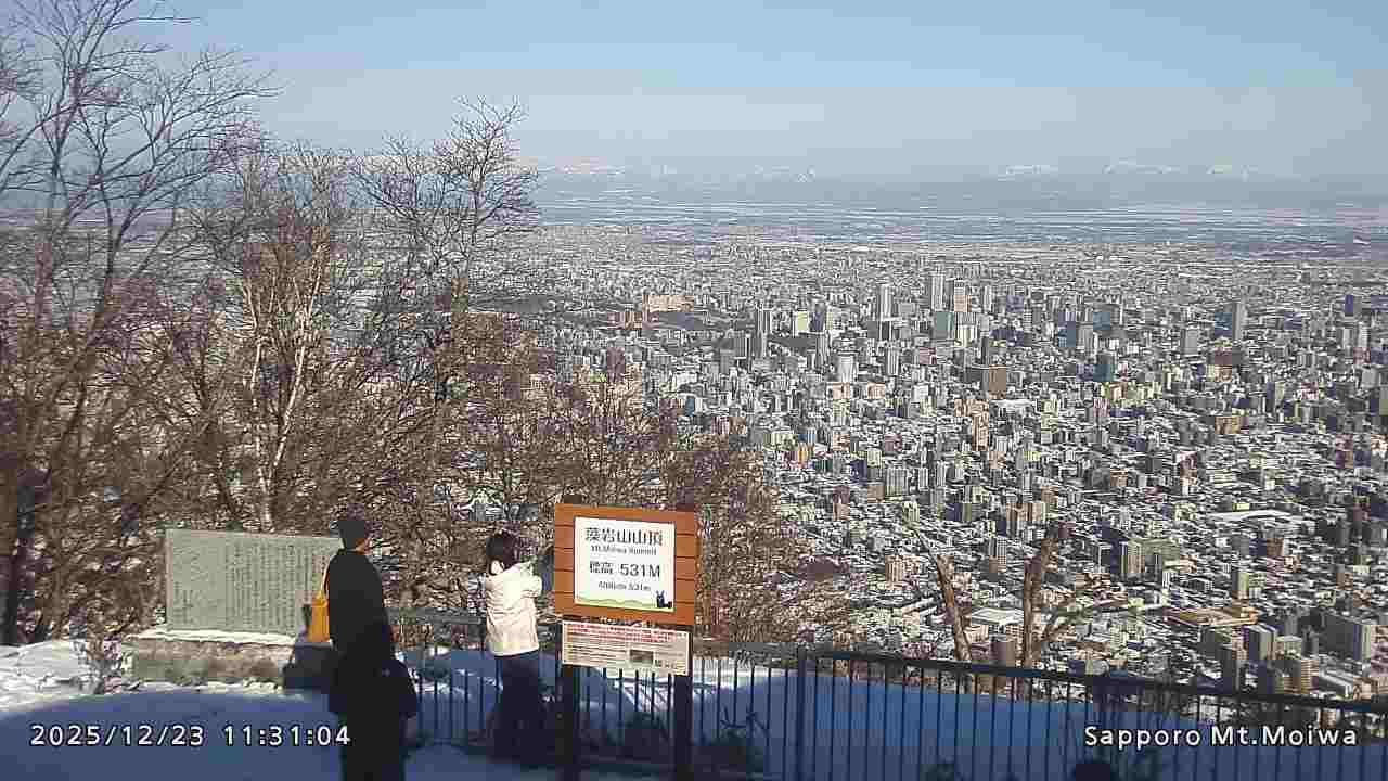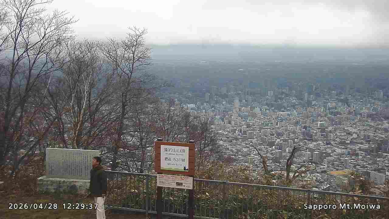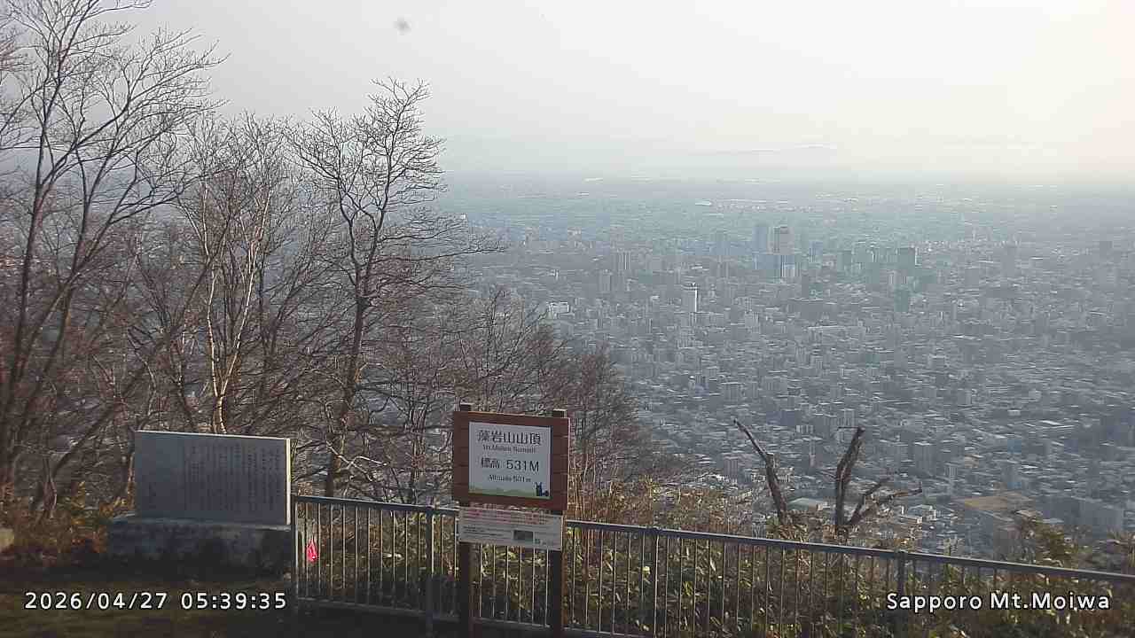 もいわ山山頂の標高看板前にカメラを設置しています。
