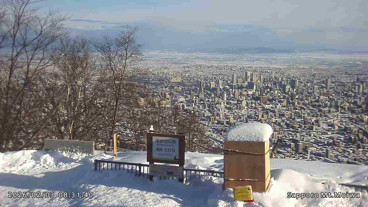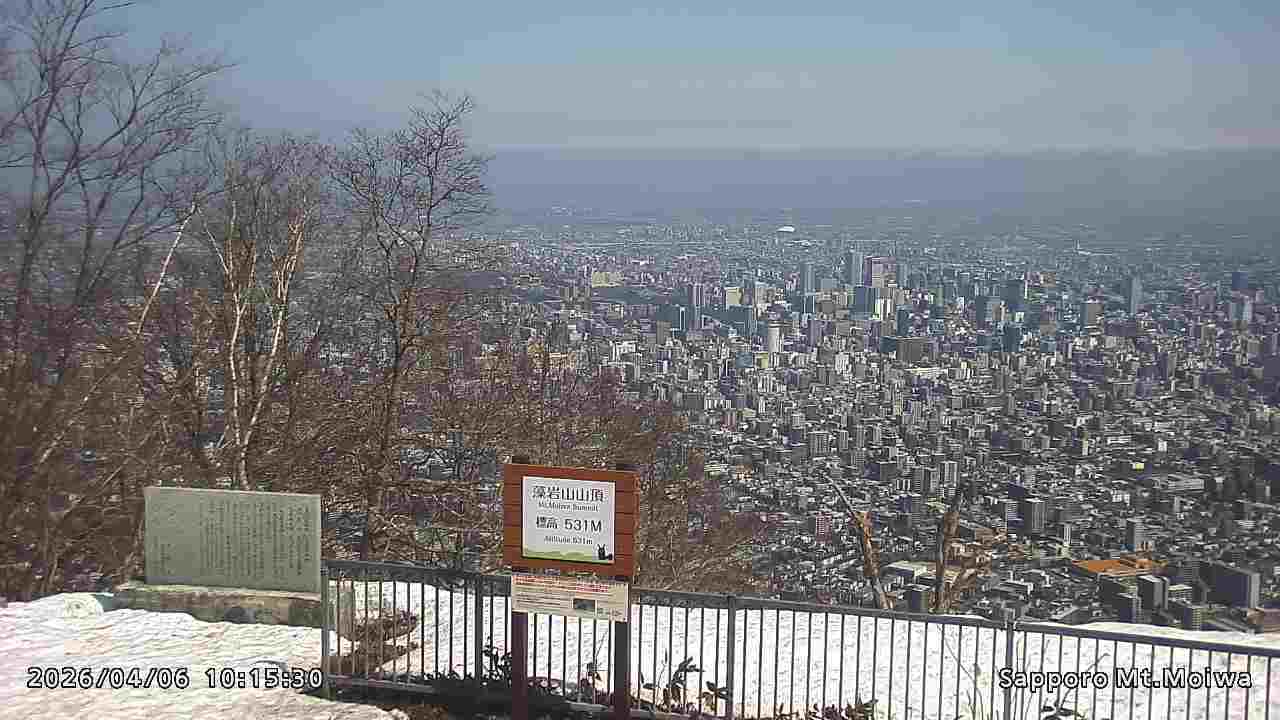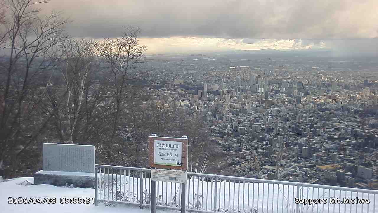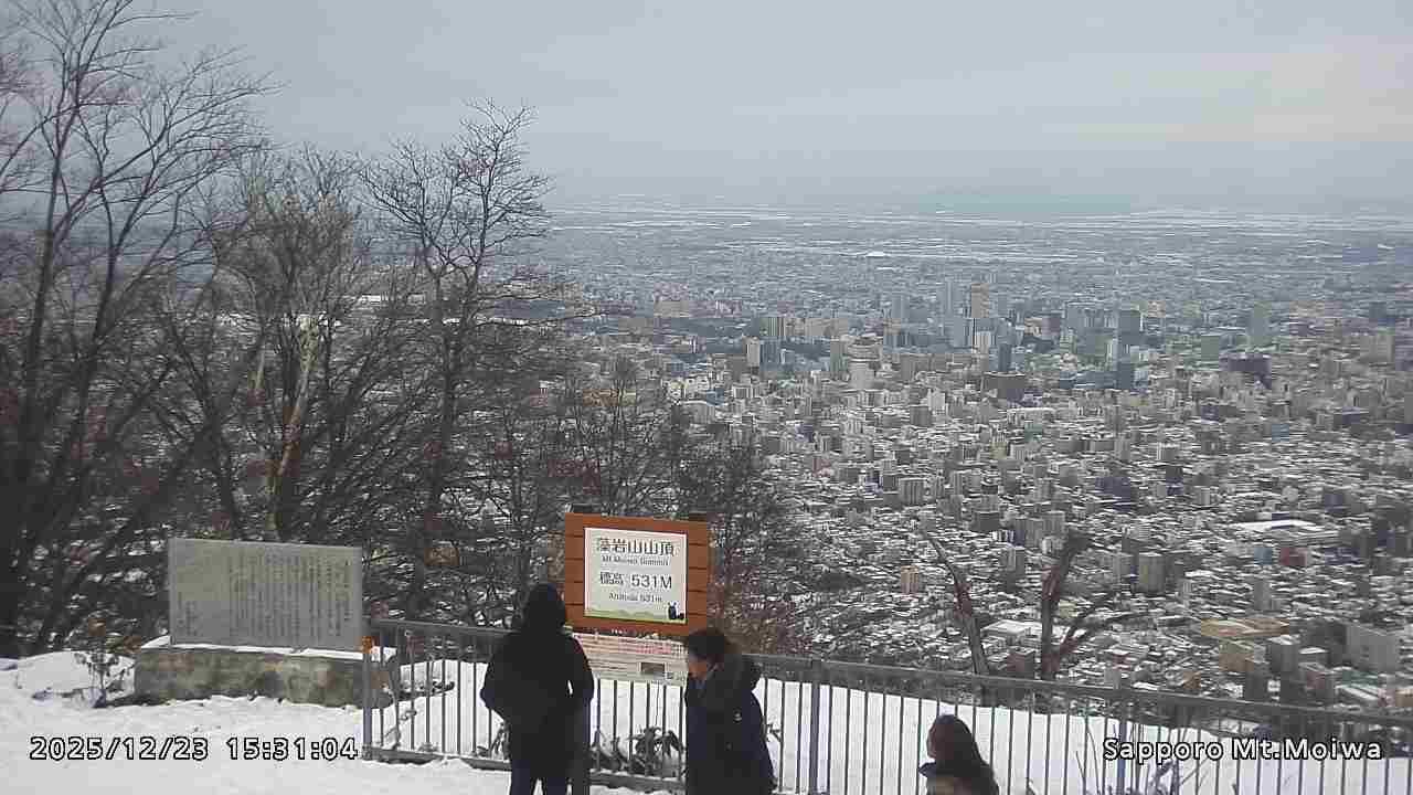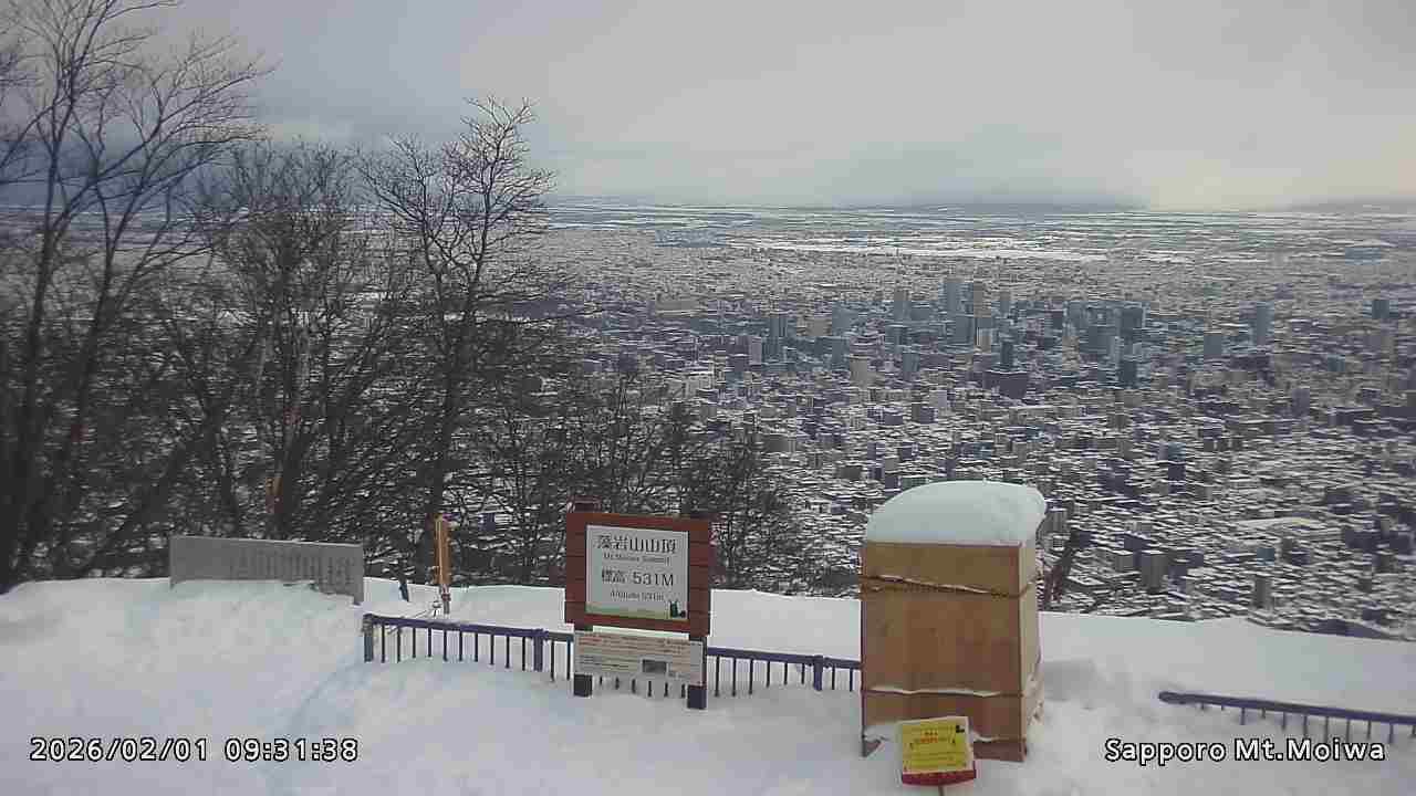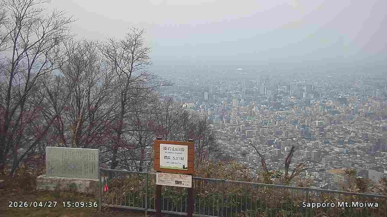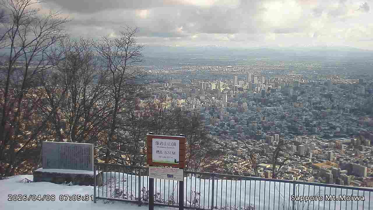 もいわ山山頂の標高看板前にカメラを設置しています。