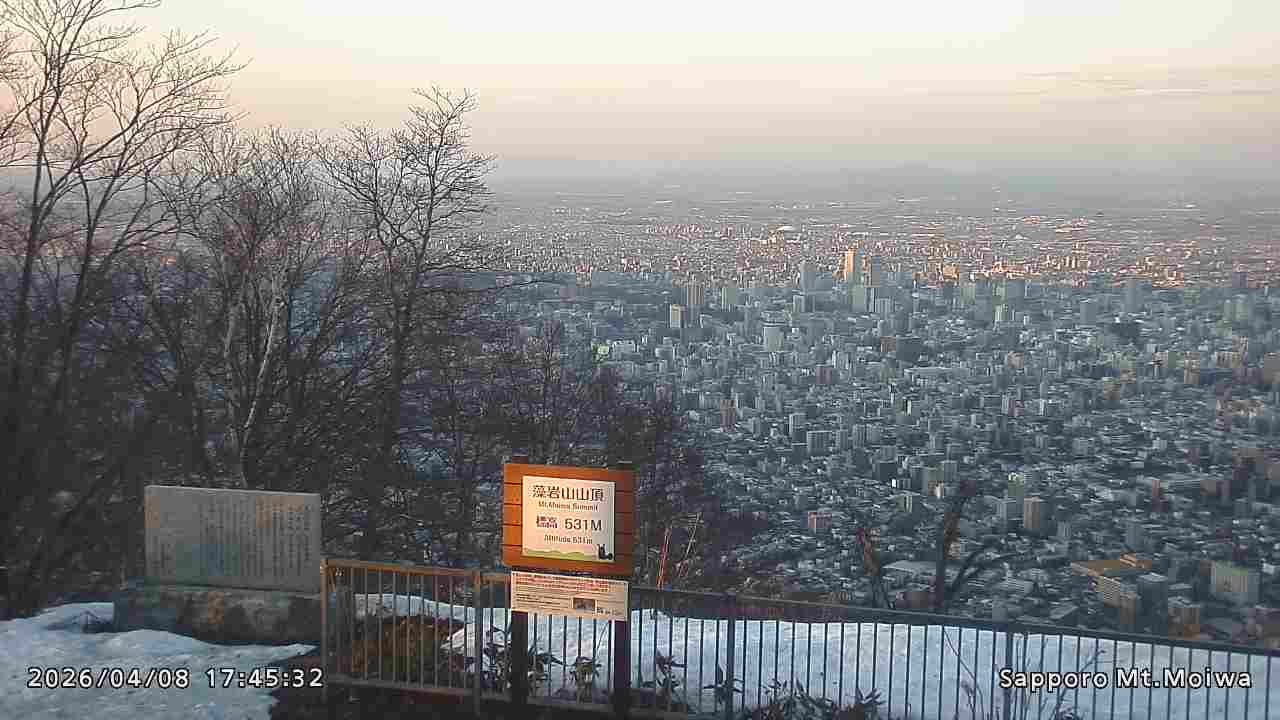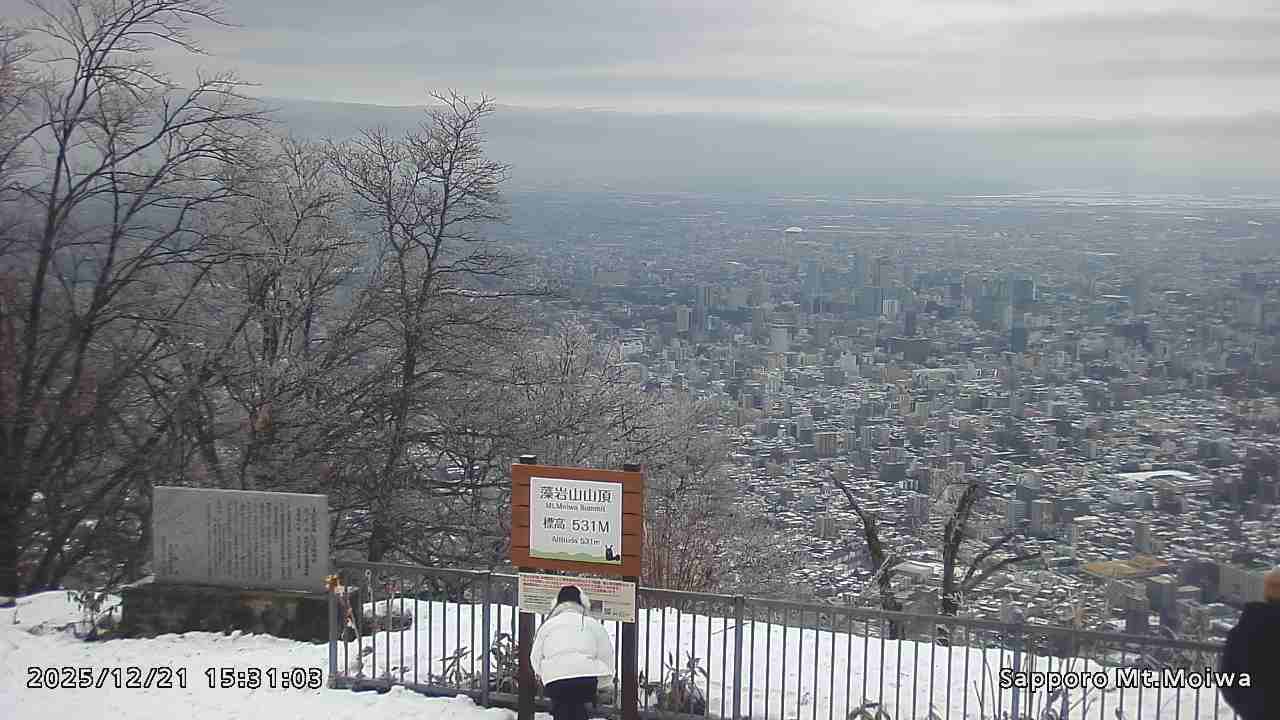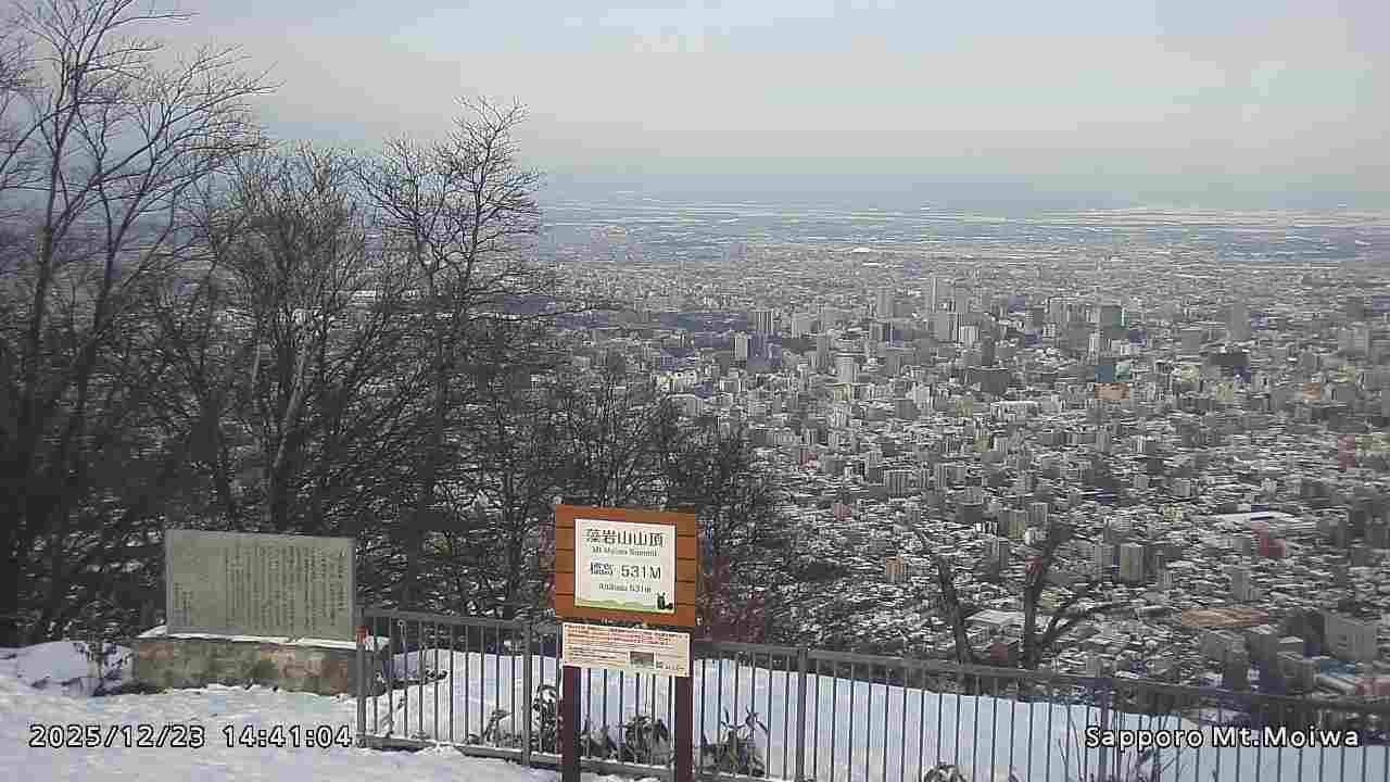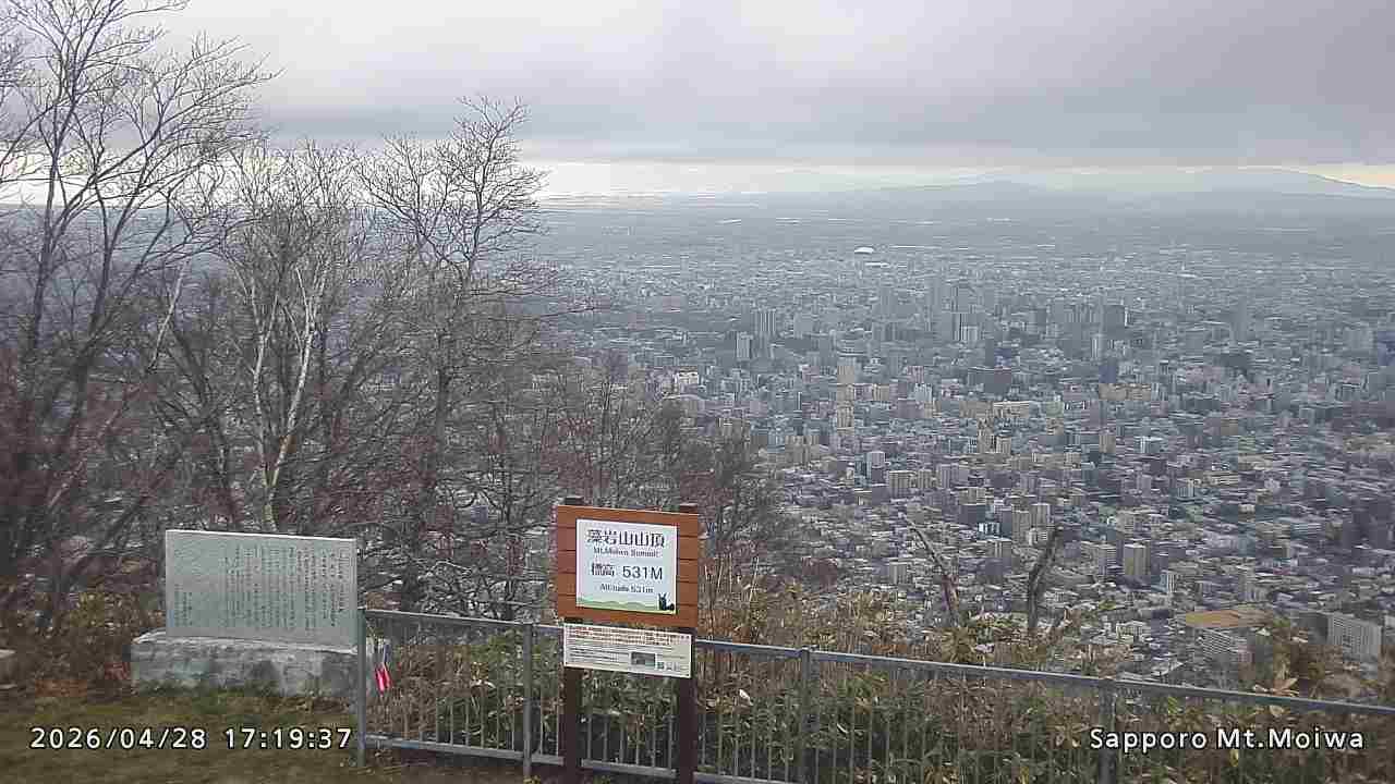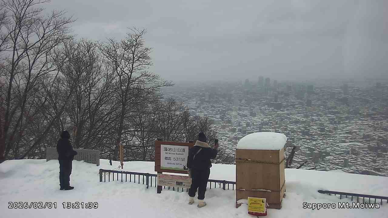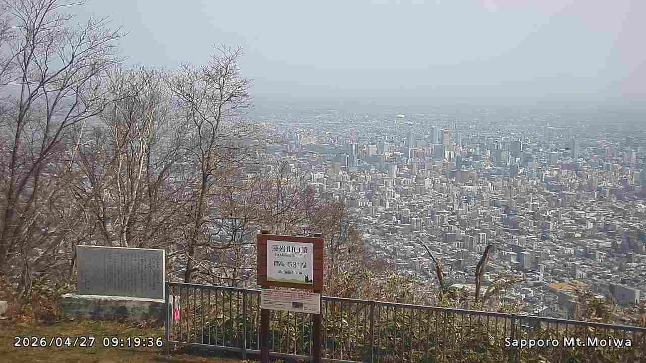 もいわ山山頂の標高看板前にカメラを設置しています。