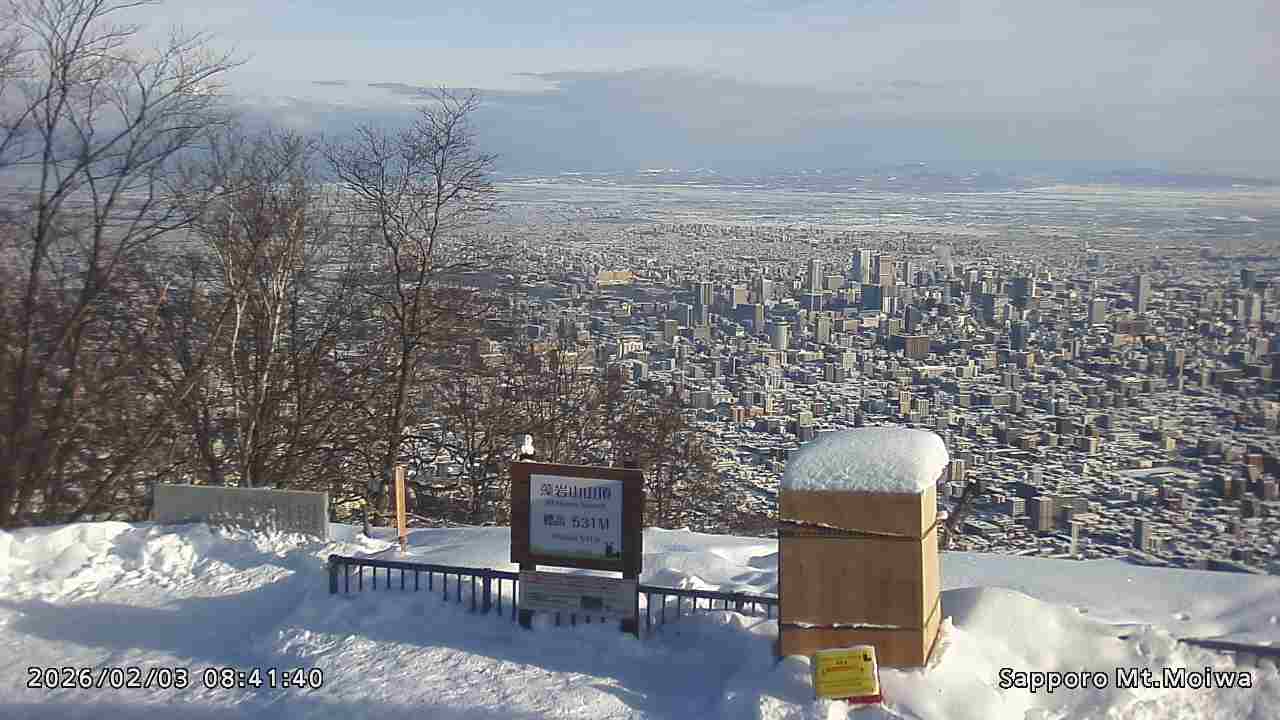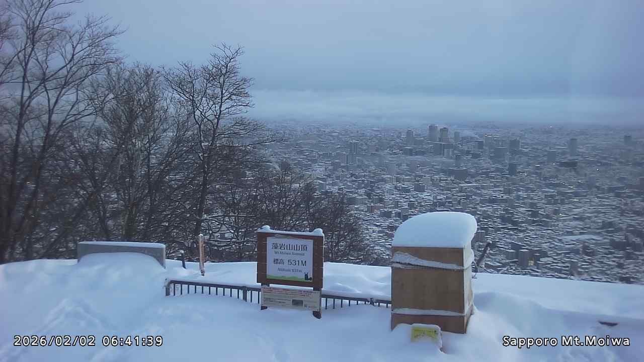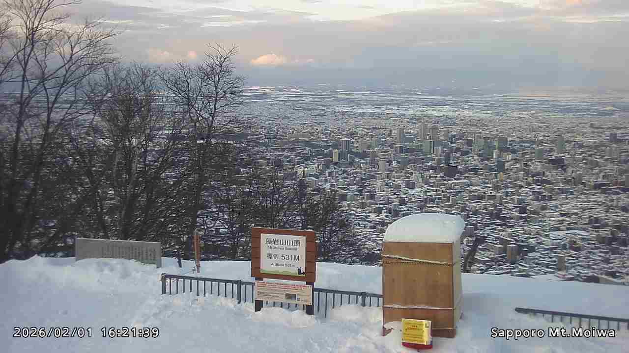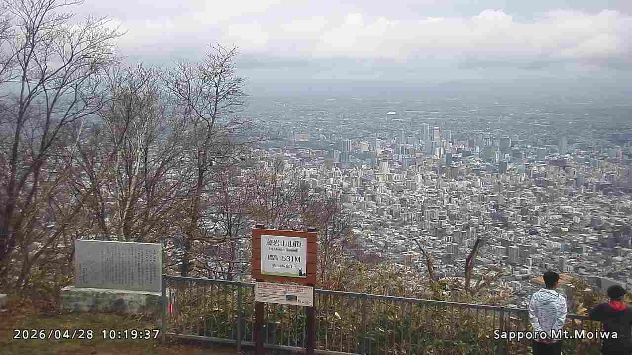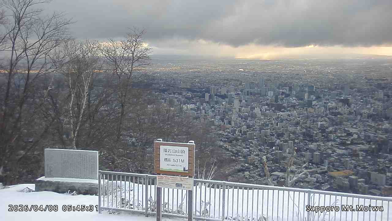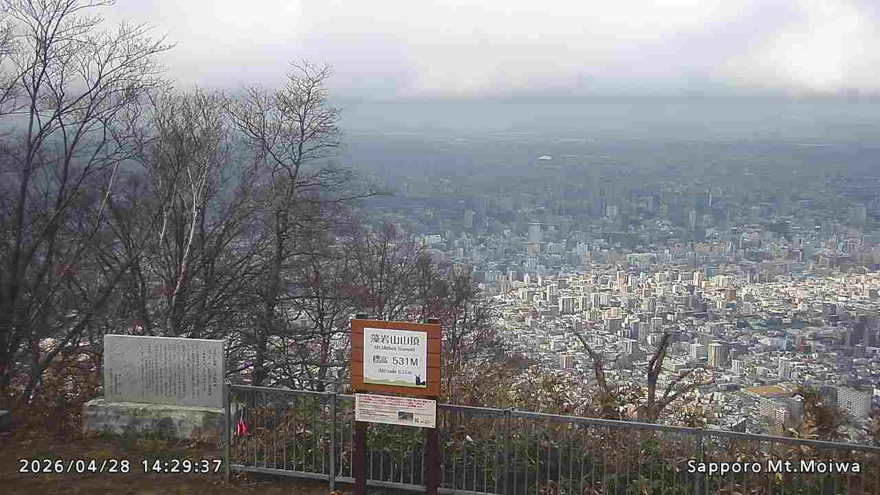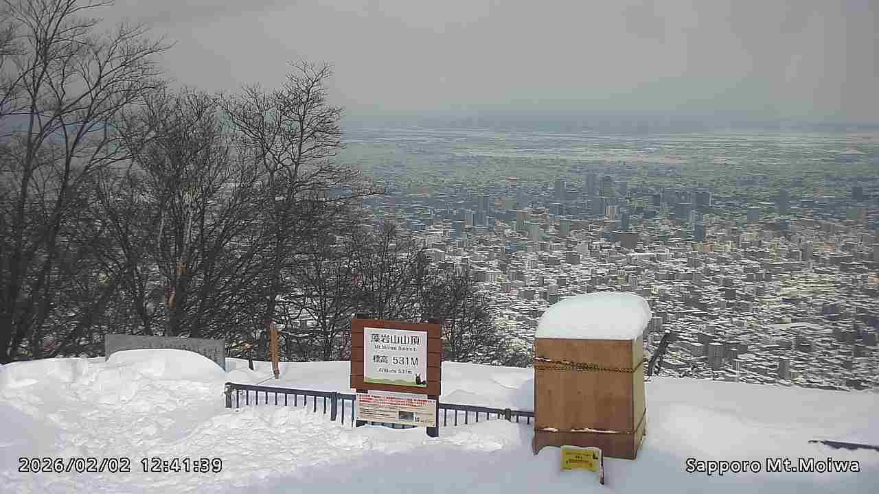 もいわ山山頂の標高看板前にカメラを設置しています。