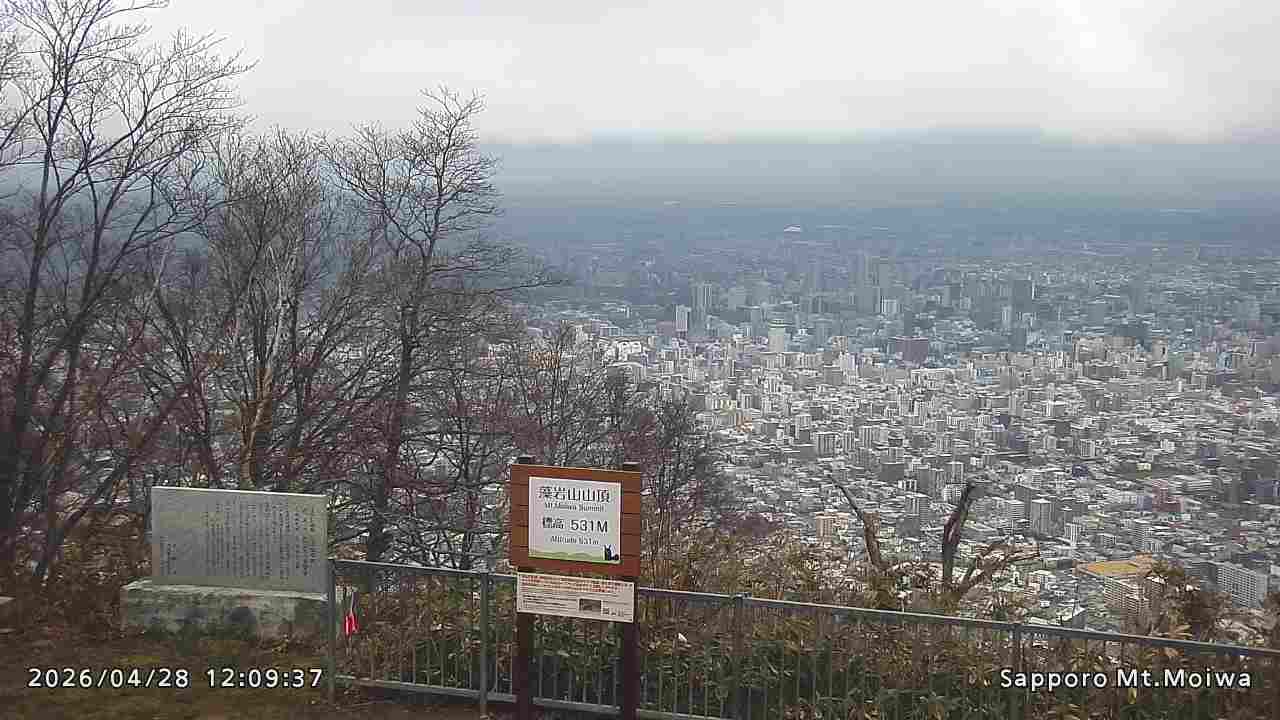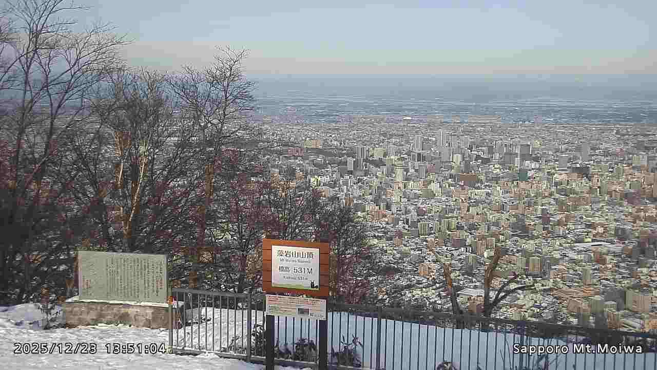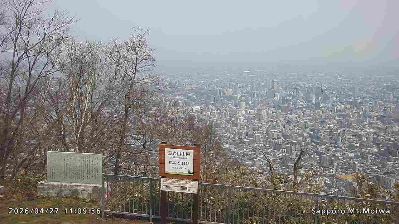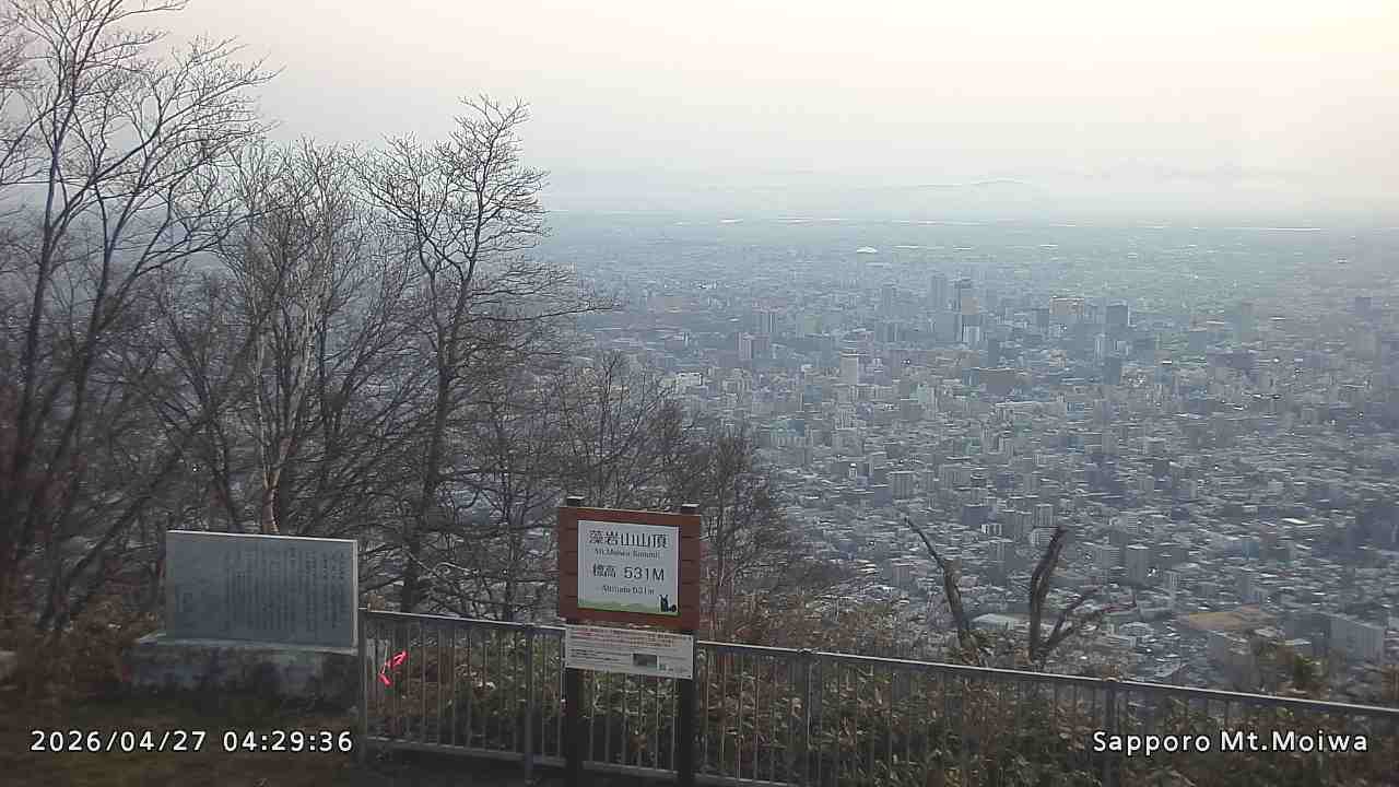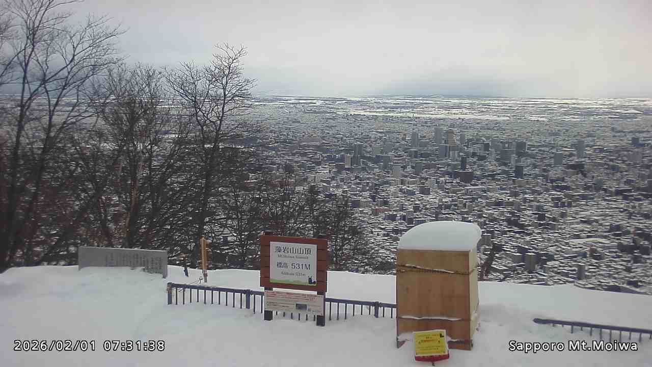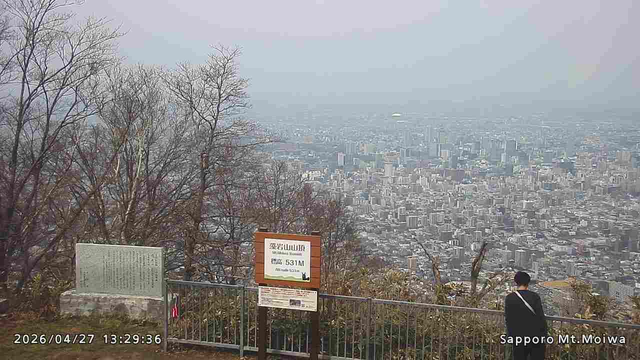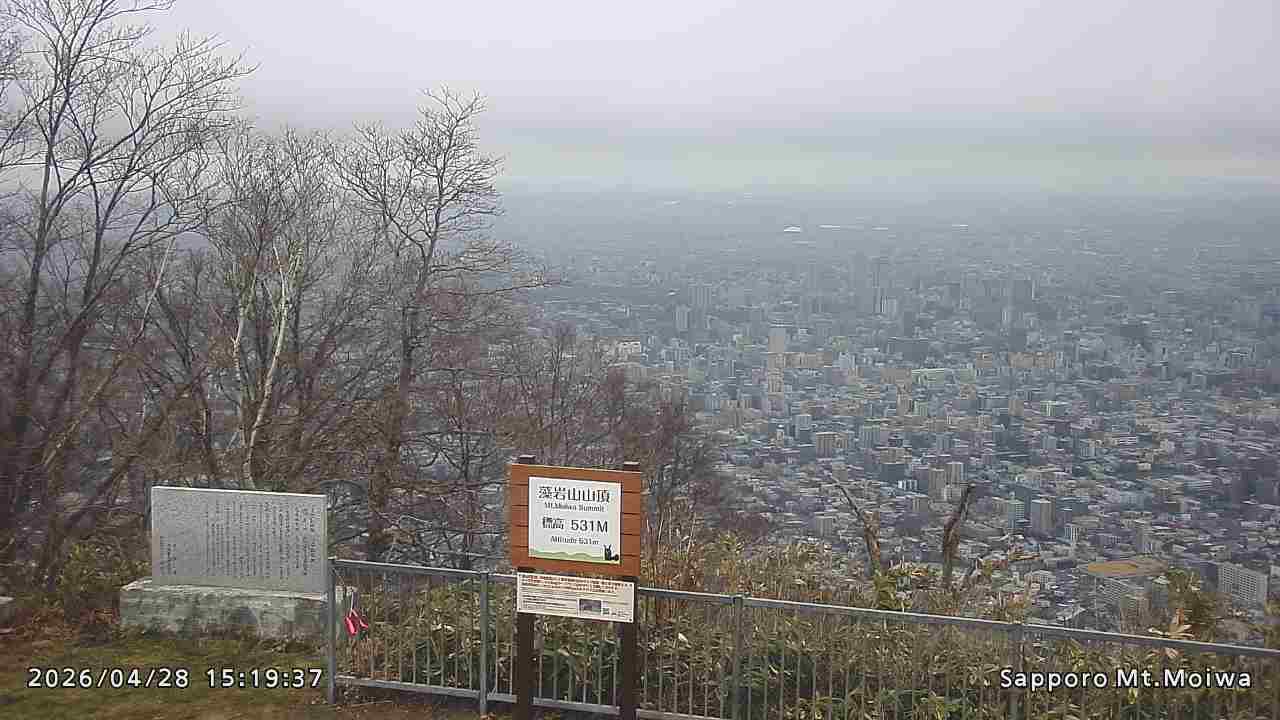 もいわ山山頂の標高看板前にカメラを設置しています。