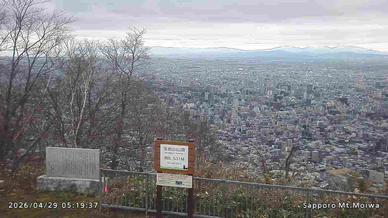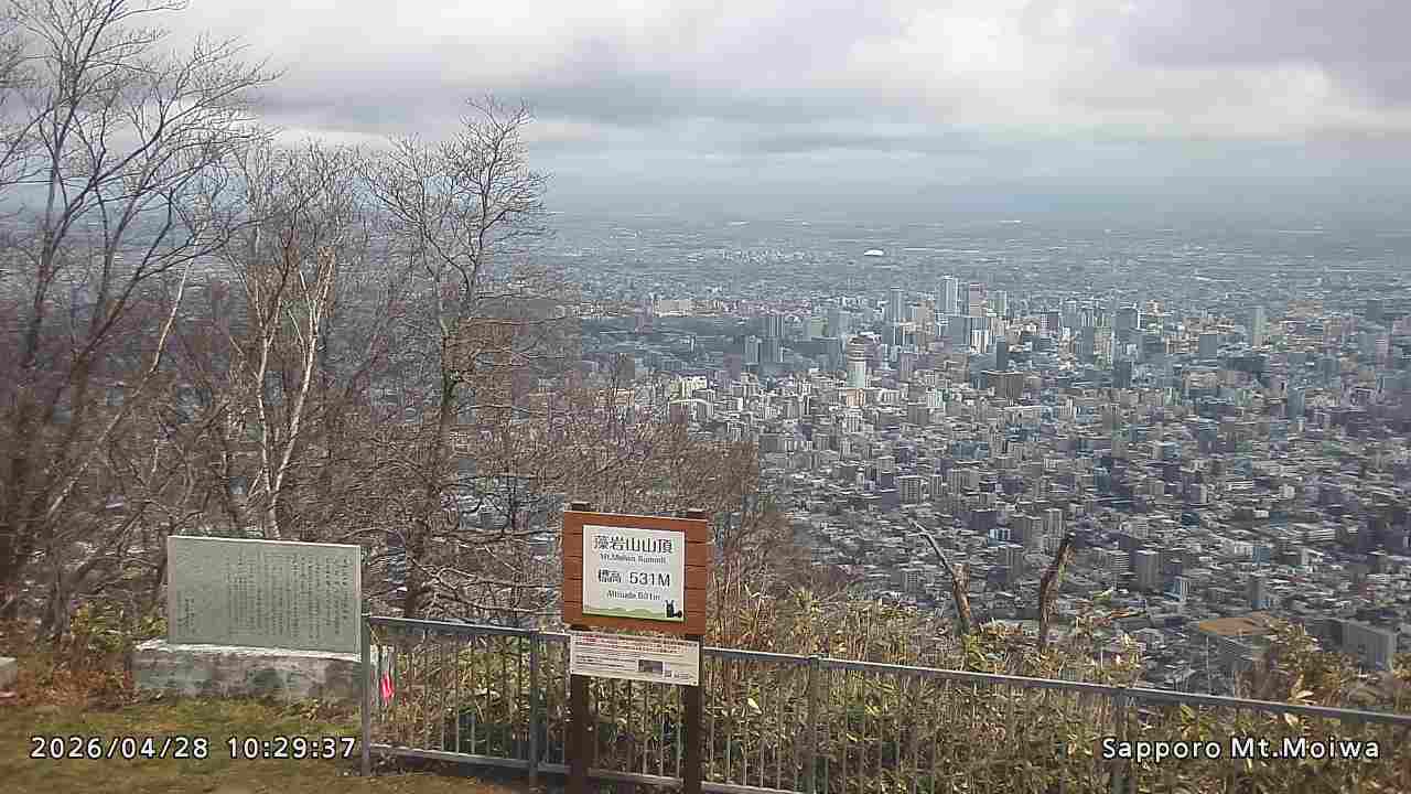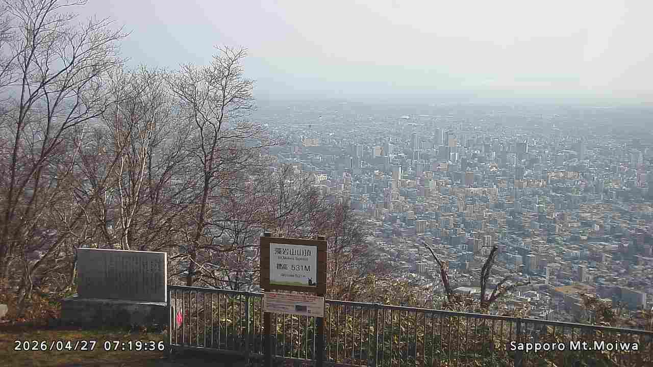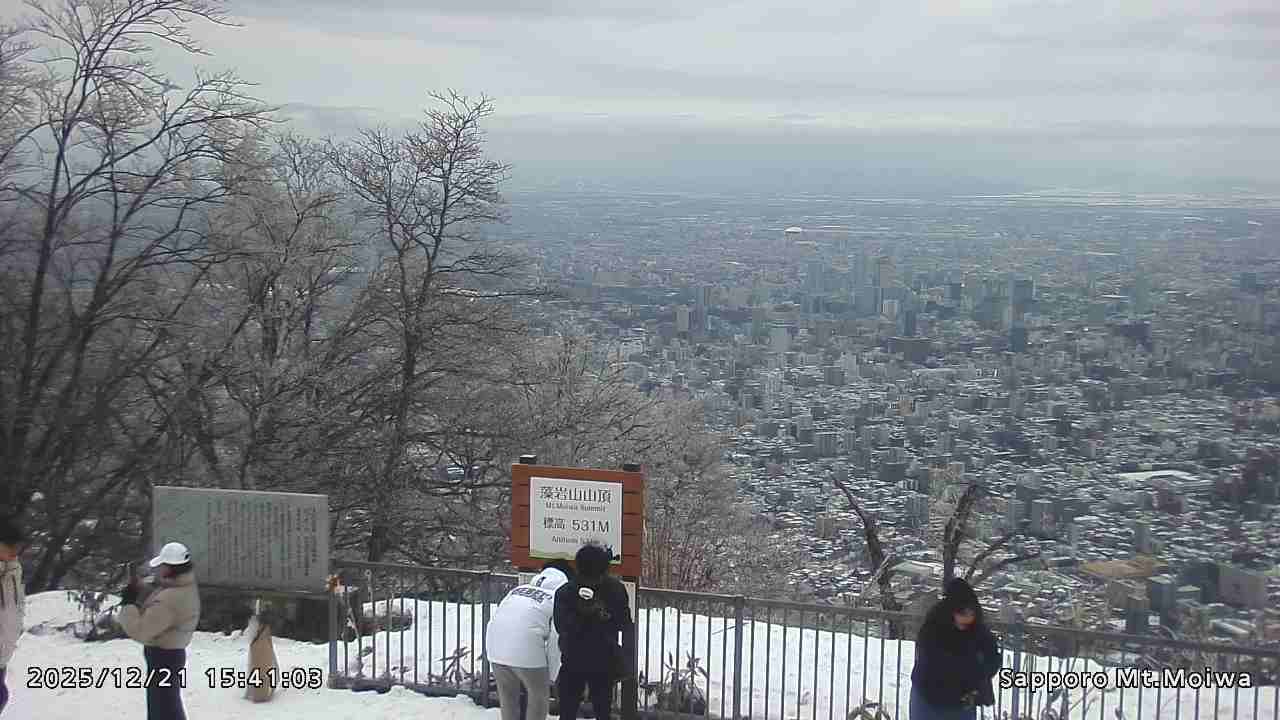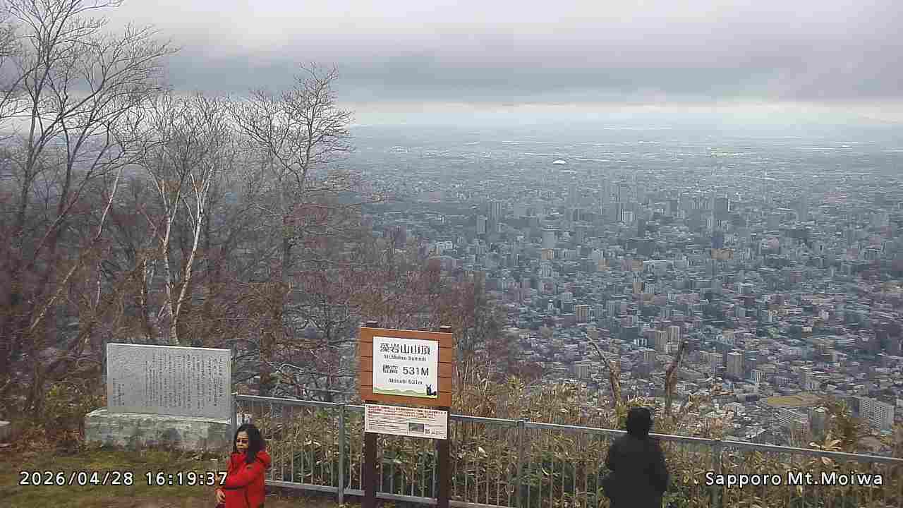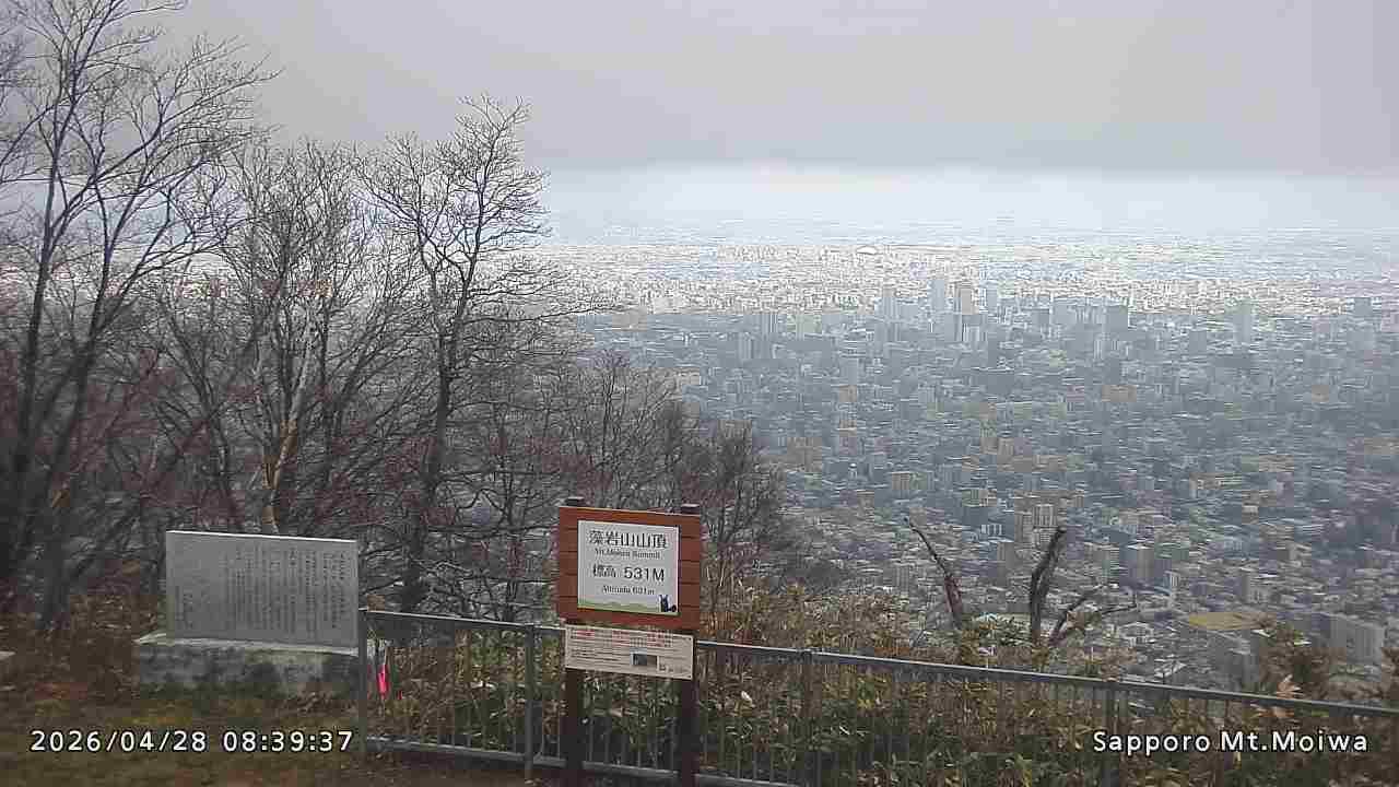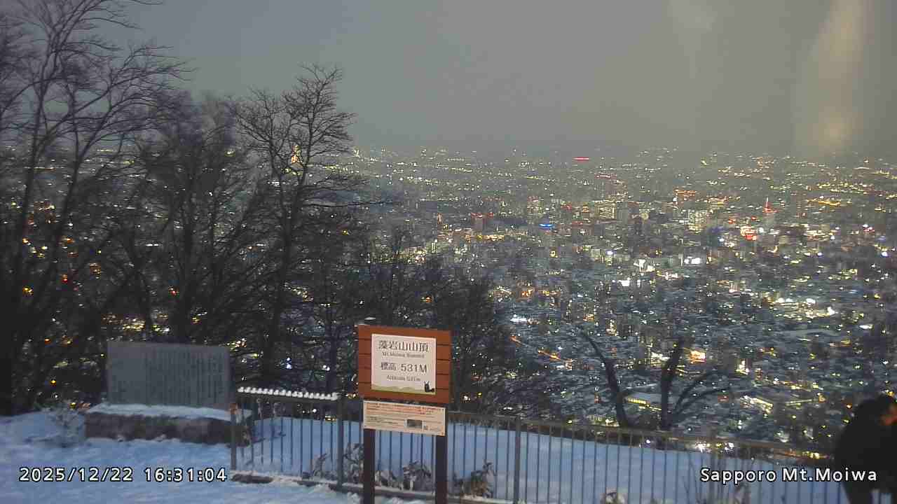 もいわ山山頂の標高看板前にカメラを設置しています。