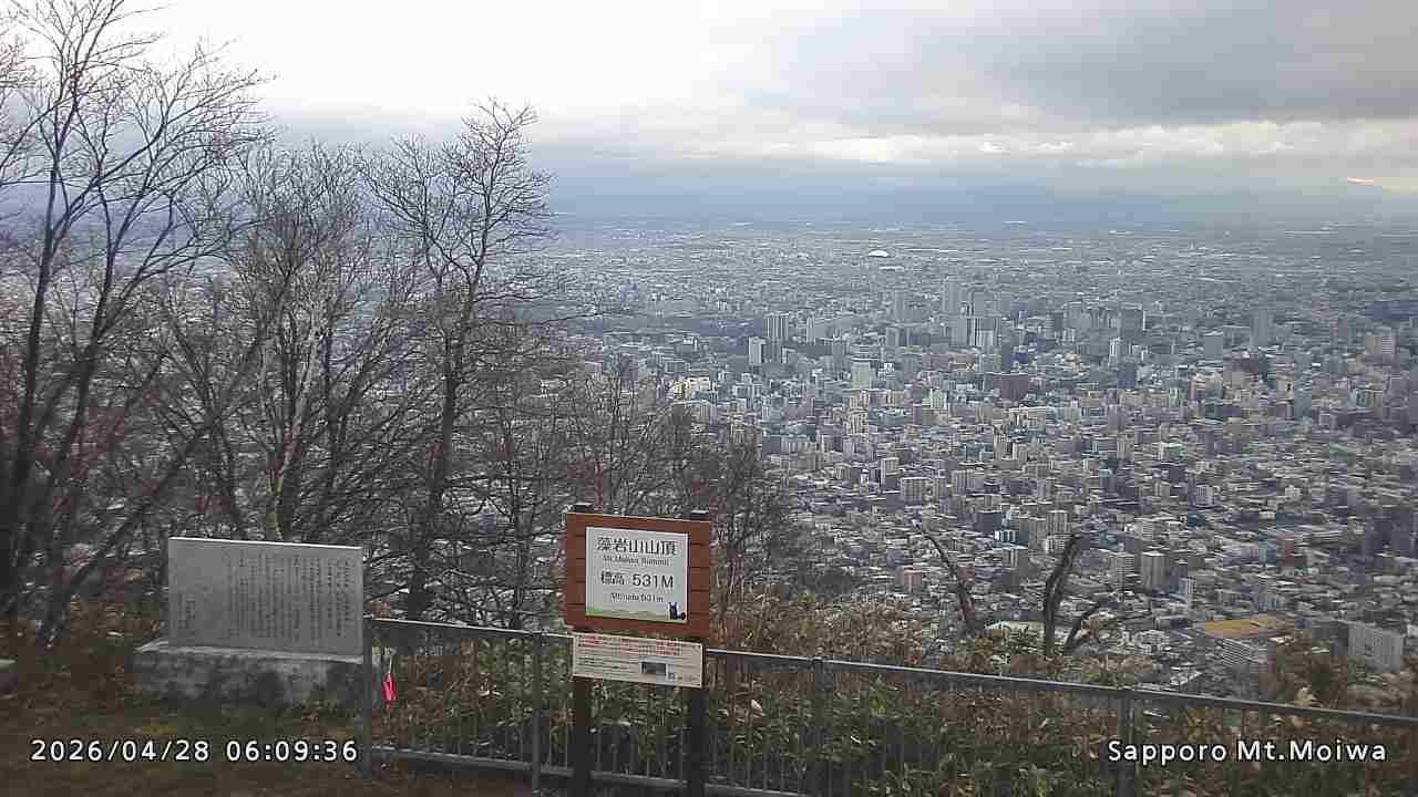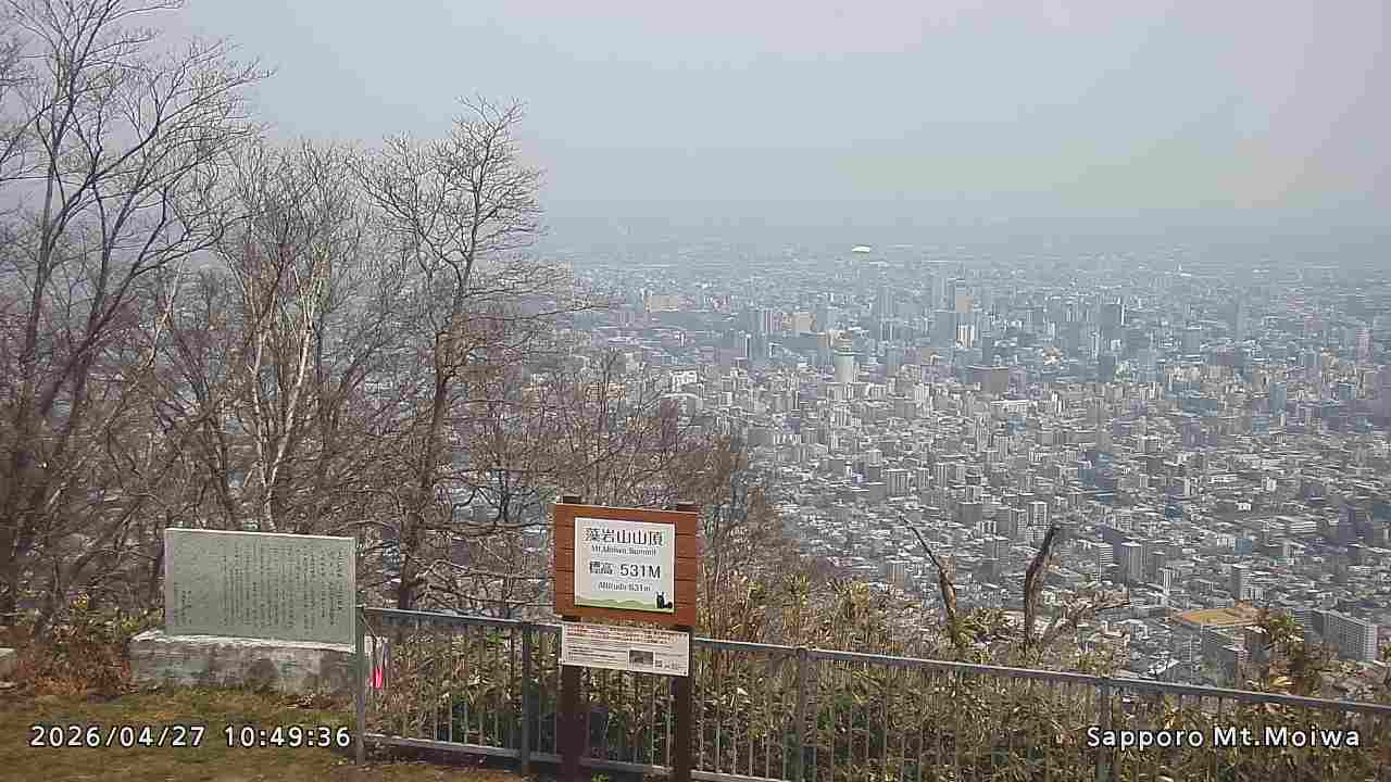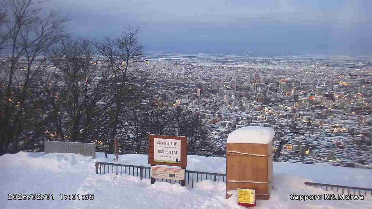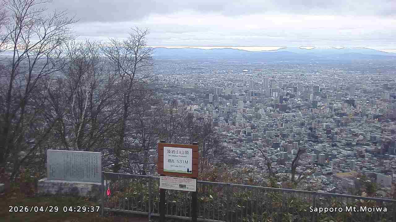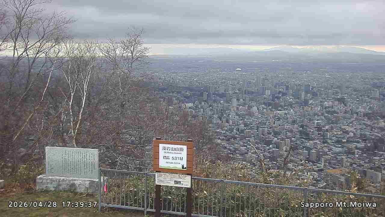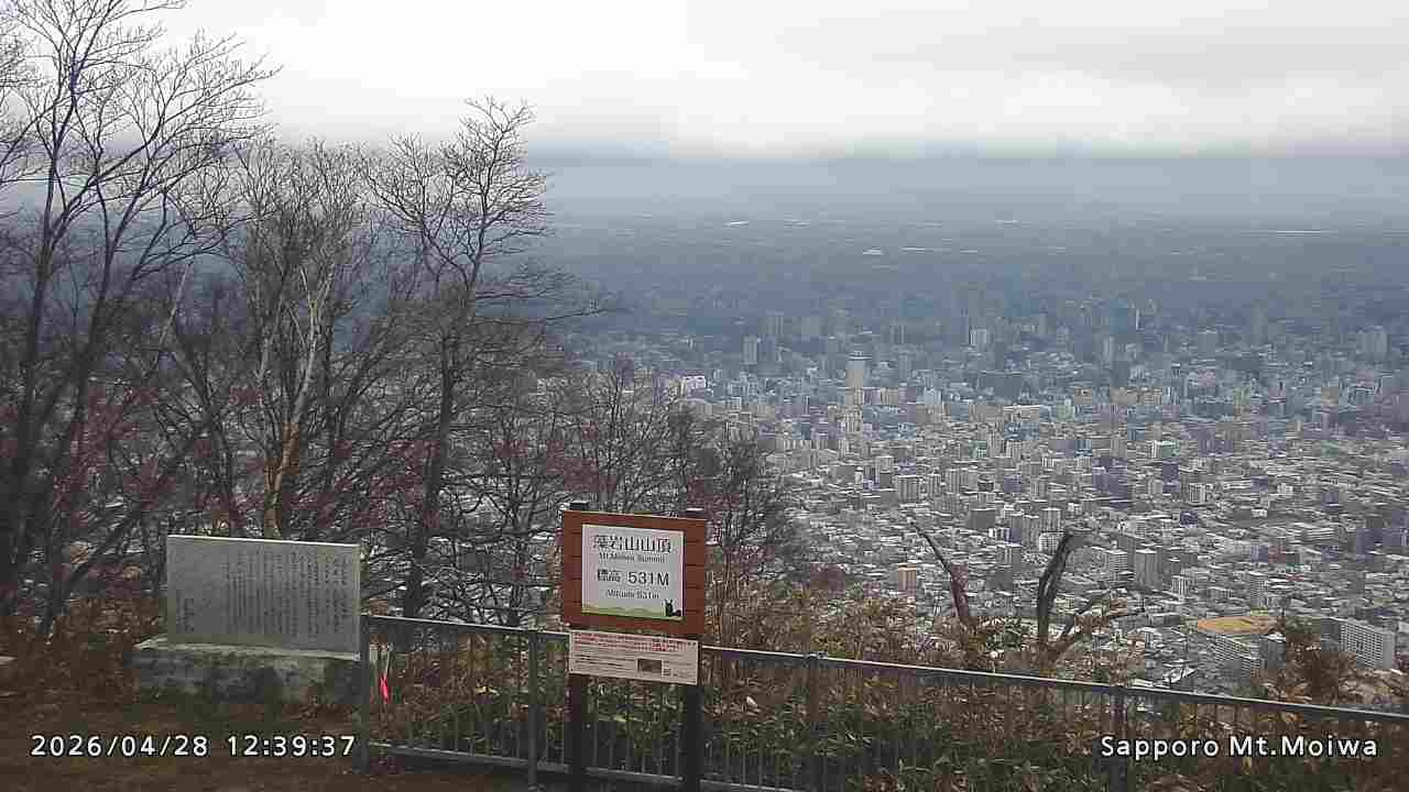 もいわ山山頂の標高看板前にカメラを設置しています。