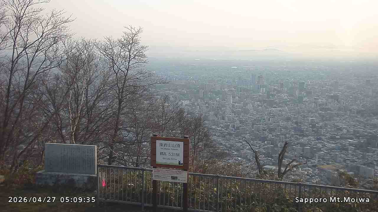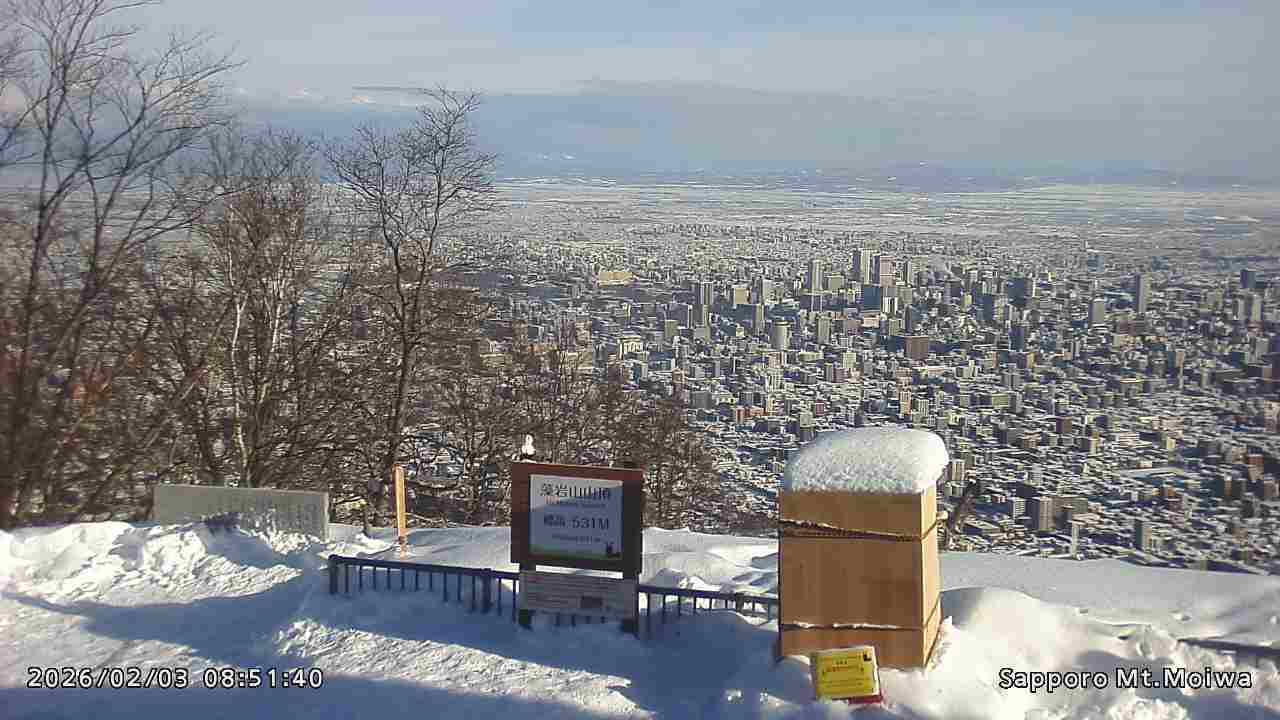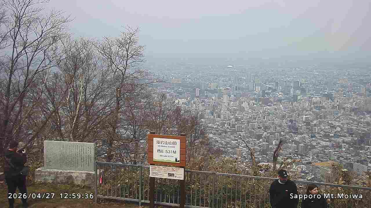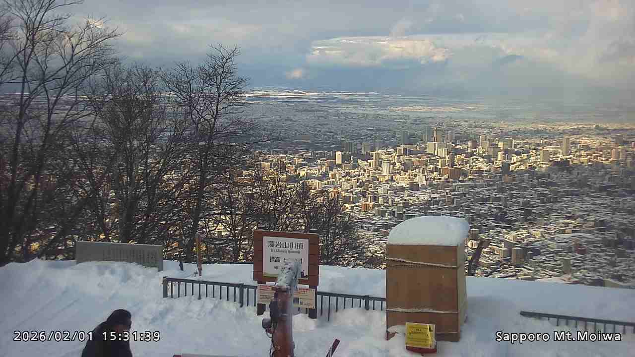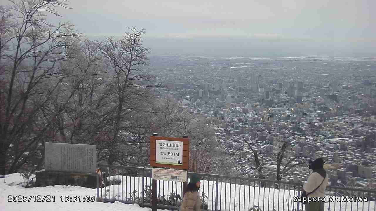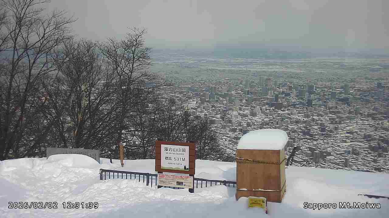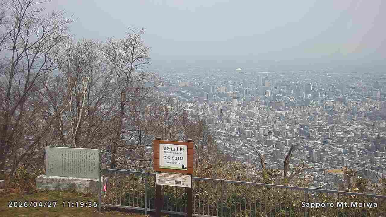 もいわ山山頂の標高看板前にカメラを設置しています。